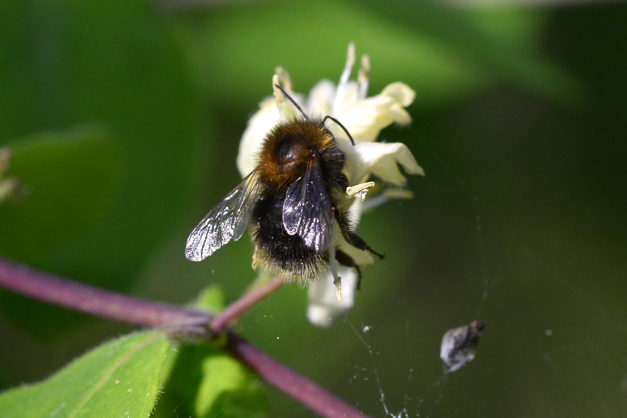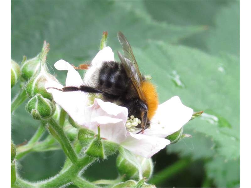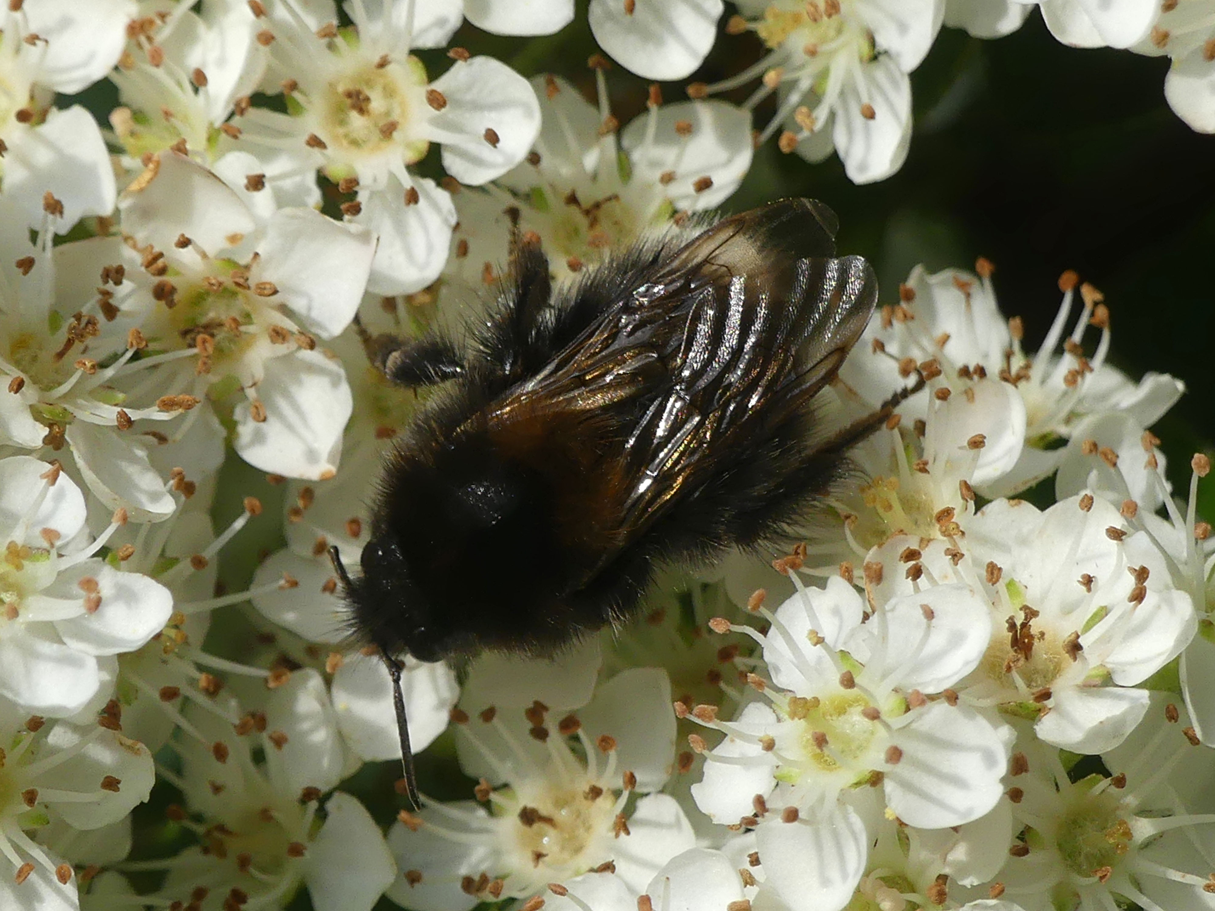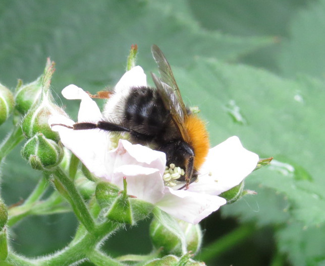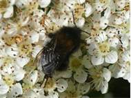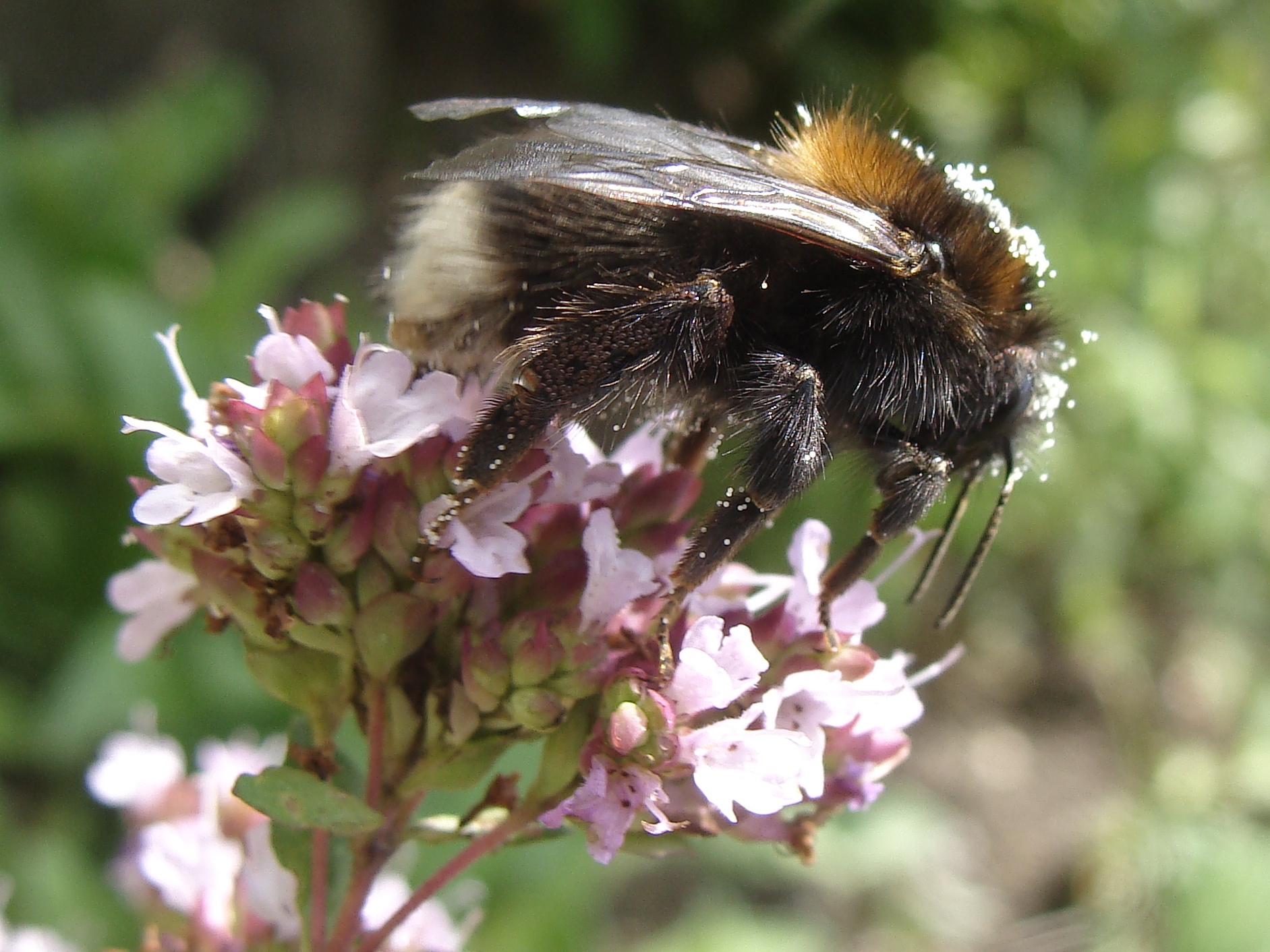 Mit Pollen übersäte Jungkönigin von Bombus hypnorum im Bahretal, Juli 2012