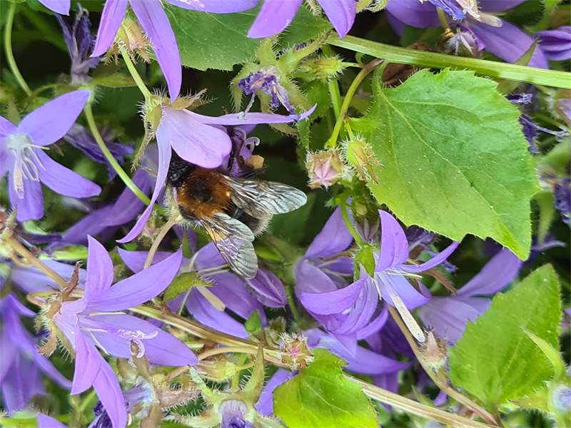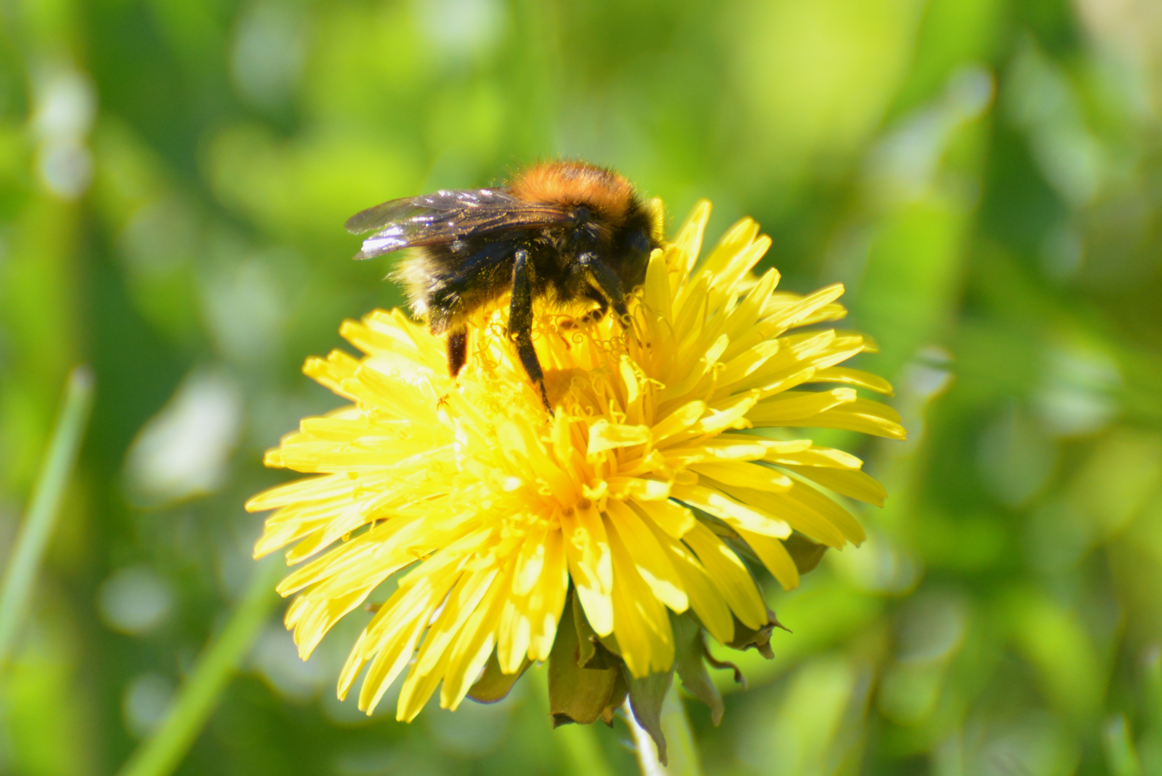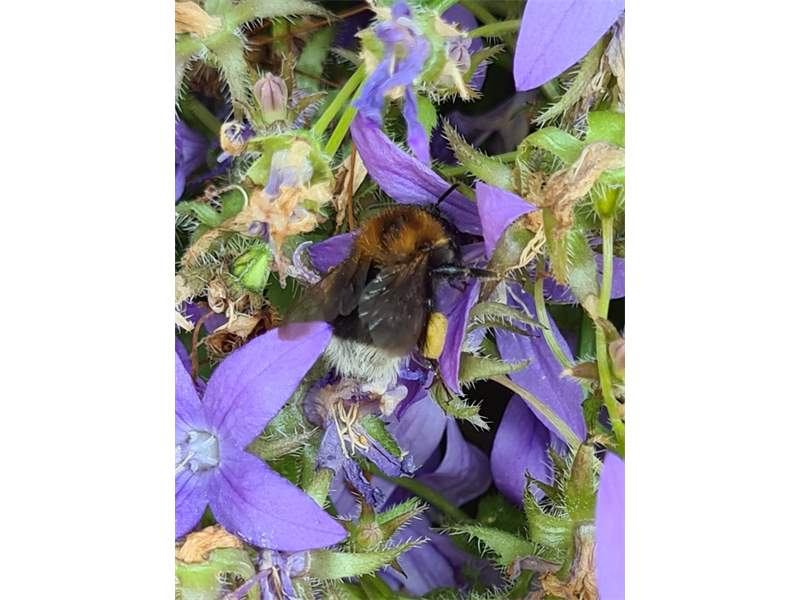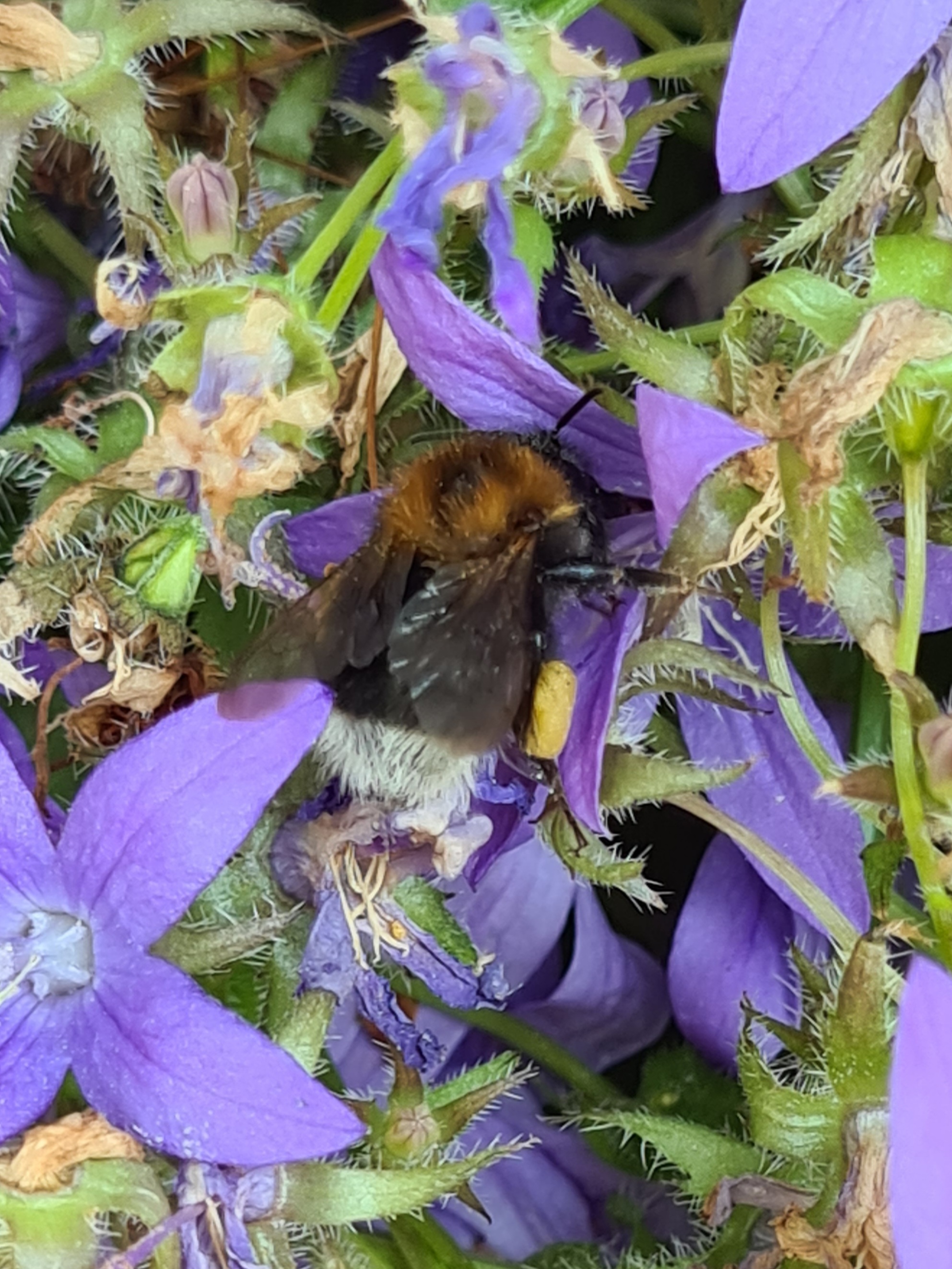 Mit Pollen übersäte Jungkönigin von Bombus hypnorum im Bahretal, Juli 2012