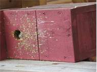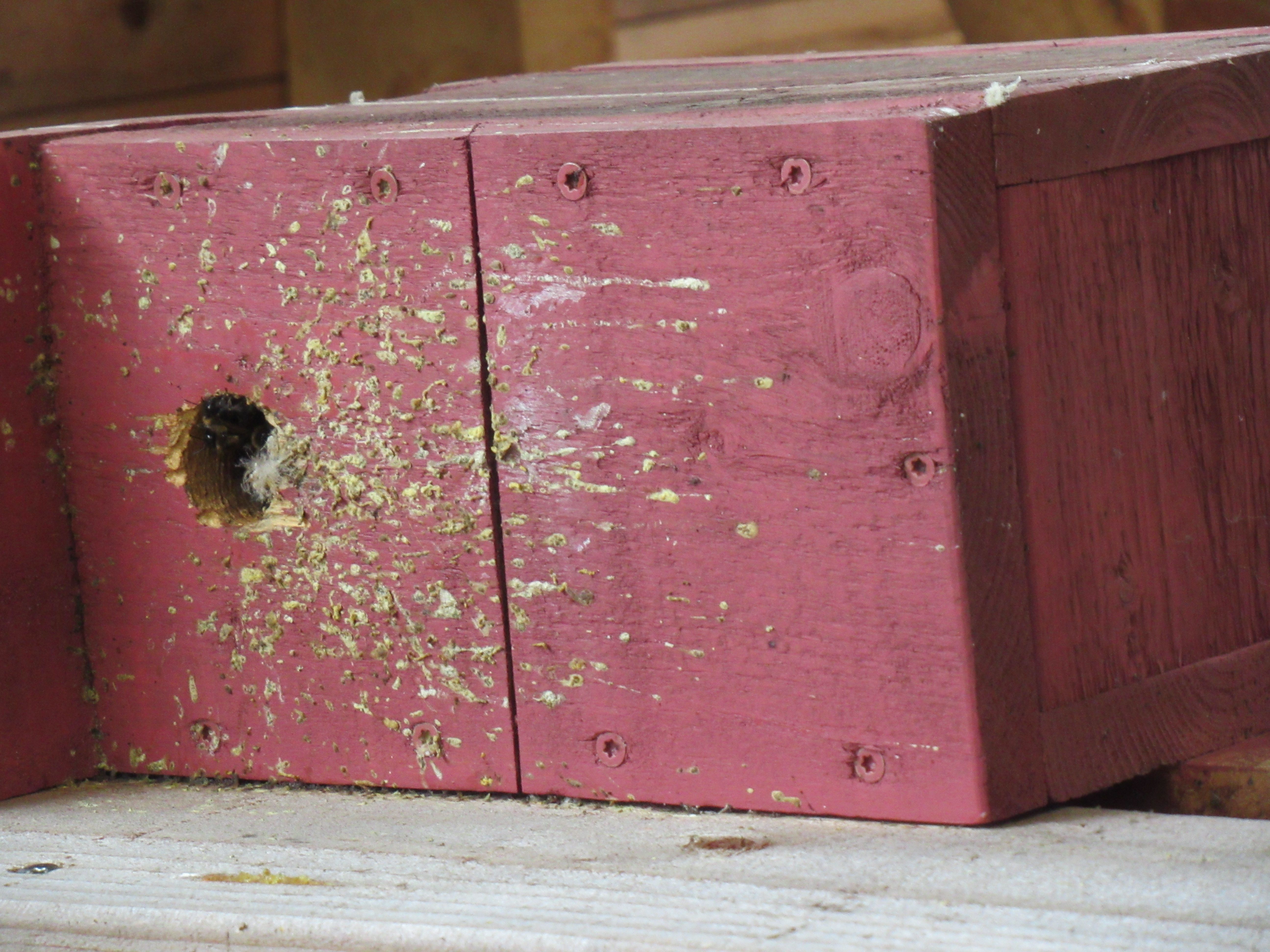 Mehrere Individuen in Nistkasten auf Schulgelände und Wächter, Torgau, Landkreis Nordsachsen, Juli 2023