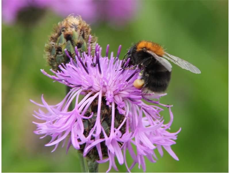 Baumhummel (Bombus hypnorum) an Flockenblume