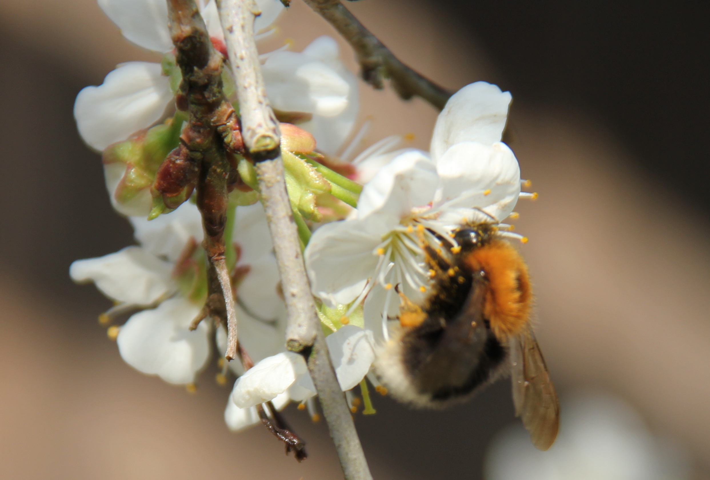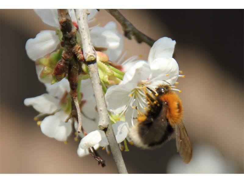 Baumhummel an Kirschblüten, Großdrebnitz, 2015