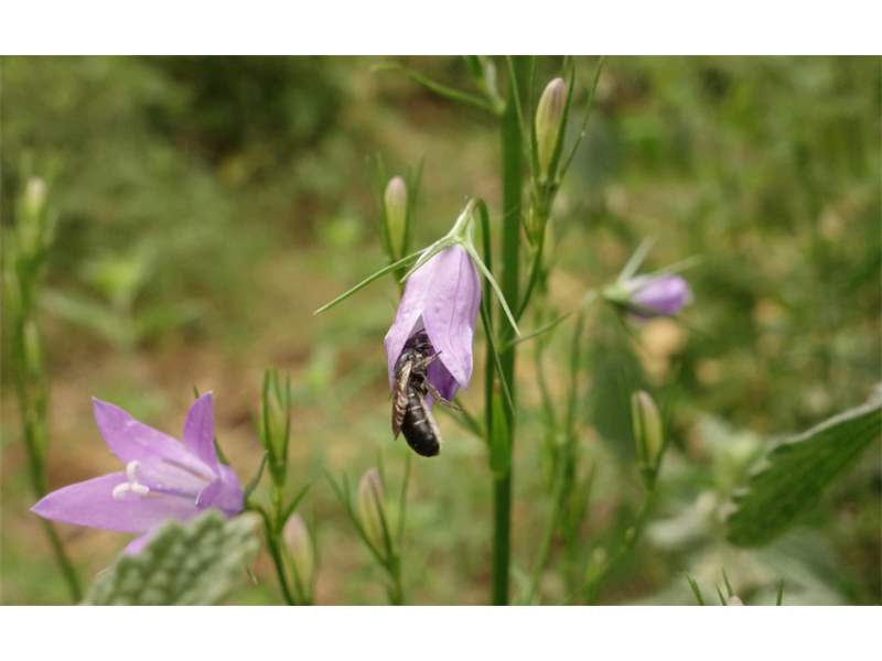 Weibchen von Chelostoma rapunculi an Campanula rapunculus, Dresden, Juni 2014. (© Michael Fritzsche)( Bild vergrößern)