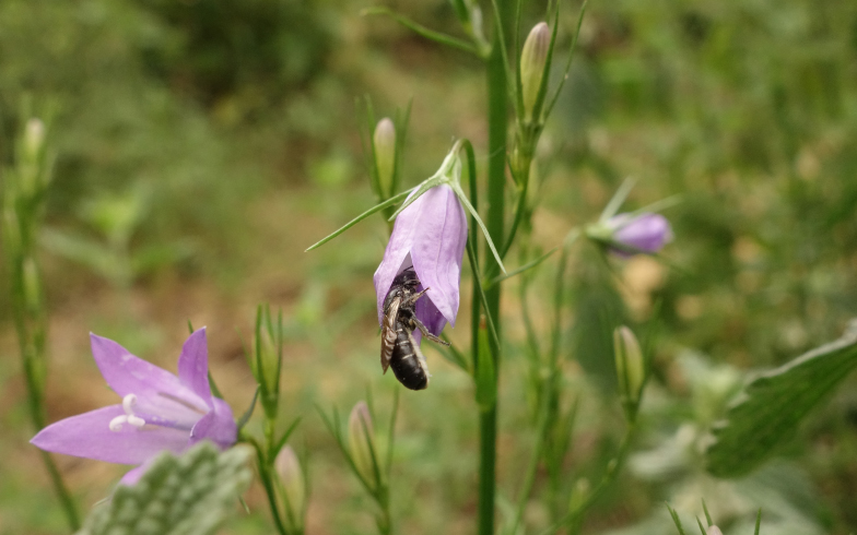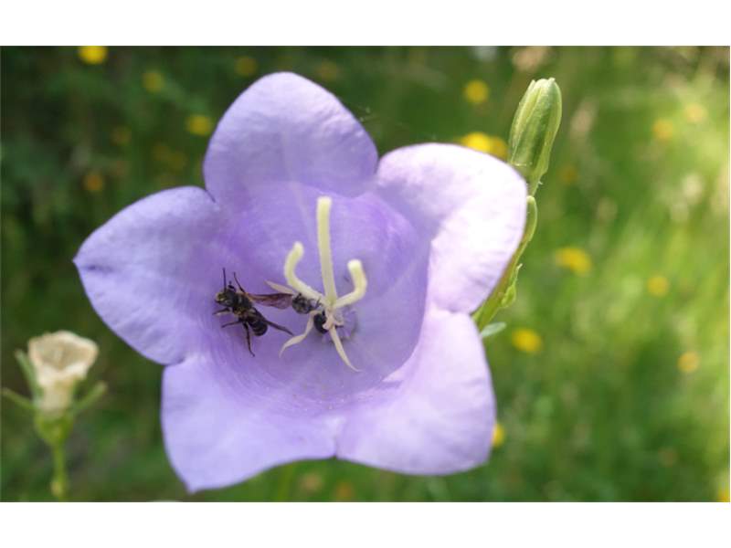 Männchen von Chelostoma rapunculi an Campanula persicifolia, Dresden, Juli 2014.
