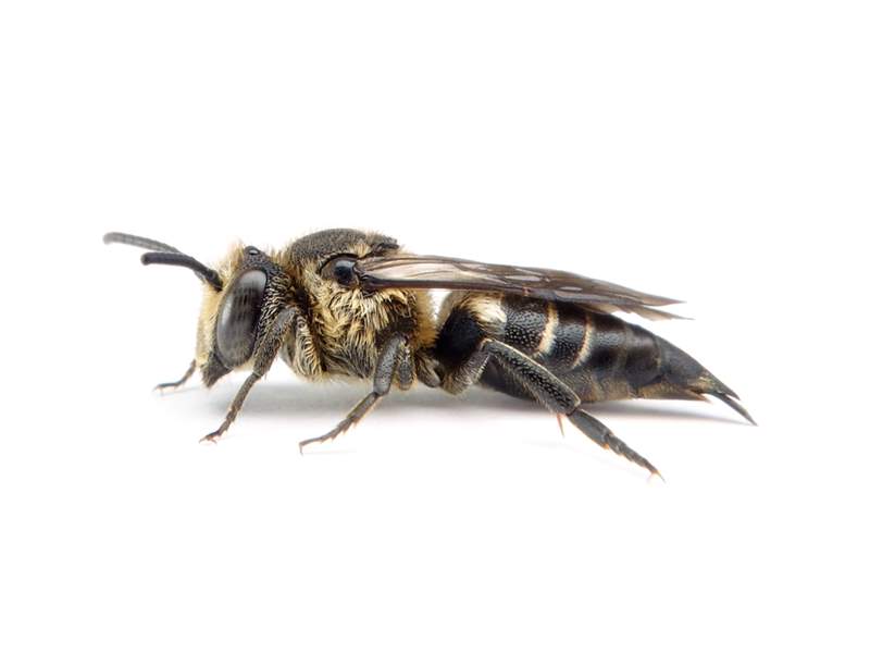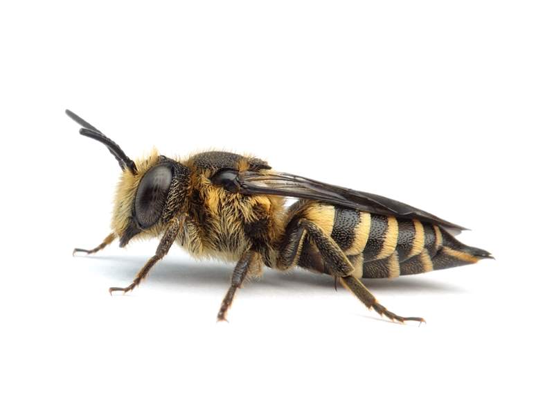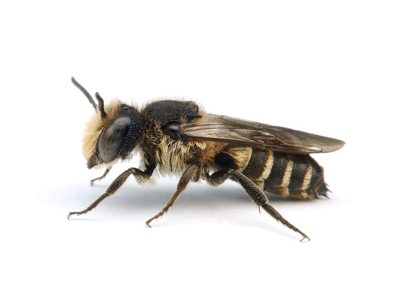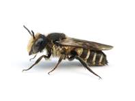 Kuckucksbiene bei den Blattschneiderbienen Megachile circumcincta und Megachile leachella, wahrscheinlich auch Megachile centuncularis, Megachile ligniseca und Megachile willughbiella