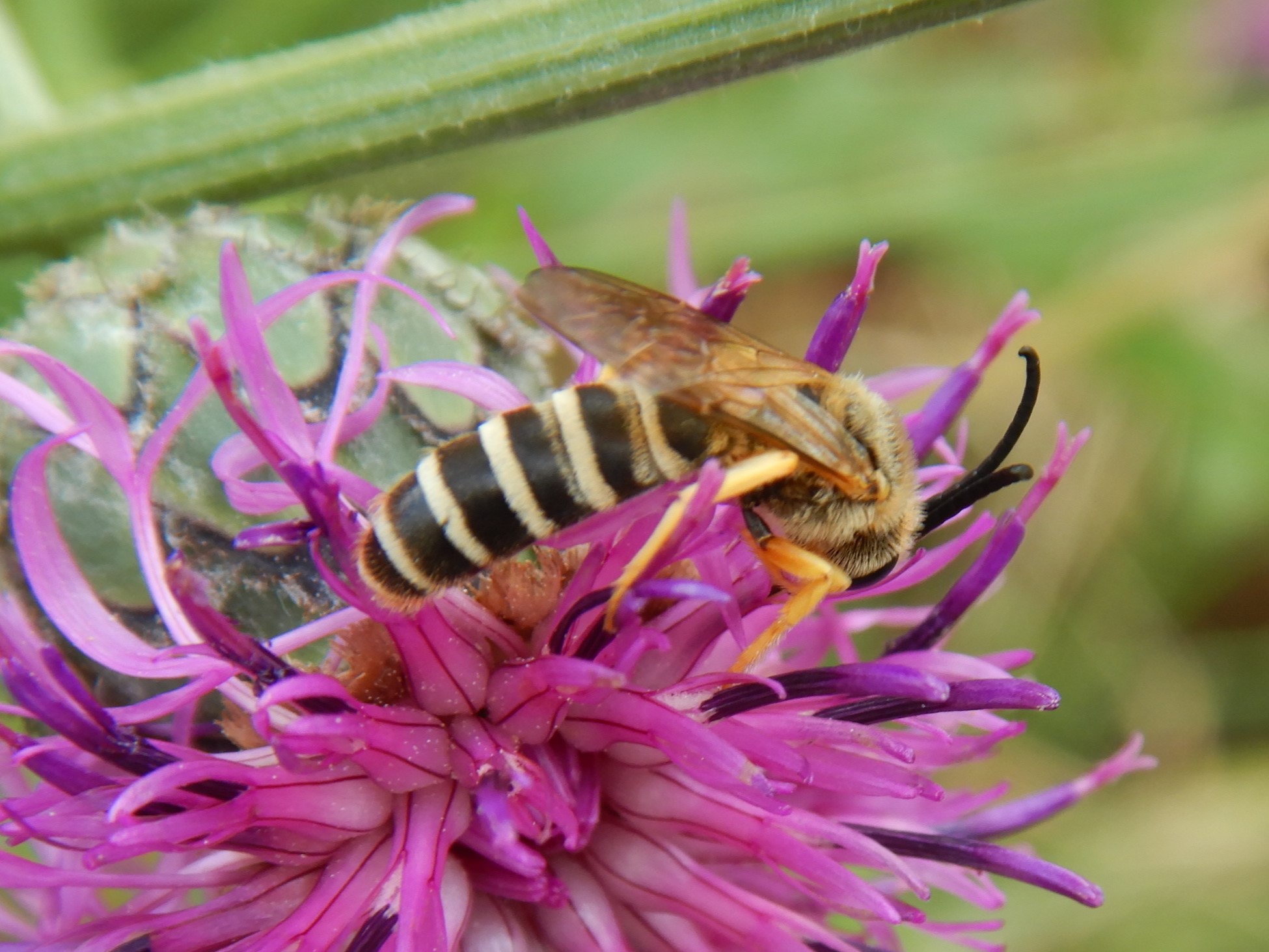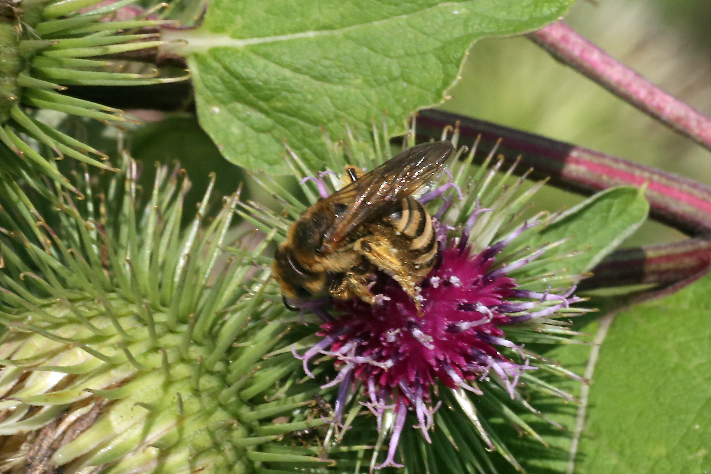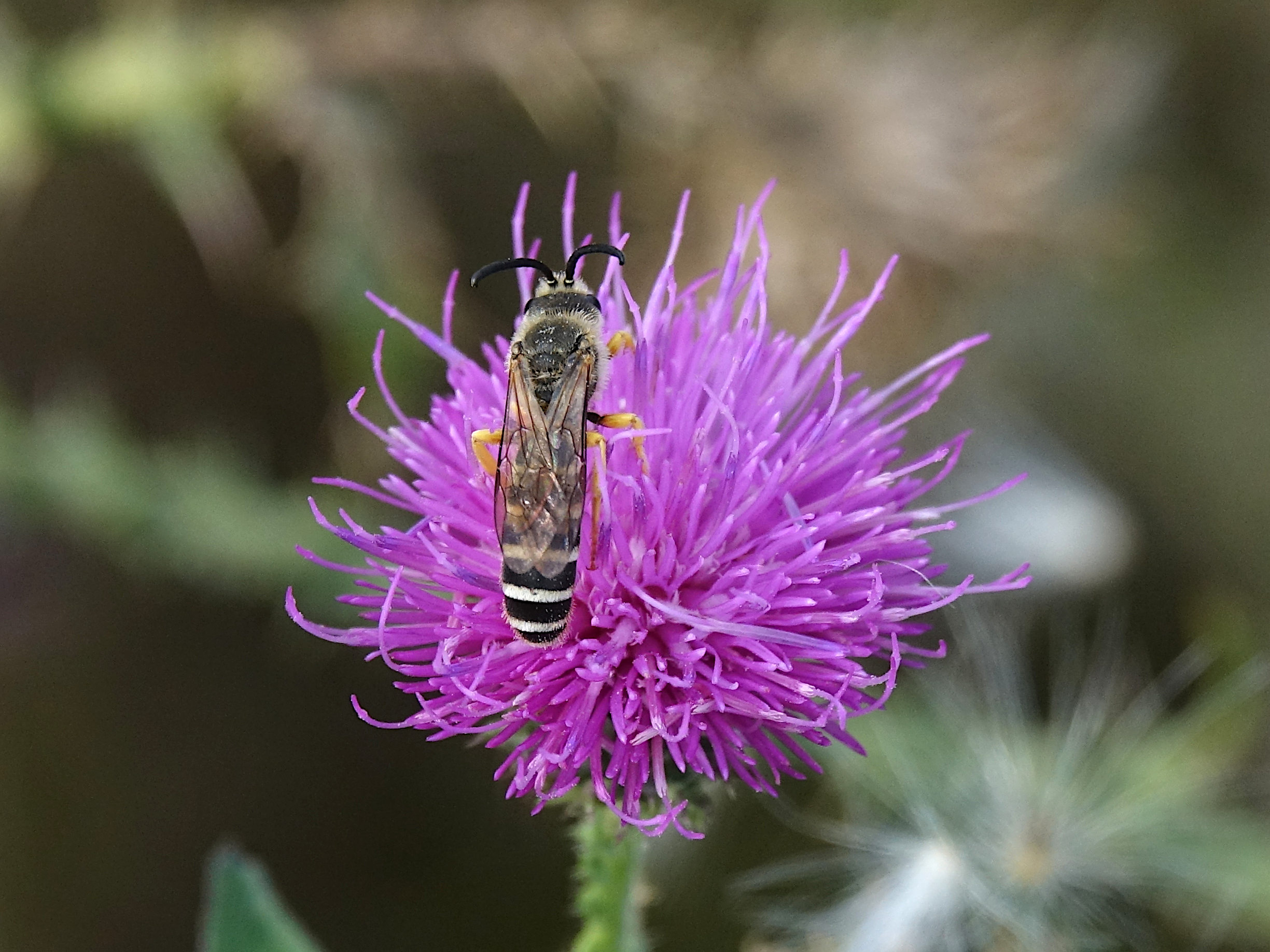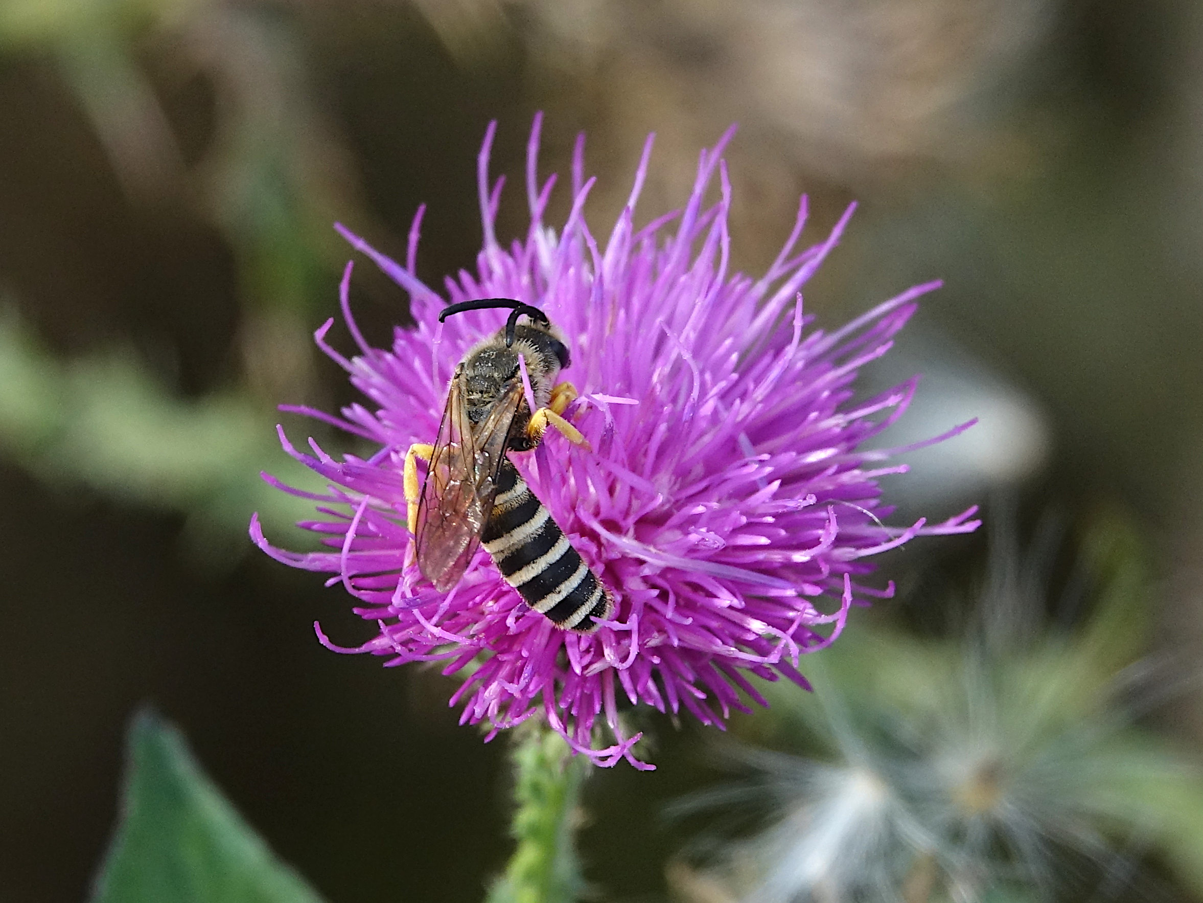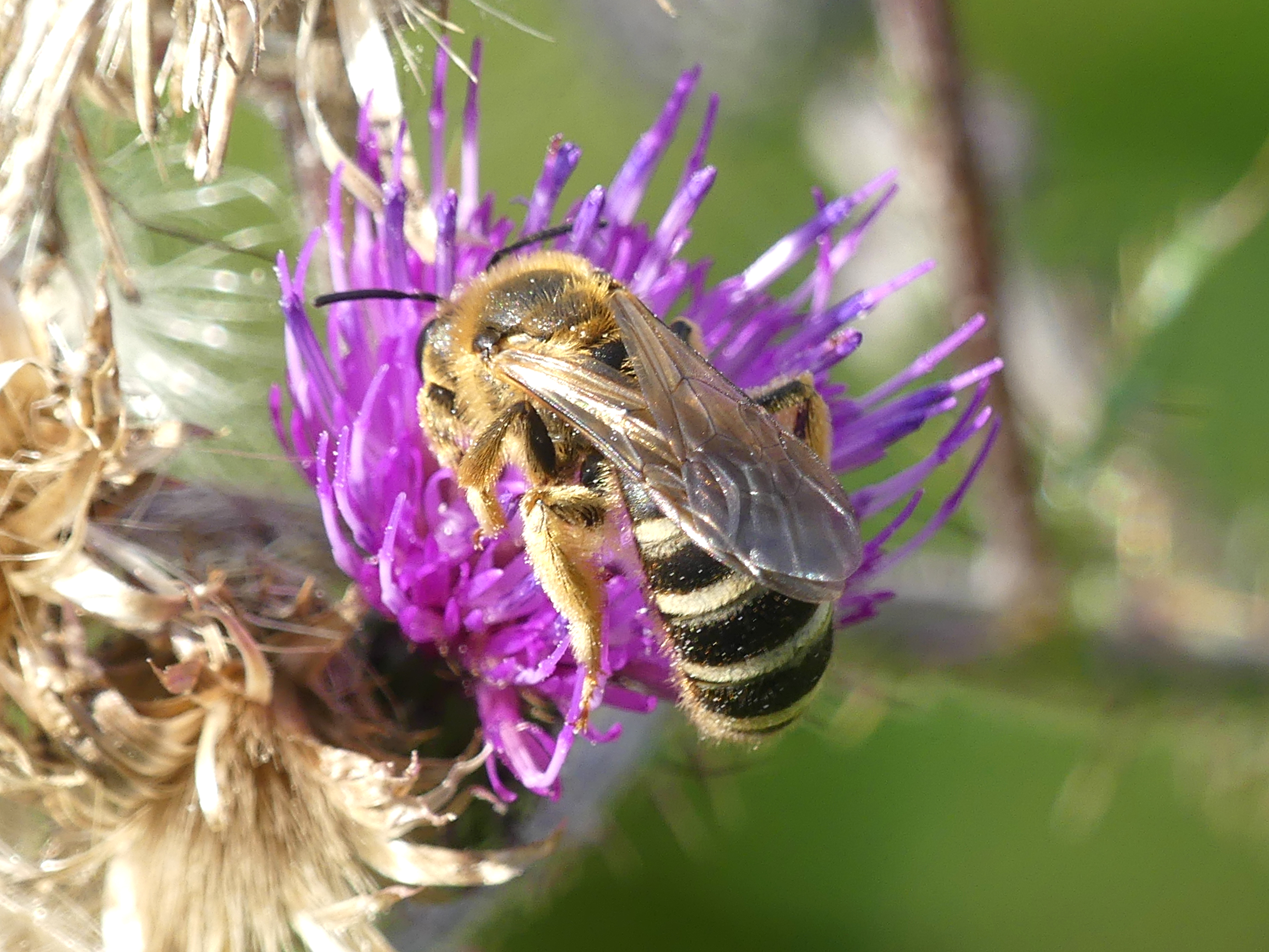 Gelbbindige Furchenbiene (Halictus scabiosae (Rossi, 1790)),Freital/Wurgwitz,Hammerteich,Wegrand auf Kratzdistel,Sep. 2019
