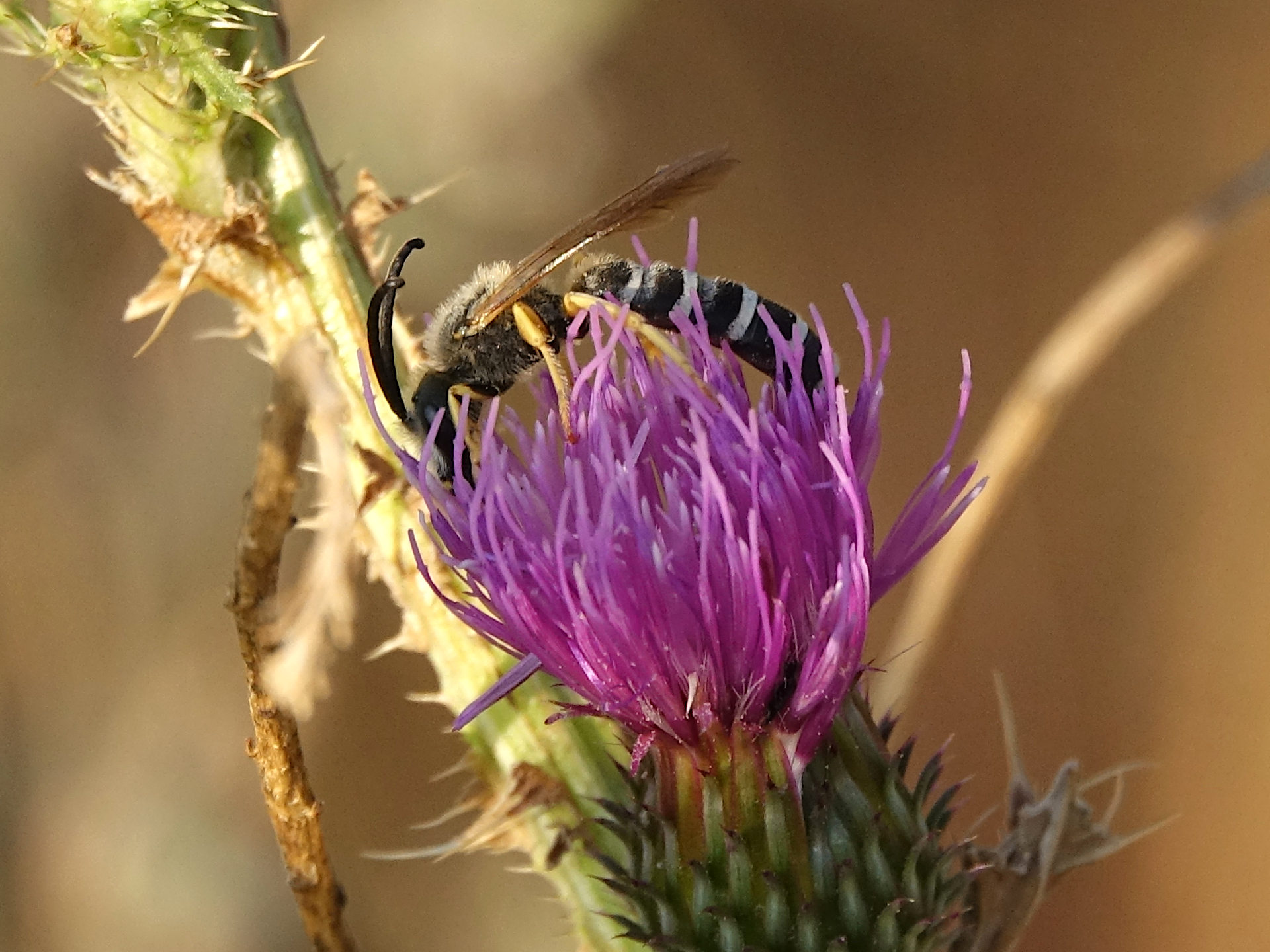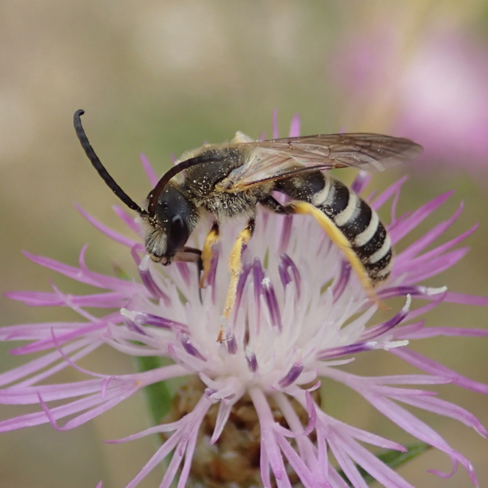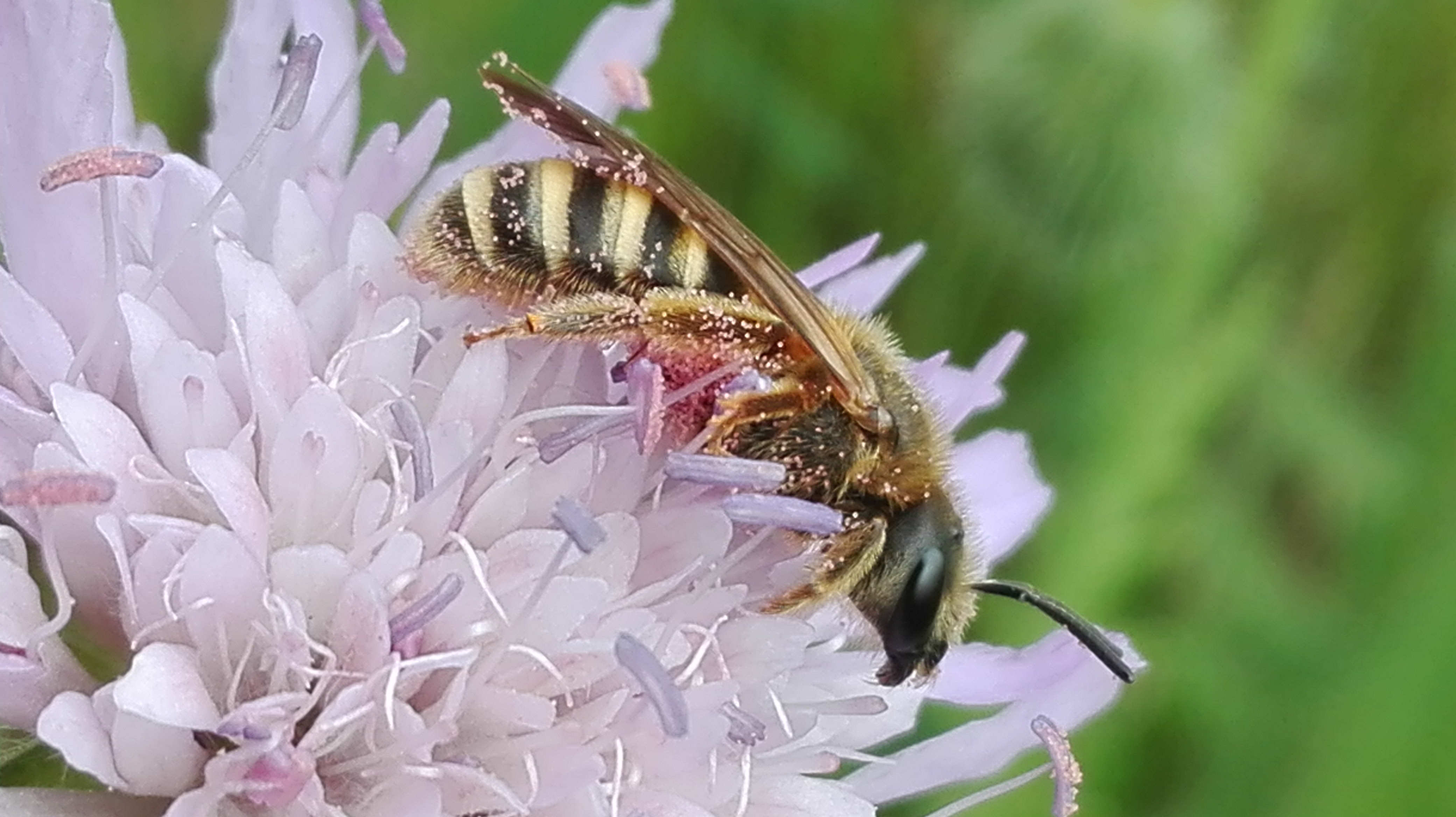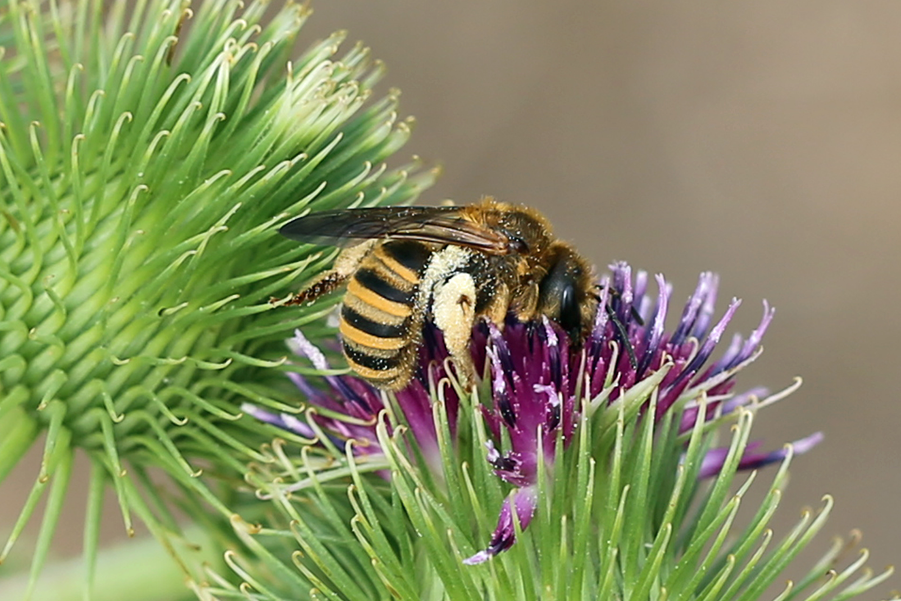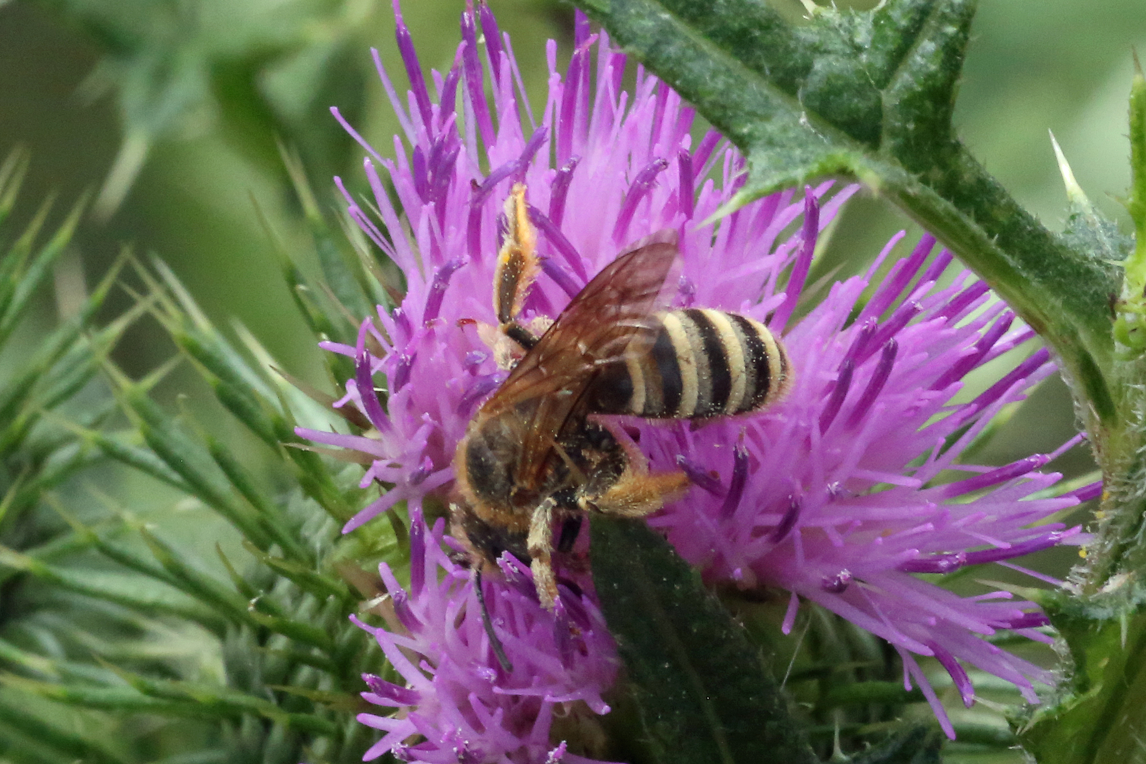 Gelbbindige Furchenbiene (Halictus scabiosae (Rossi, 1790)),Freital/Wurgwitz,Hammerteich,Wegrand auf Kratzdistel,Sep. 2019