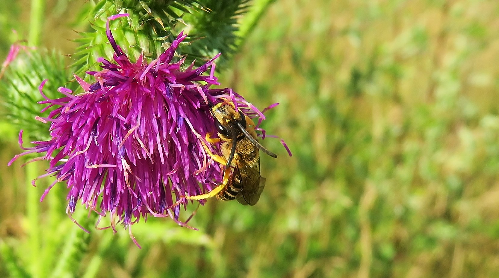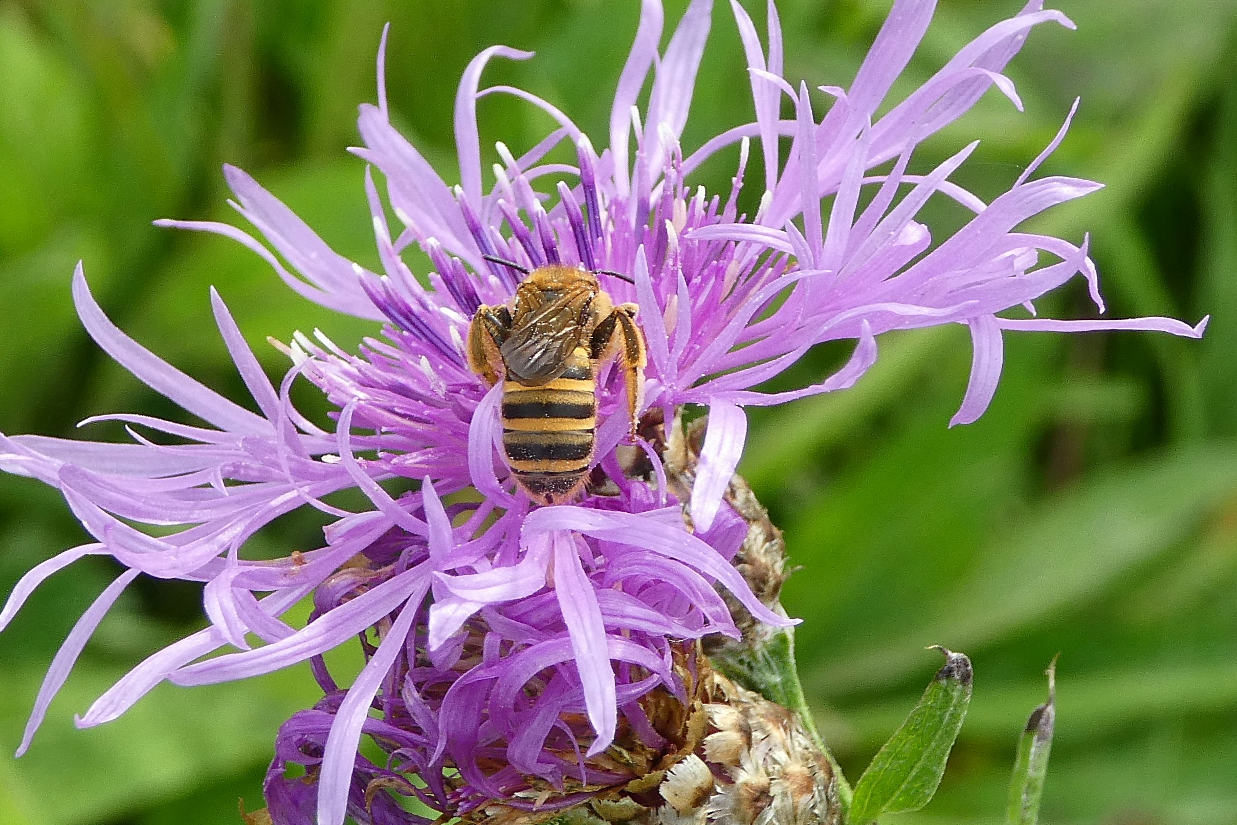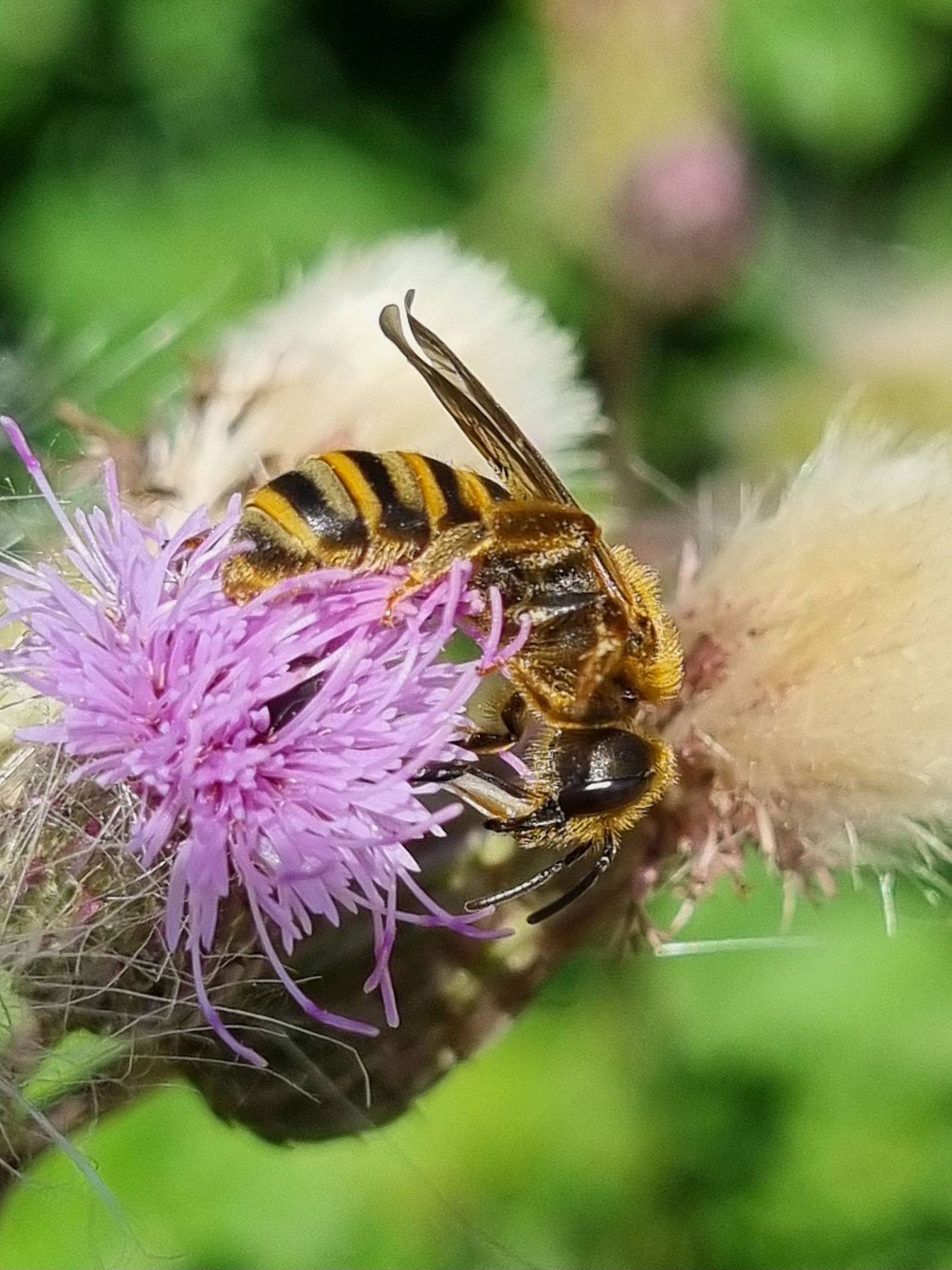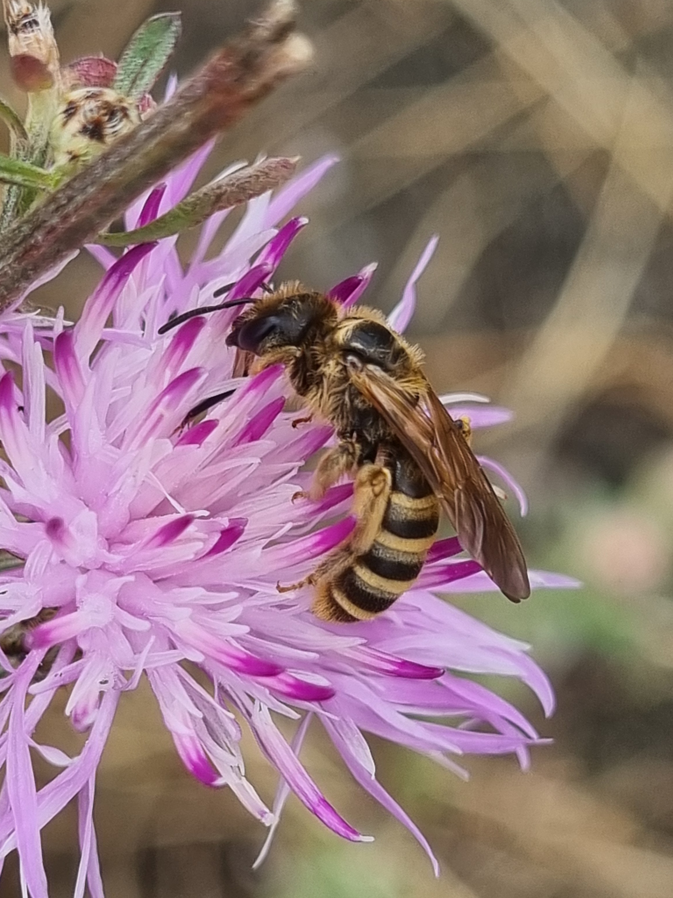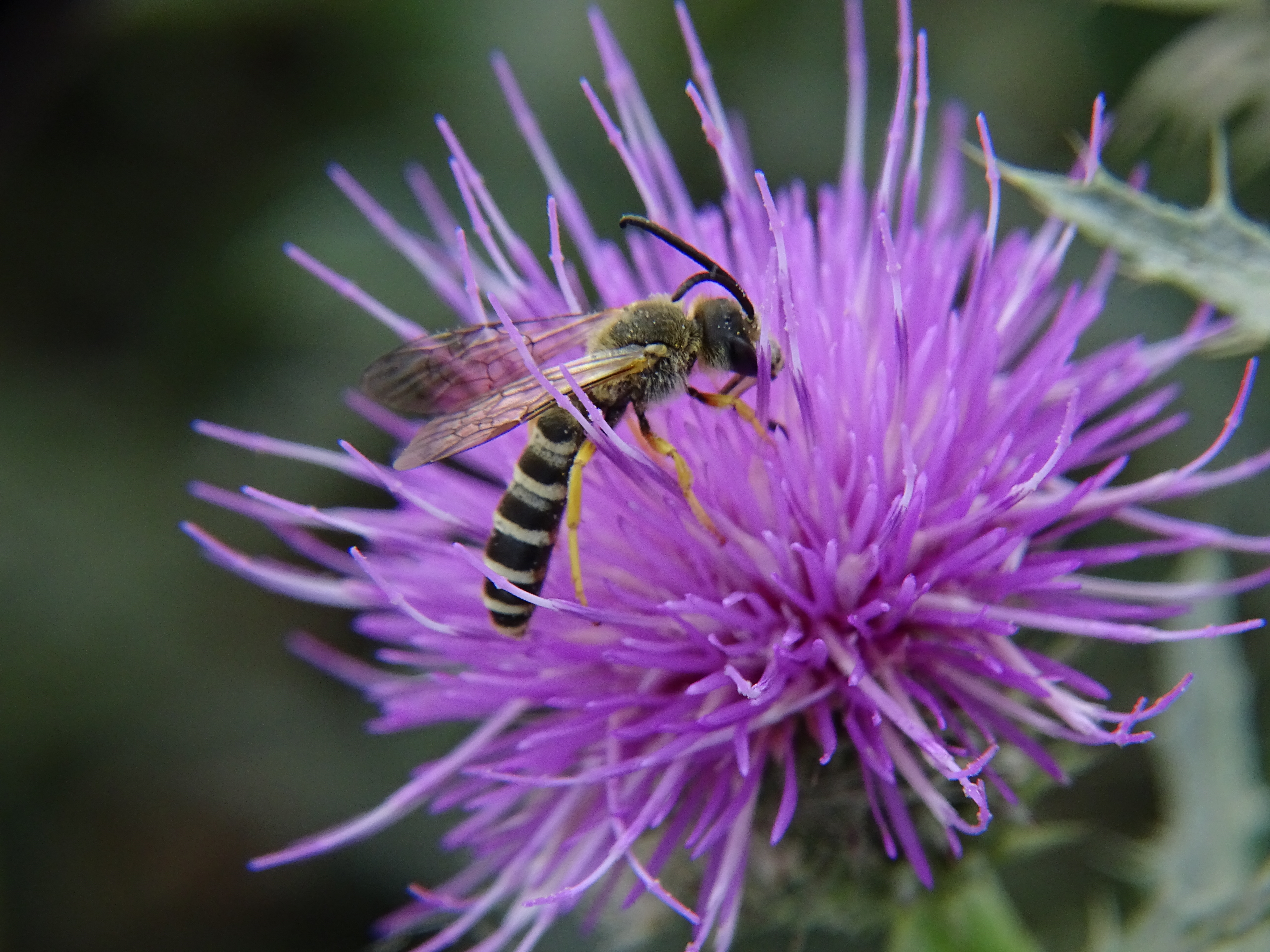 Gelbbindige Furchenbiene (Halictus scabiosae (Rossi, 1790)),Freital/Wurgwitz,Hammerteich,Wegrand auf Kratzdistel,Sep. 2019