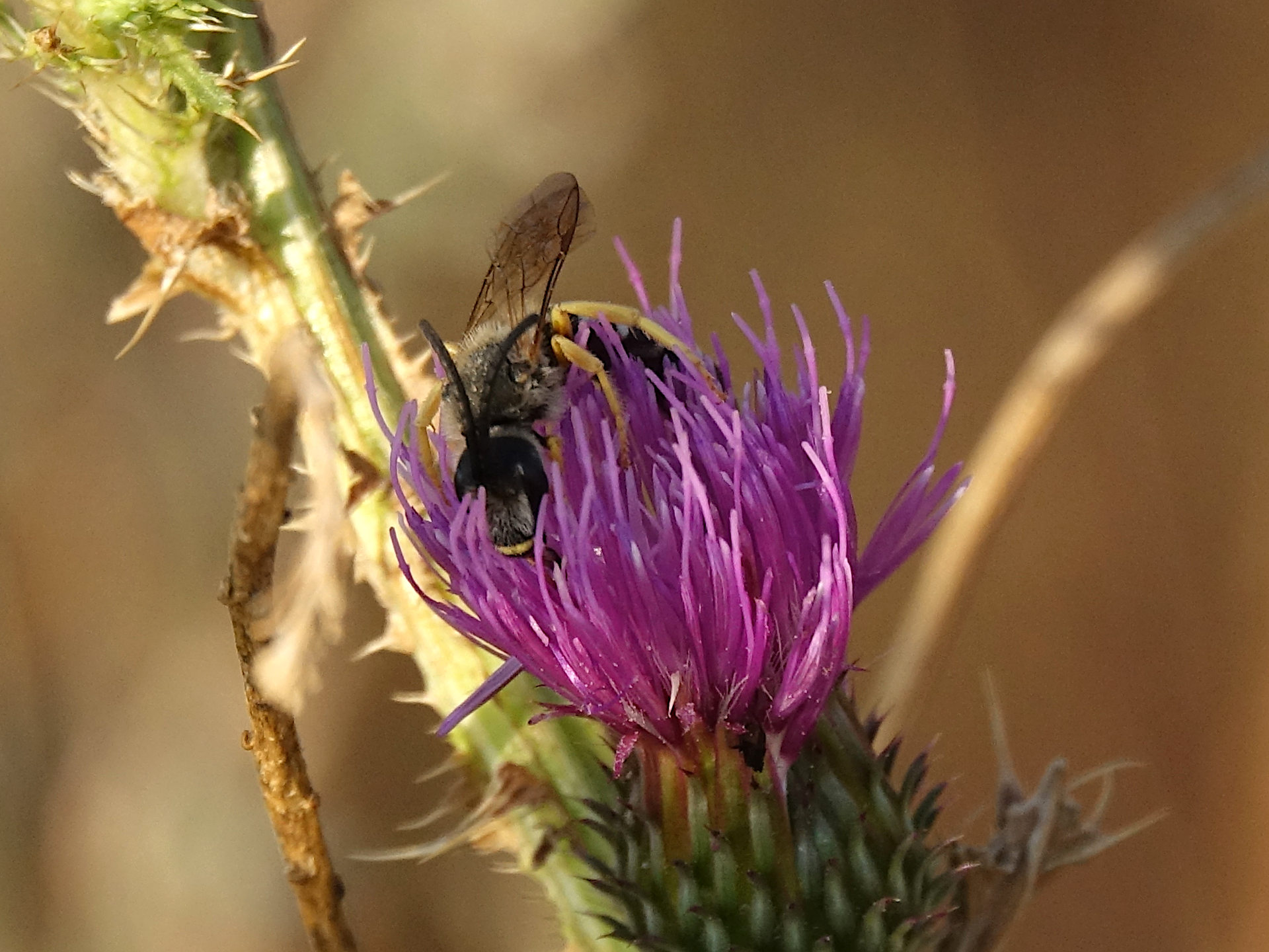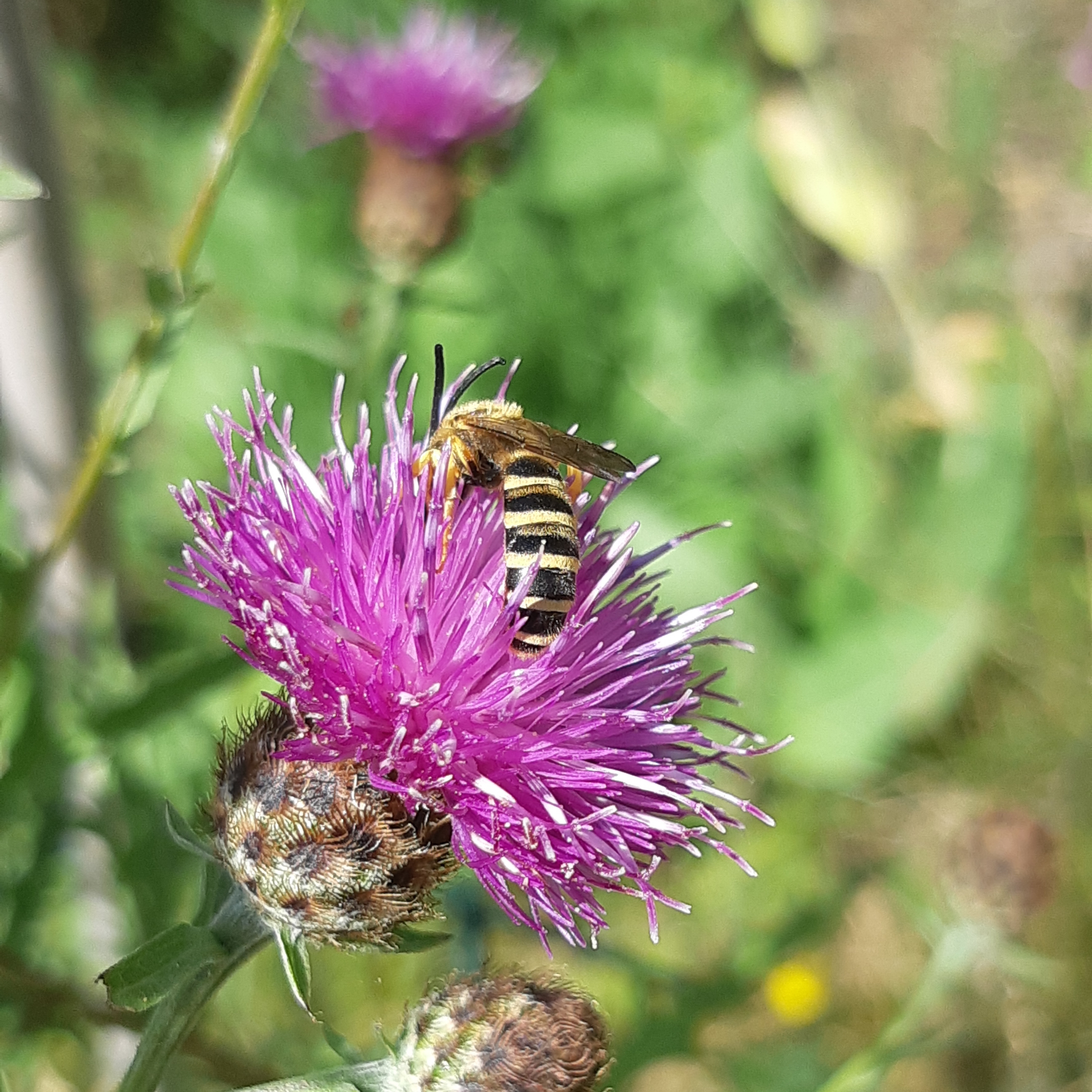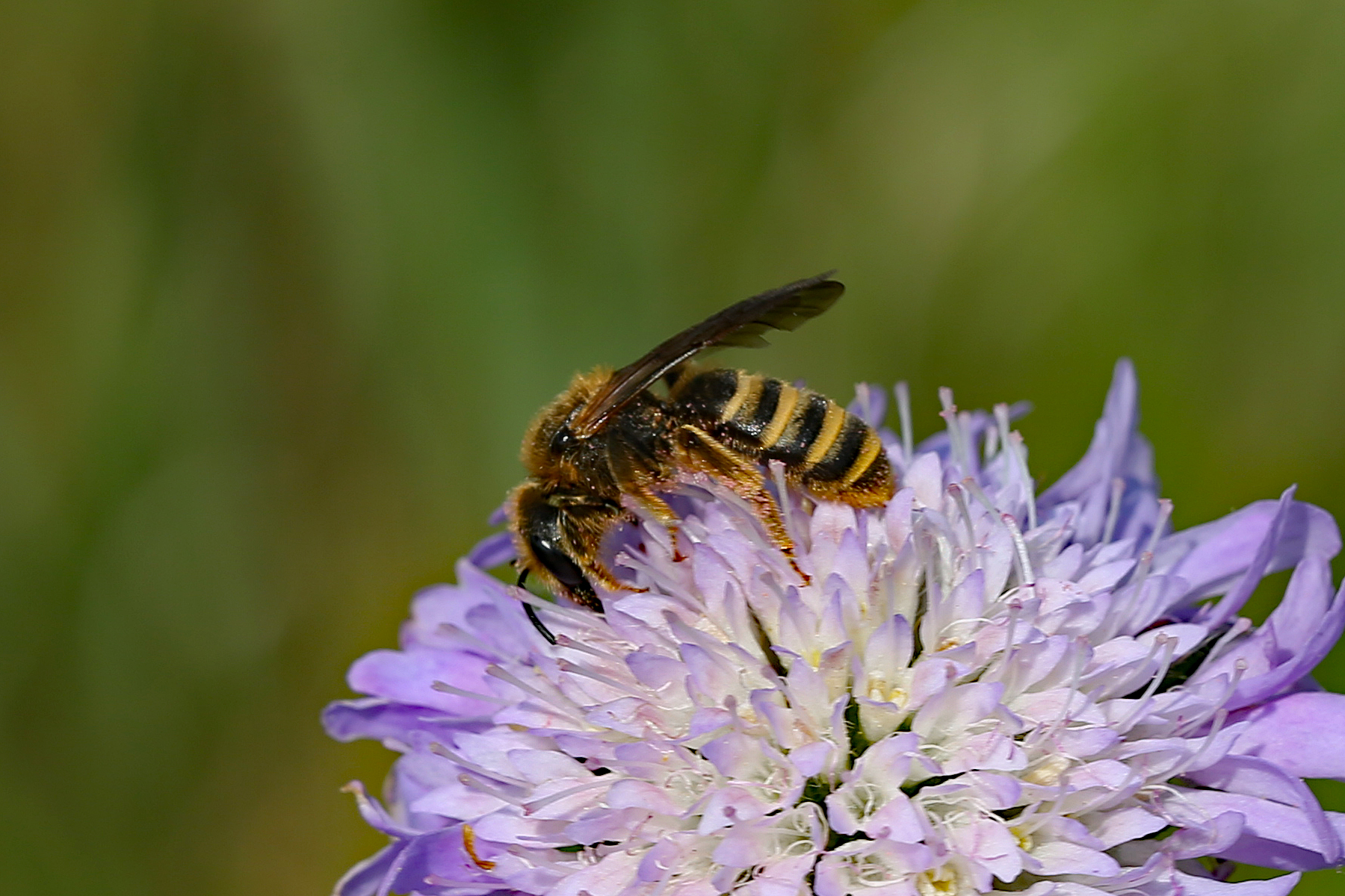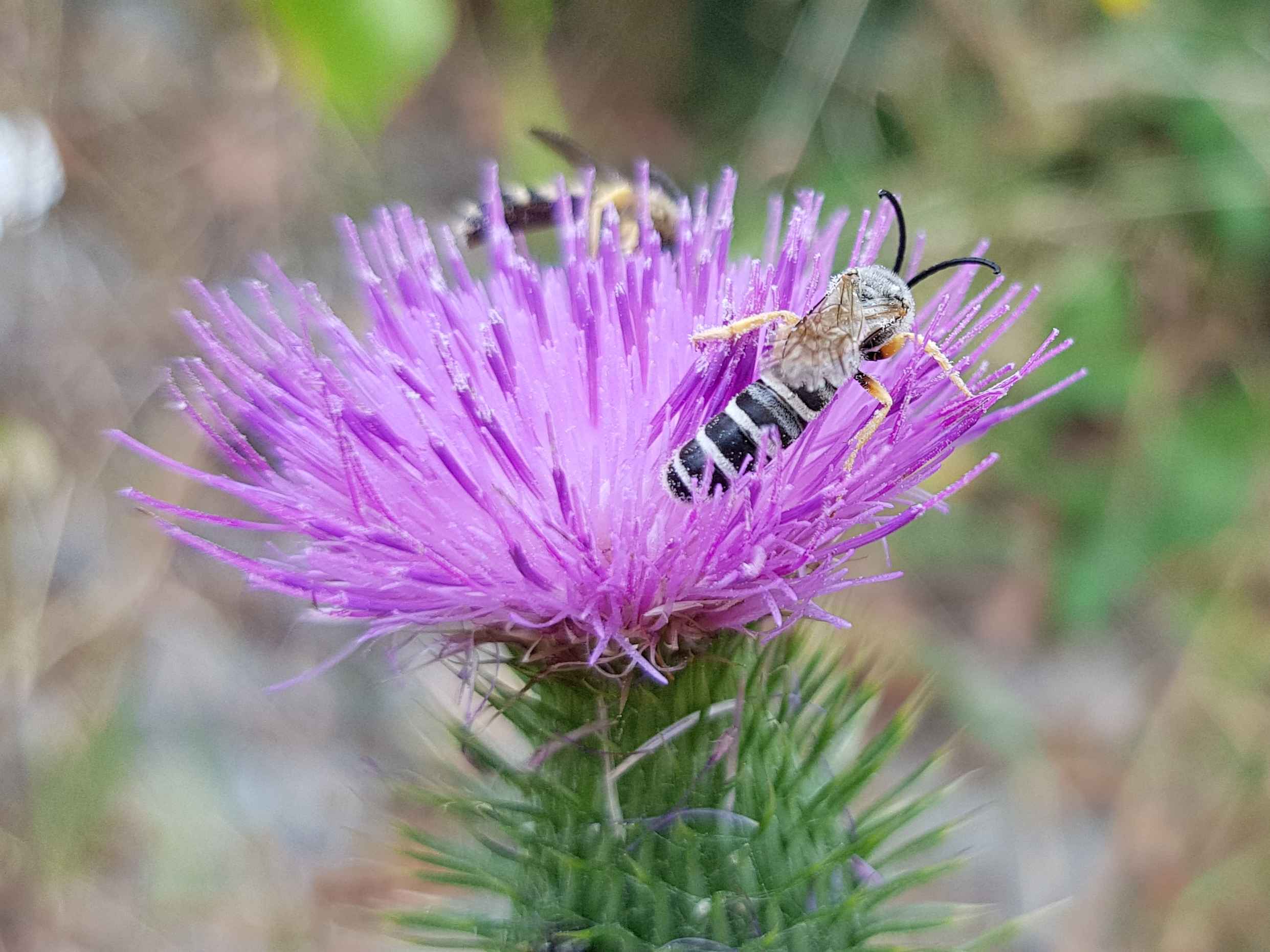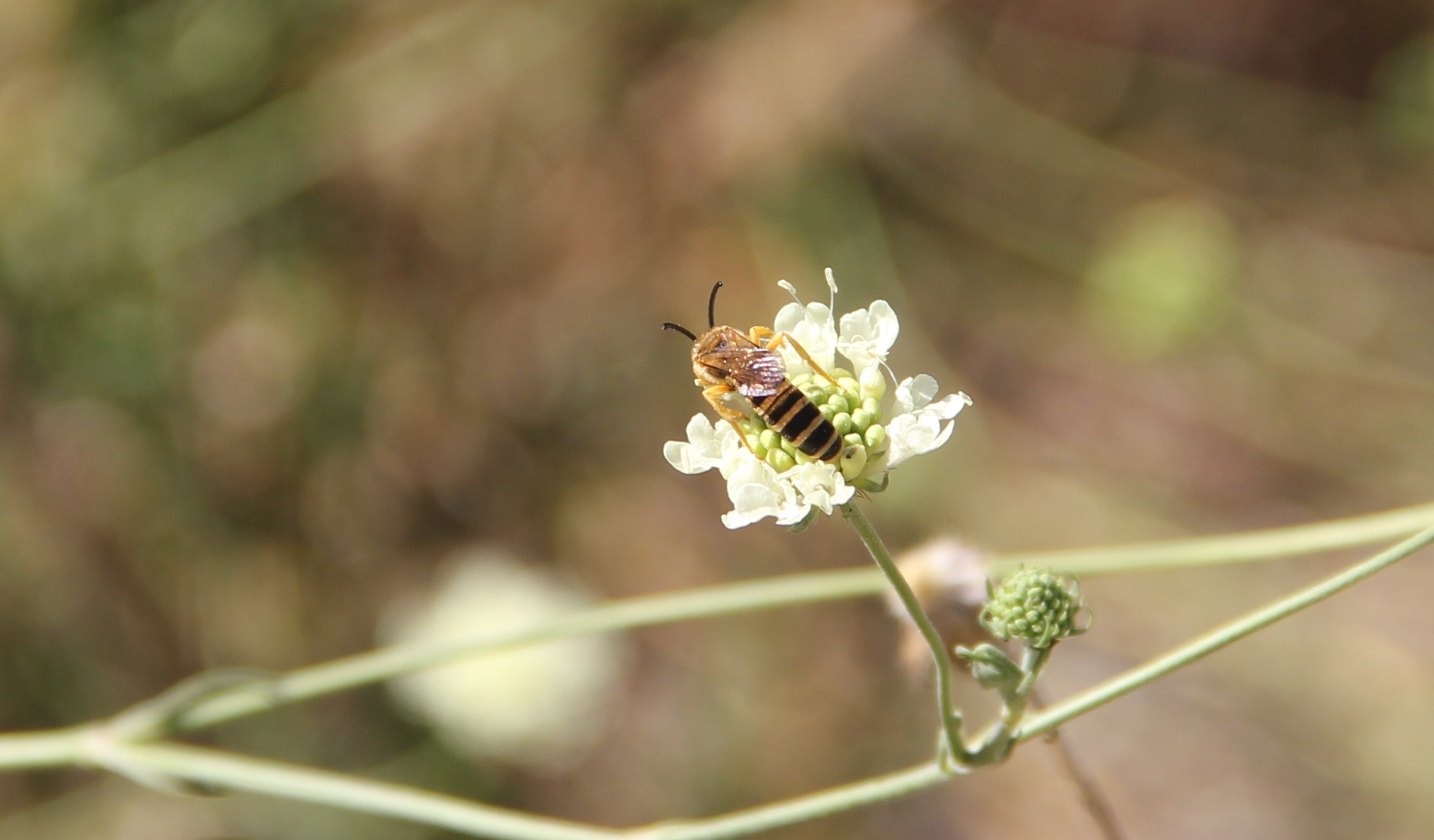 Gelbbindige Furchenbiene (Halictus scabiosae (Rossi, 1790)),Freital/Wurgwitz,Hammerteich,Wegrand auf Kratzdistel,Sep. 2019