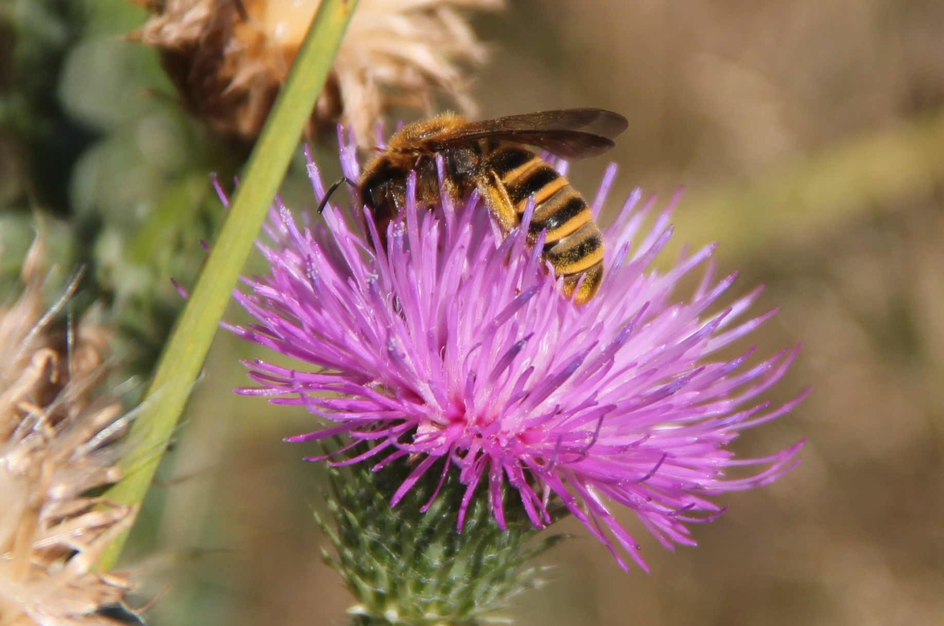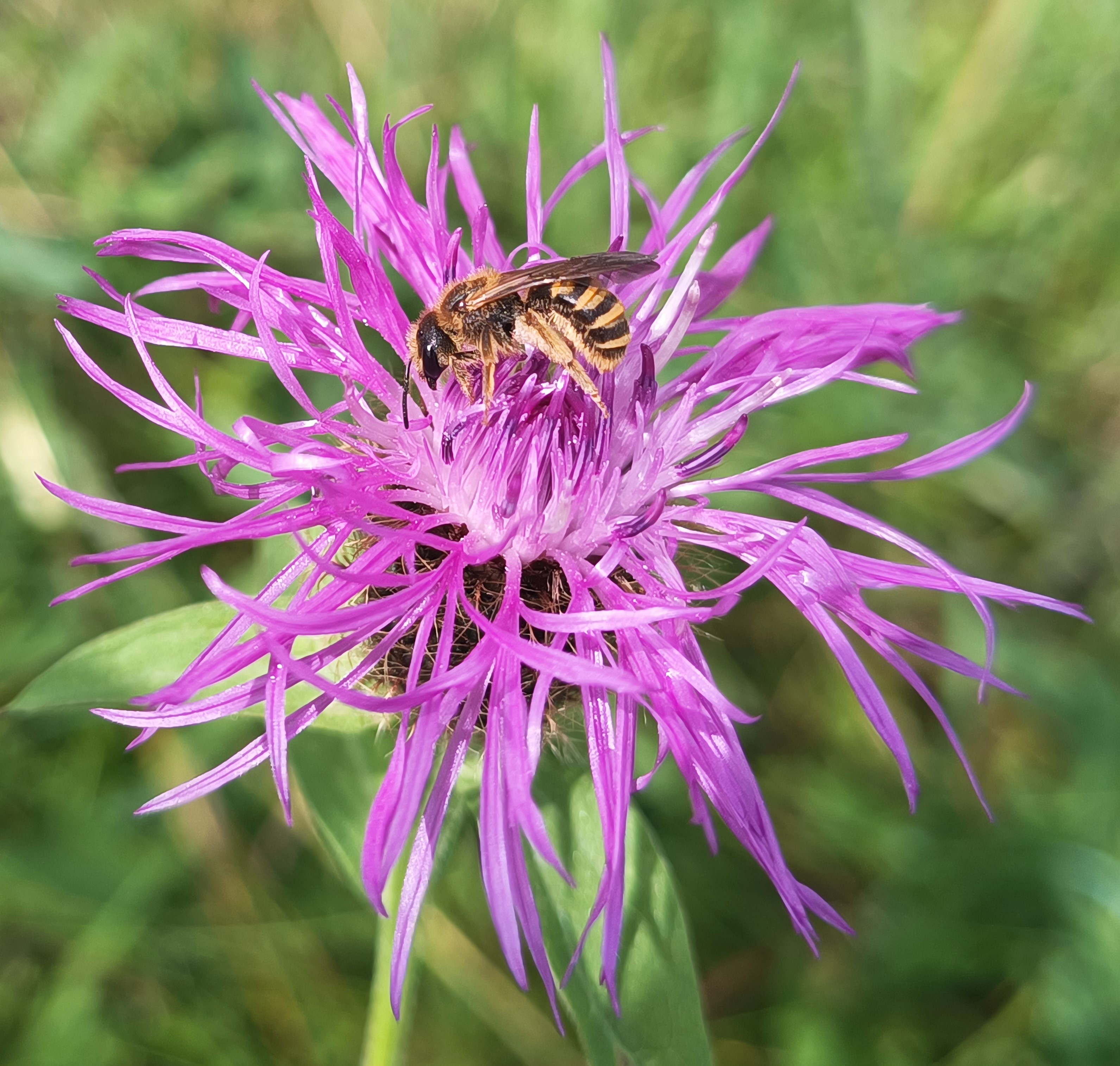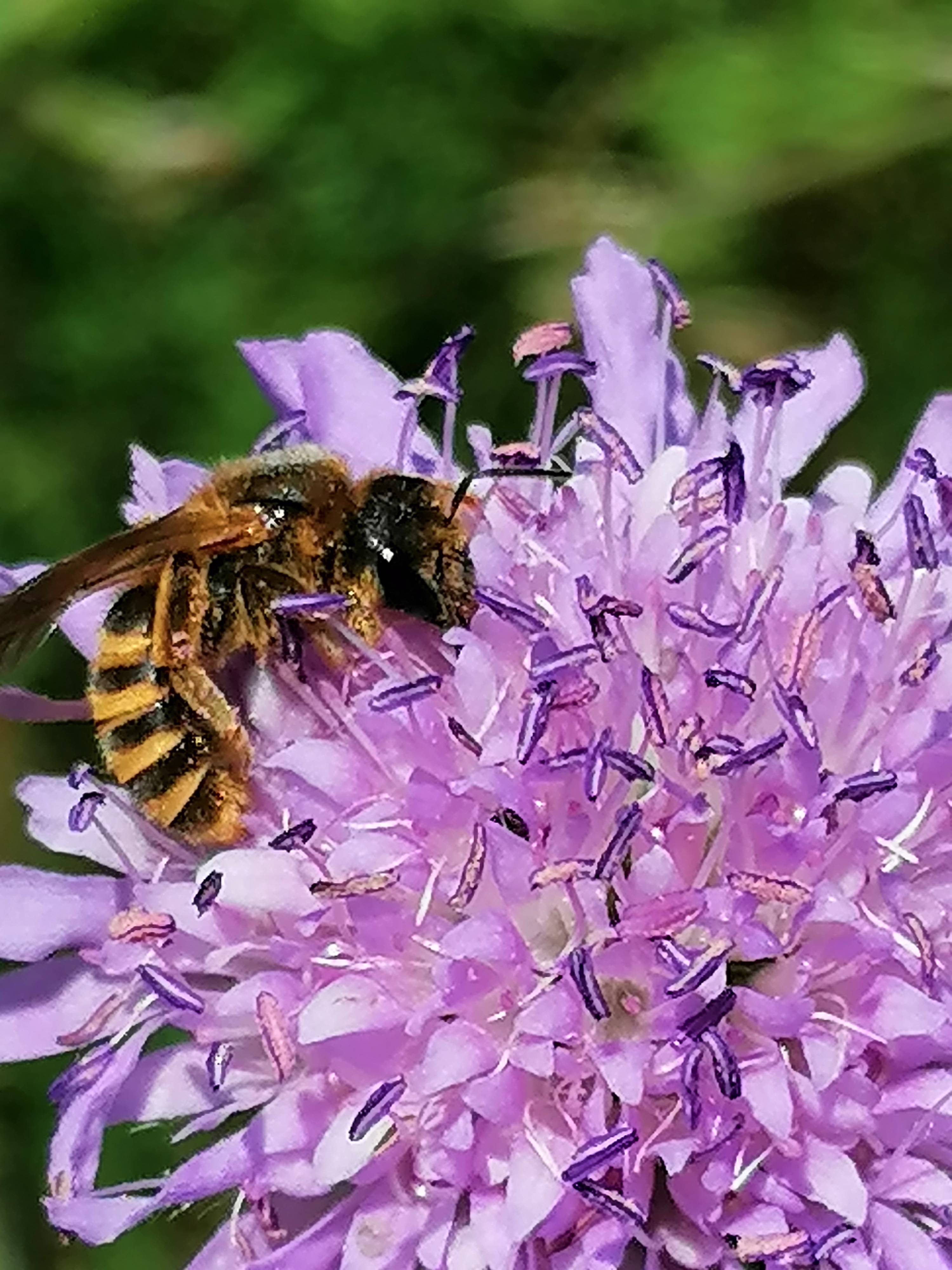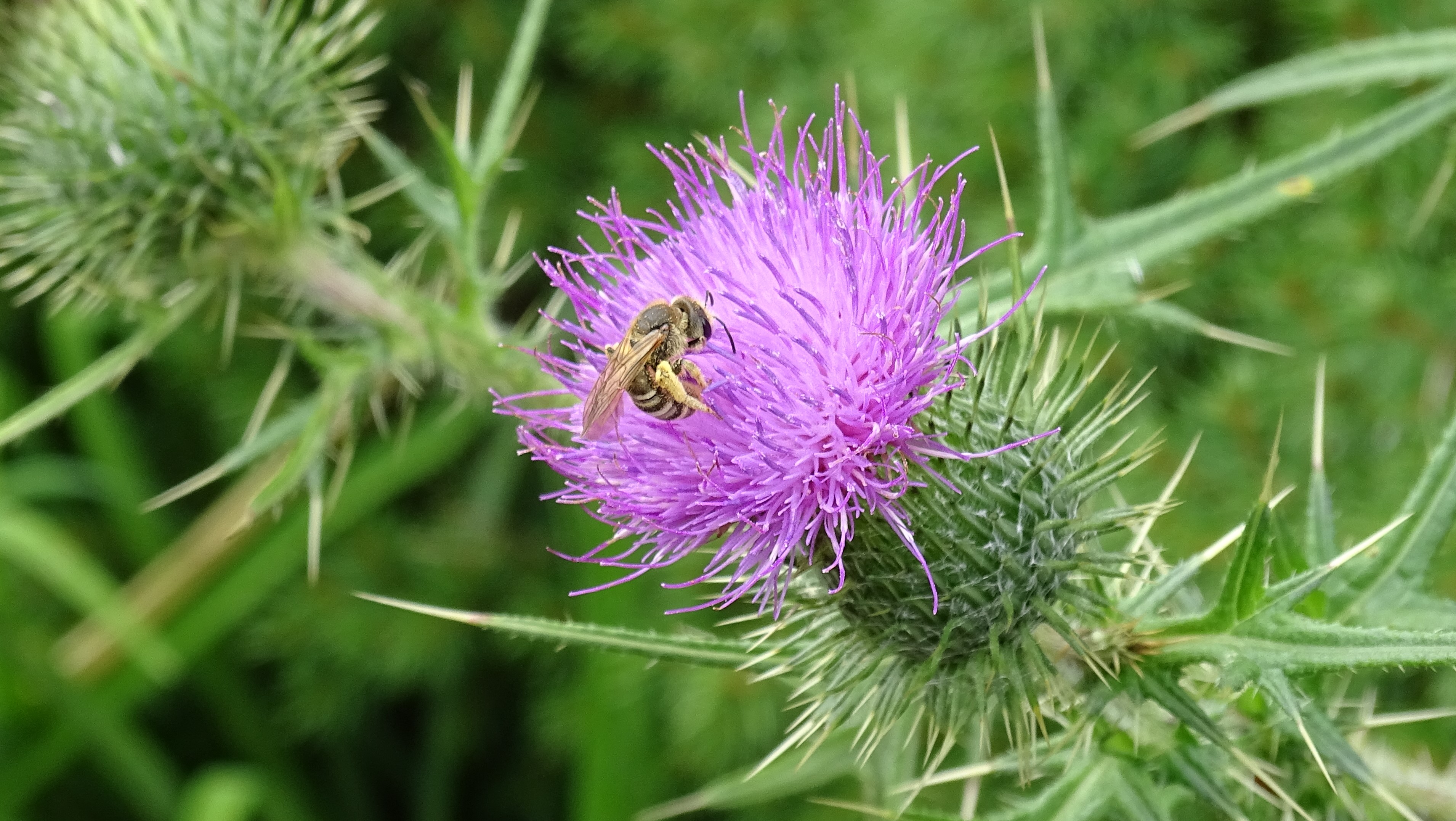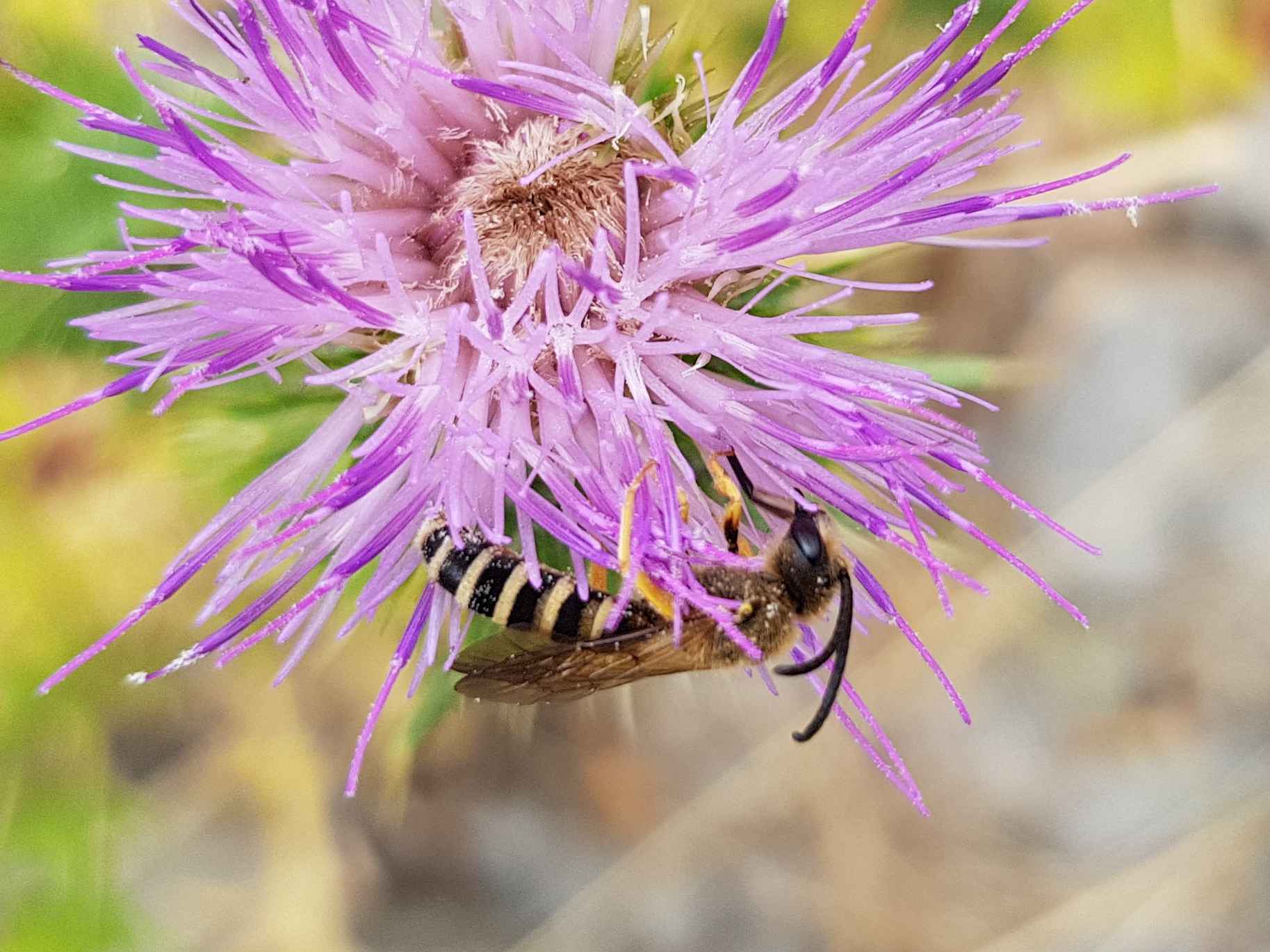 Gelbbindige Furchenbiene (Halictus scabiosae (Rossi, 1790)),Freital/Wurgwitz,Hammerteich,Wegrand auf Kratzdistel,Sep. 2019