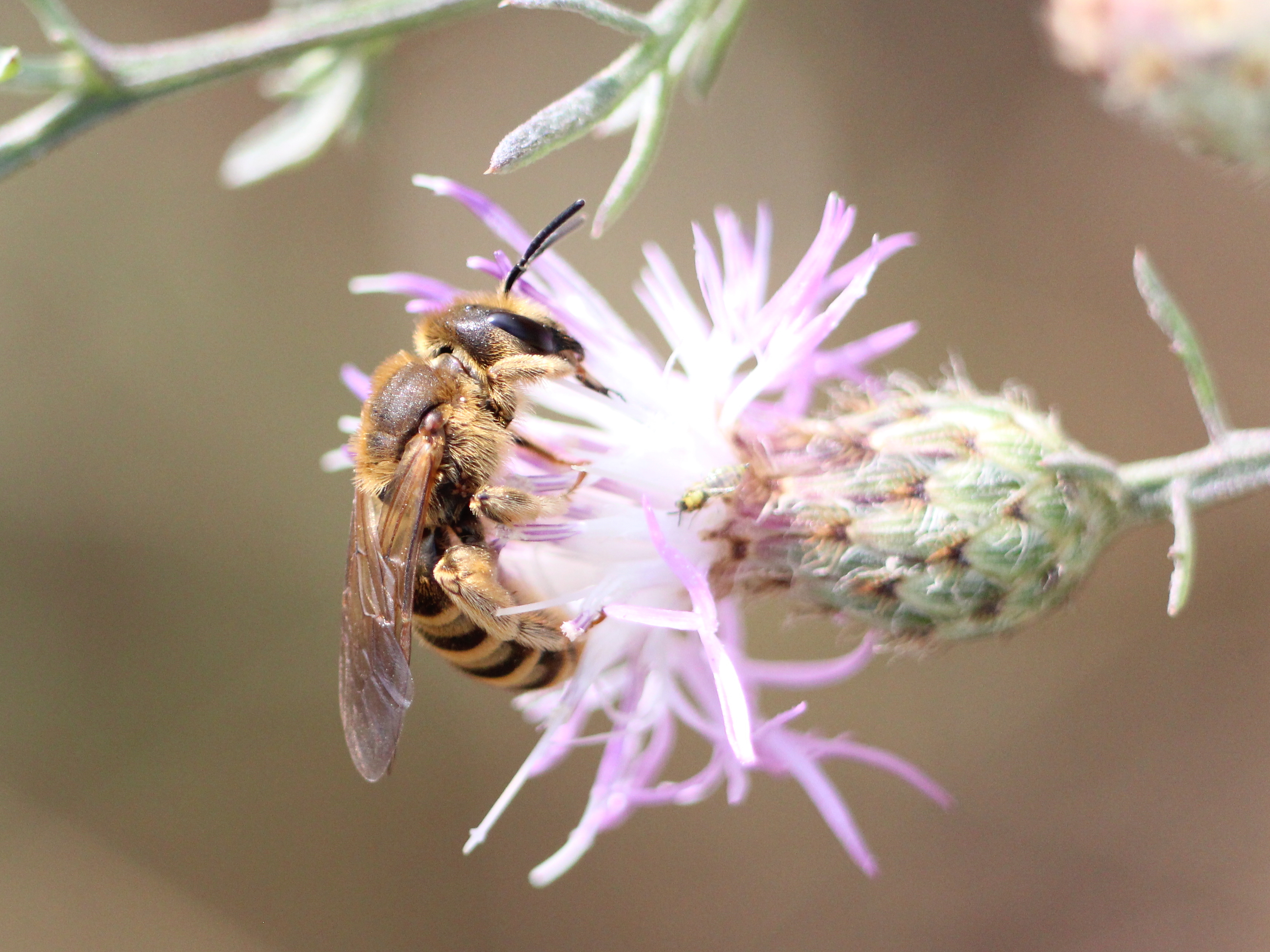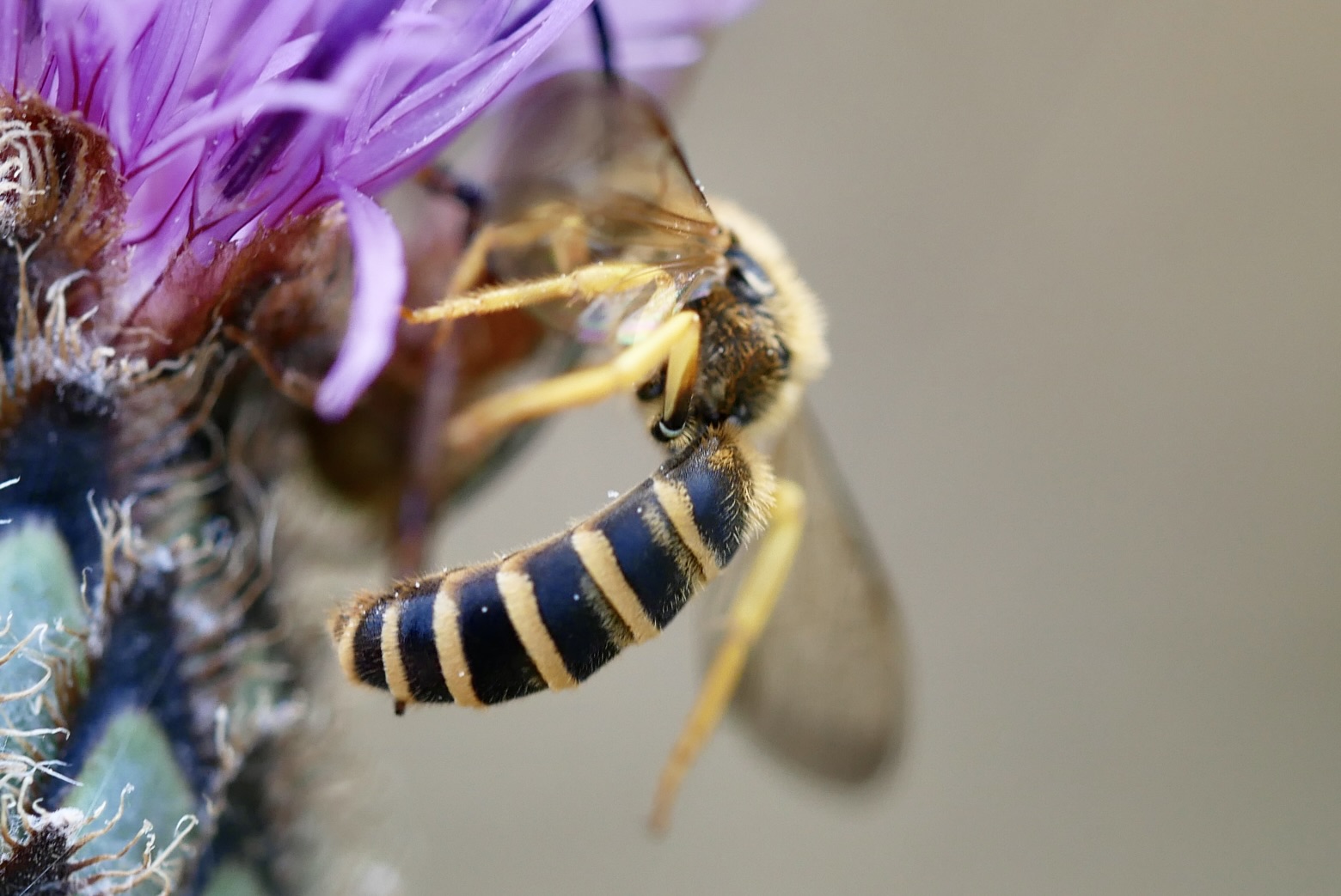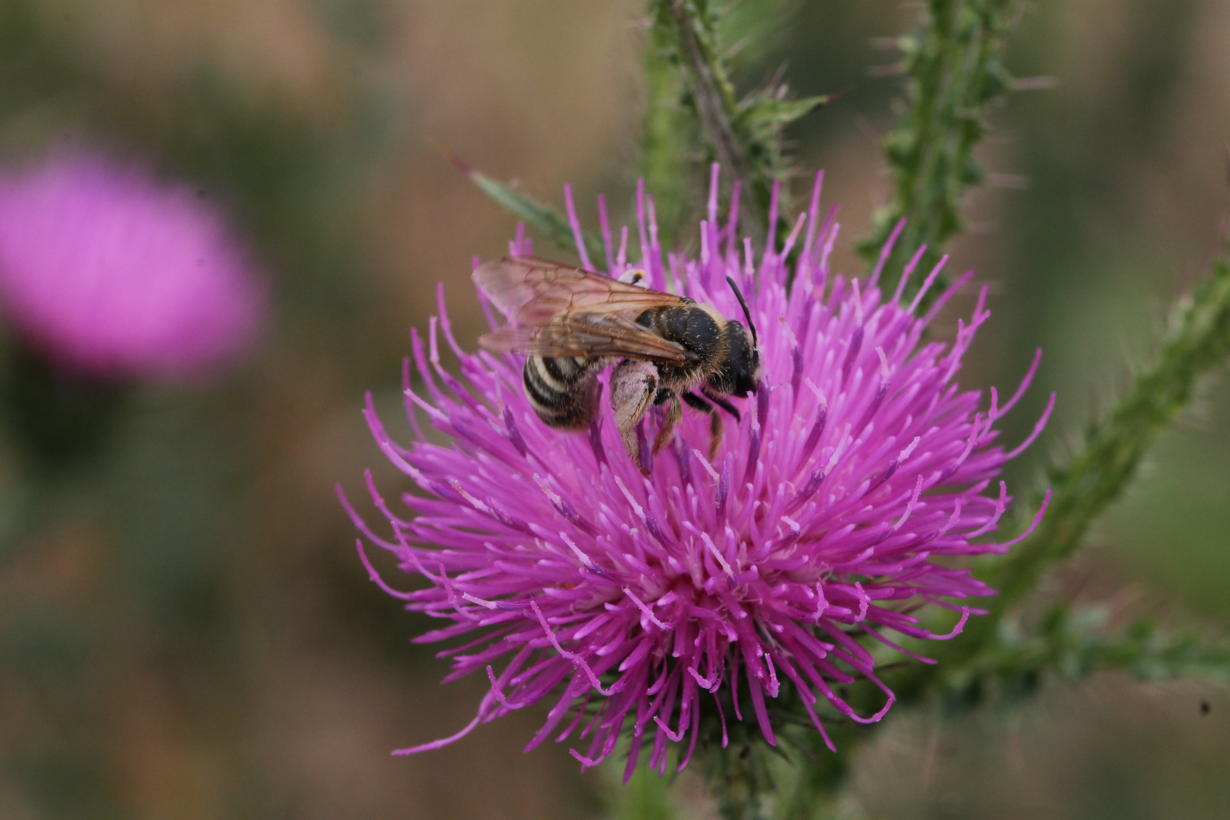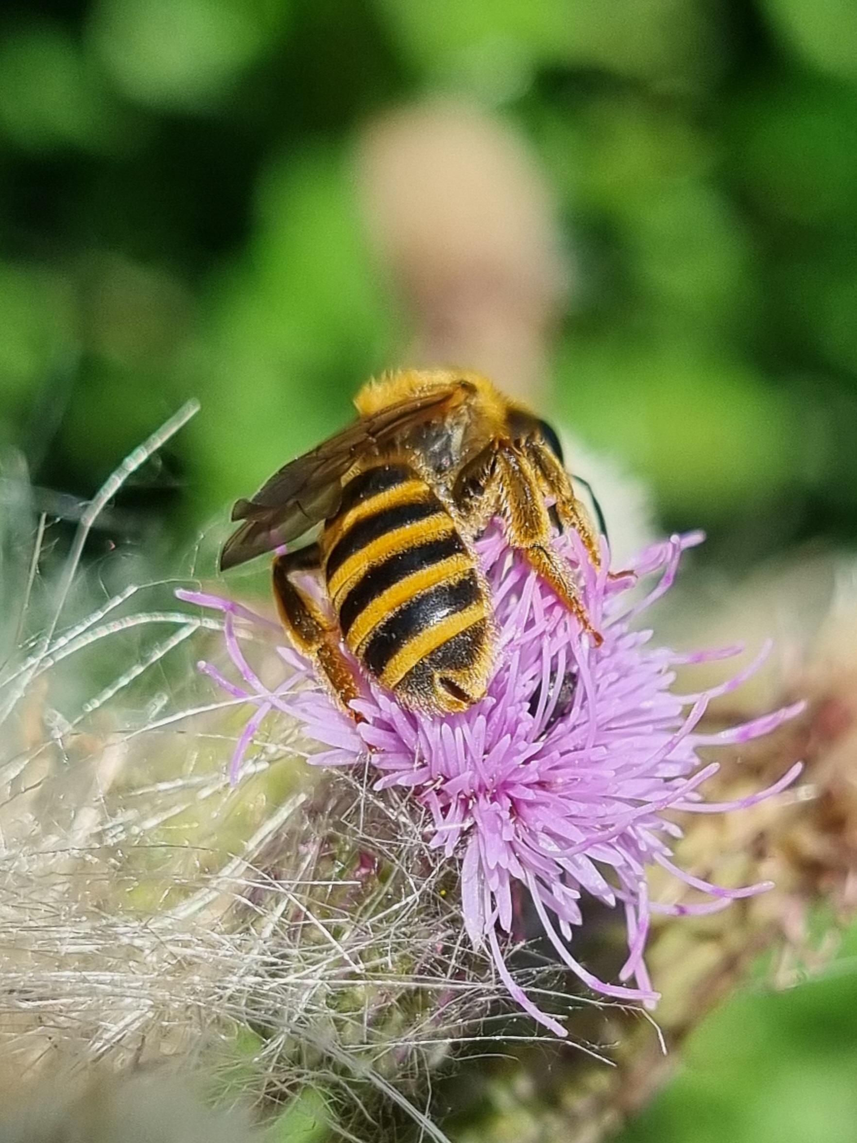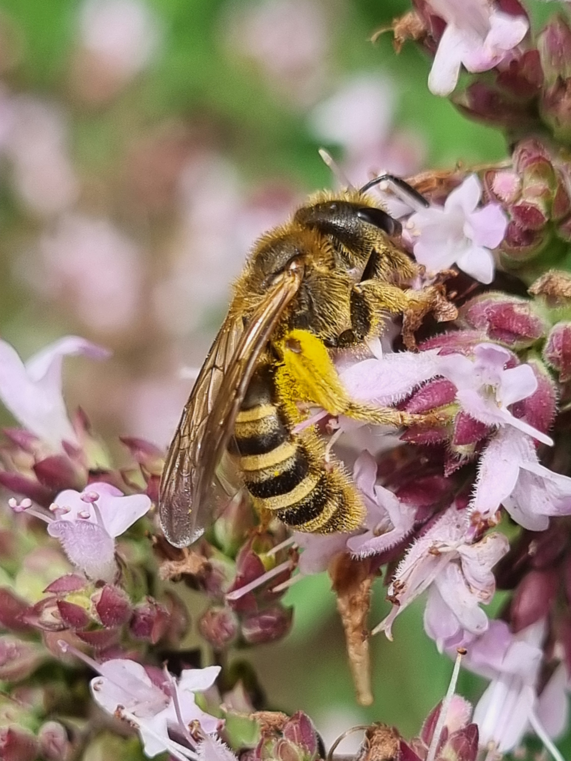 Gelbbindige Furchenbiene (Halictus scabiosae (Rossi, 1790)),Freital/Wurgwitz,Hammerteich,Wegrand auf Kratzdistel,Sep. 2019