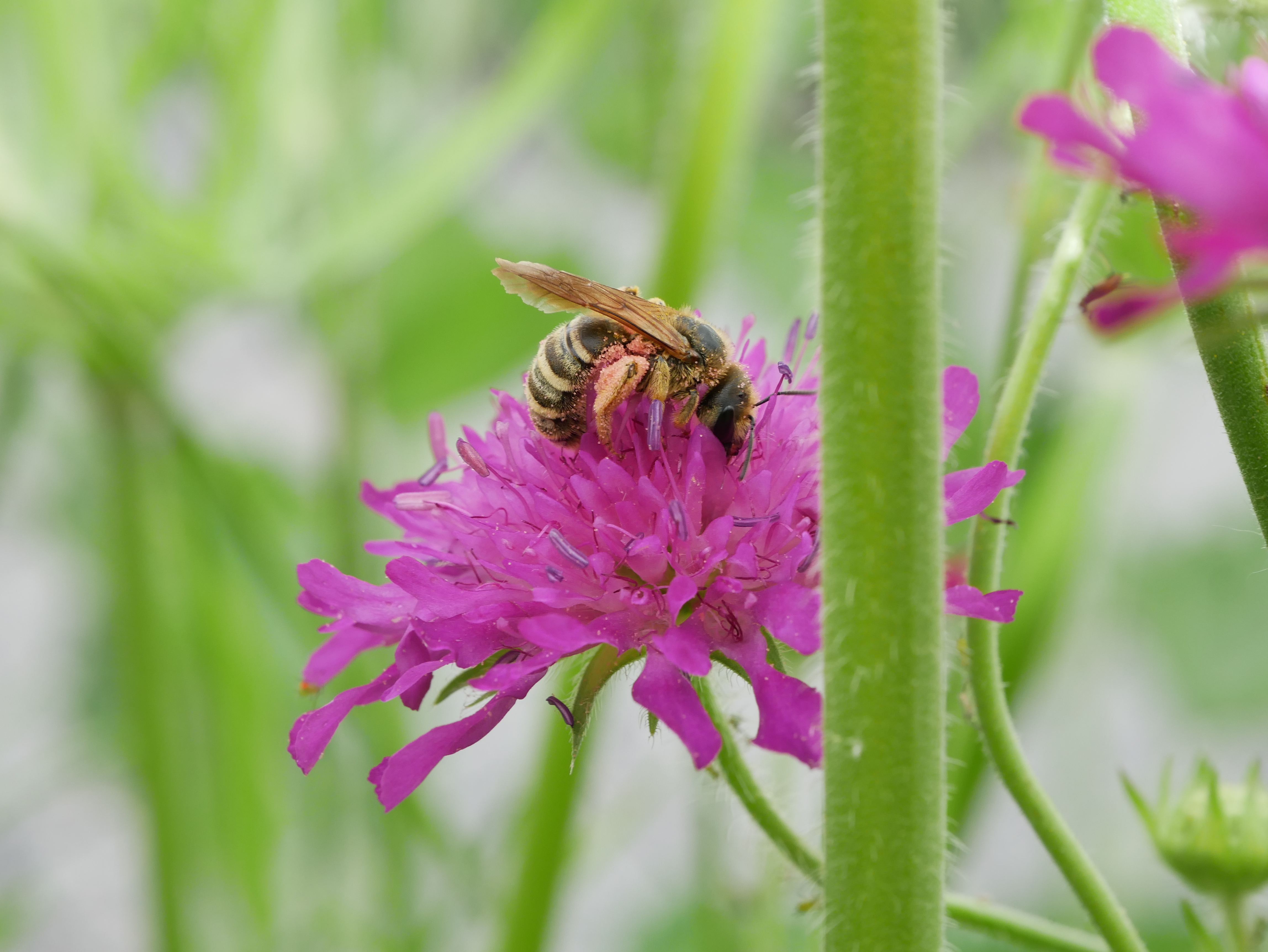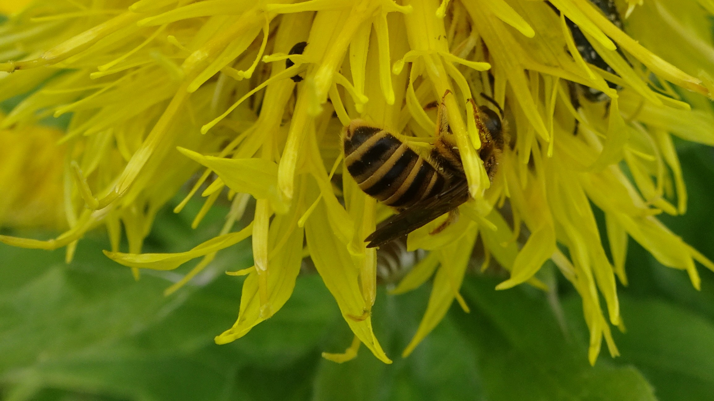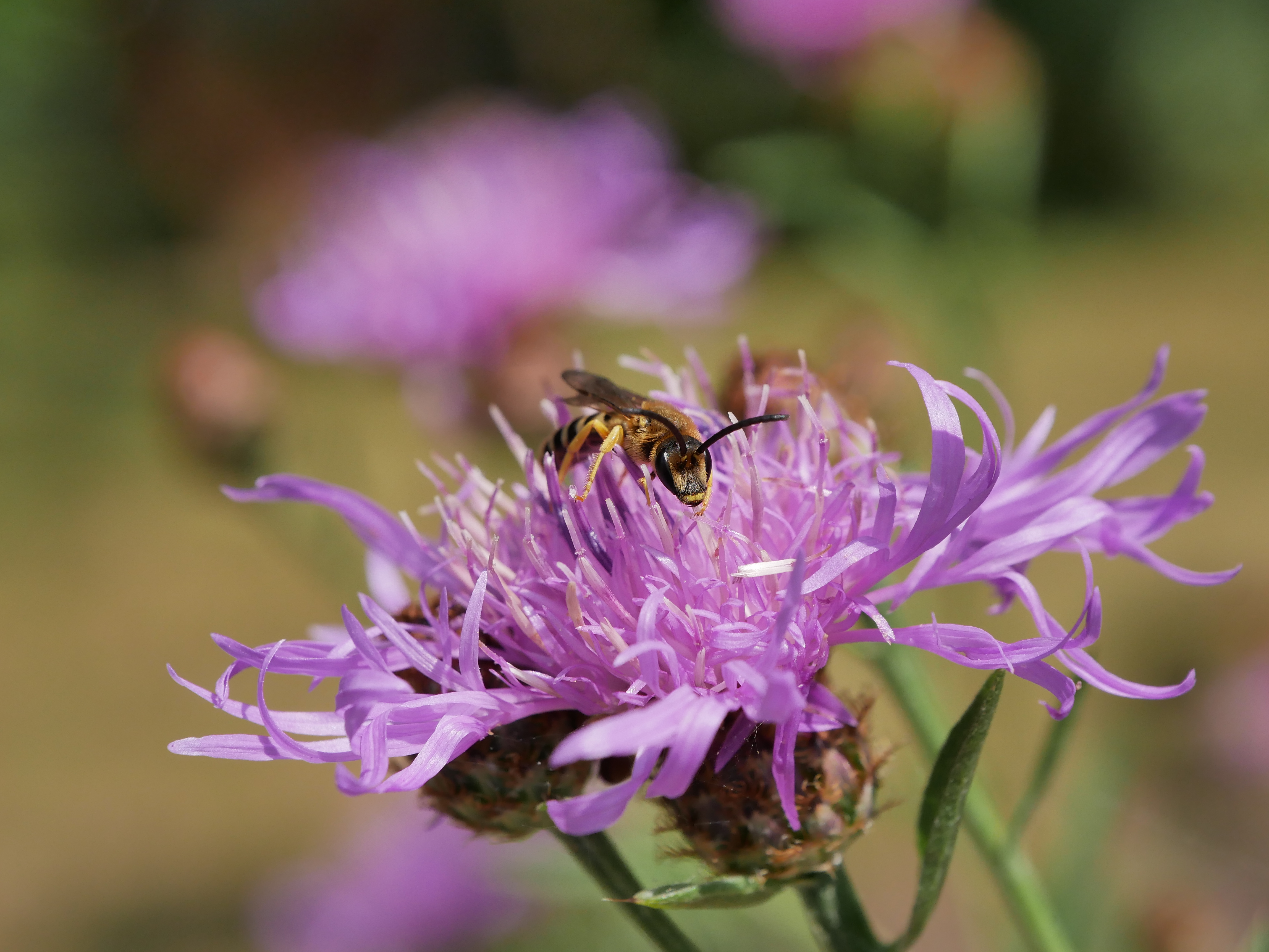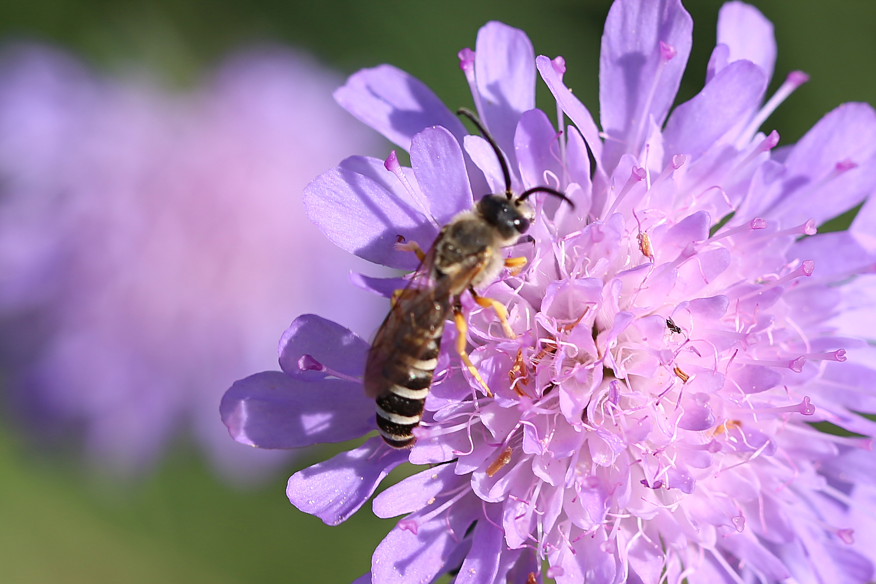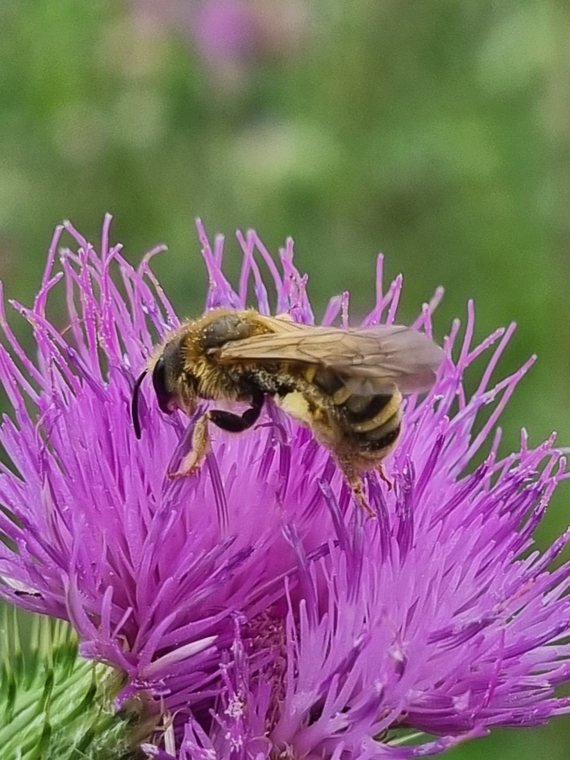 Gelbbindige Furchenbiene (Halictus scabiosae (Rossi, 1790)),Freital/Wurgwitz,Hammerteich,Wegrand auf Kratzdistel,Sep. 2019