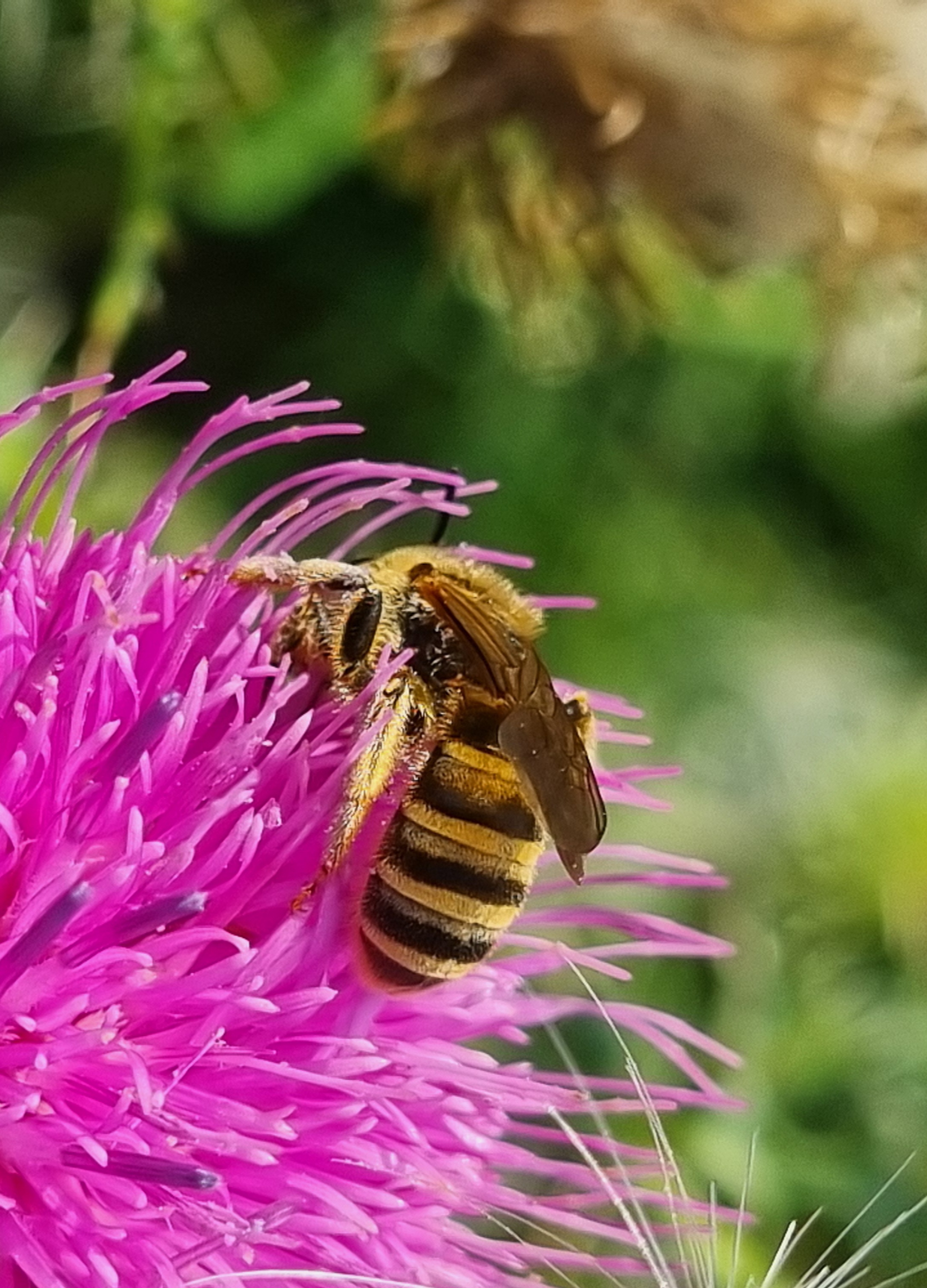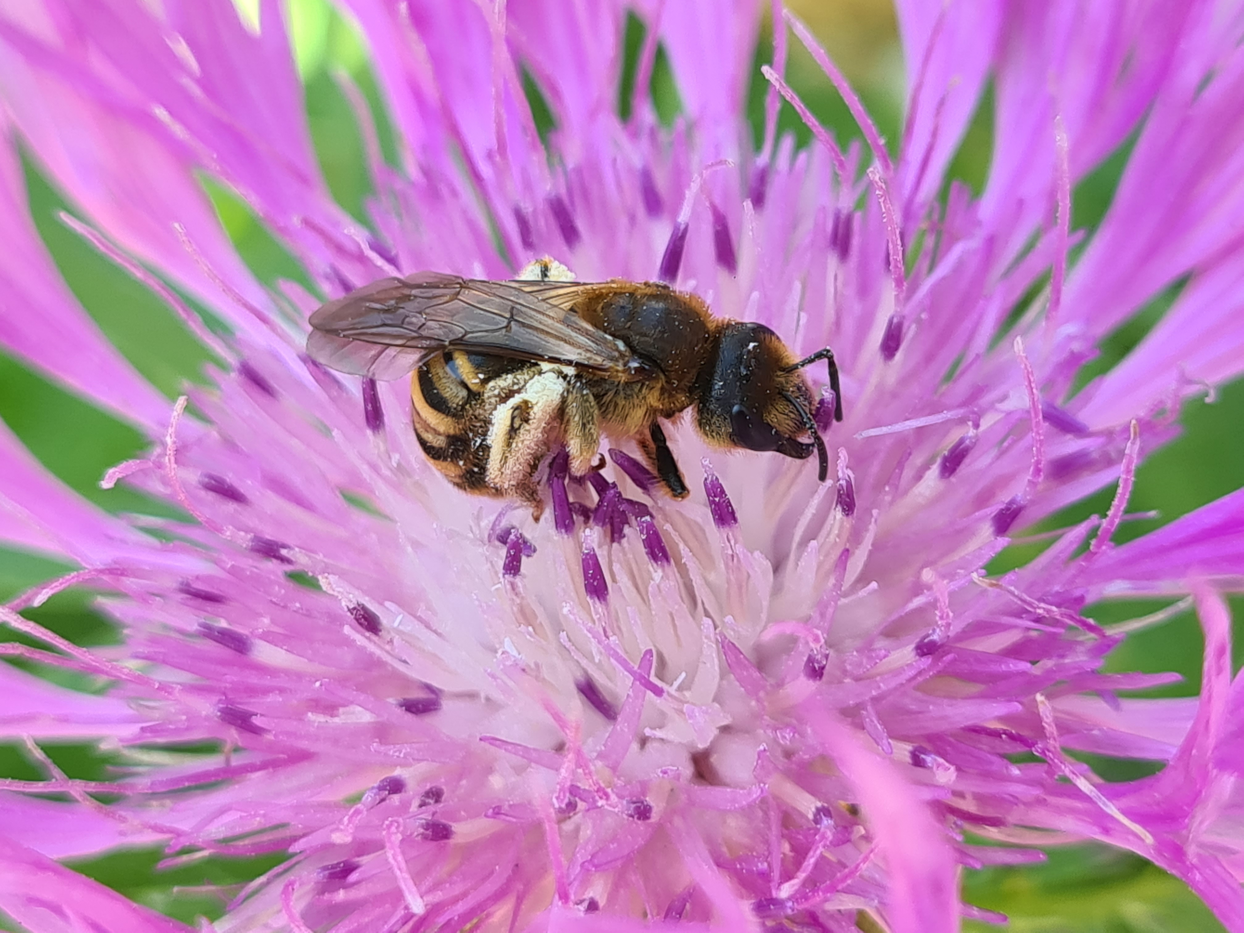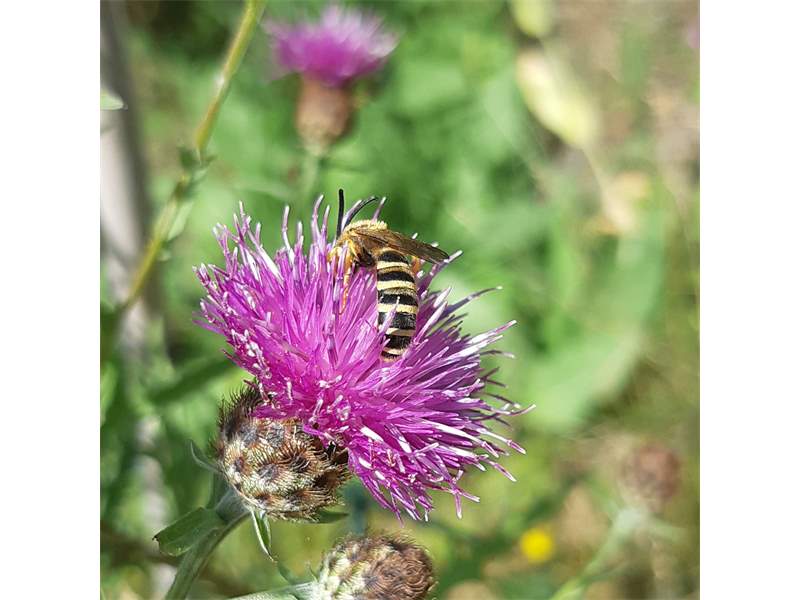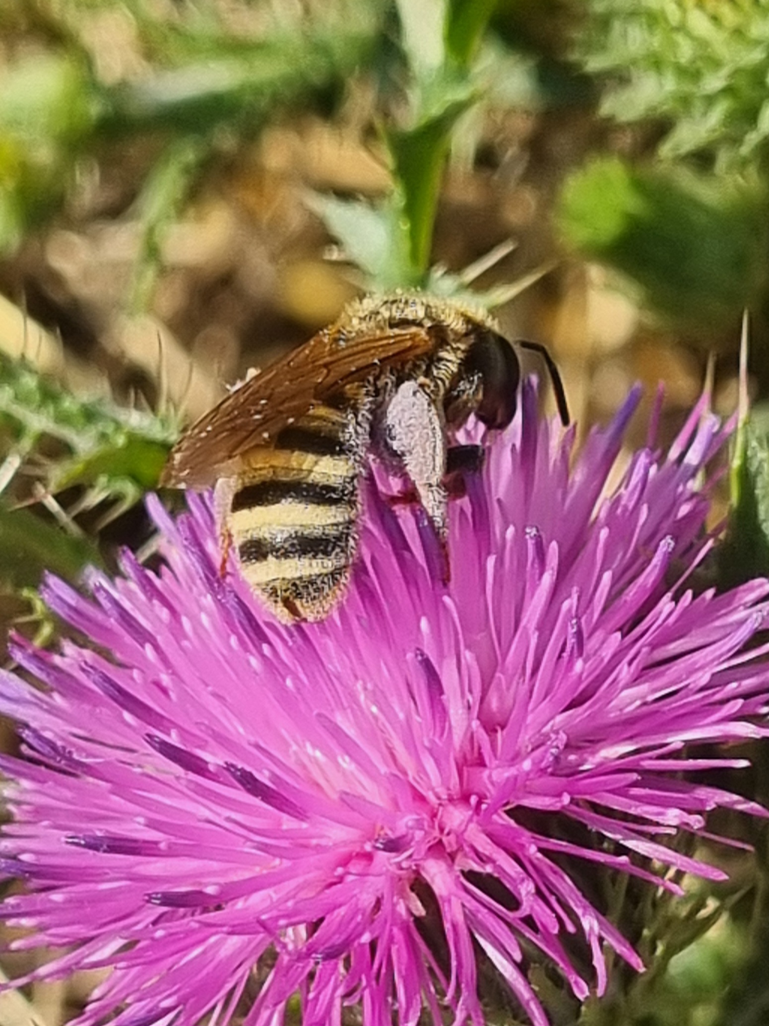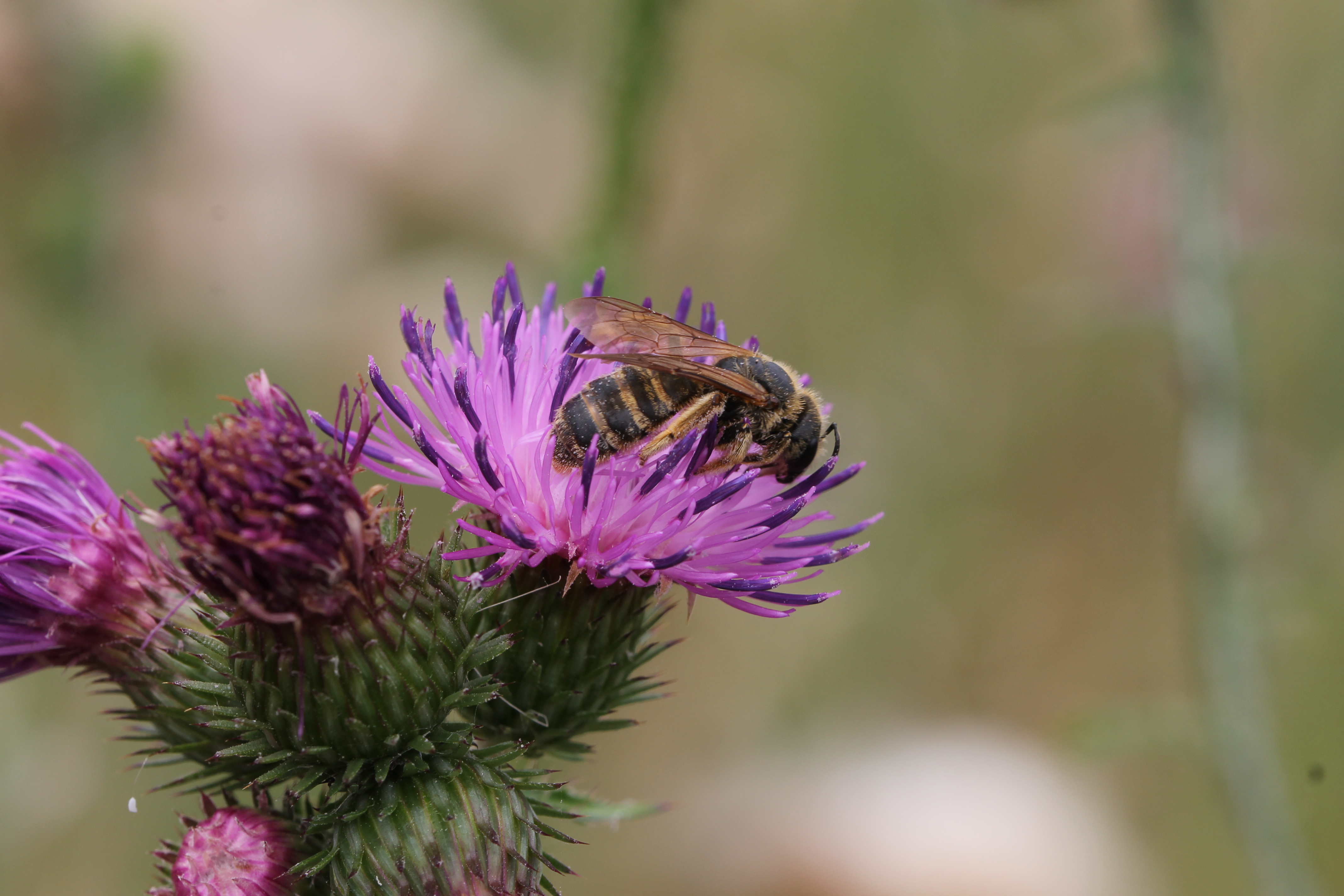 Gelbbindige Furchenbiene (Halictus scabiosae (Rossi, 1790)),Freital/Wurgwitz,Hammerteich,Wegrand auf Kratzdistel,Sep. 2019