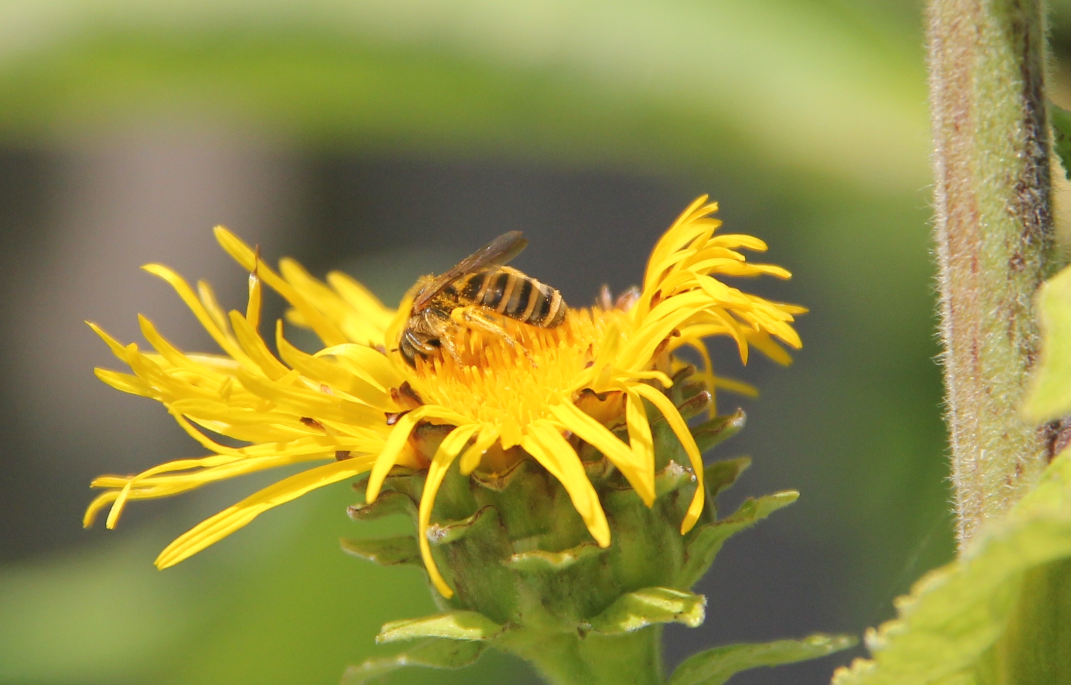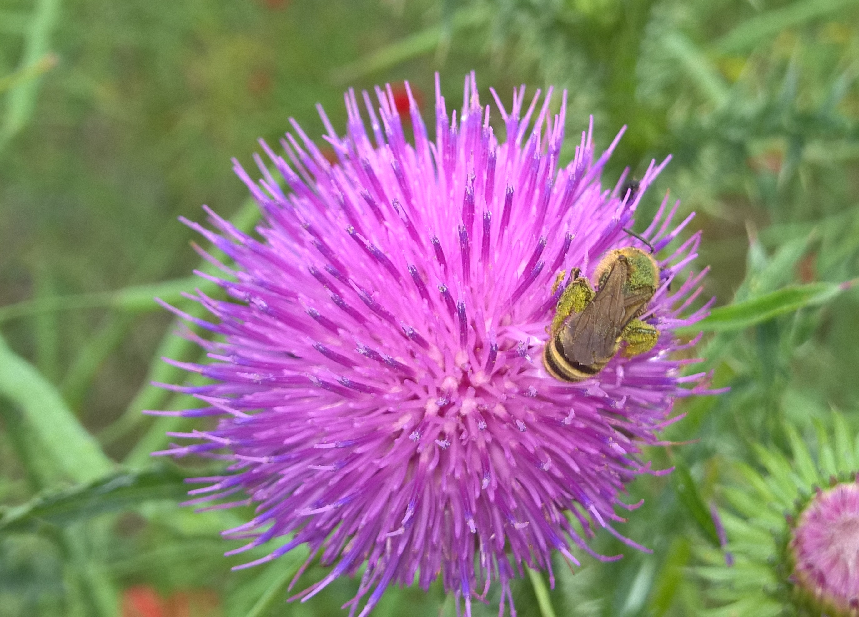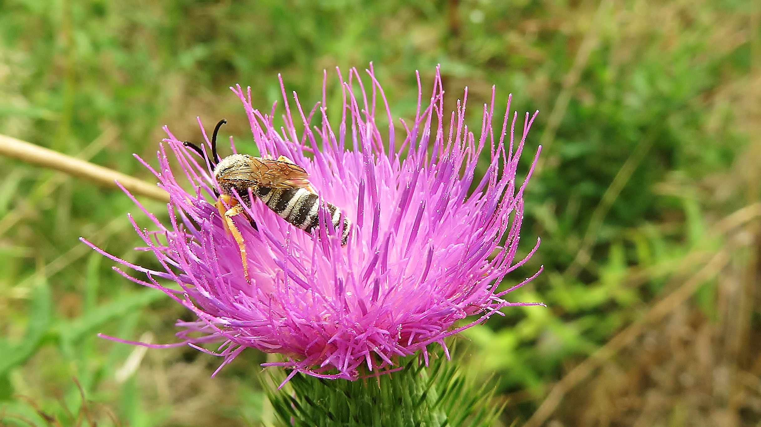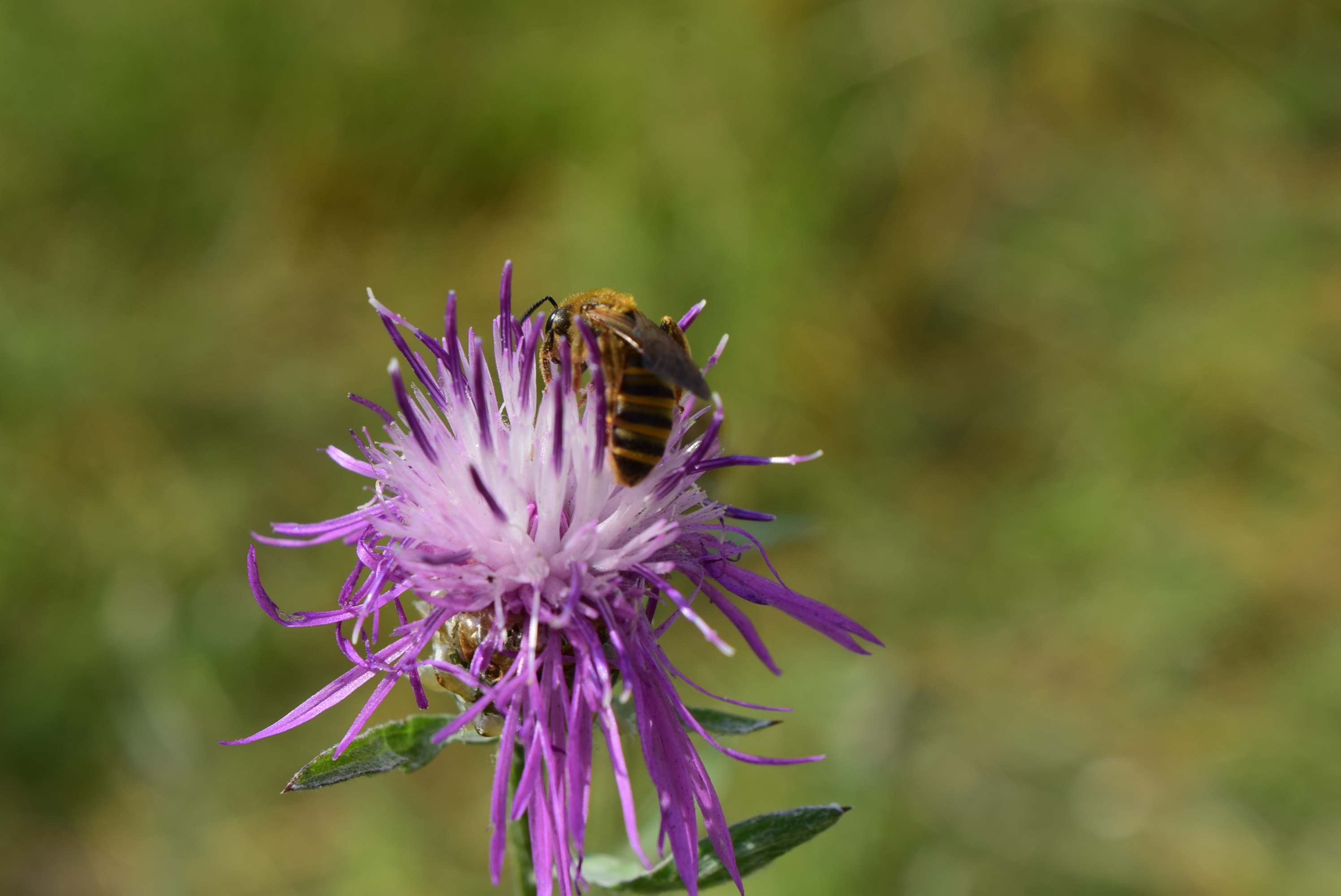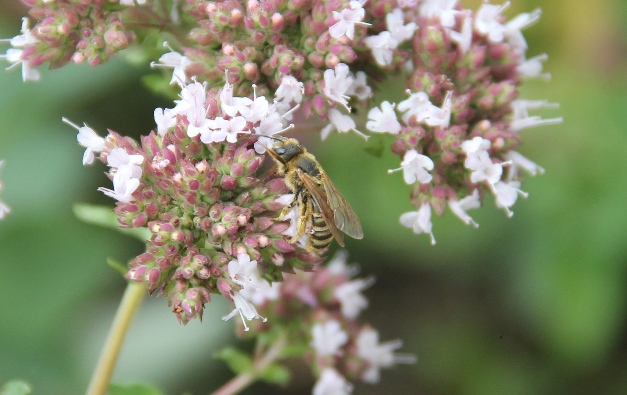 Gelbbindige Furchenbiene (Halictus scabiosae (Rossi, 1790)),Freital/Wurgwitz,Hammerteich,Wegrand auf Kratzdistel,Sep. 2019