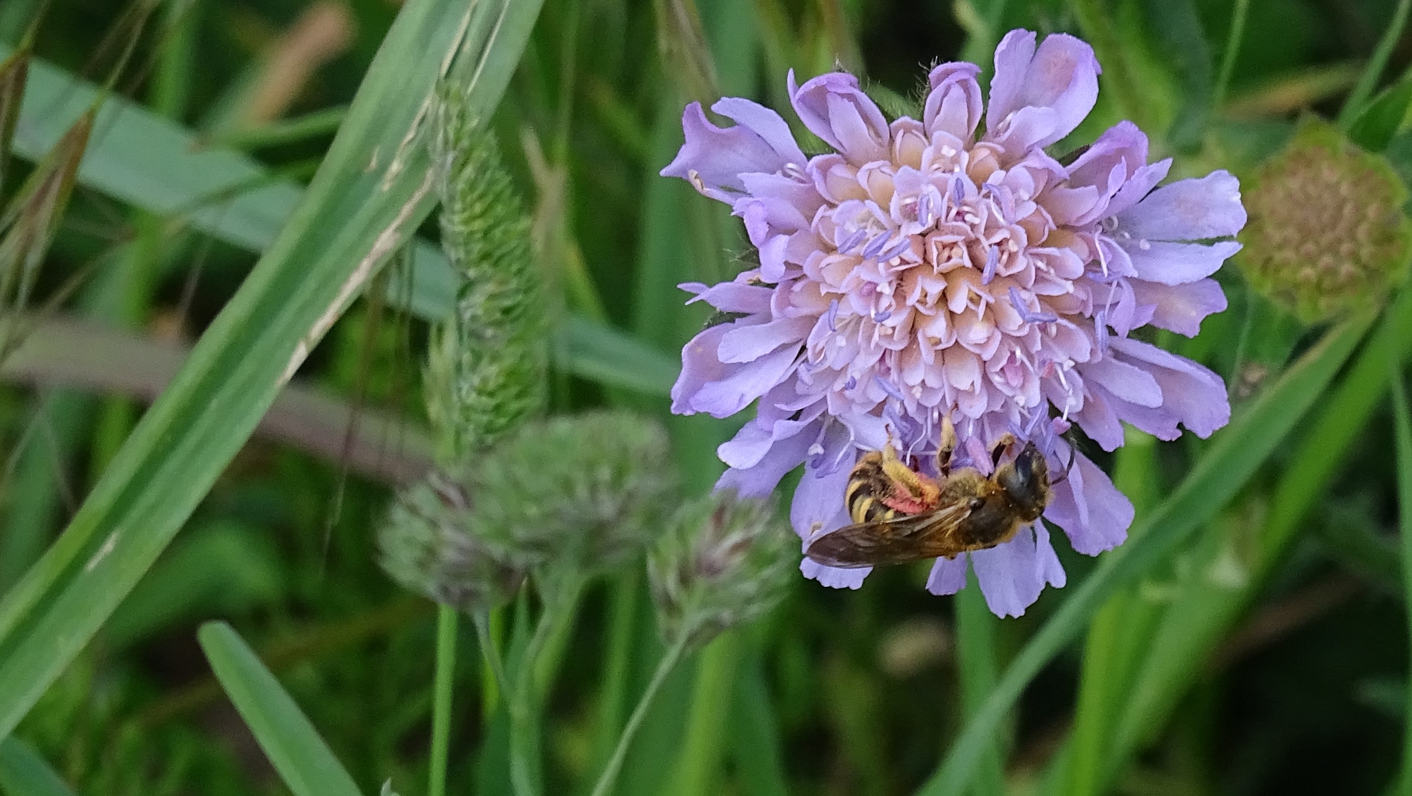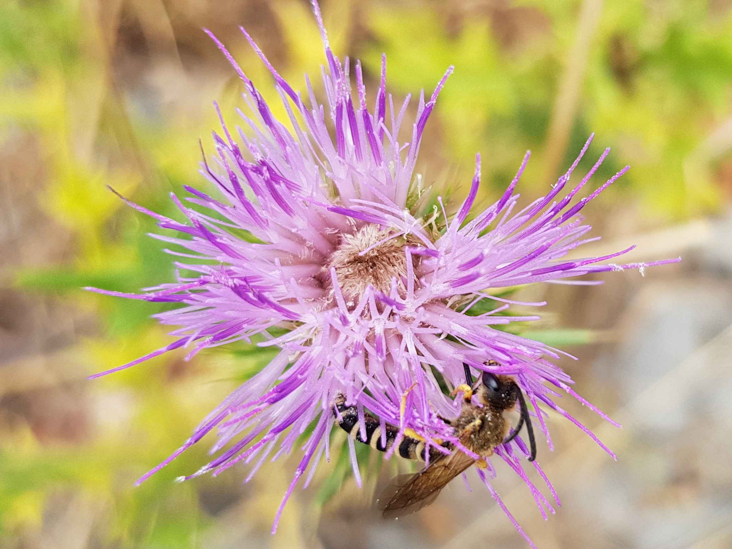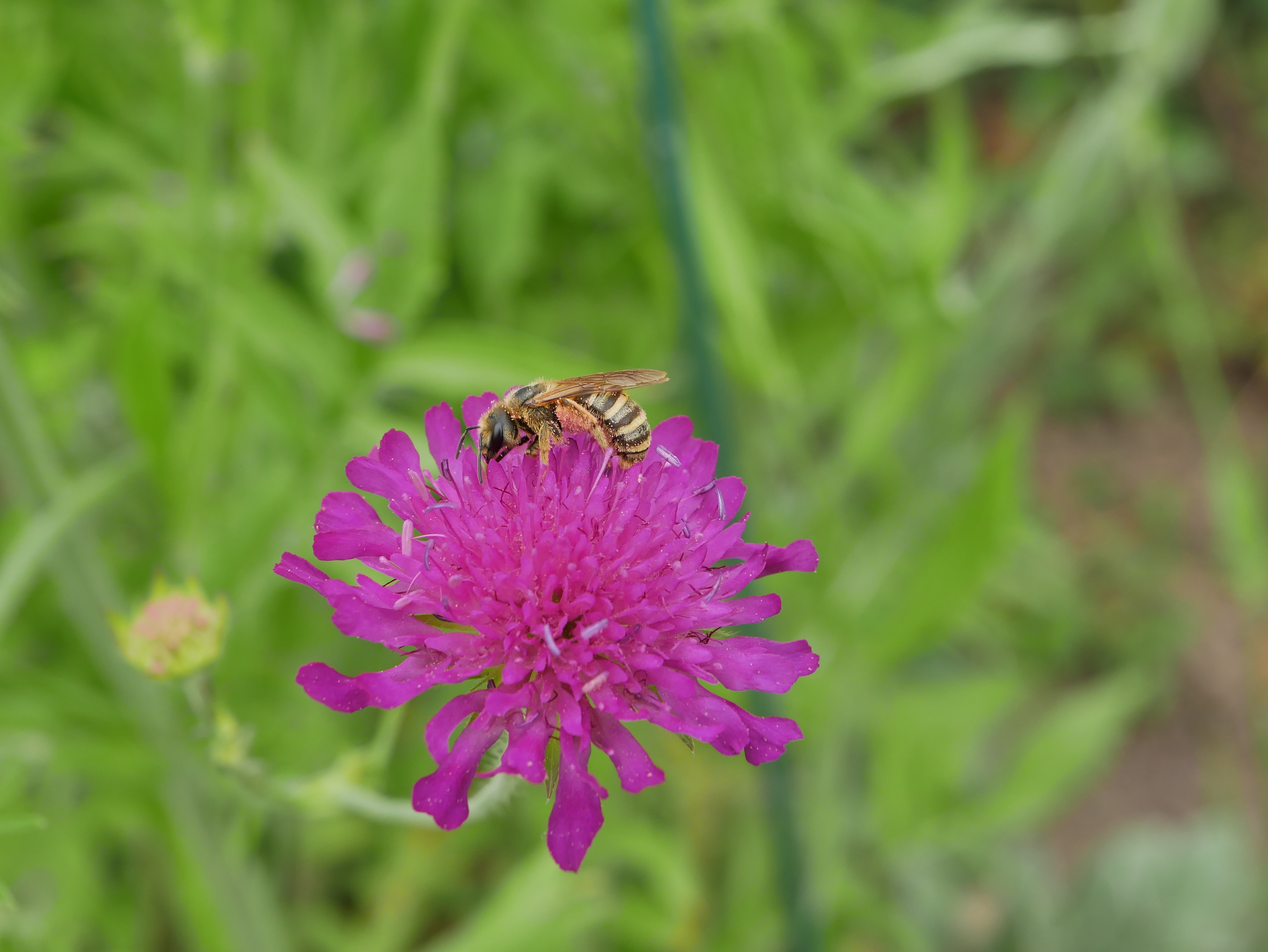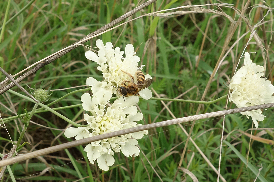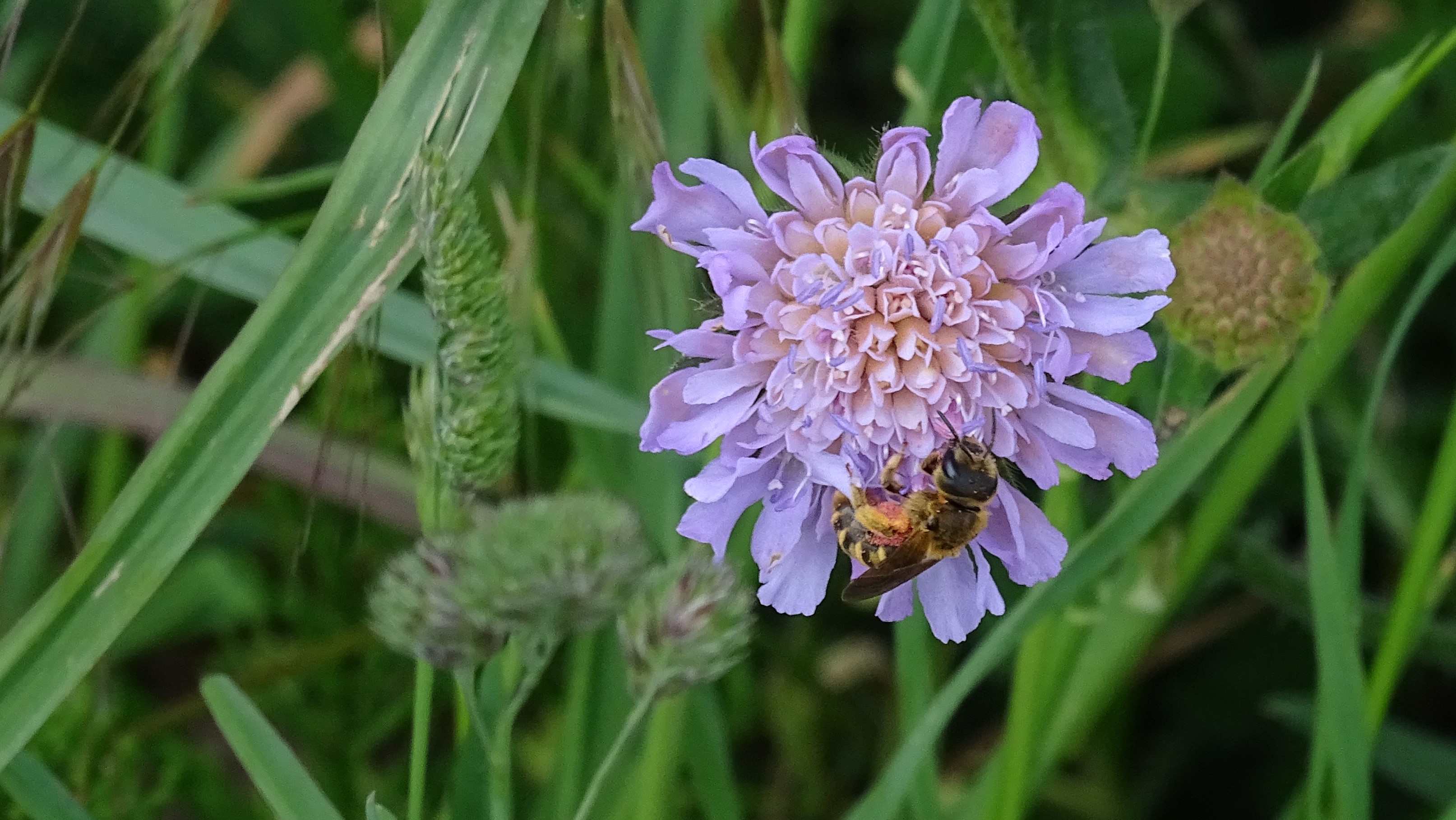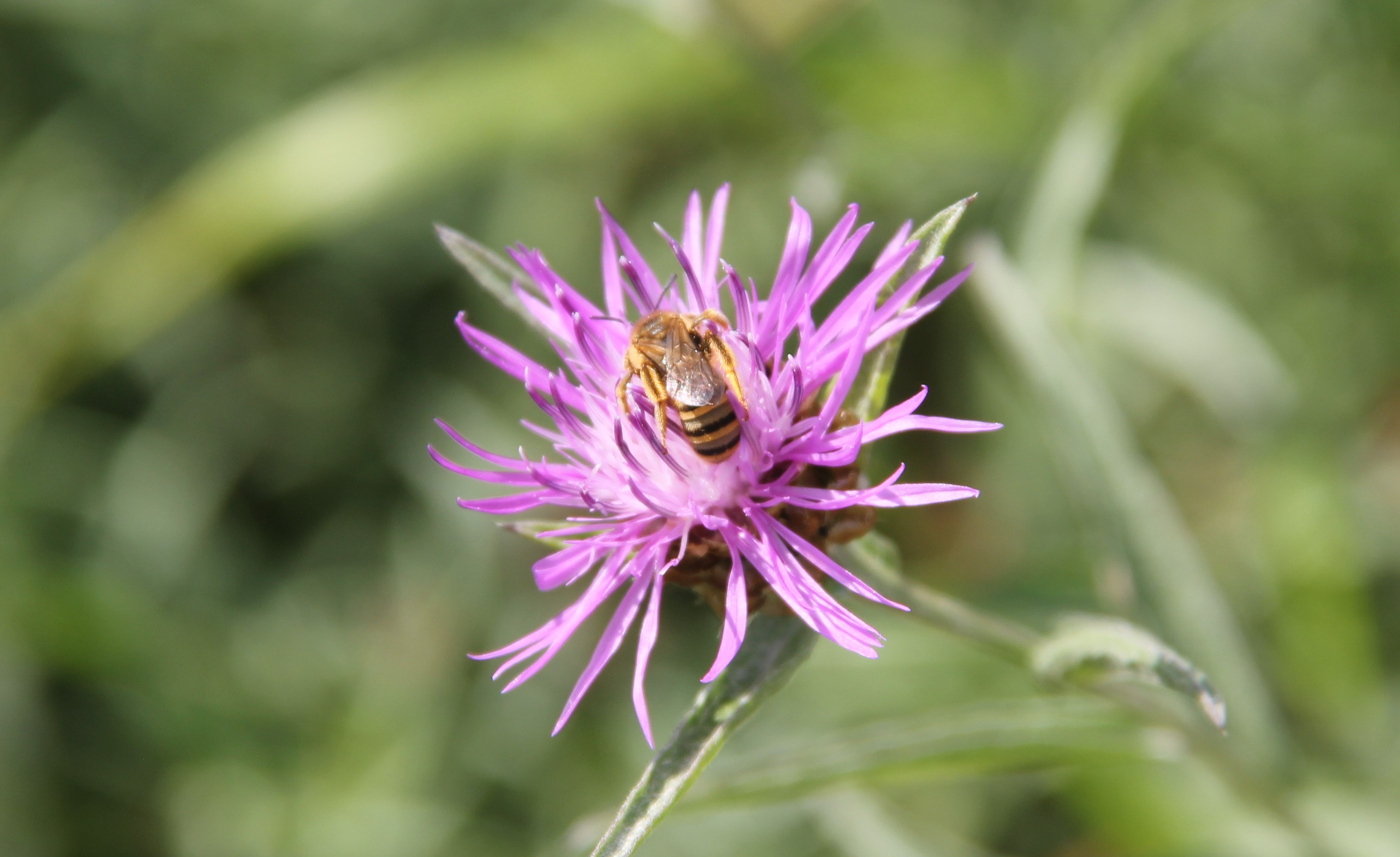 Gelbbindige Furchenbiene (Halictus scabiosae (Rossi, 1790)),Freital/Wurgwitz,Hammerteich,Wegrand auf Kratzdistel,Sep. 2019