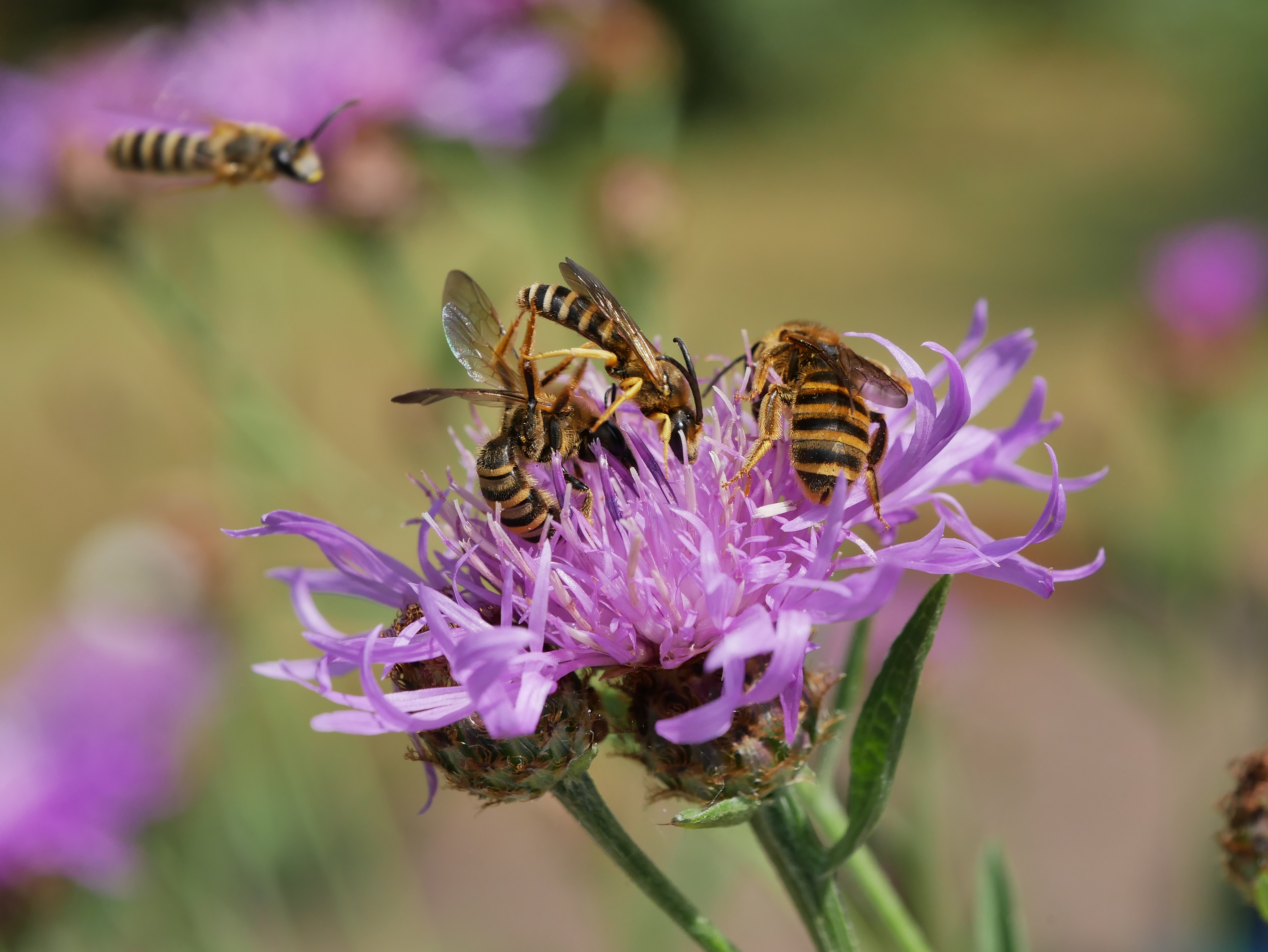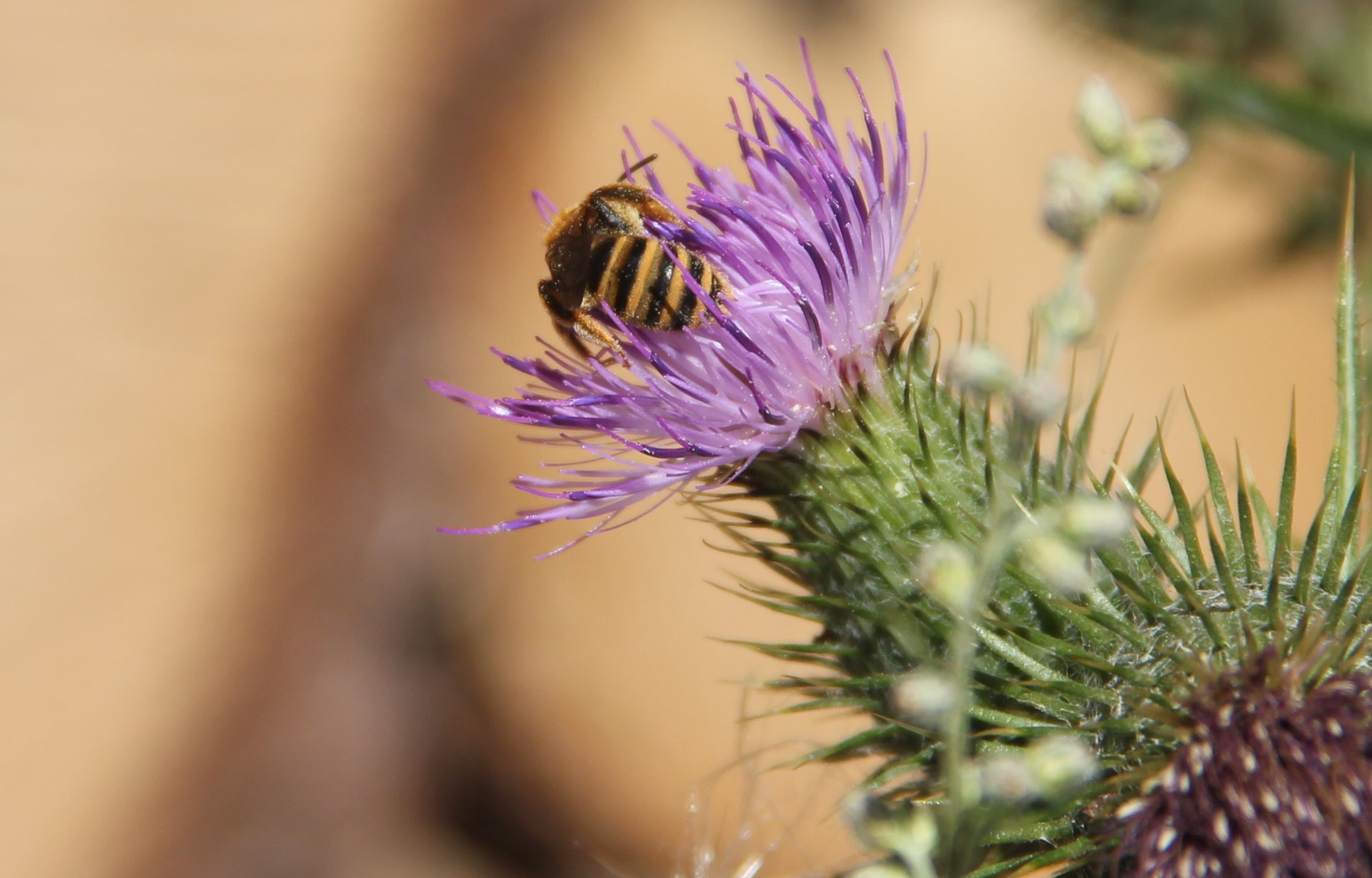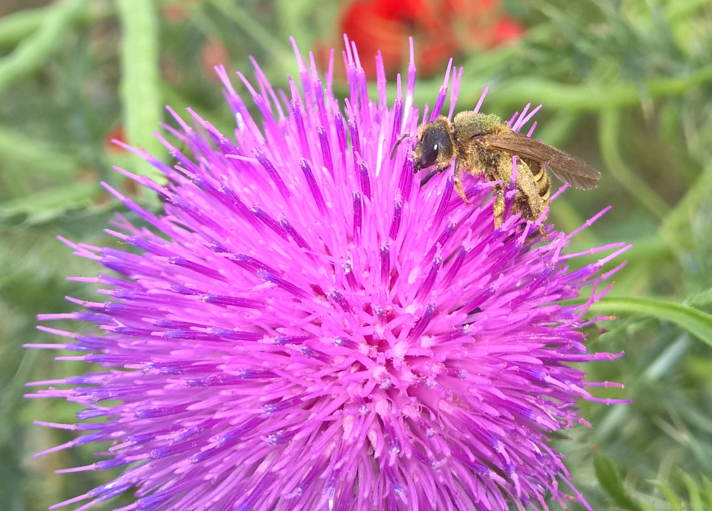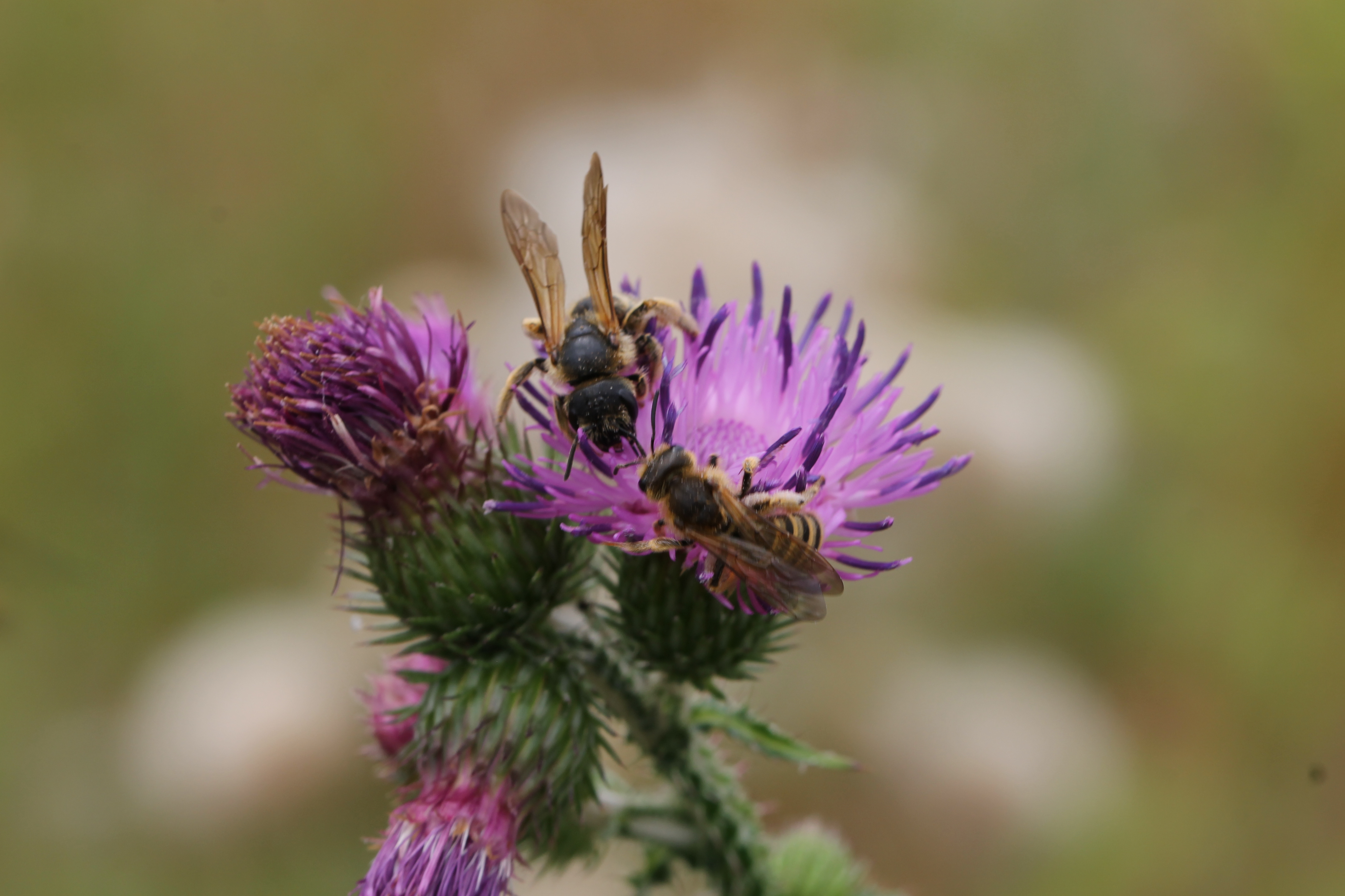 Gelbbindige Furchenbiene (Halictus scabiosae (Rossi, 1790)),Freital/Wurgwitz,Hammerteich,Wegrand auf Kratzdistel,Sep. 2019