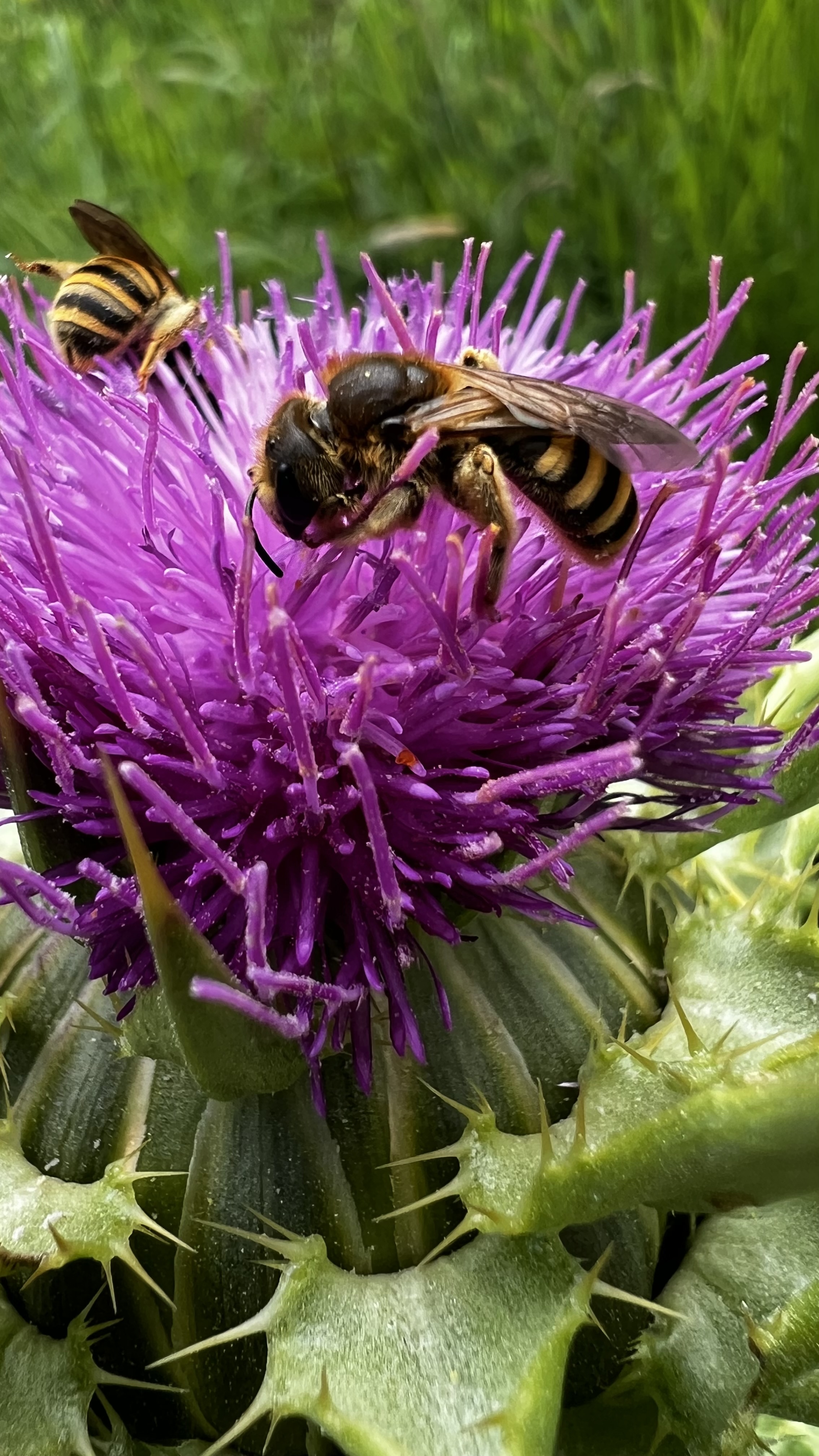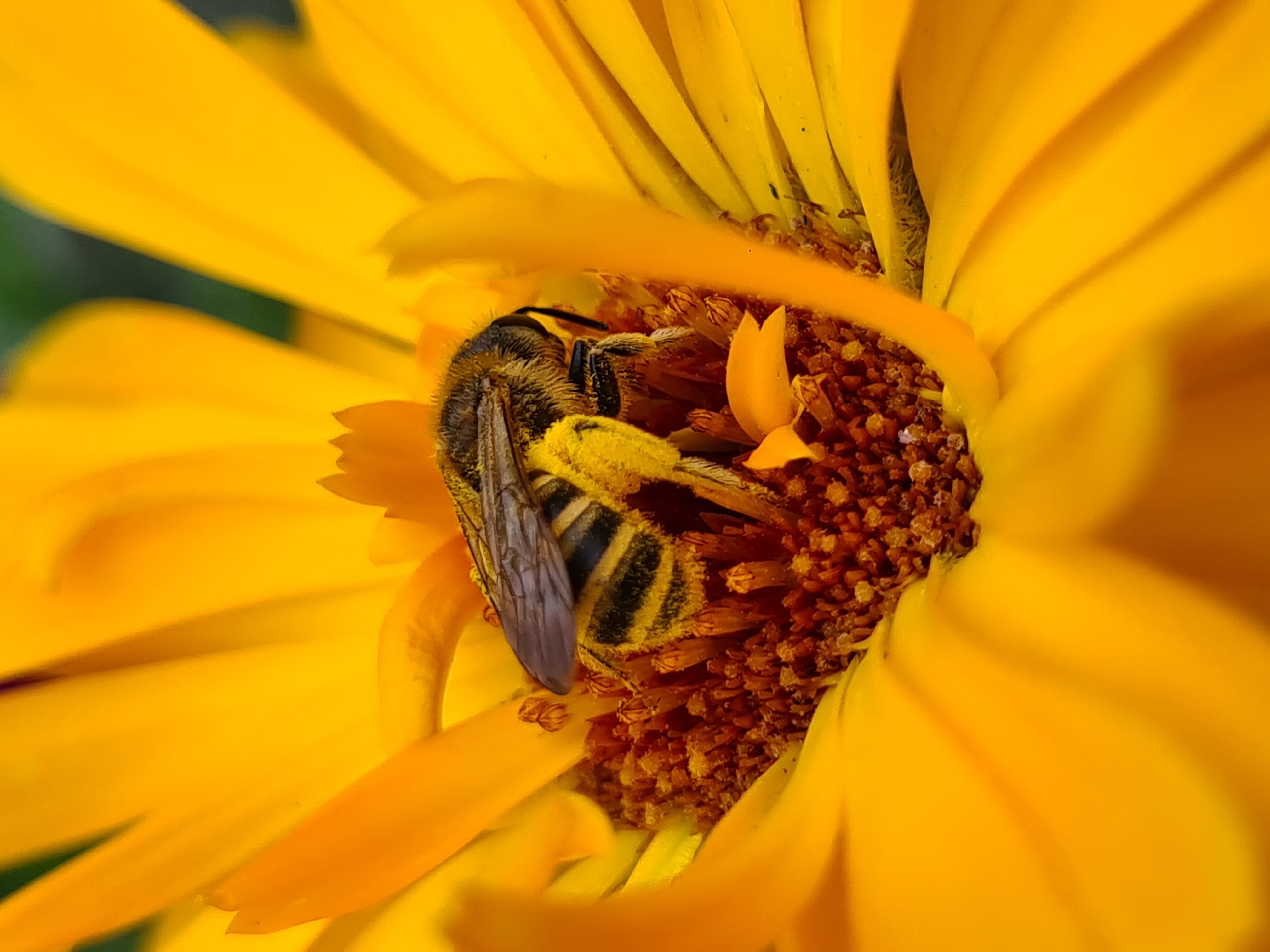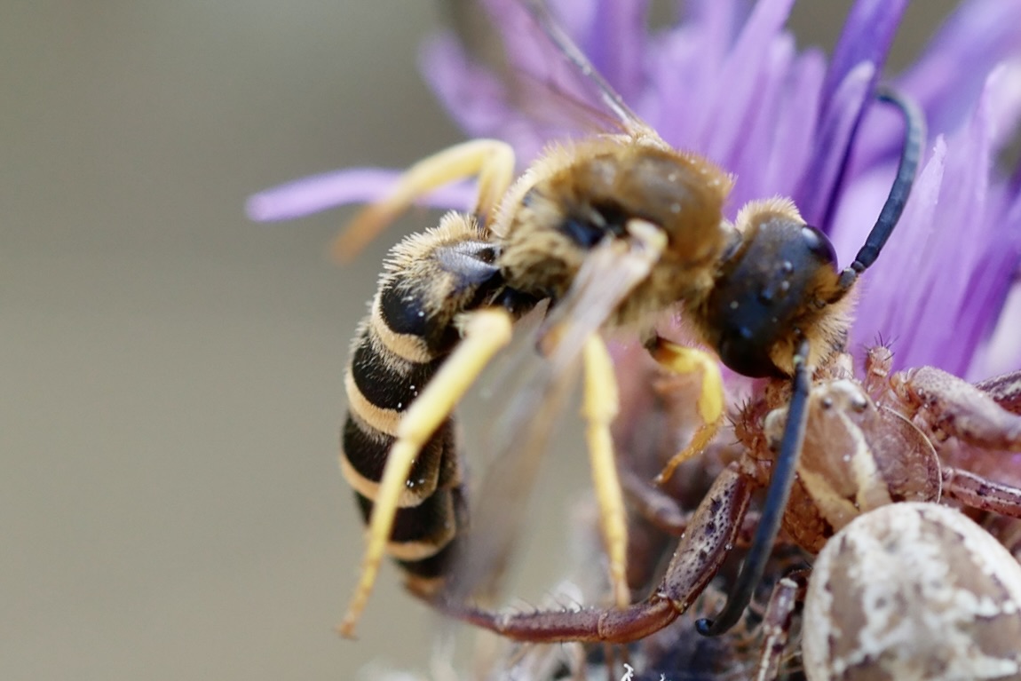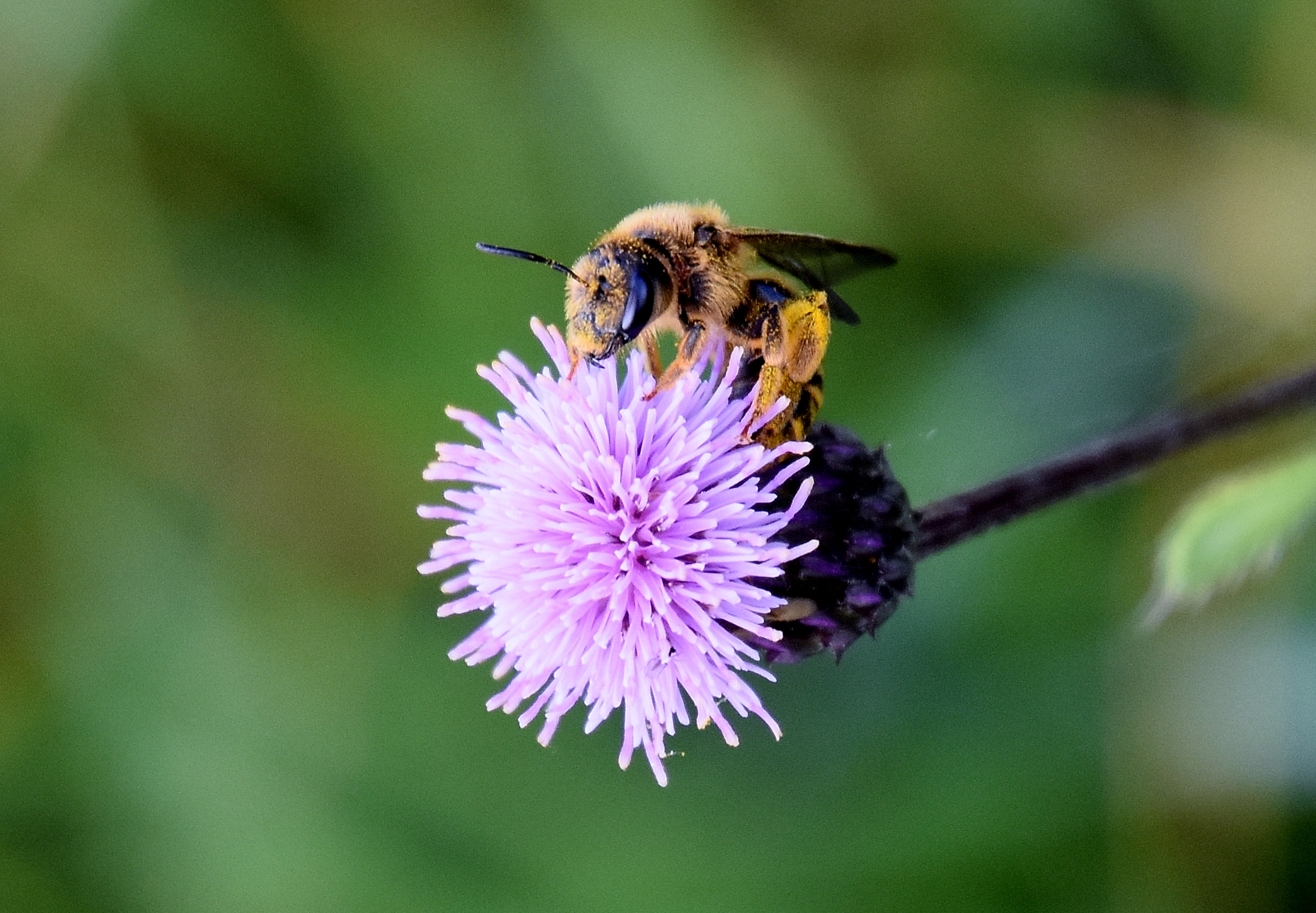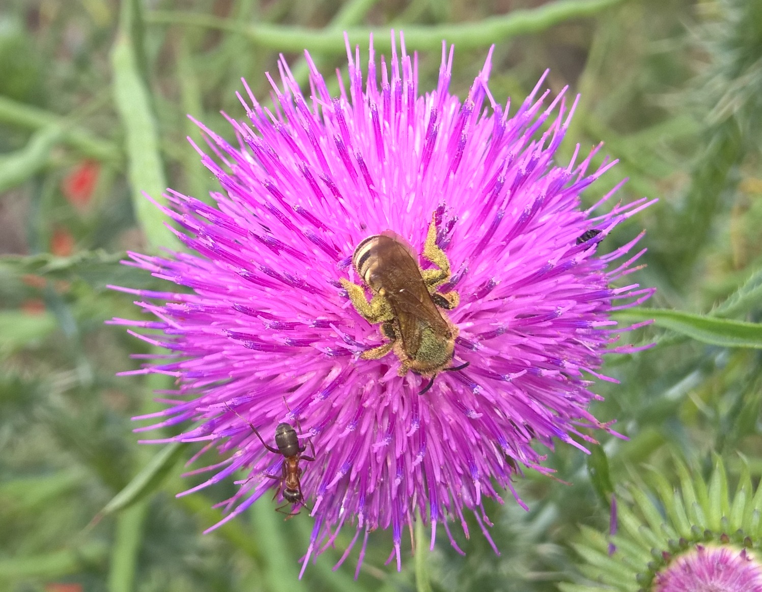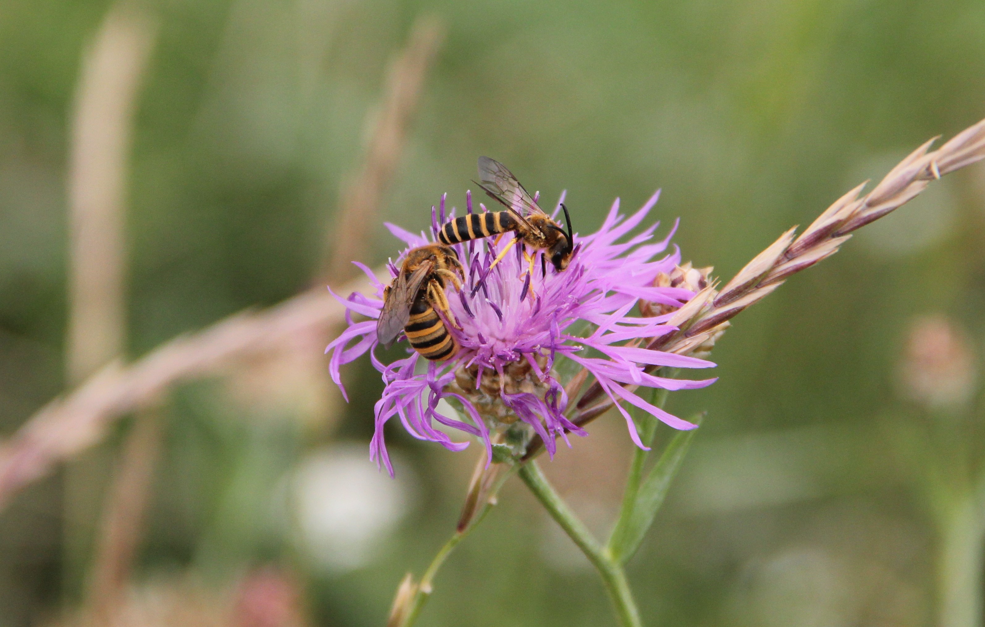 Gelbbindige Furchenbiene (Halictus scabiosae (Rossi, 1790)),Freital/Wurgwitz,Hammerteich,Wegrand auf Kratzdistel,Sep. 2019