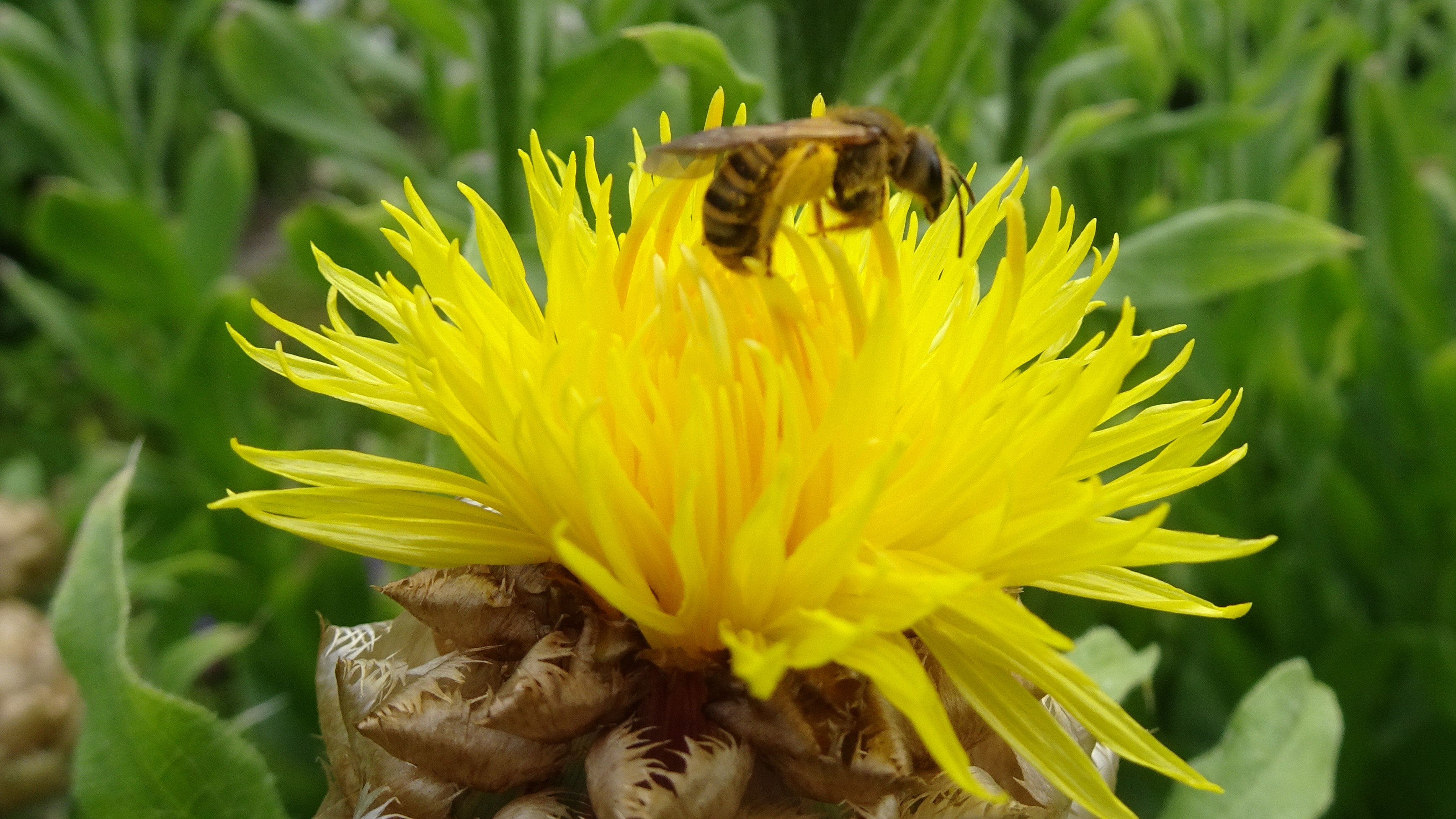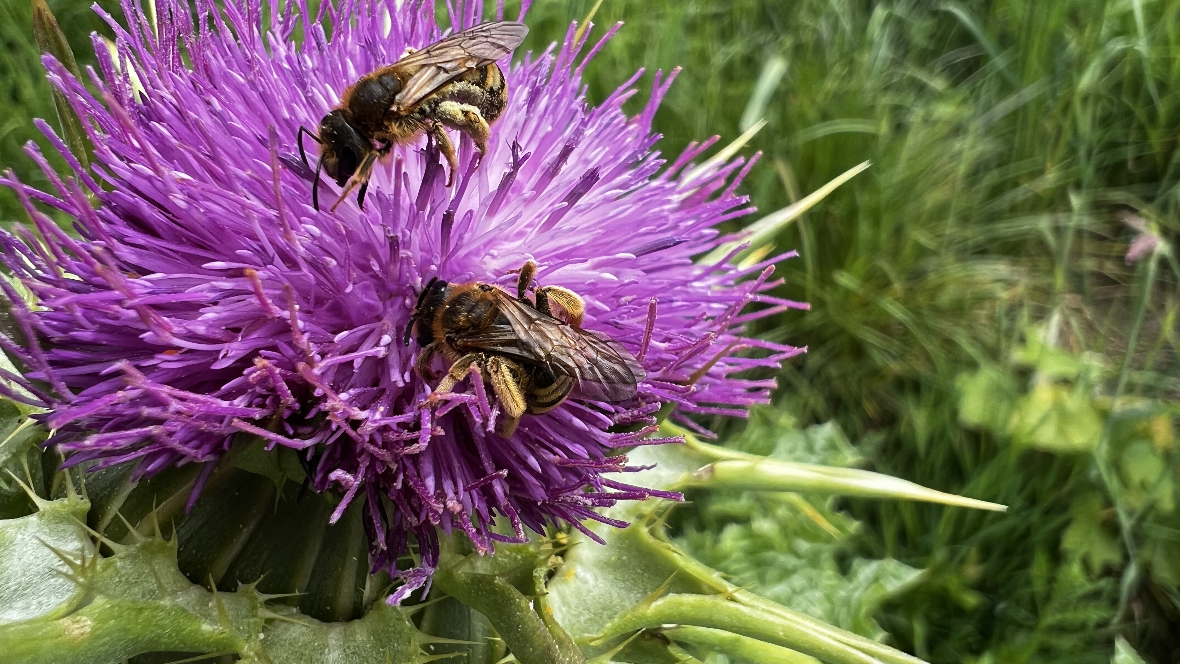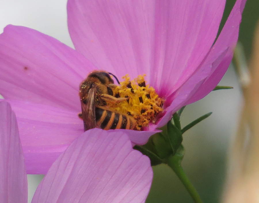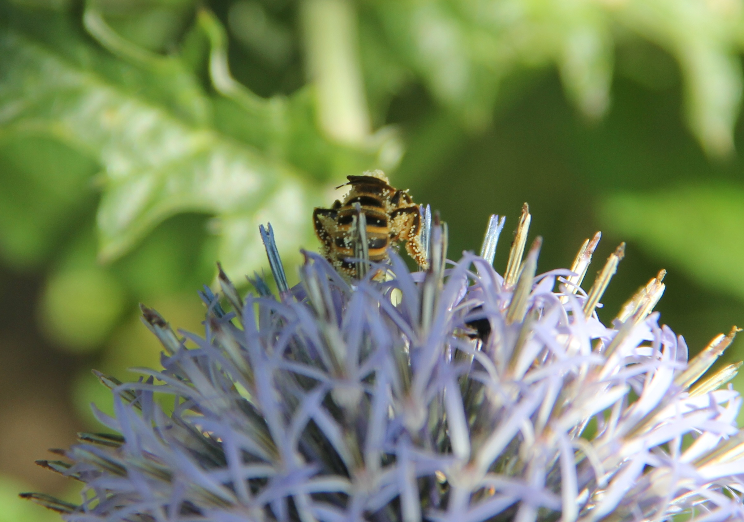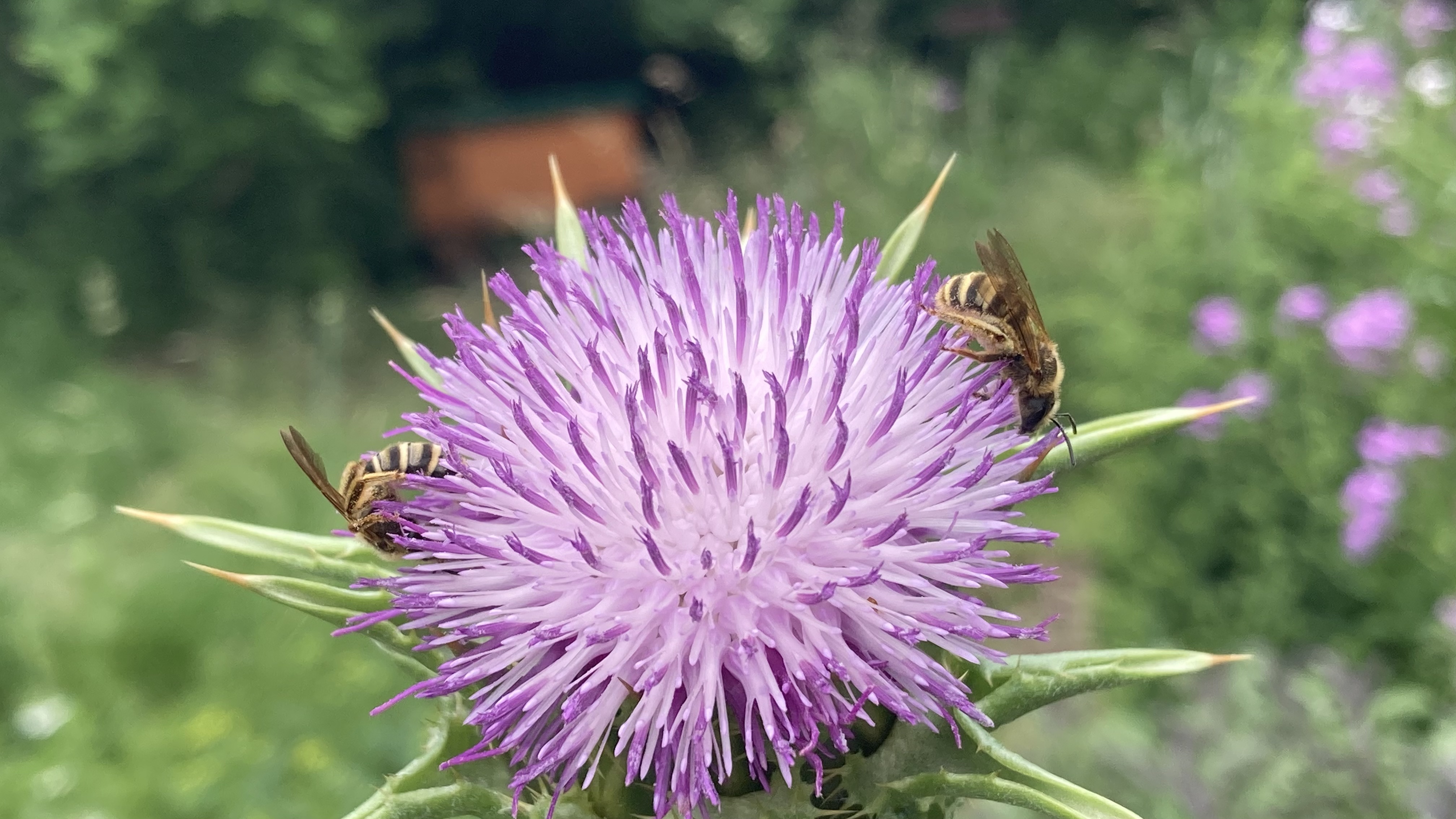 Gelbbindige Furchenbiene (Halictus scabiosae (Rossi, 1790)),Freital/Wurgwitz,Hammerteich,Wegrand auf Kratzdistel,Sep. 2019