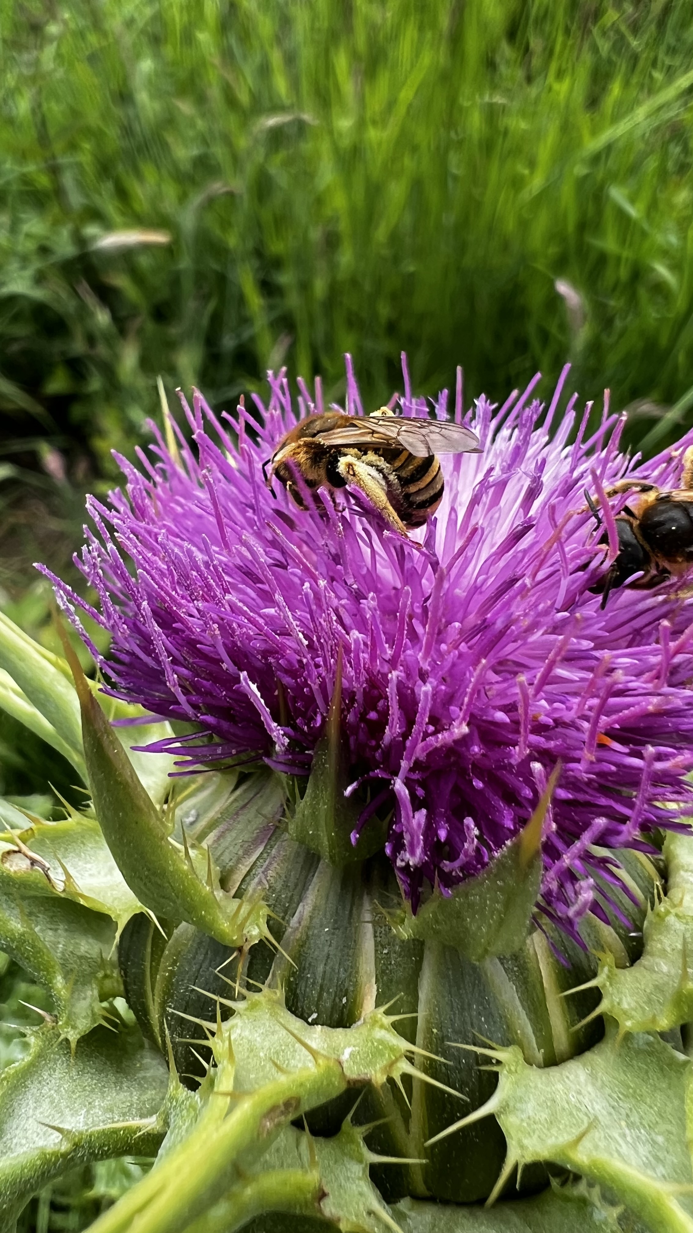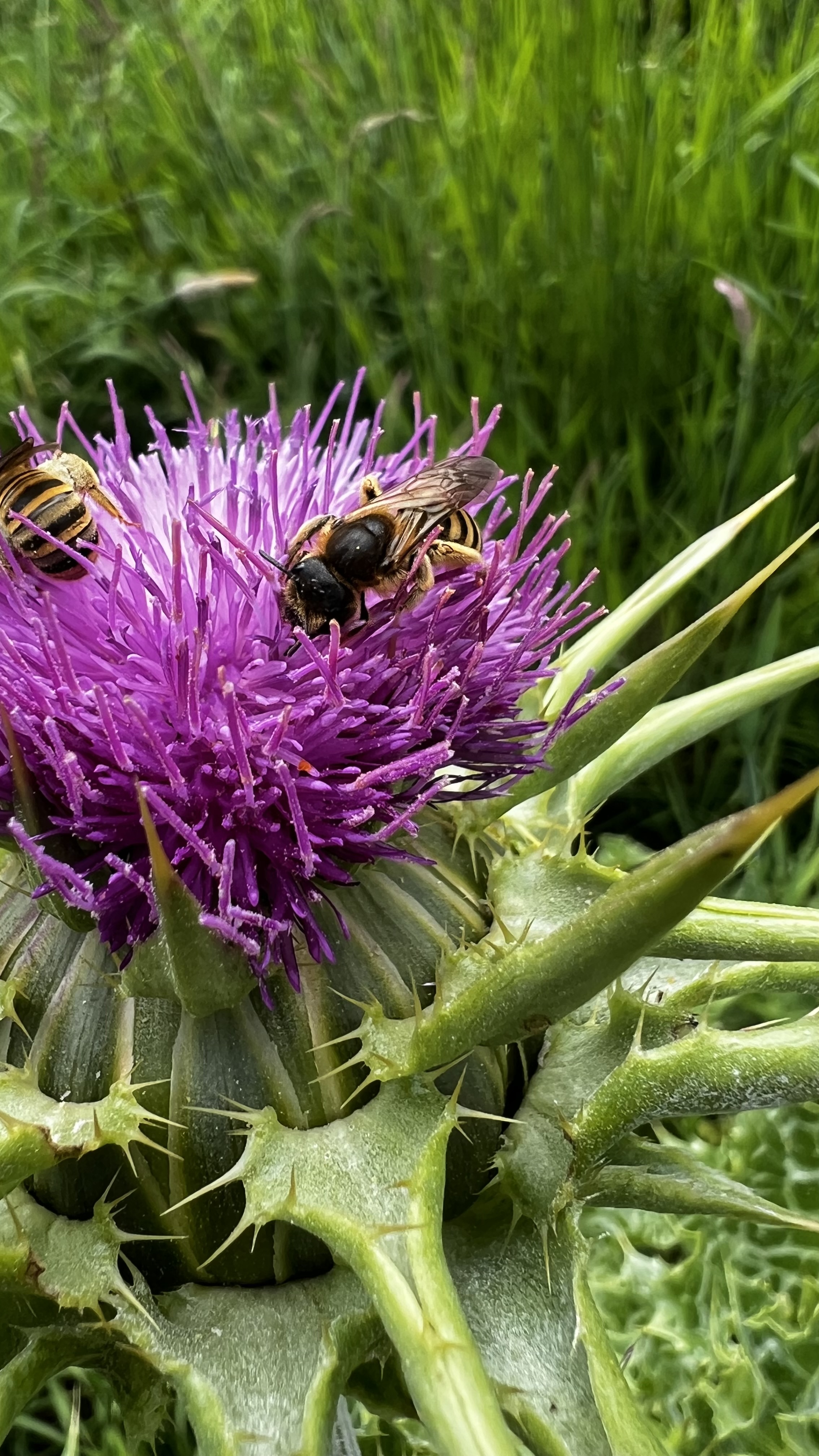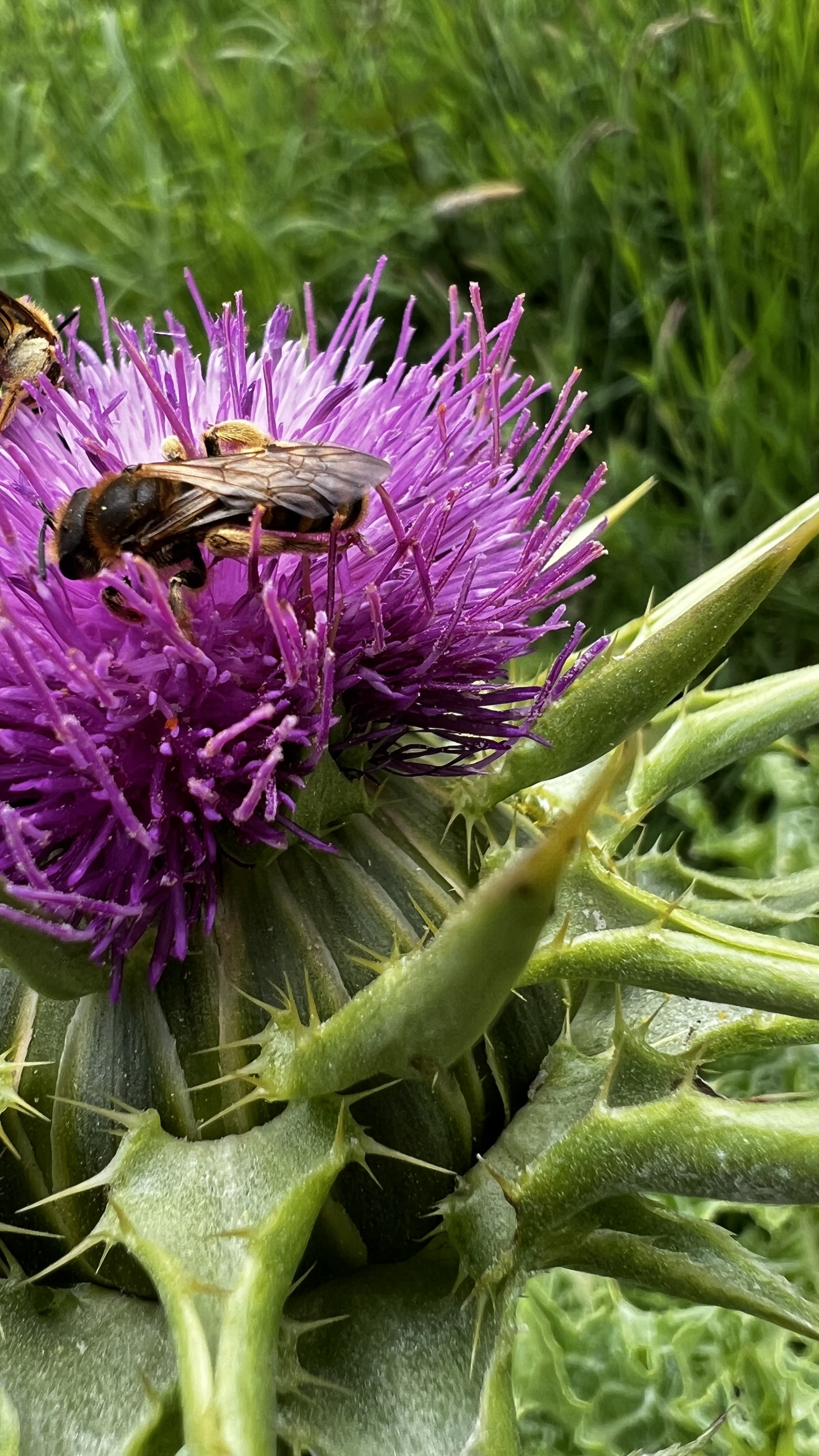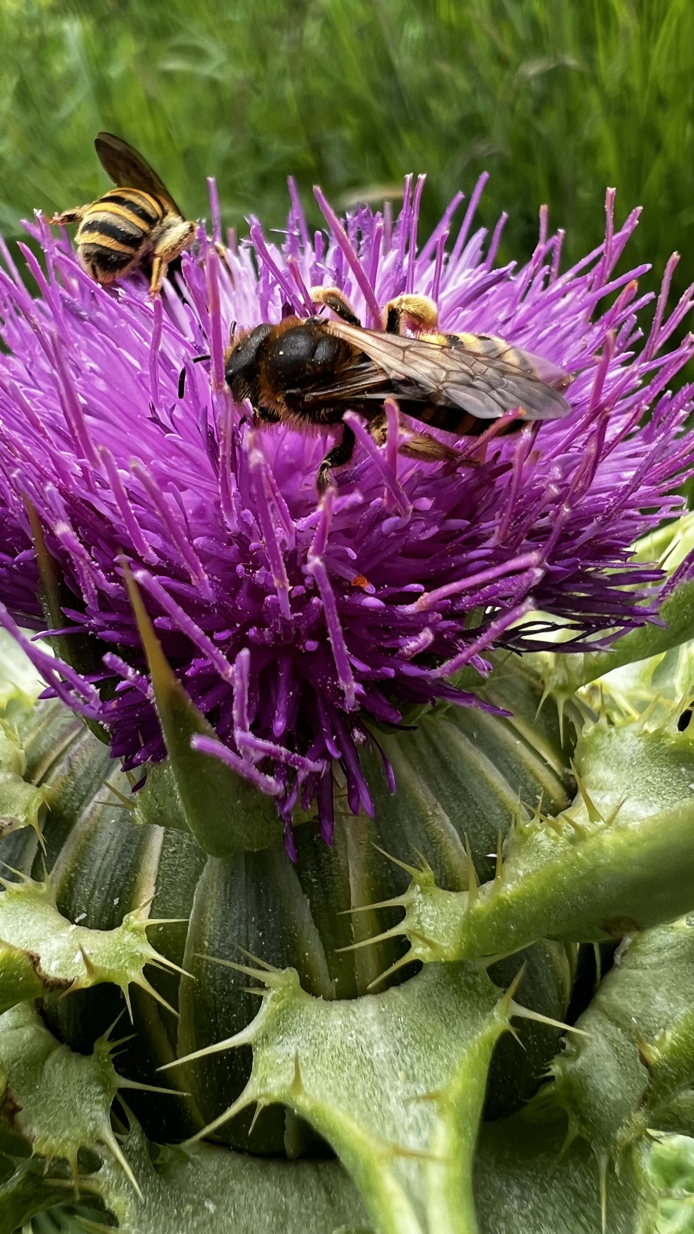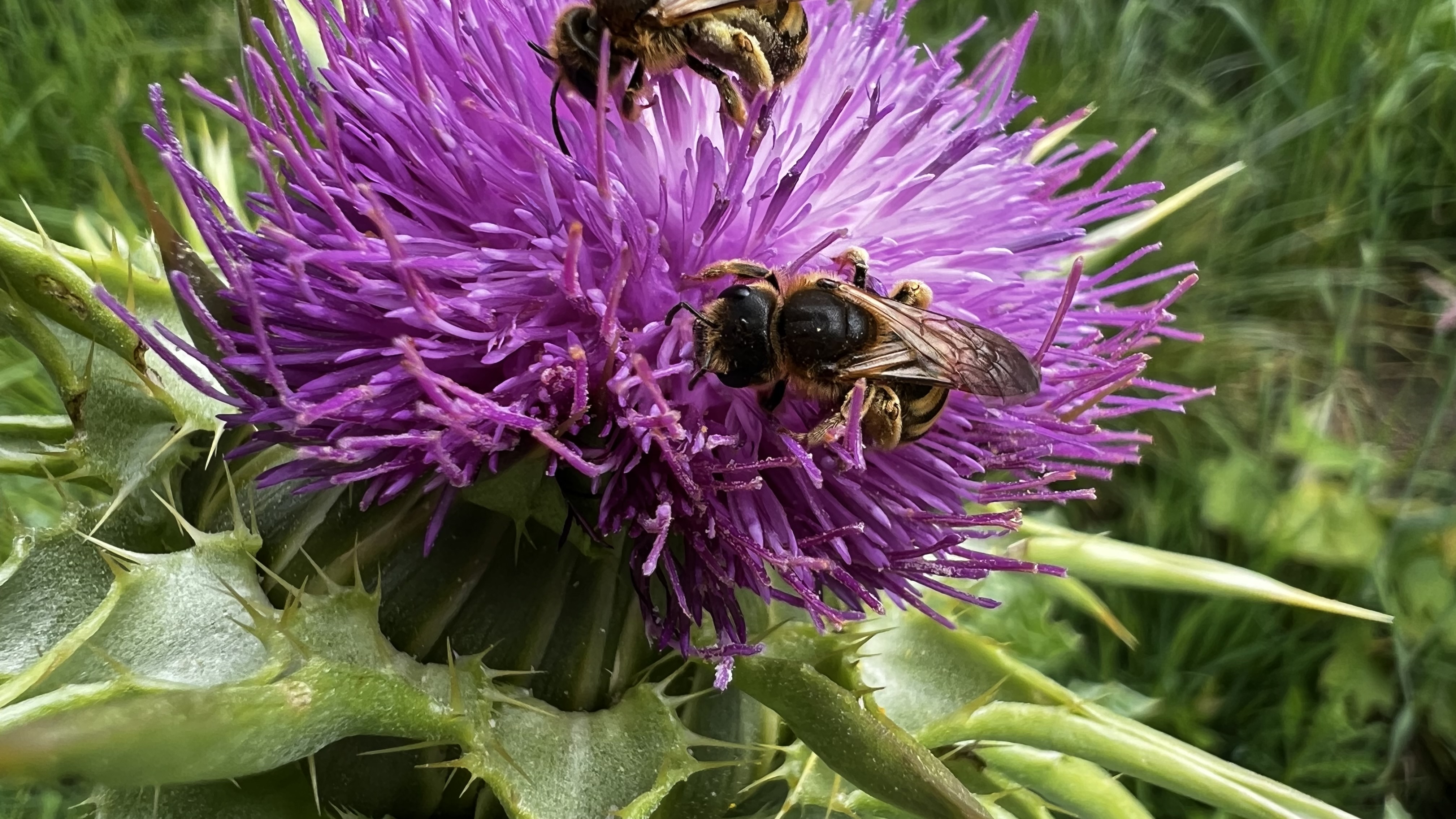 Gelbbindige Furchenbiene (Halictus scabiosae (Rossi, 1790)),Freital/Wurgwitz,Hammerteich,Wegrand auf Kratzdistel,Sep. 2019