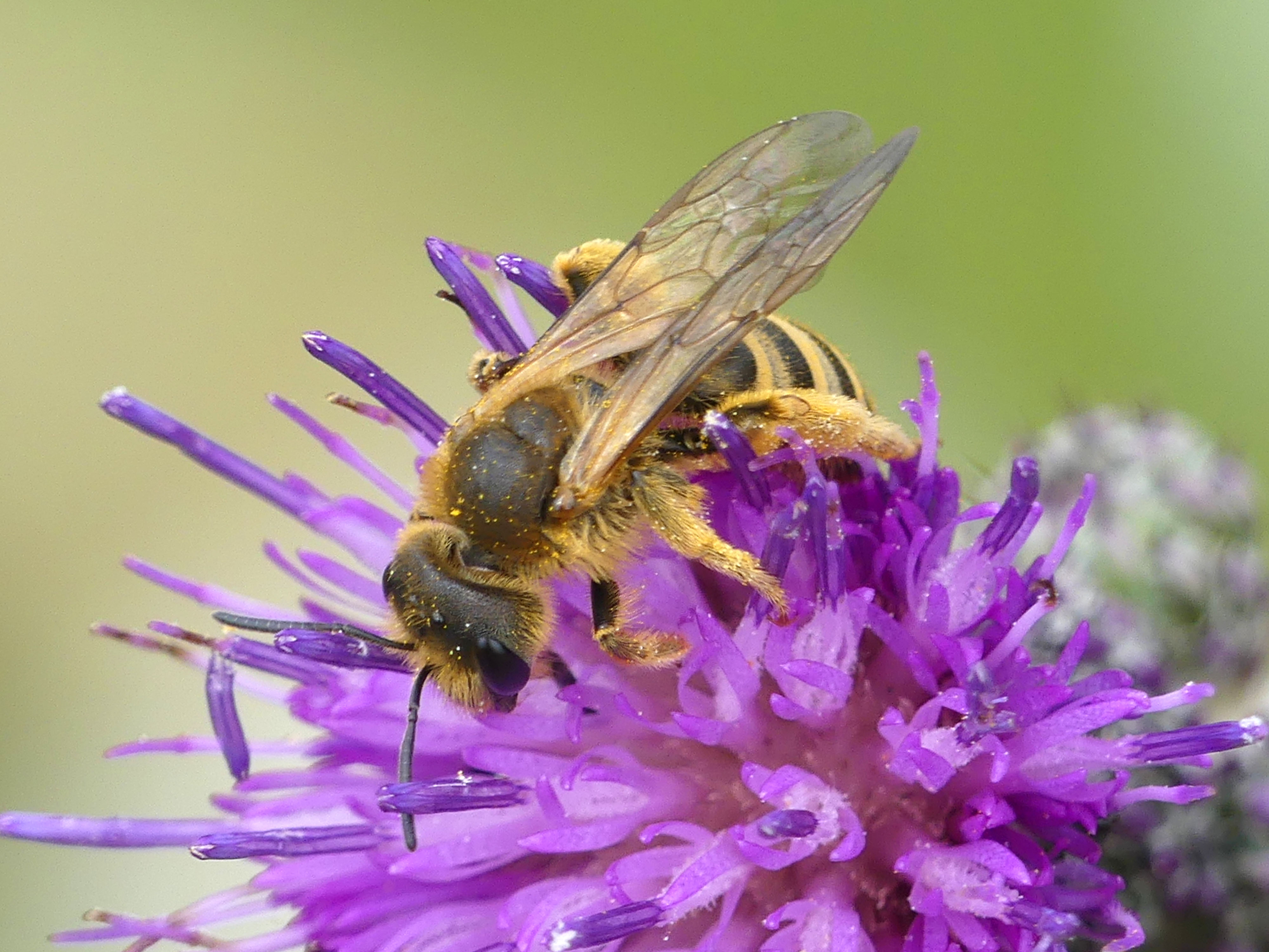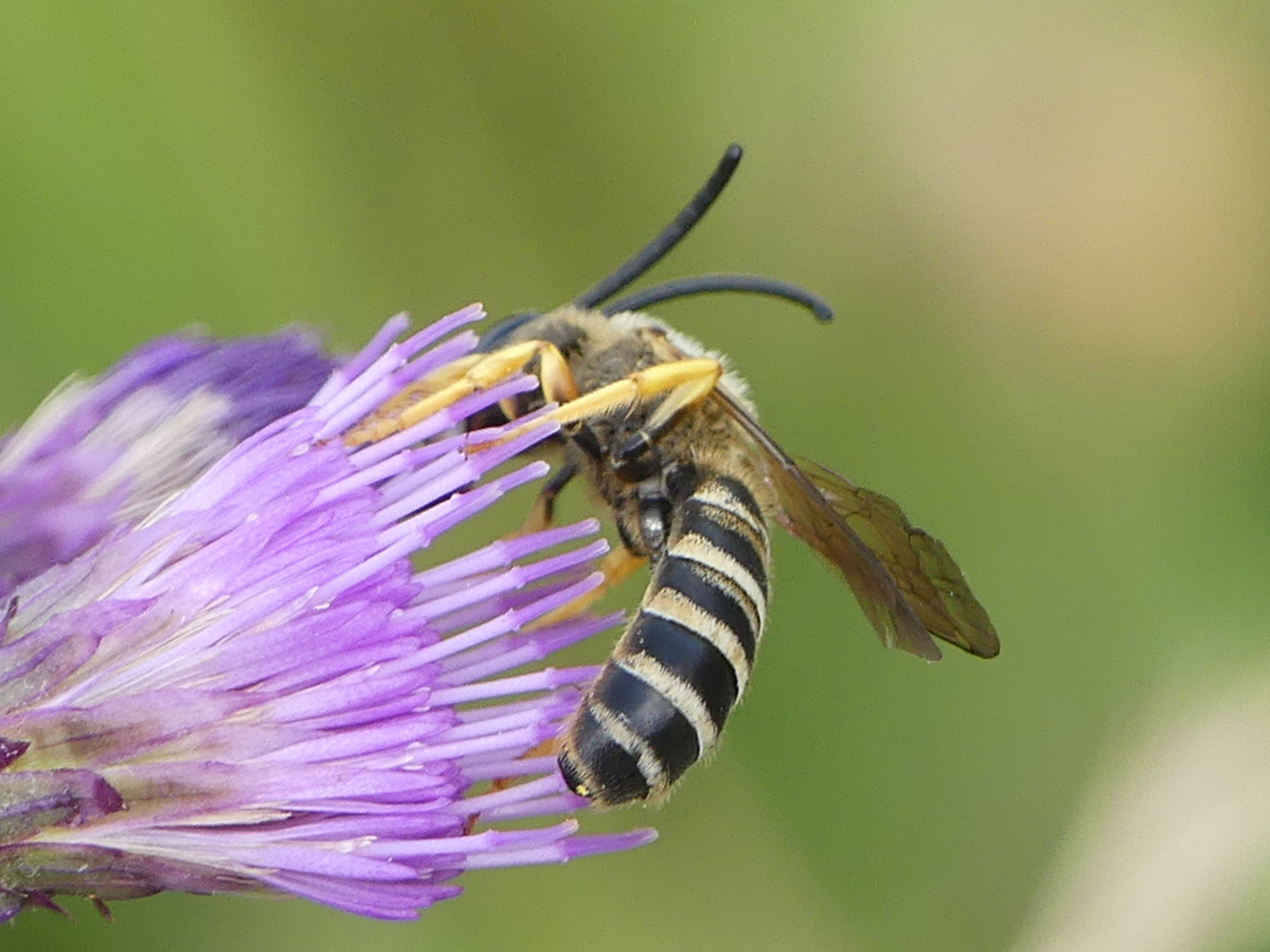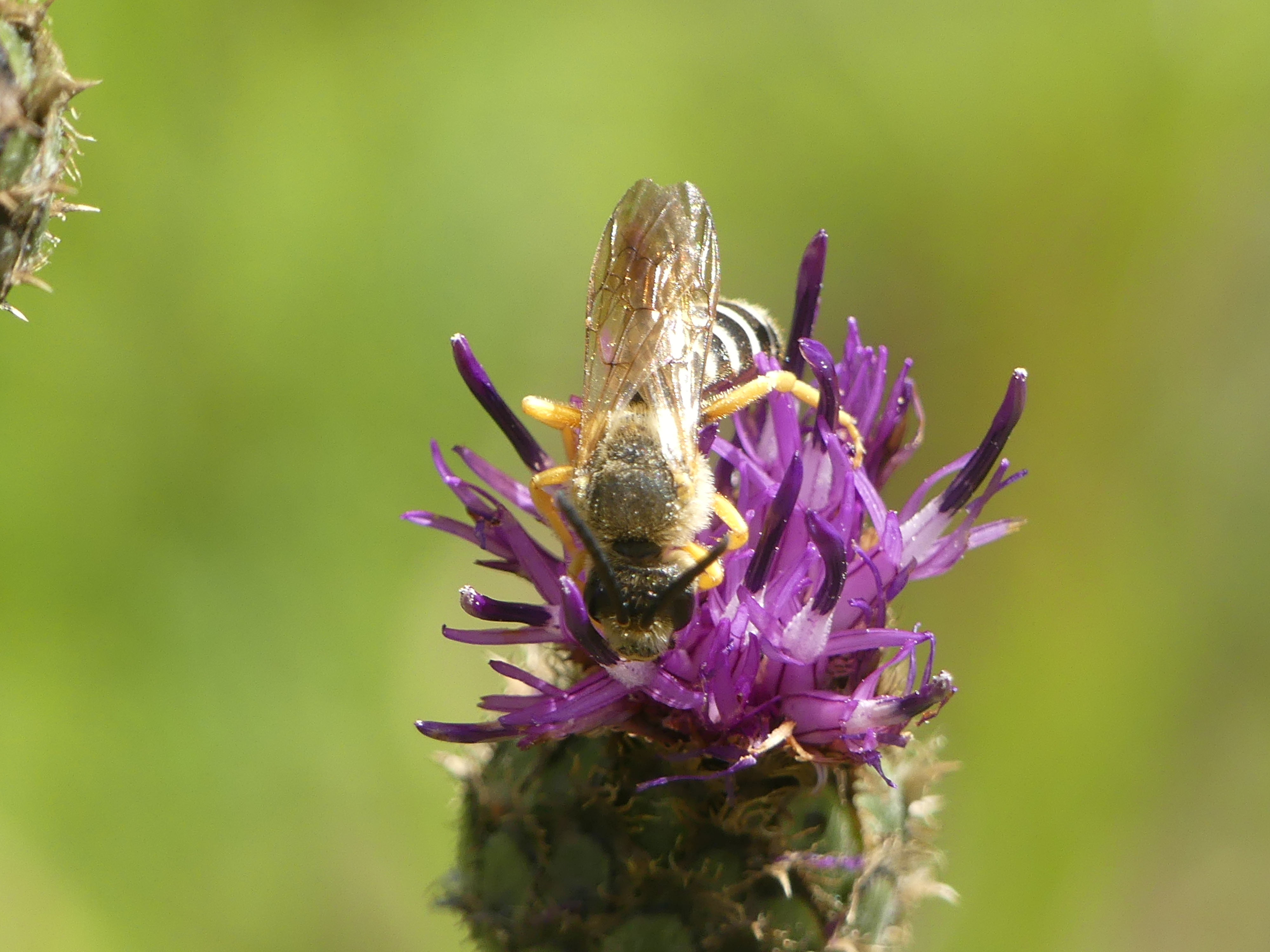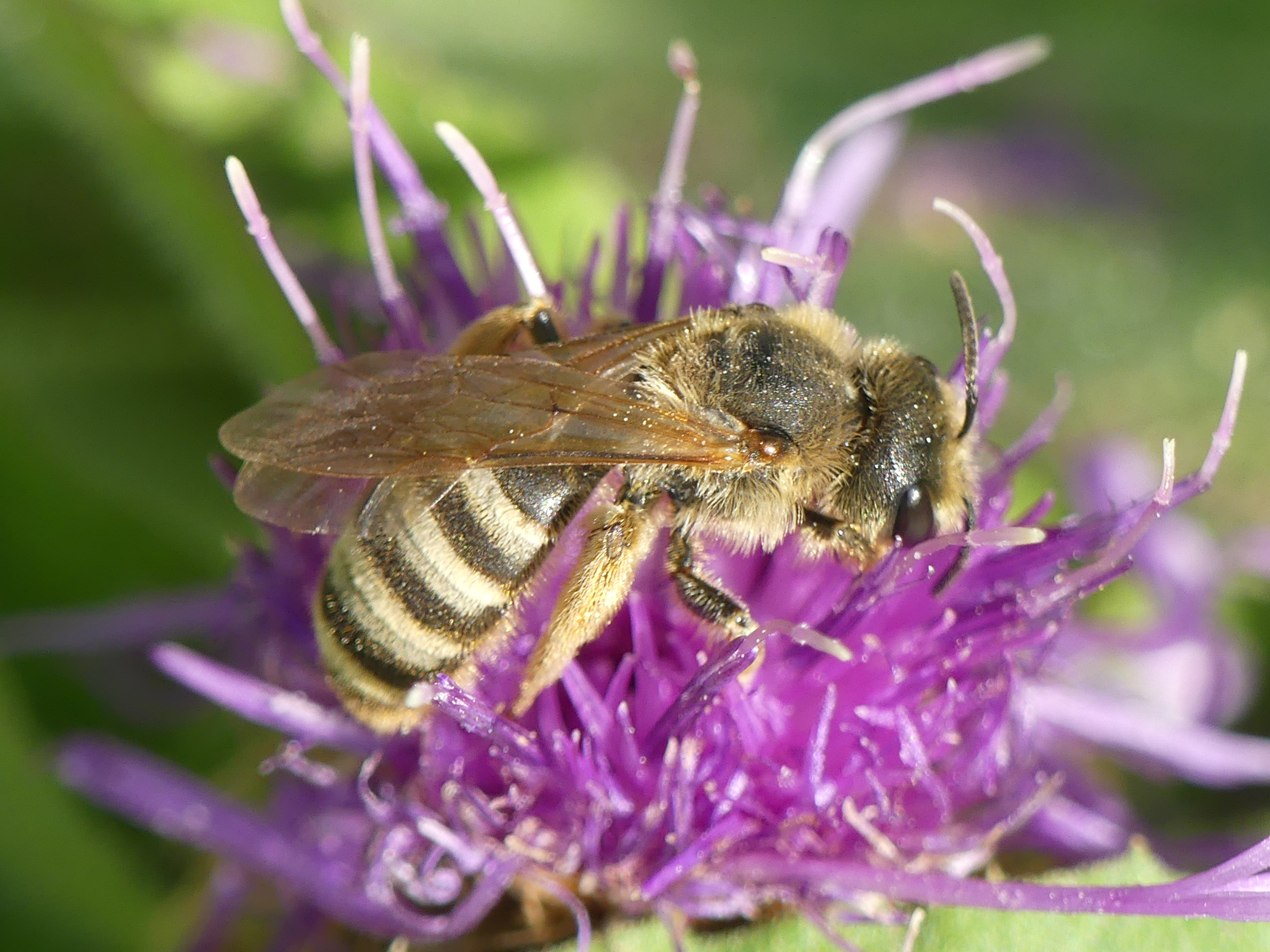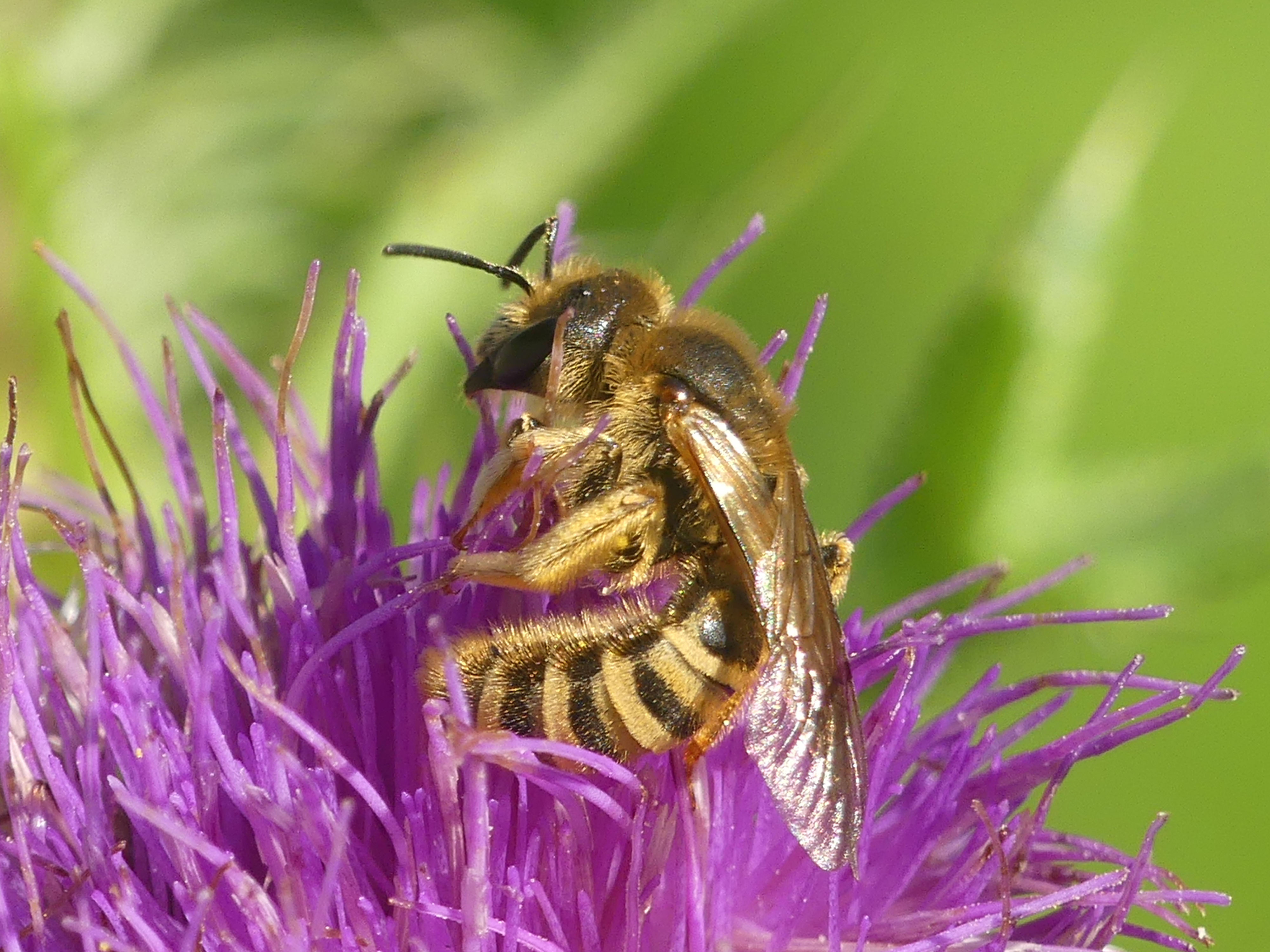 Gelbbindige Furchenbiene (Halictus scabiosae (Rossi, 1790)),Freital/Wurgwitz,Hammerteich,Wegrand auf Kratzdistel,Sep. 2019 (© Manfred Wonka)( Bild vergrößern)