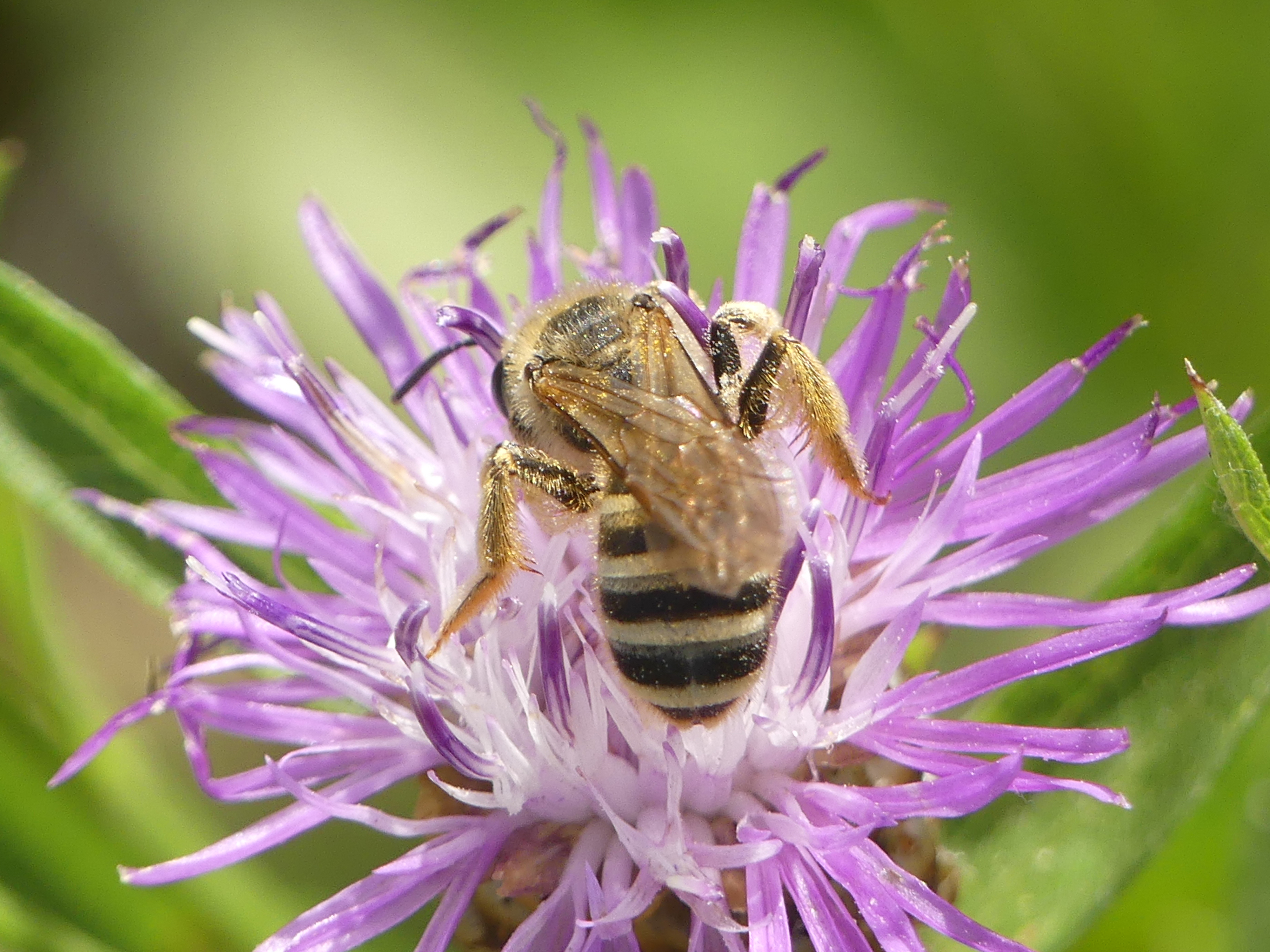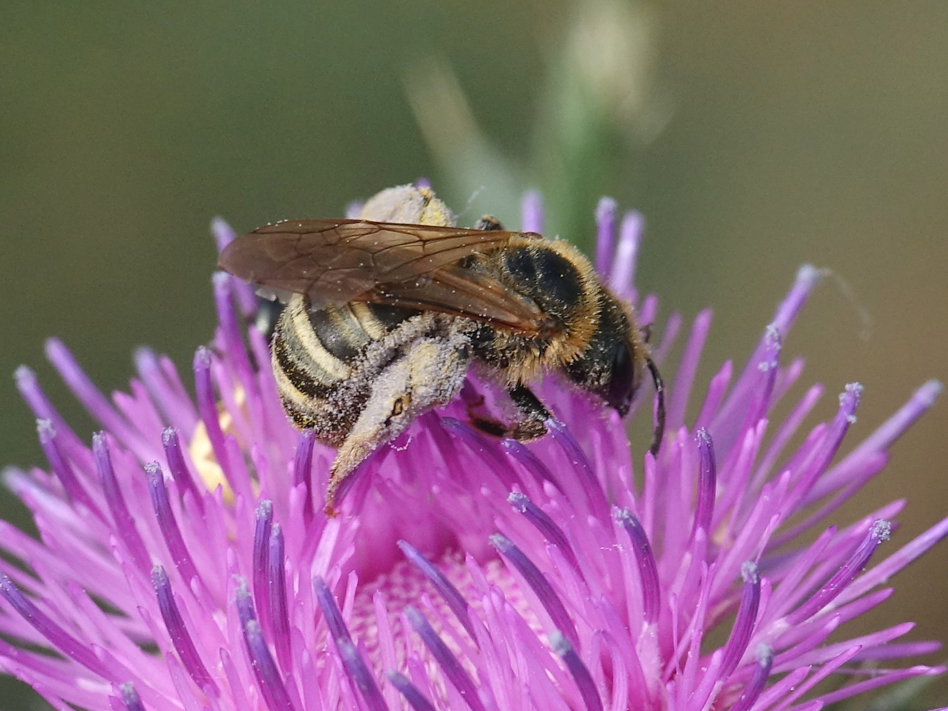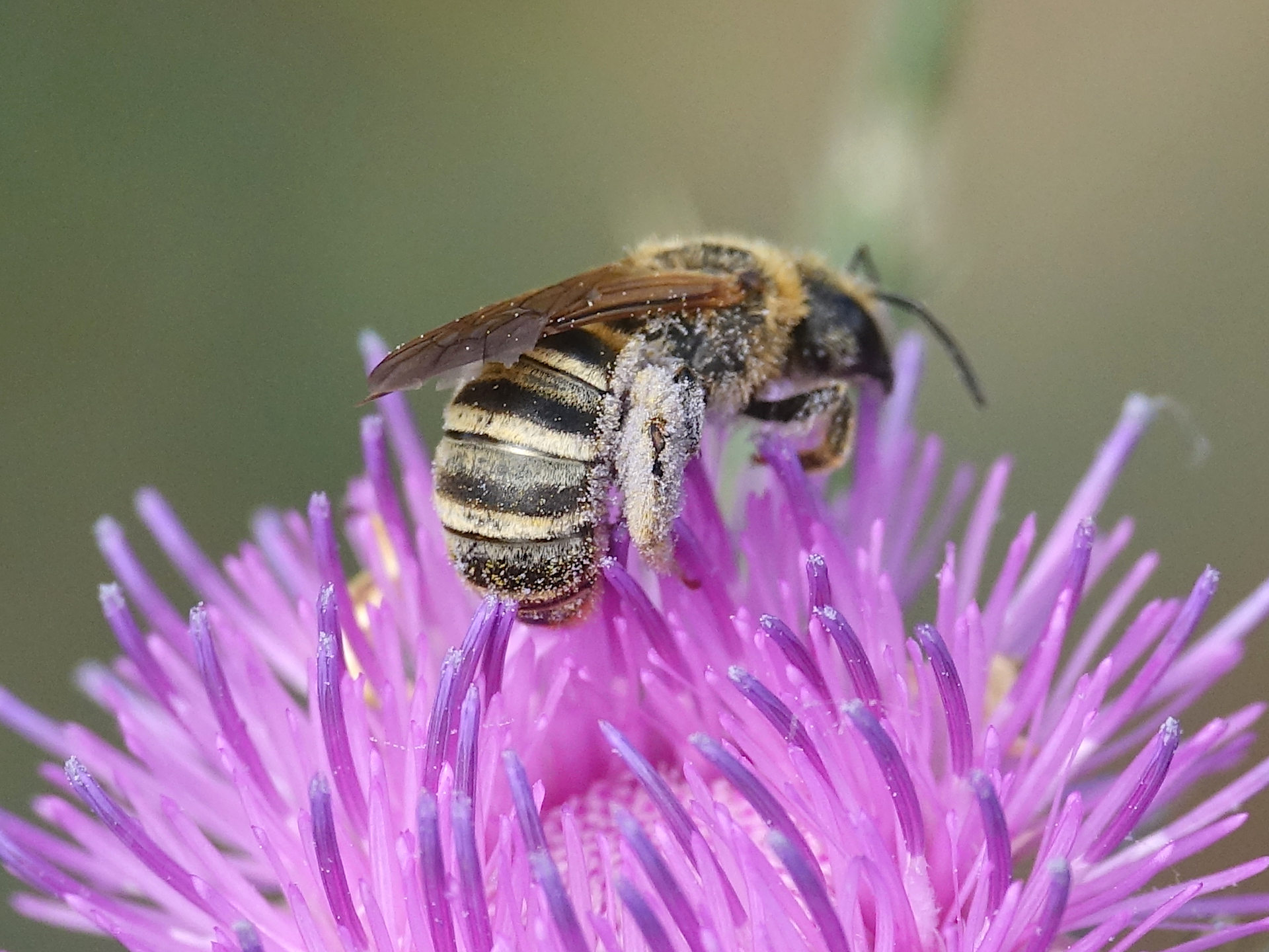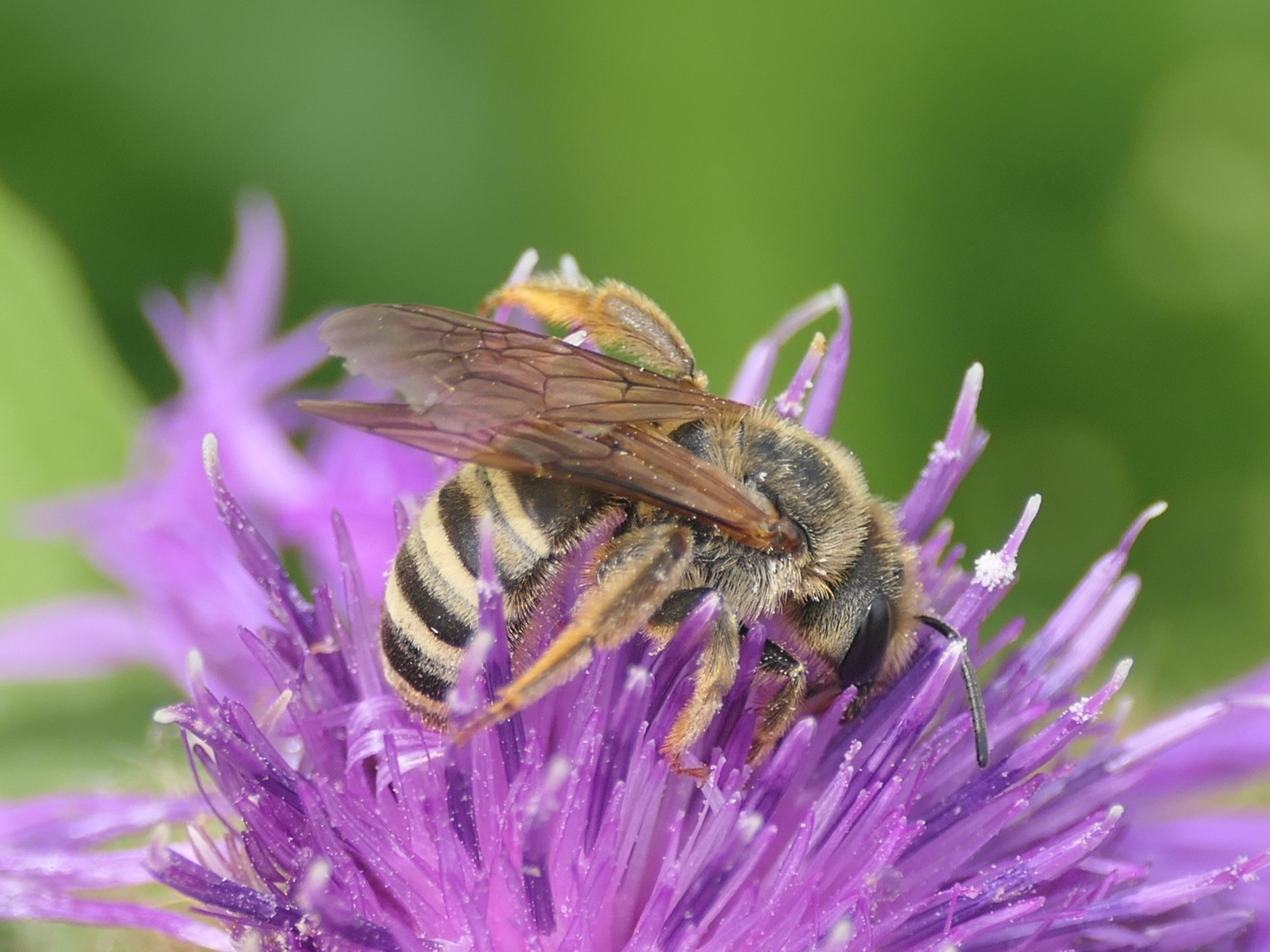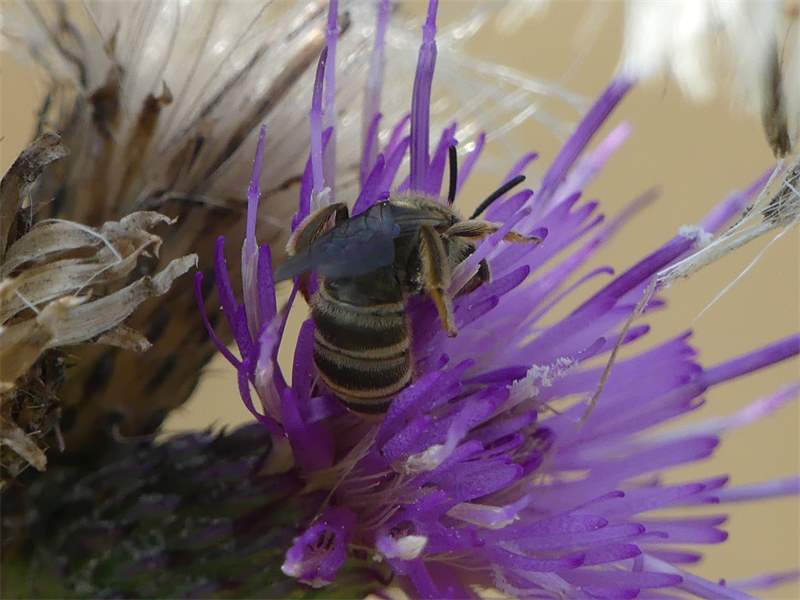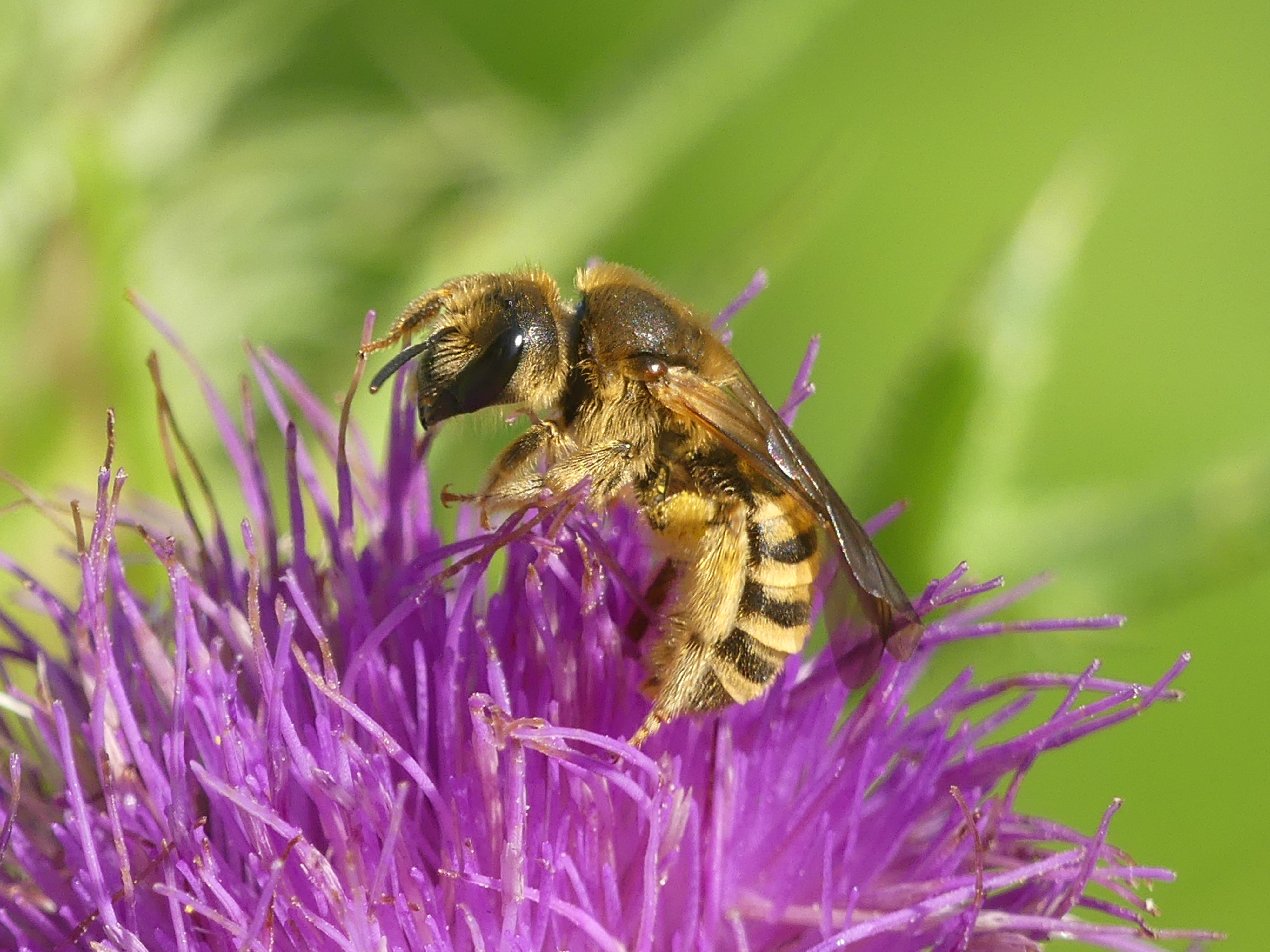 Gelbbindige Furchenbiene (Halictus scabiosae (Rossi, 1790)),Freital/Wurgwitz,Hammerteich,Wegrand auf Kratzdistel,Sep. 2019 (© Manfred Wonka)( Bild vergrößern)
