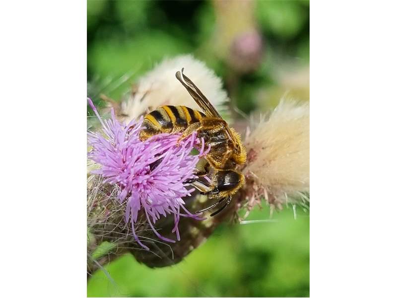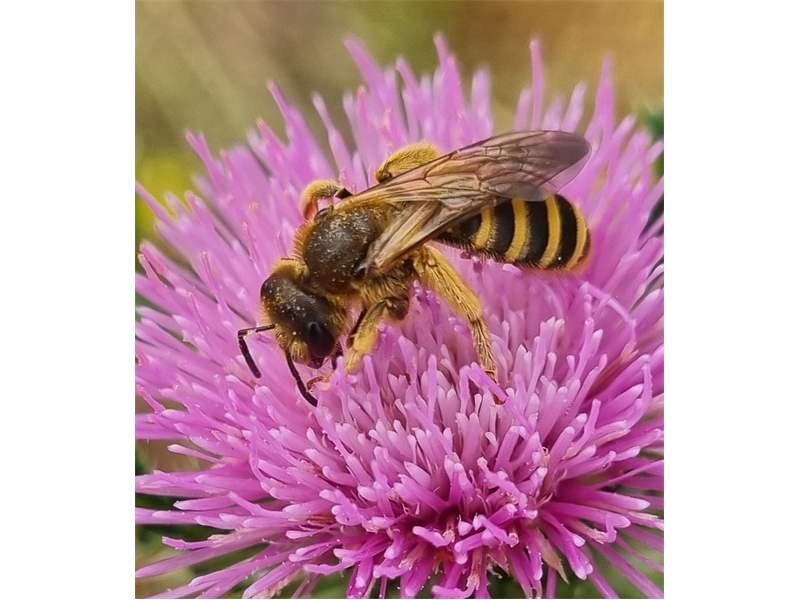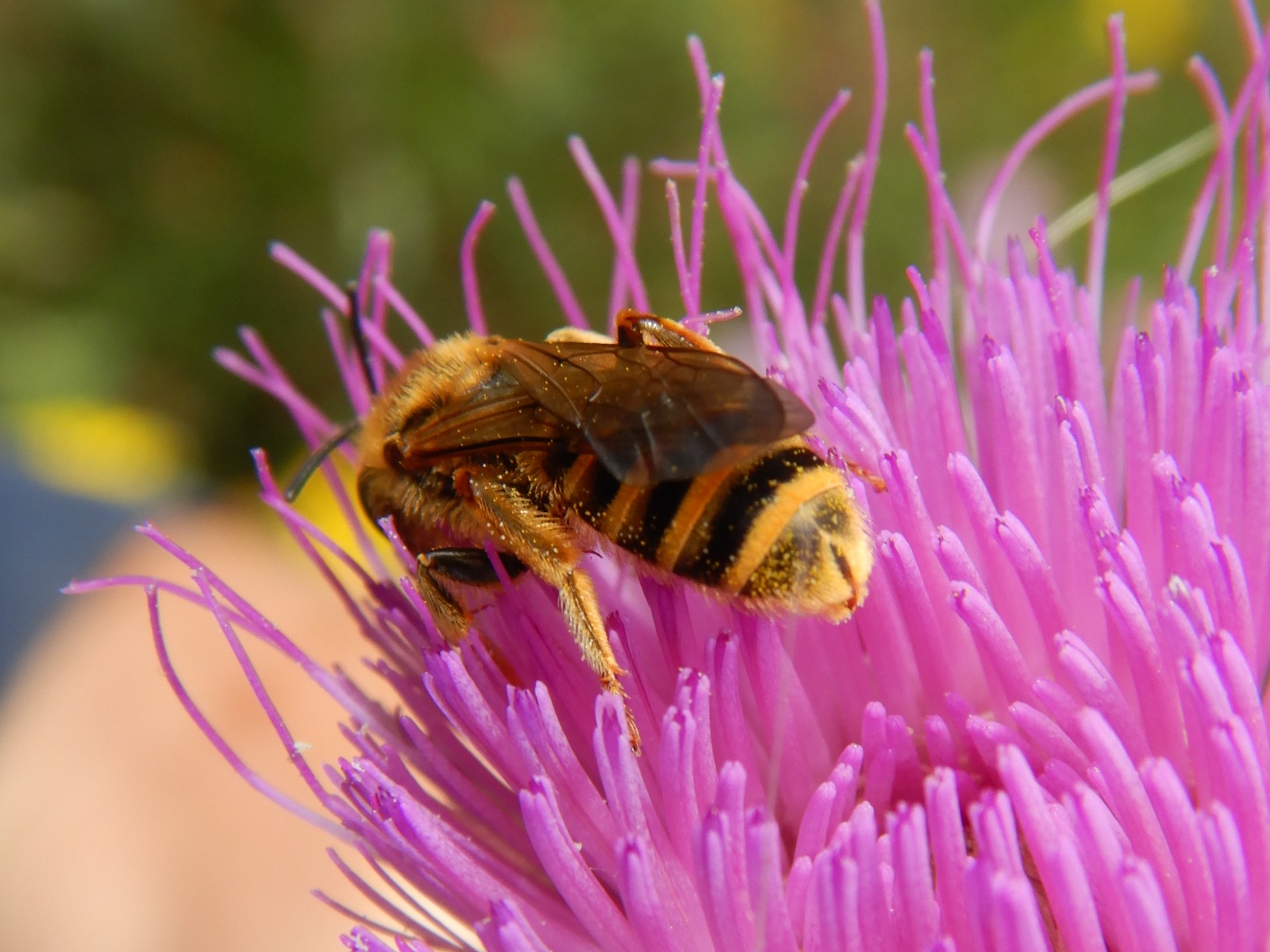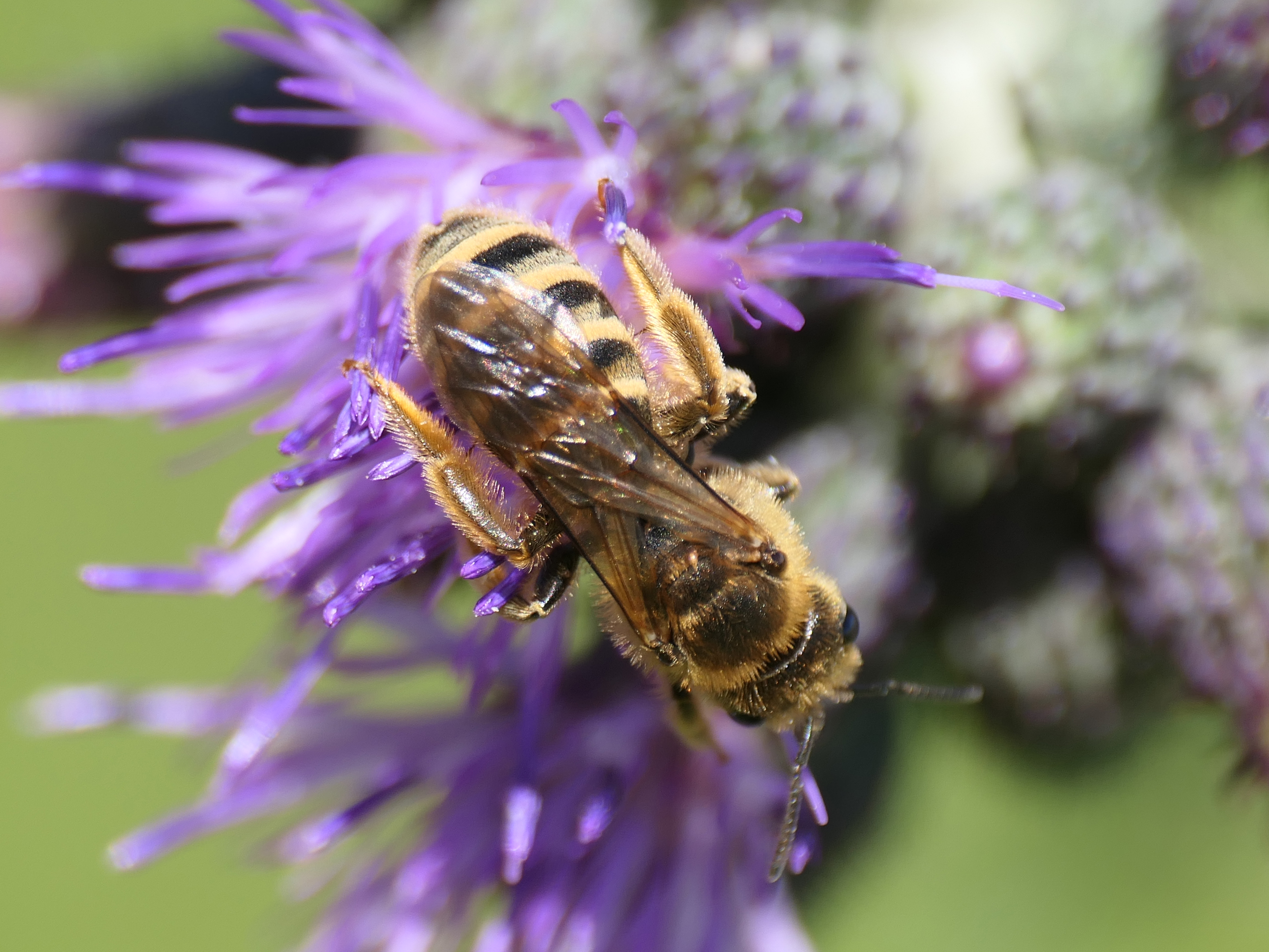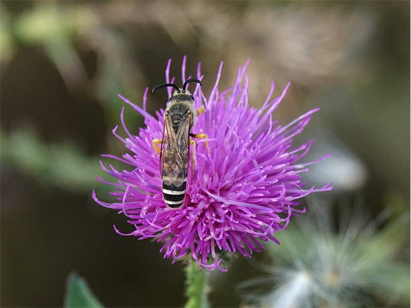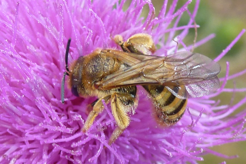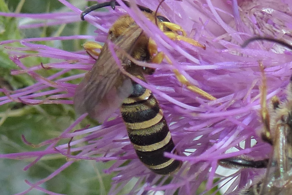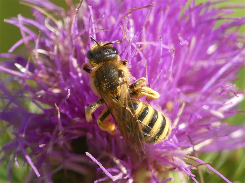 Gelbbindige Furchenbiene (Halictus scabiosae (Rossi, 1790)),Freital/Wurgwitz,Hammerteich,Wegrand auf Kratzdistel,Sep. 2019 (© Manfred Wonka)( Bild vergrößern)