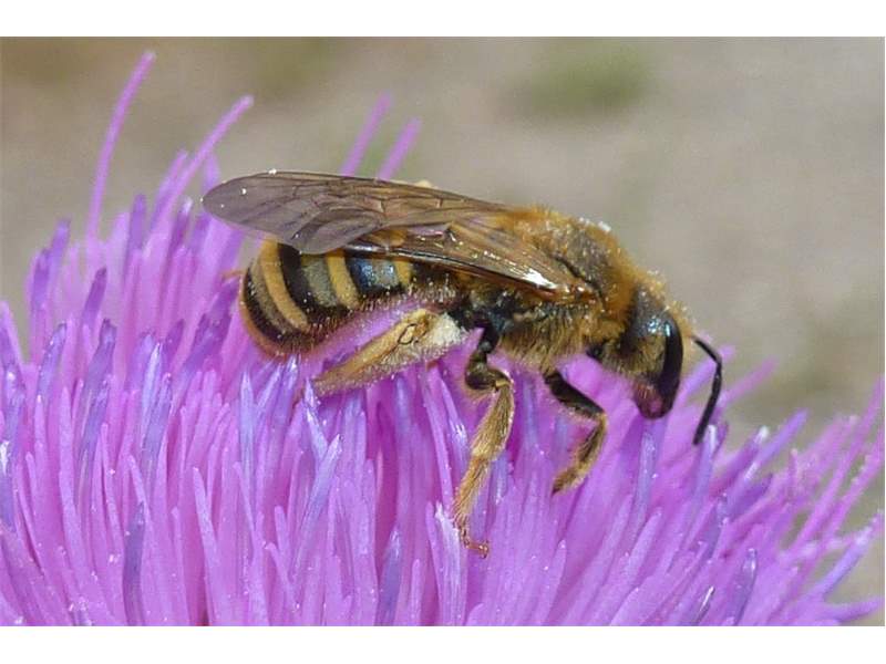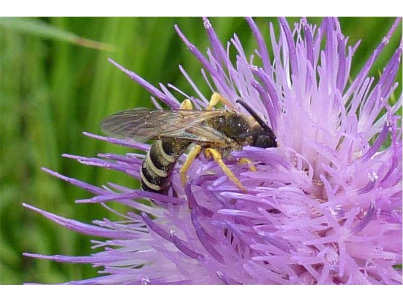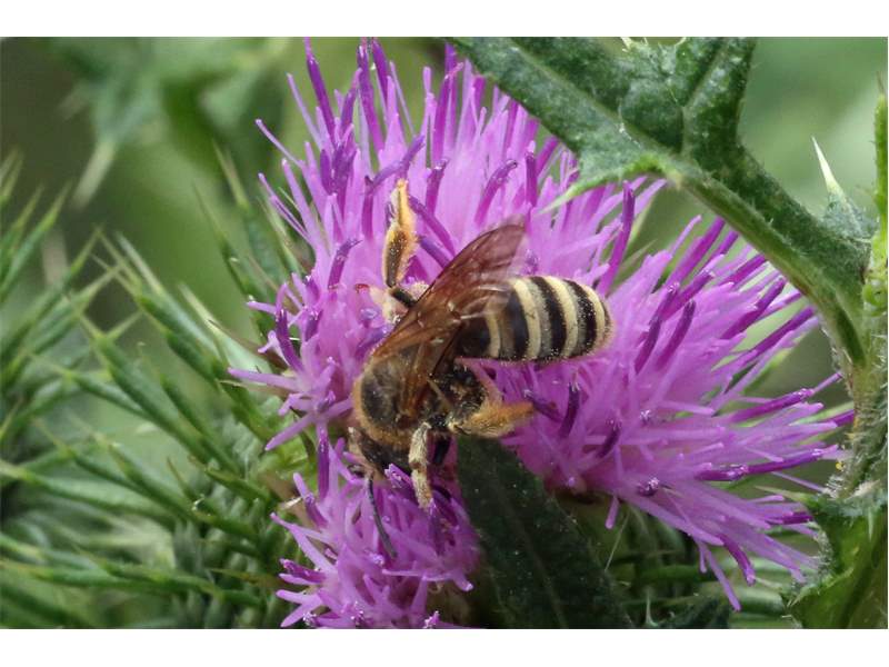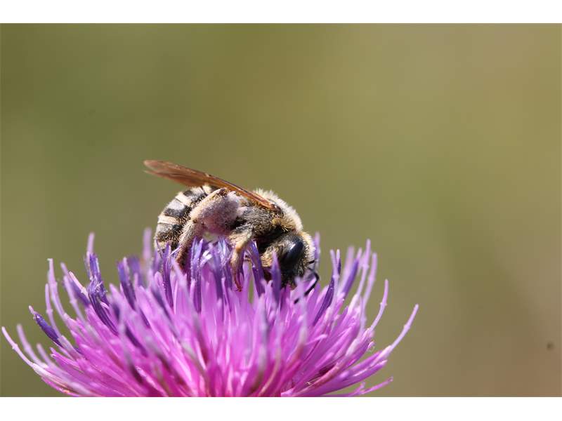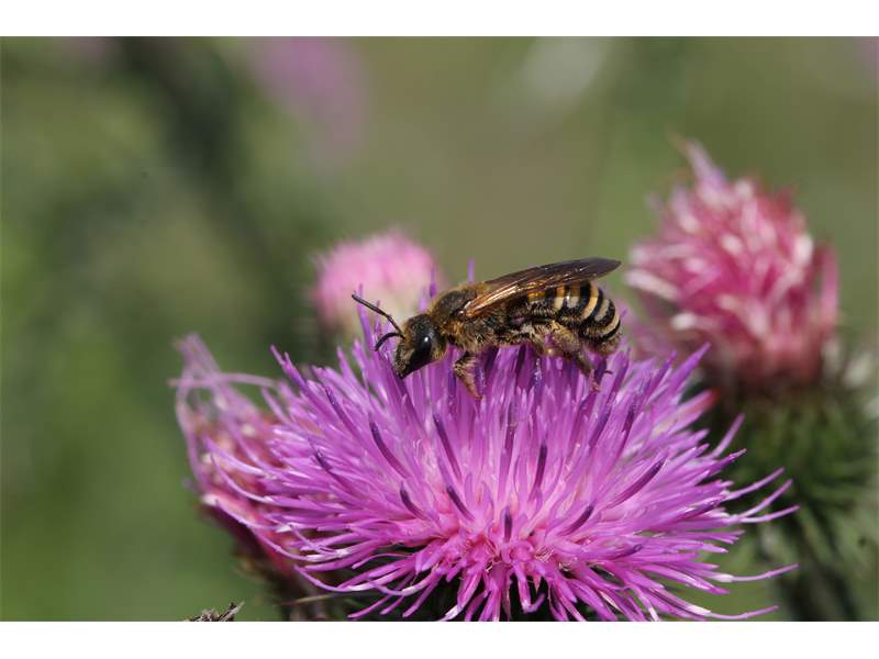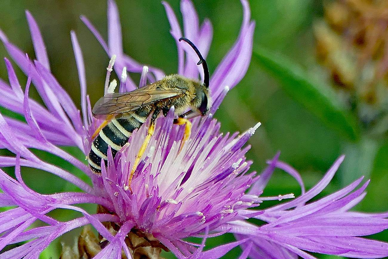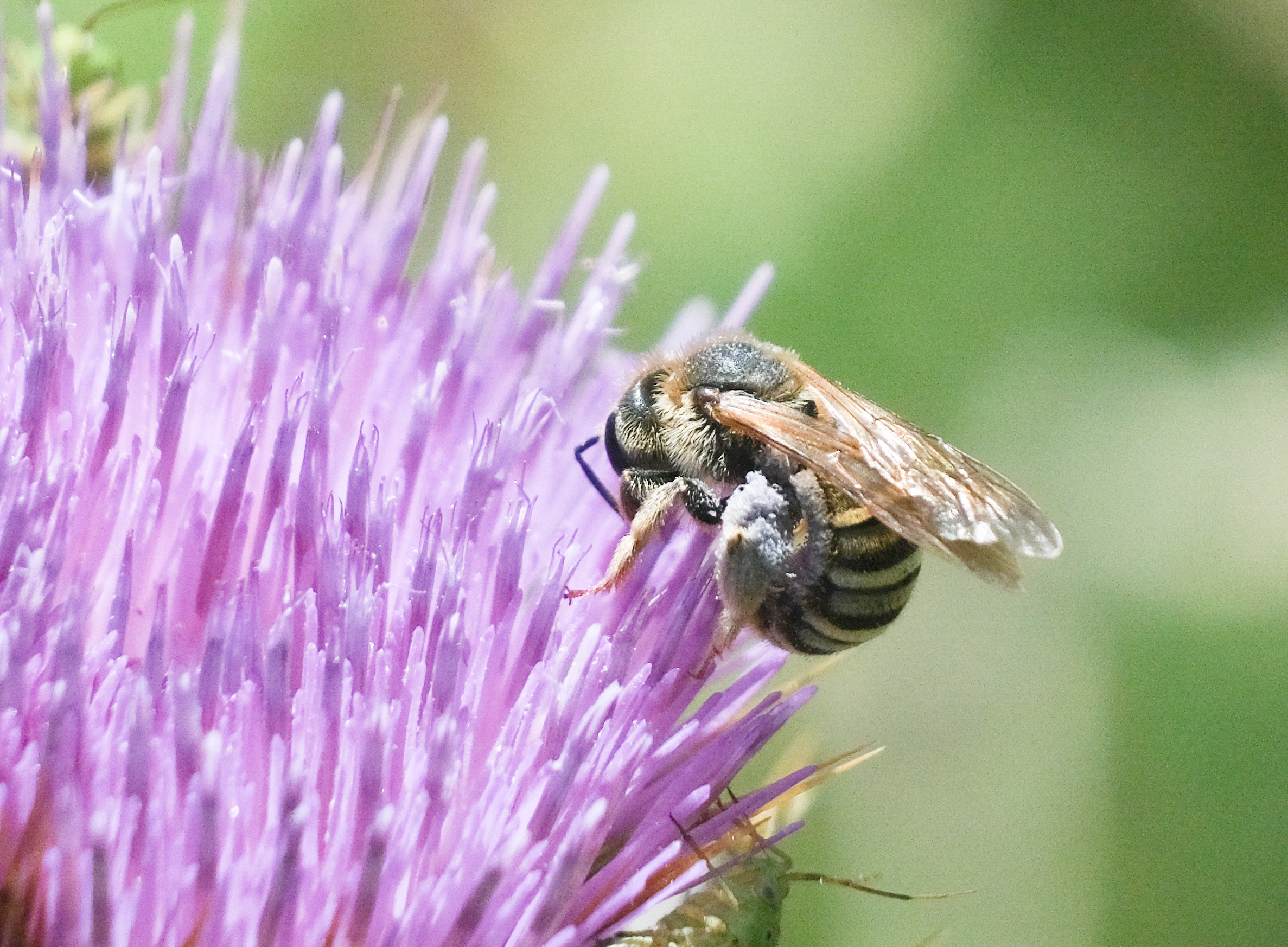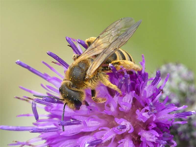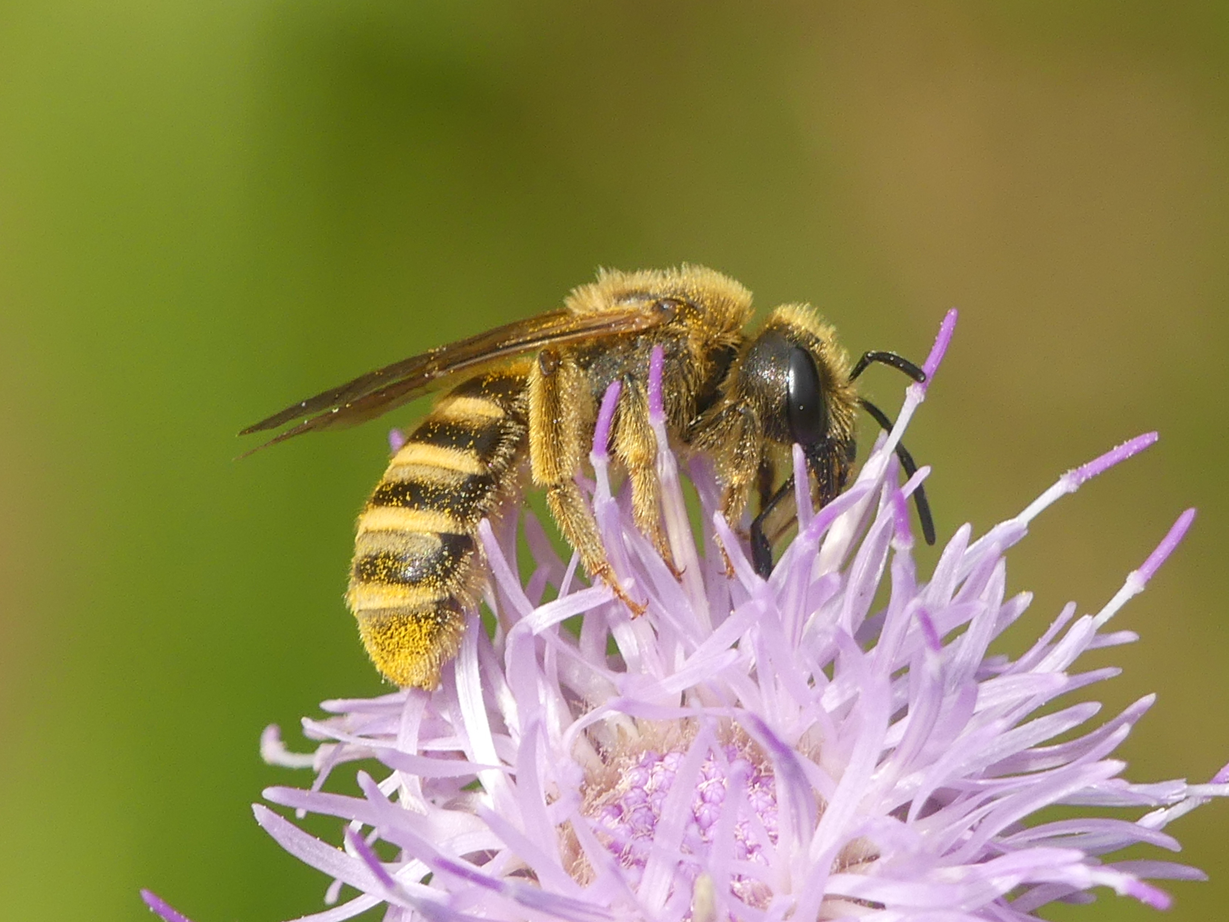 Gelbbindige Furchenbiene (Halictus scabiosae (Rossi, 1790)),Freital/Wurgwitz,Hammerteich,Wegrand auf Kratzdistel,Sep. 2019 (© Manfred Wonka)( Bild vergrößern)