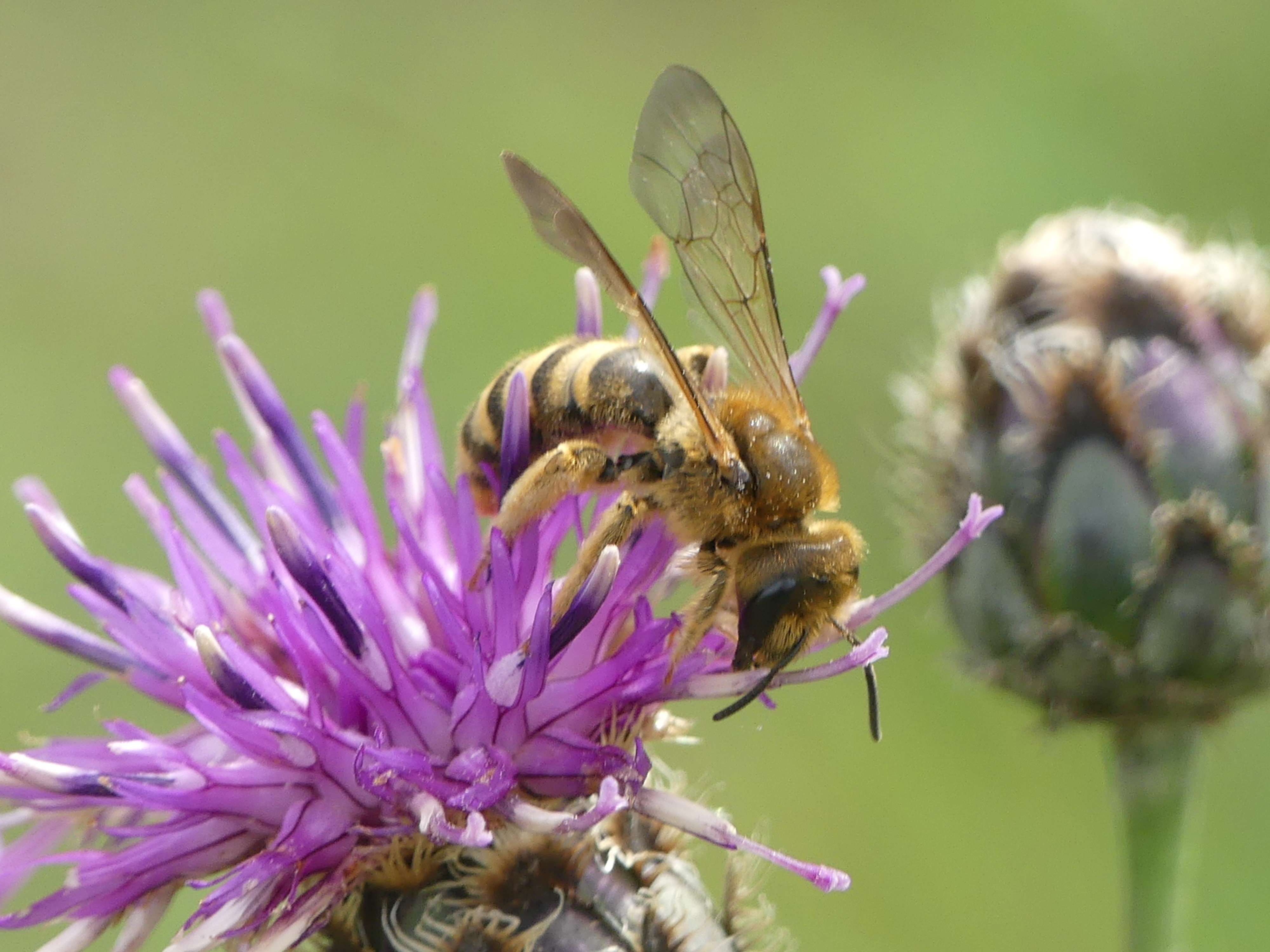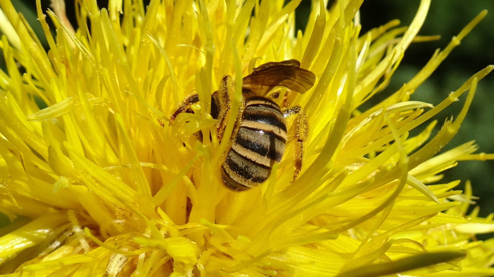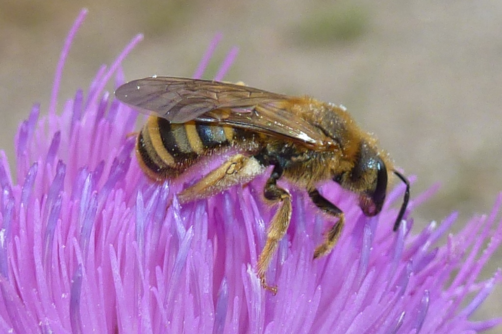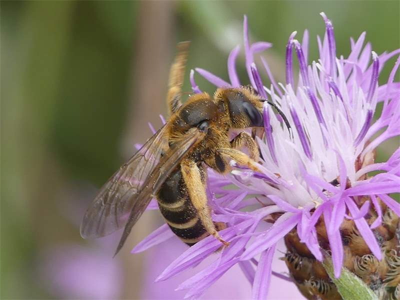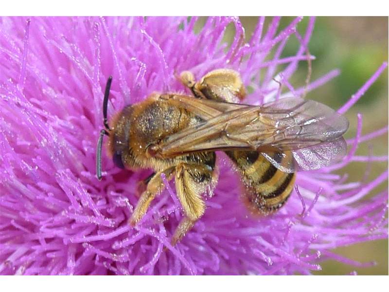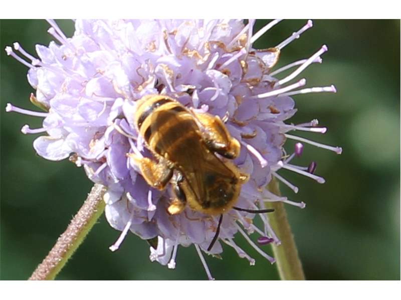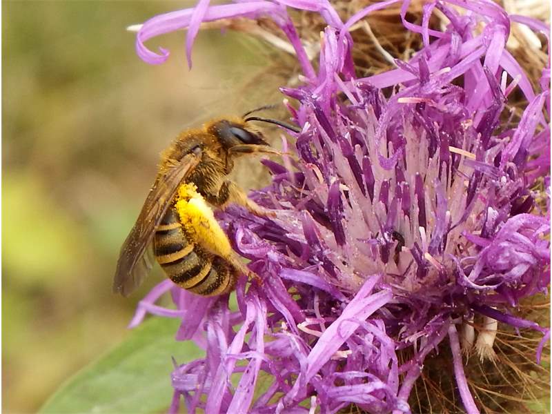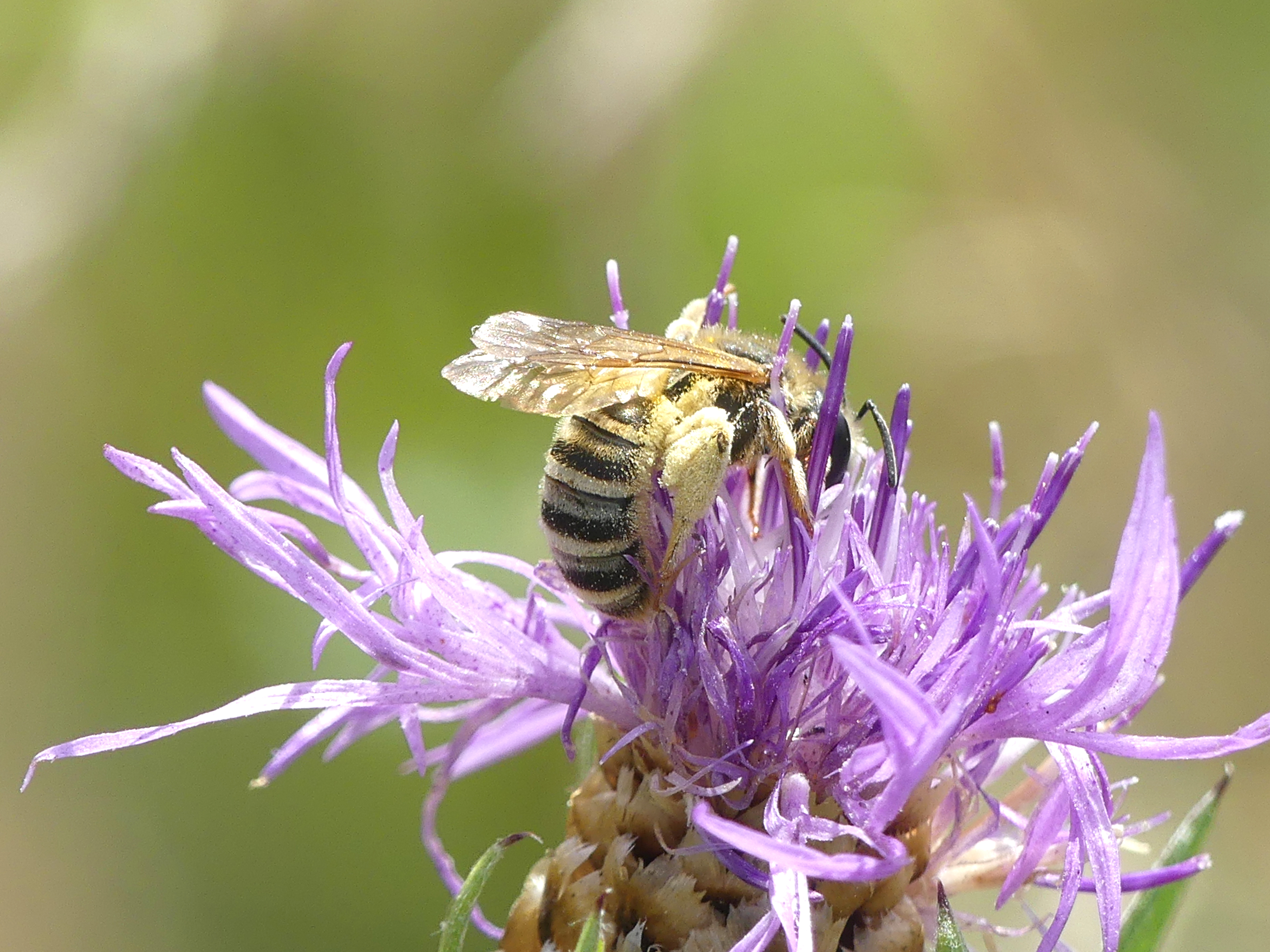 Gelbbindige Furchenbiene (Halictus scabiosae (Rossi, 1790)),Freital/Wurgwitz,Hammerteich,Wegrand auf Kratzdistel,Sep. 2019 (© Manfred Wonka)( Bild vergrößern)
