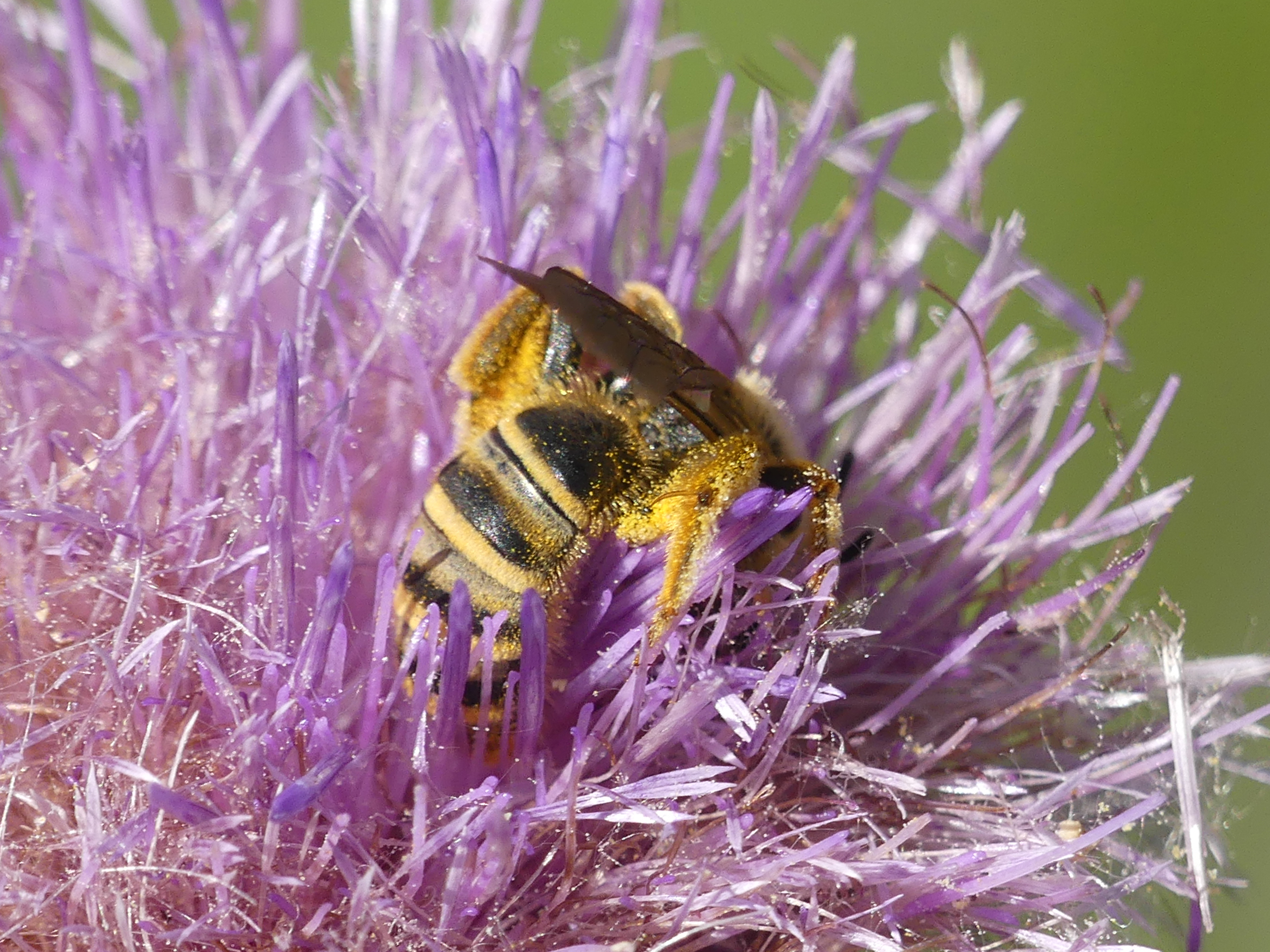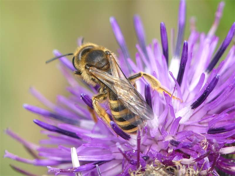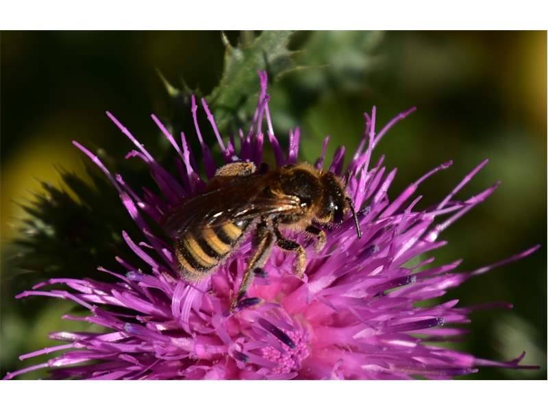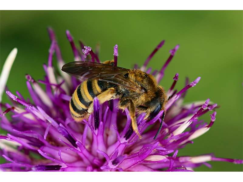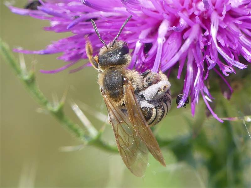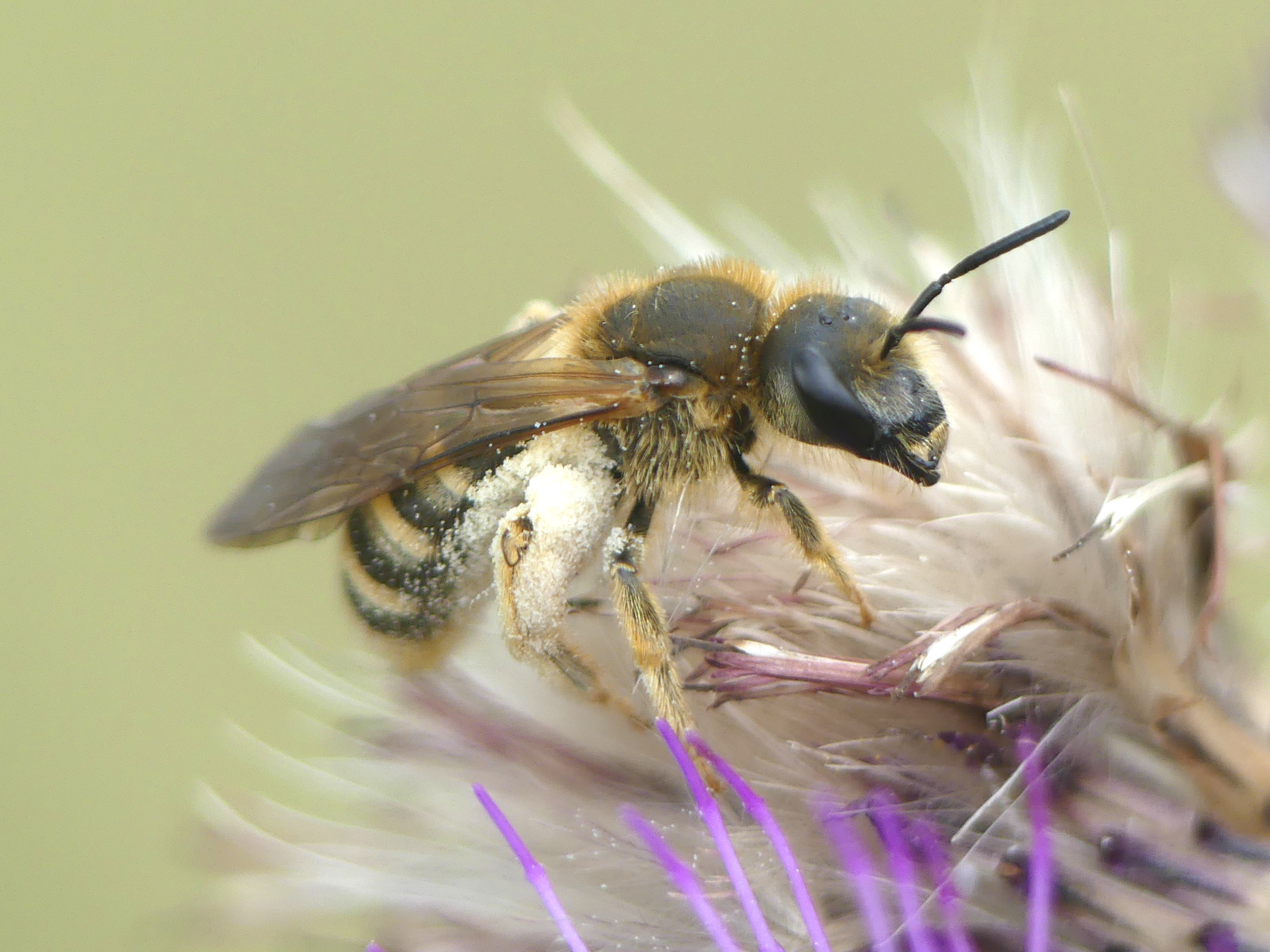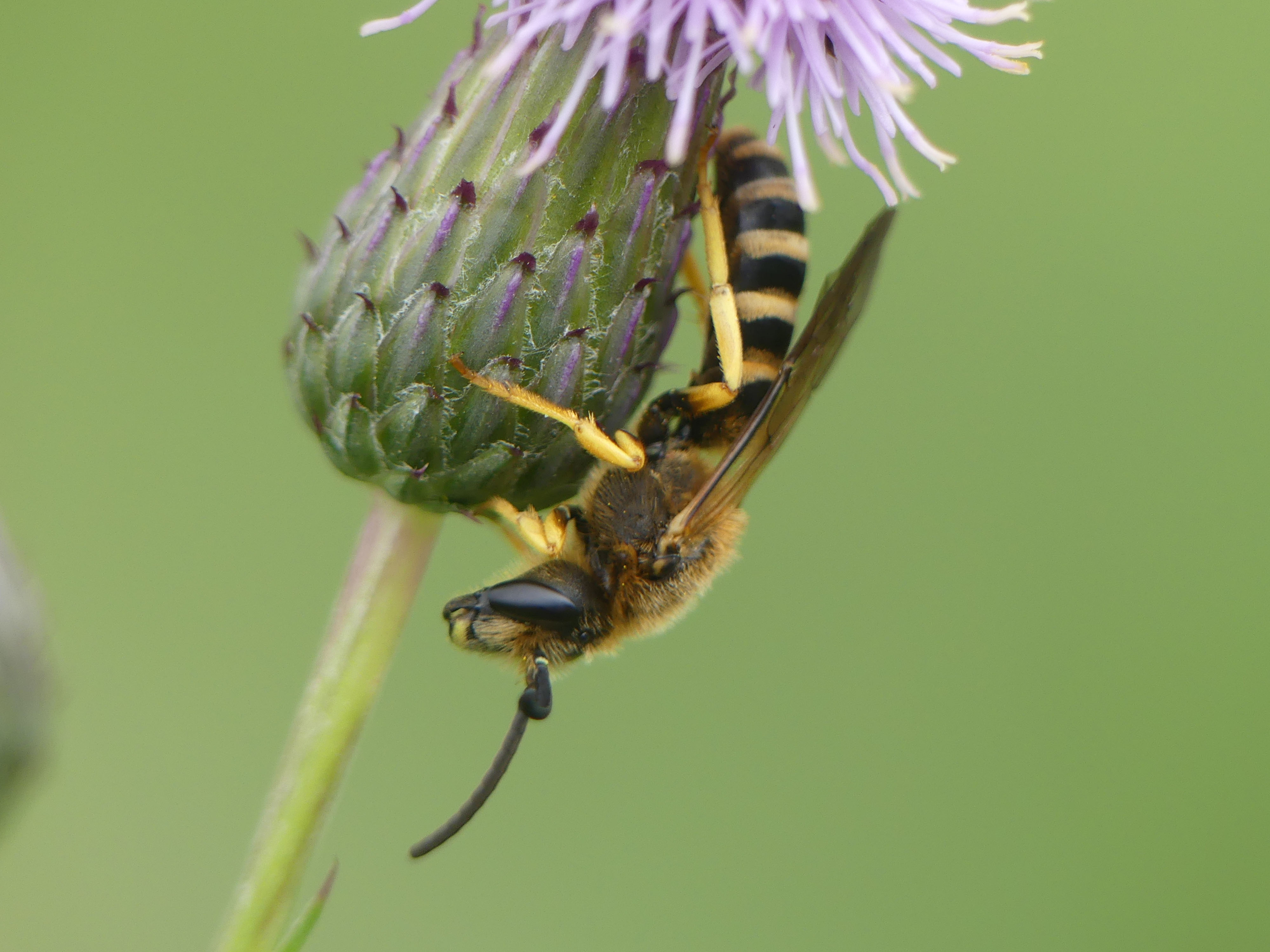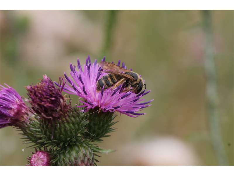 Gelbbindige Furchenbiene (Halictus scabiosae (Rossi, 1790)),Freital/Wurgwitz,Hammerteich,Wegrand auf Kratzdistel,Sep. 2019 (© Manfred Wonka)( Bild vergrößern)