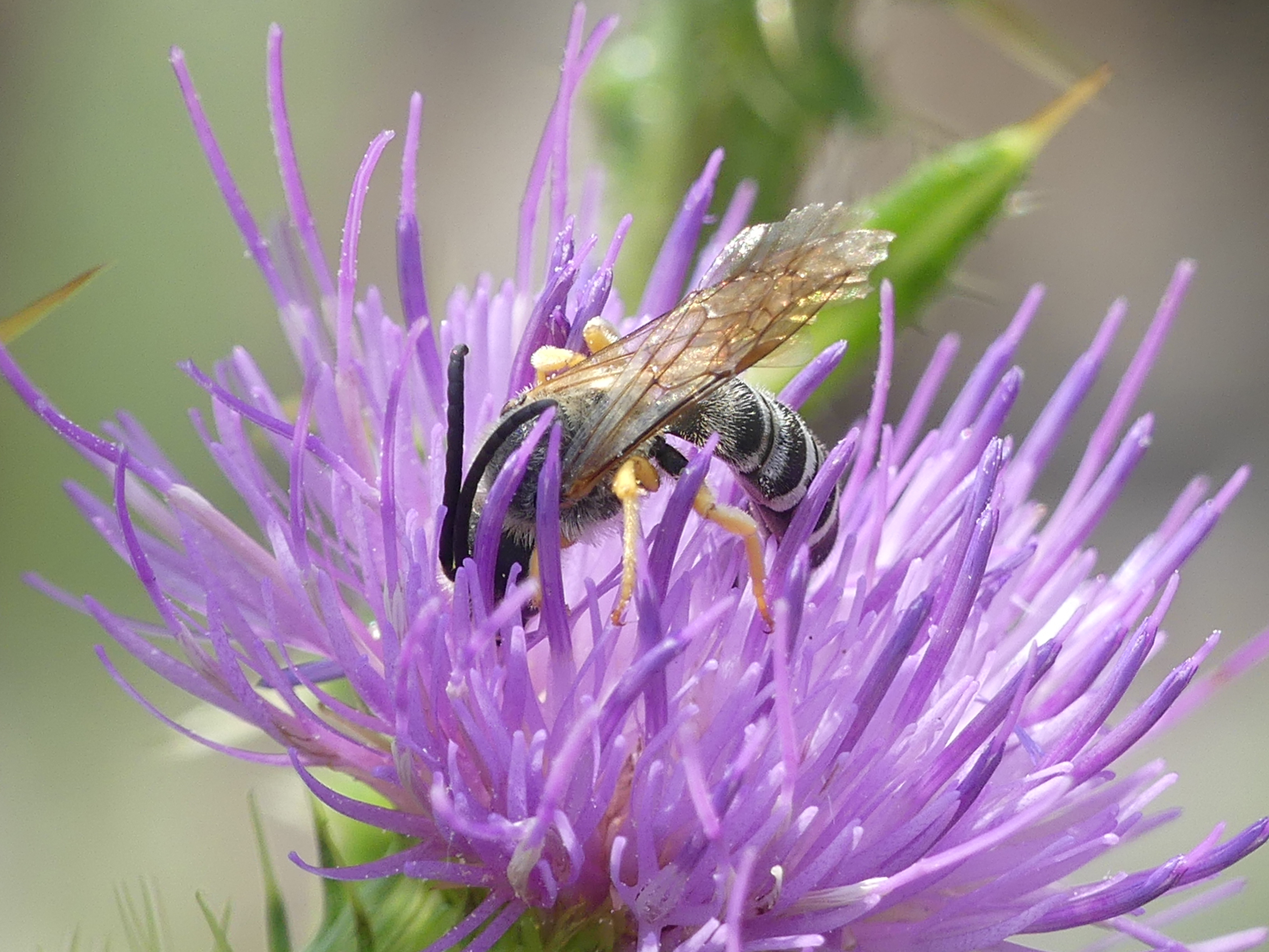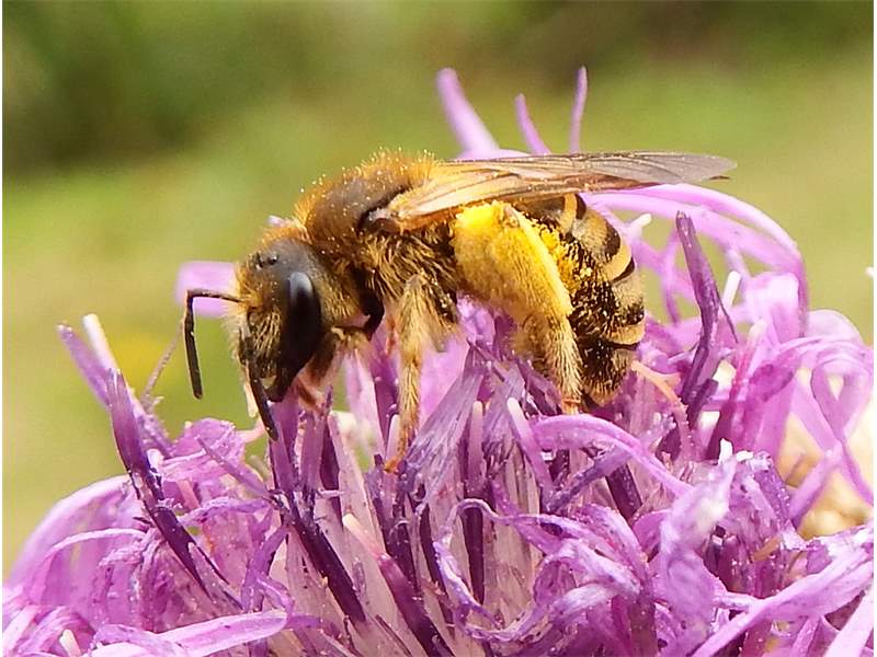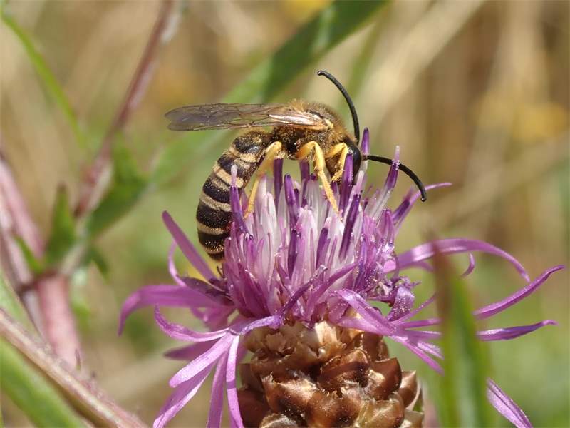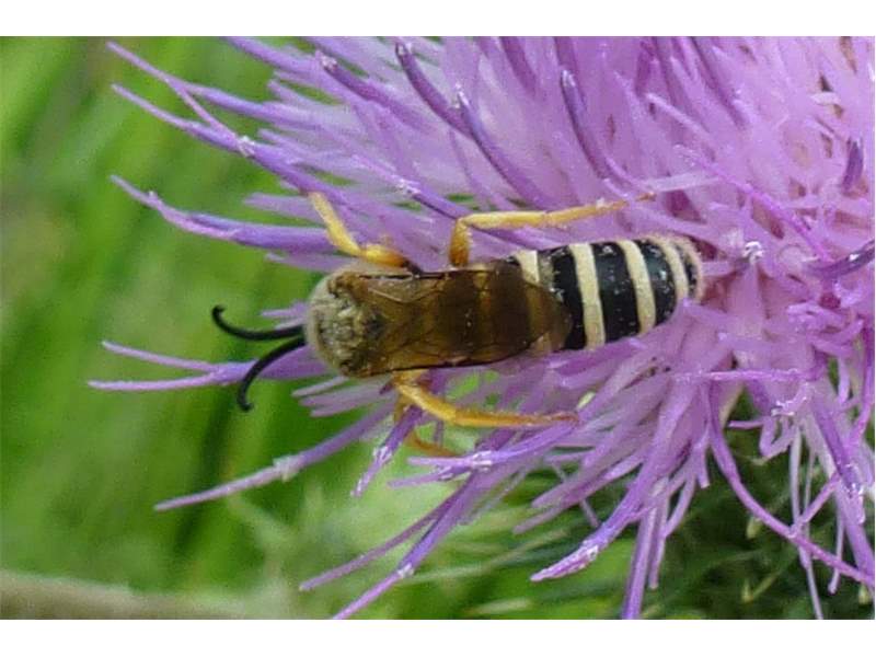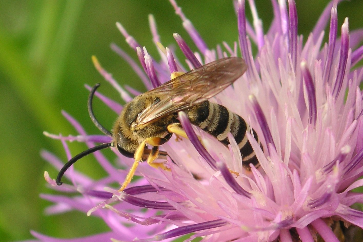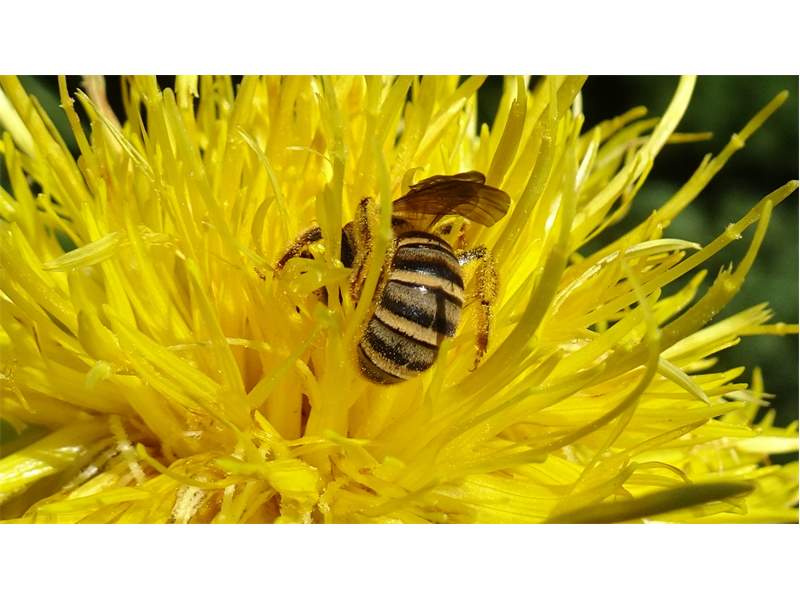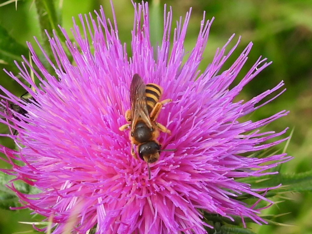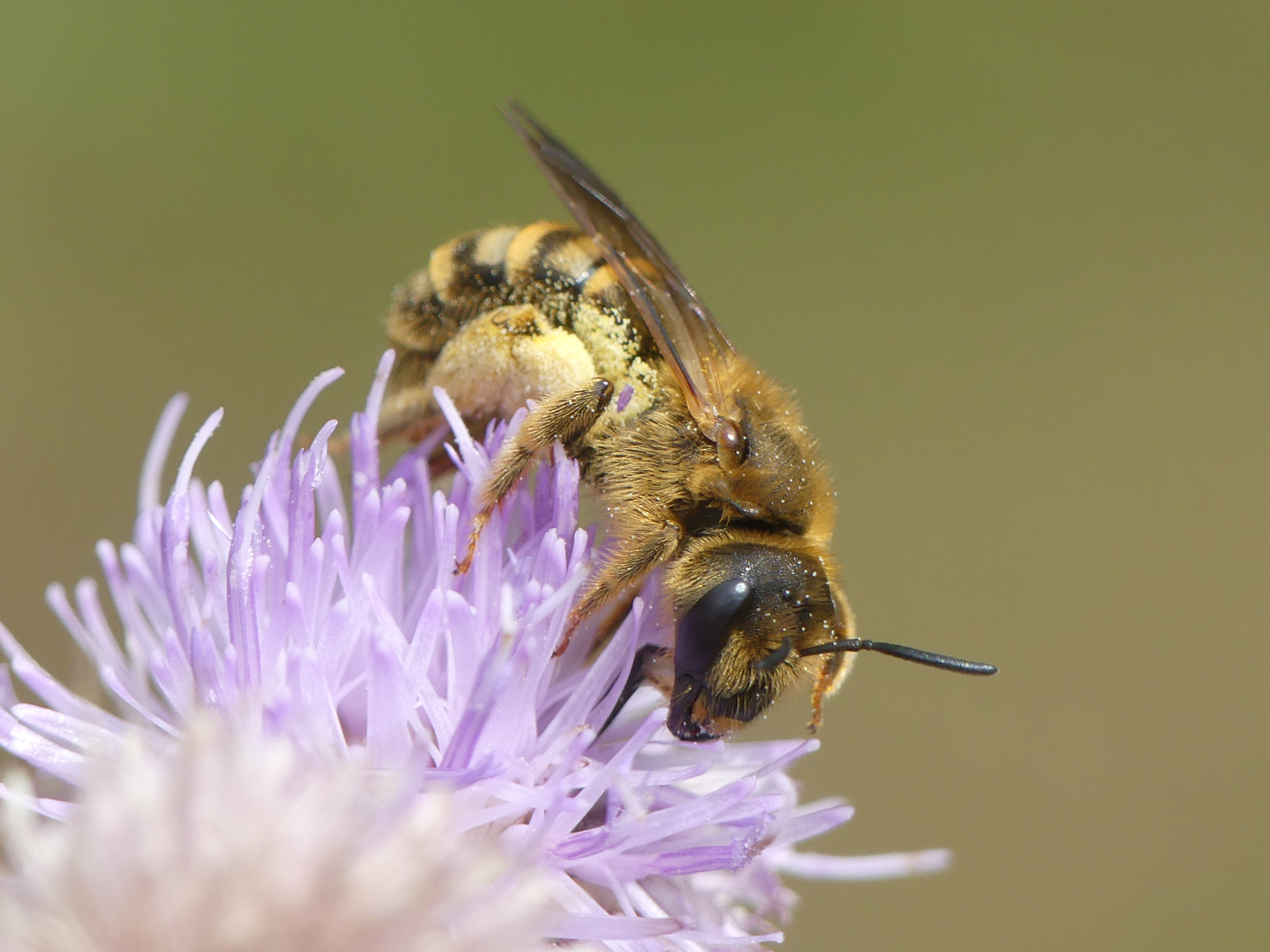 Gelbbindige Furchenbiene (Halictus scabiosae (Rossi, 1790)),Freital/Wurgwitz,Hammerteich,Wegrand auf Kratzdistel,Sep. 2019 (© Manfred Wonka)( Bild vergrößern)