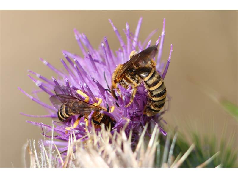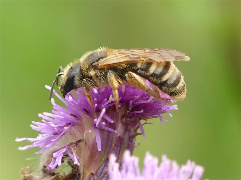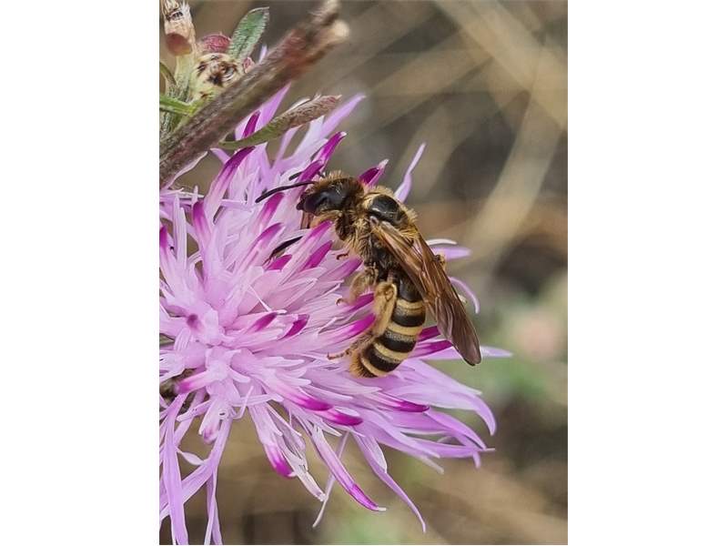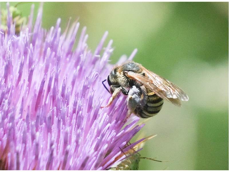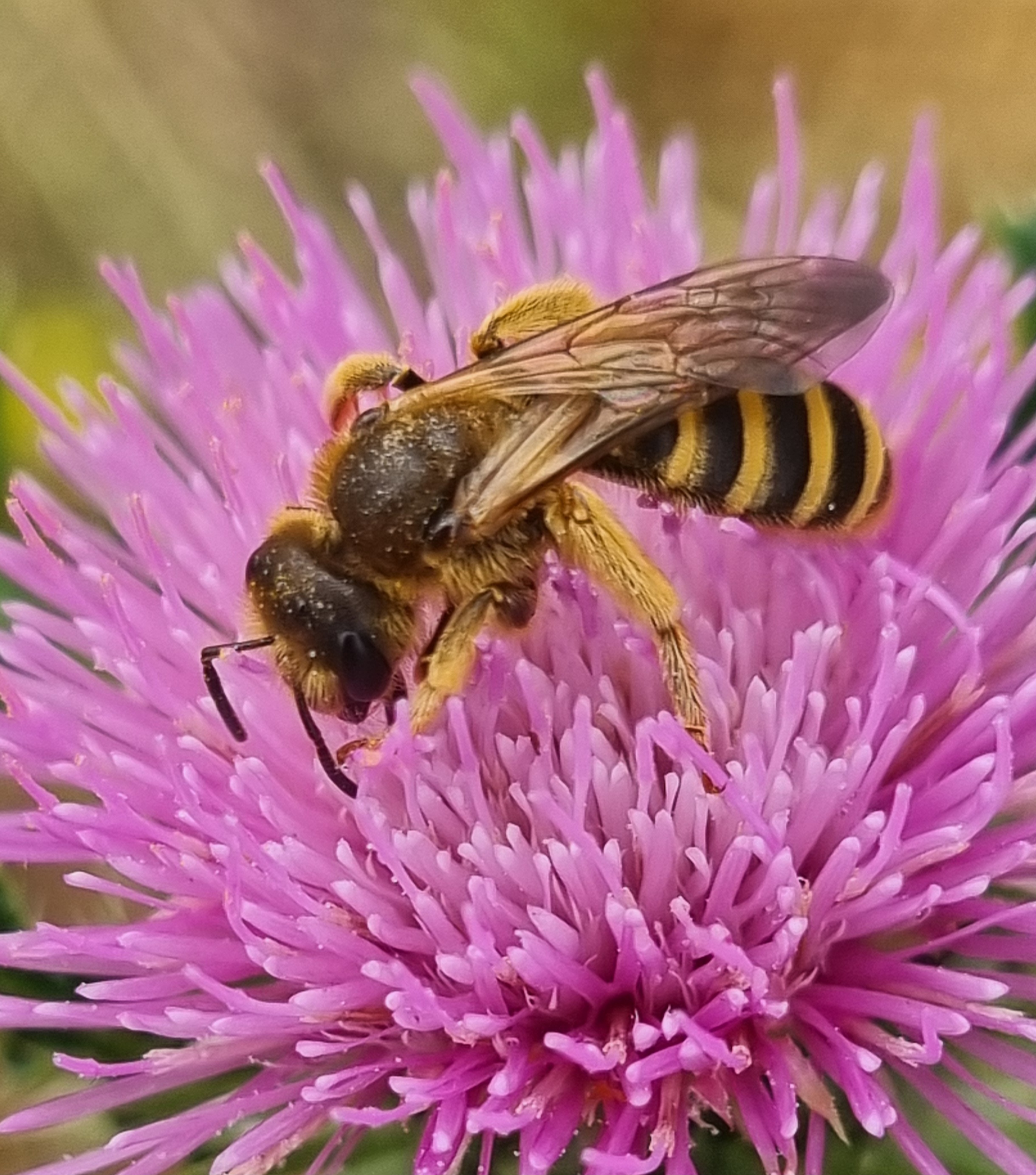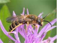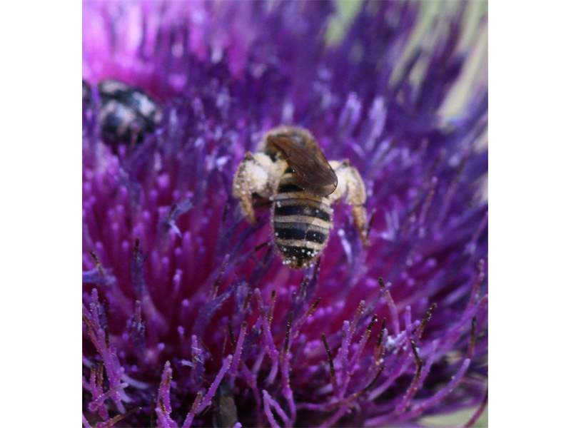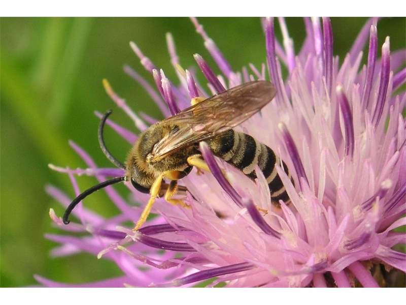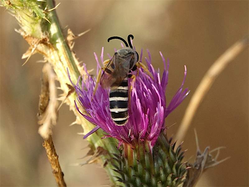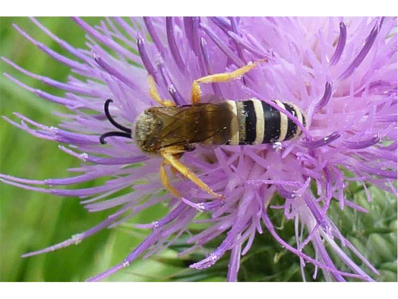 Gelbbindige Furchenbiene (Halictus scabiosae (Rossi, 1790)),Freital/Wurgwitz,Hammerteich,Wegrand auf Kratzdistel,Sep. 2019 (© Manfred Wonka)( Bild vergrößern)