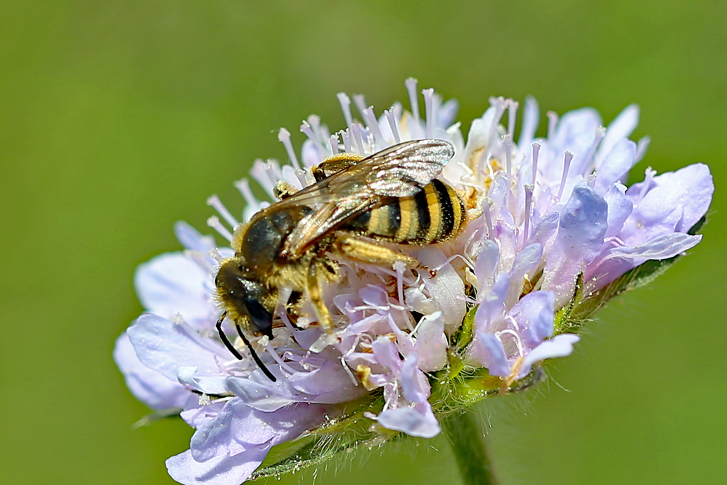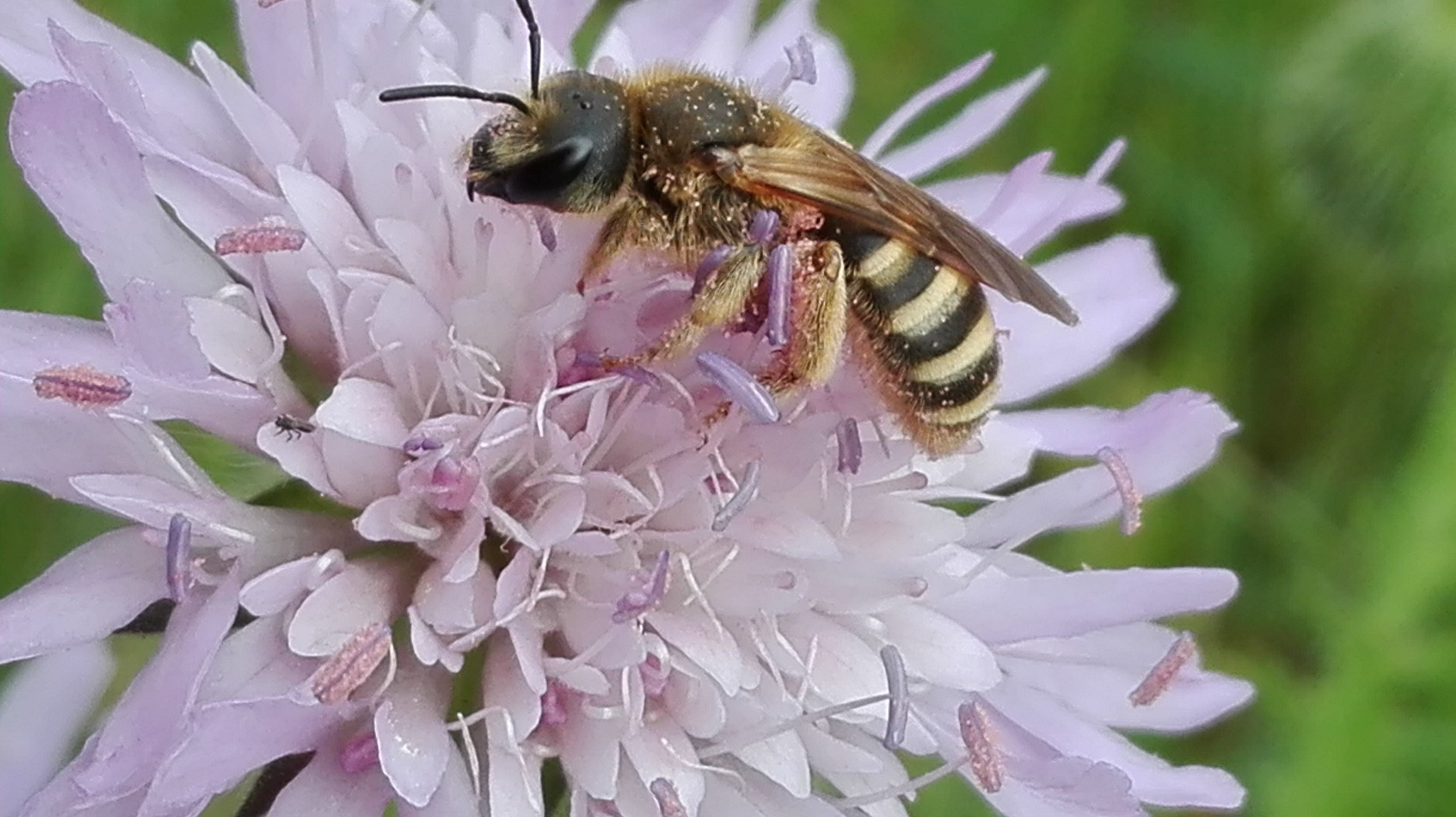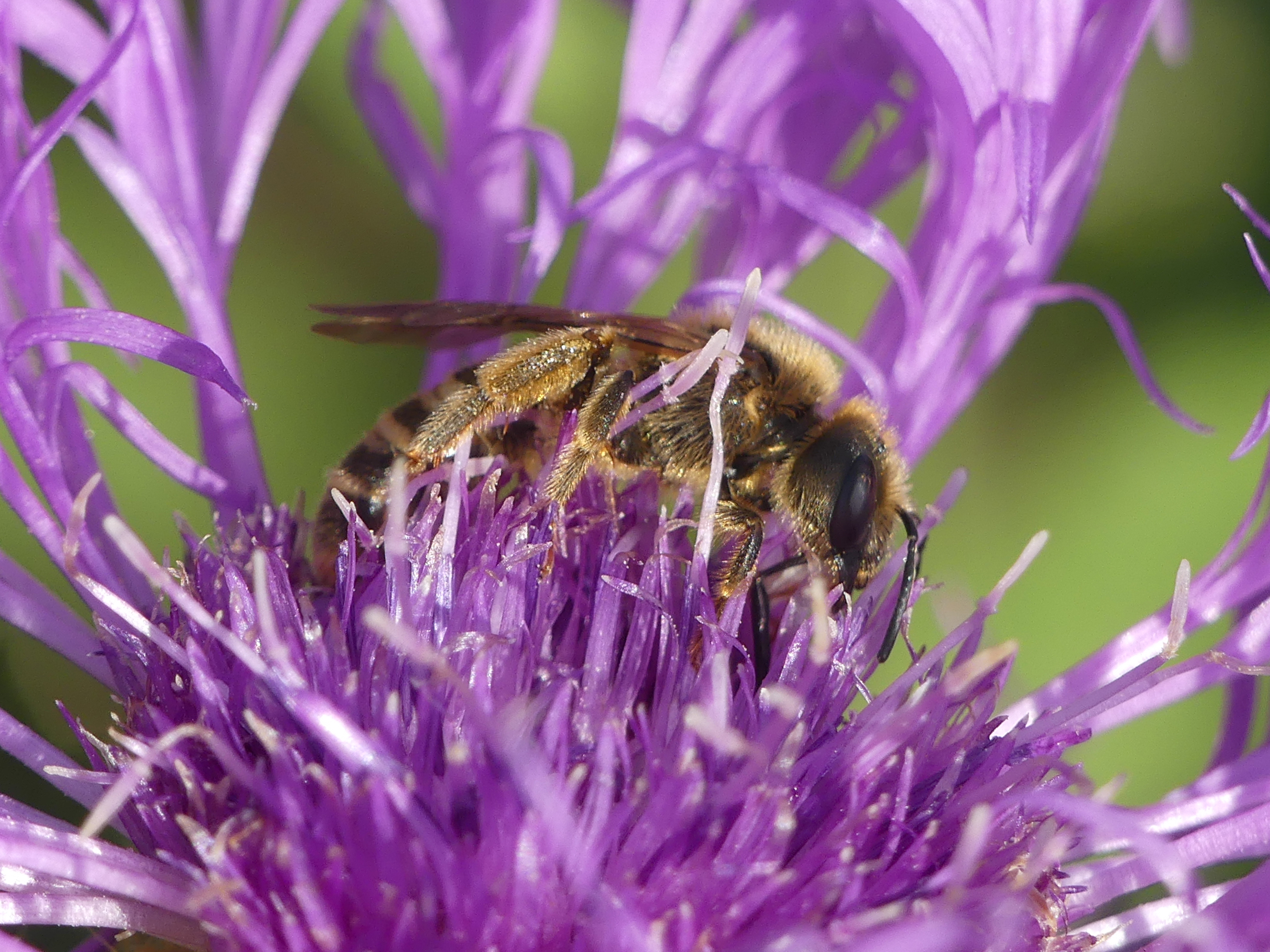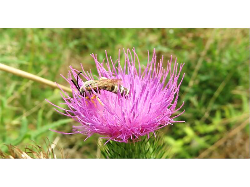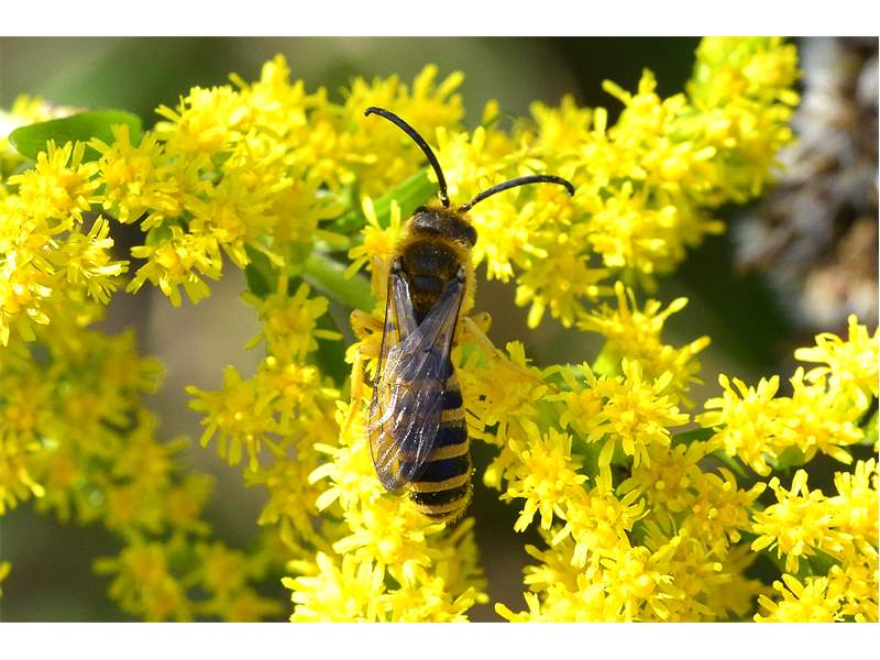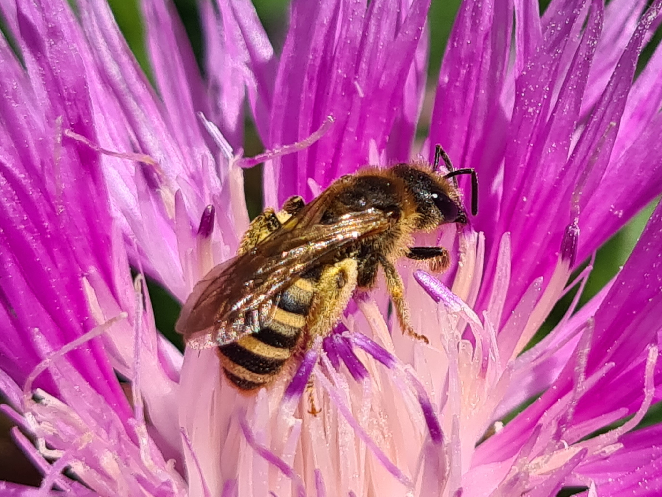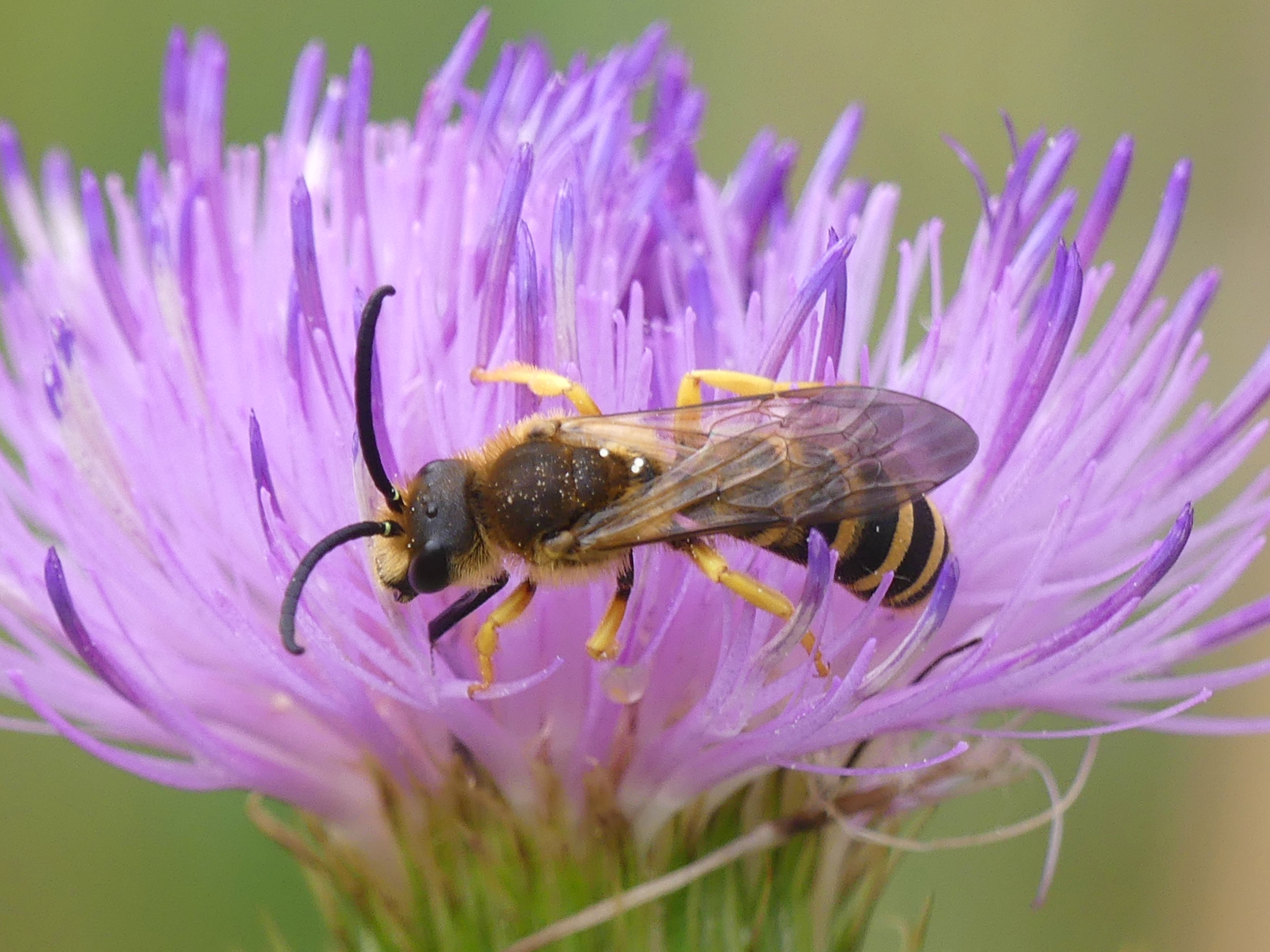 Gelbbindige Furchenbiene (Halictus scabiosae (Rossi, 1790)),Freital/Wurgwitz,Hammerteich,Wegrand auf Kratzdistel,Sep. 2019 (© Manfred Wonka)( Bild vergrößern)