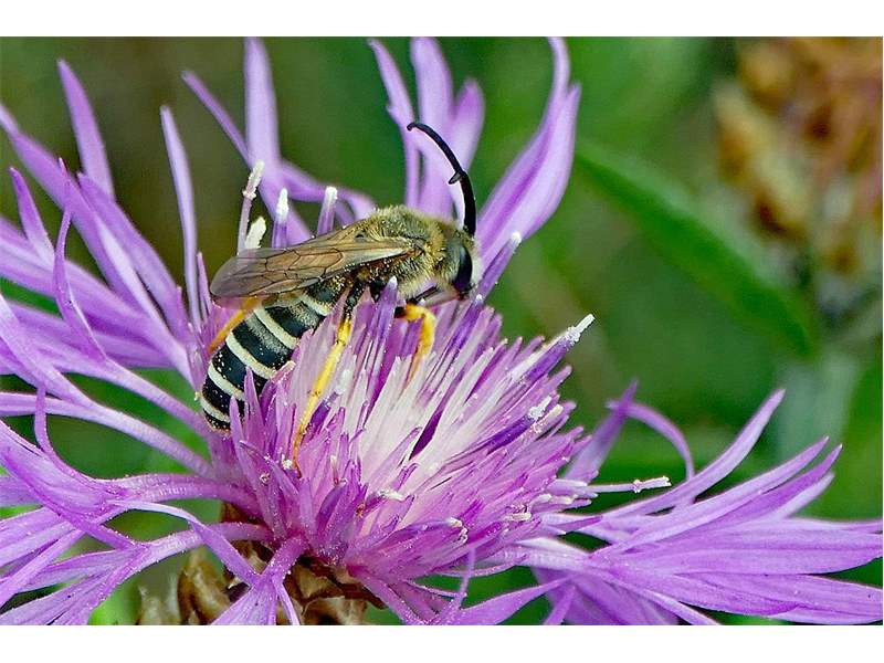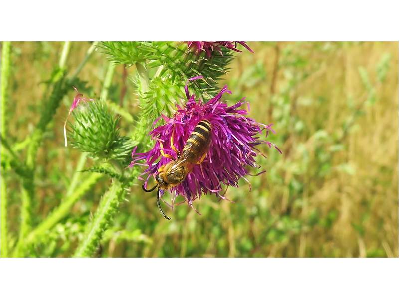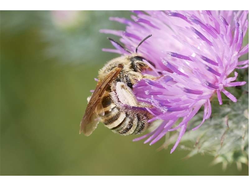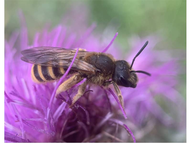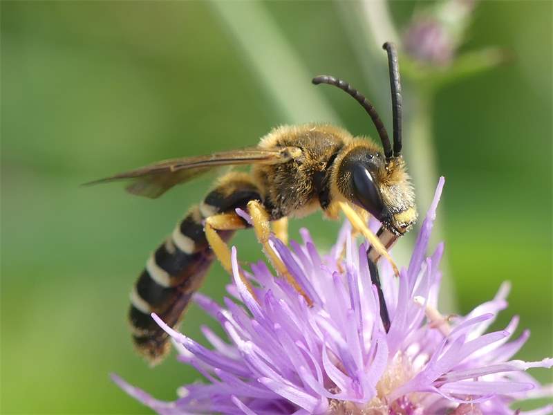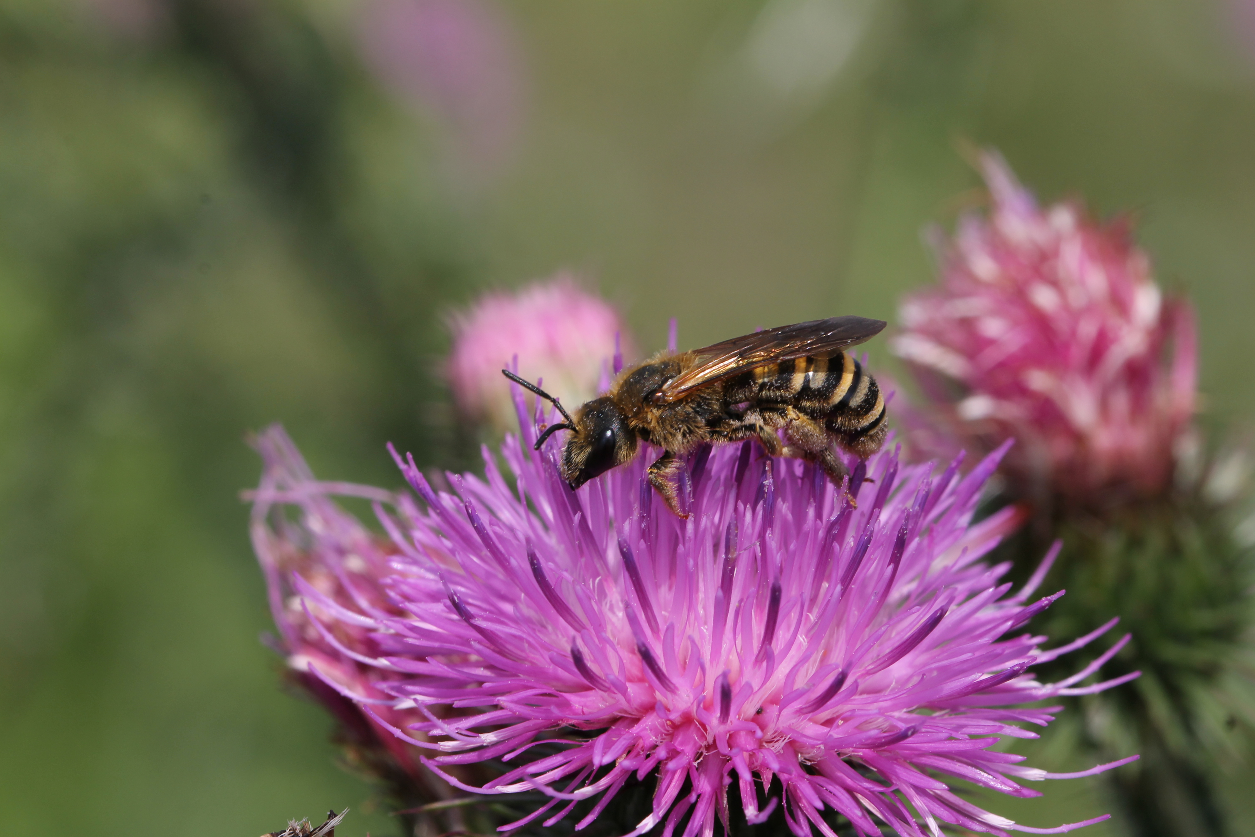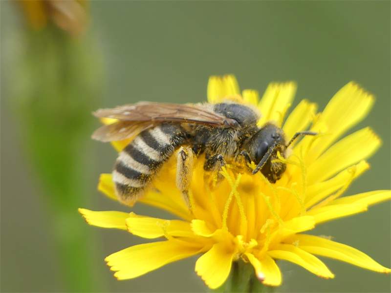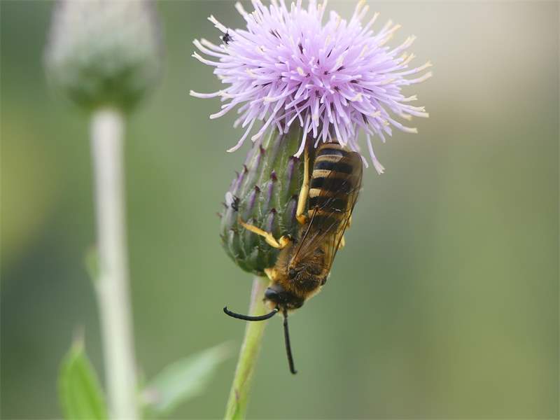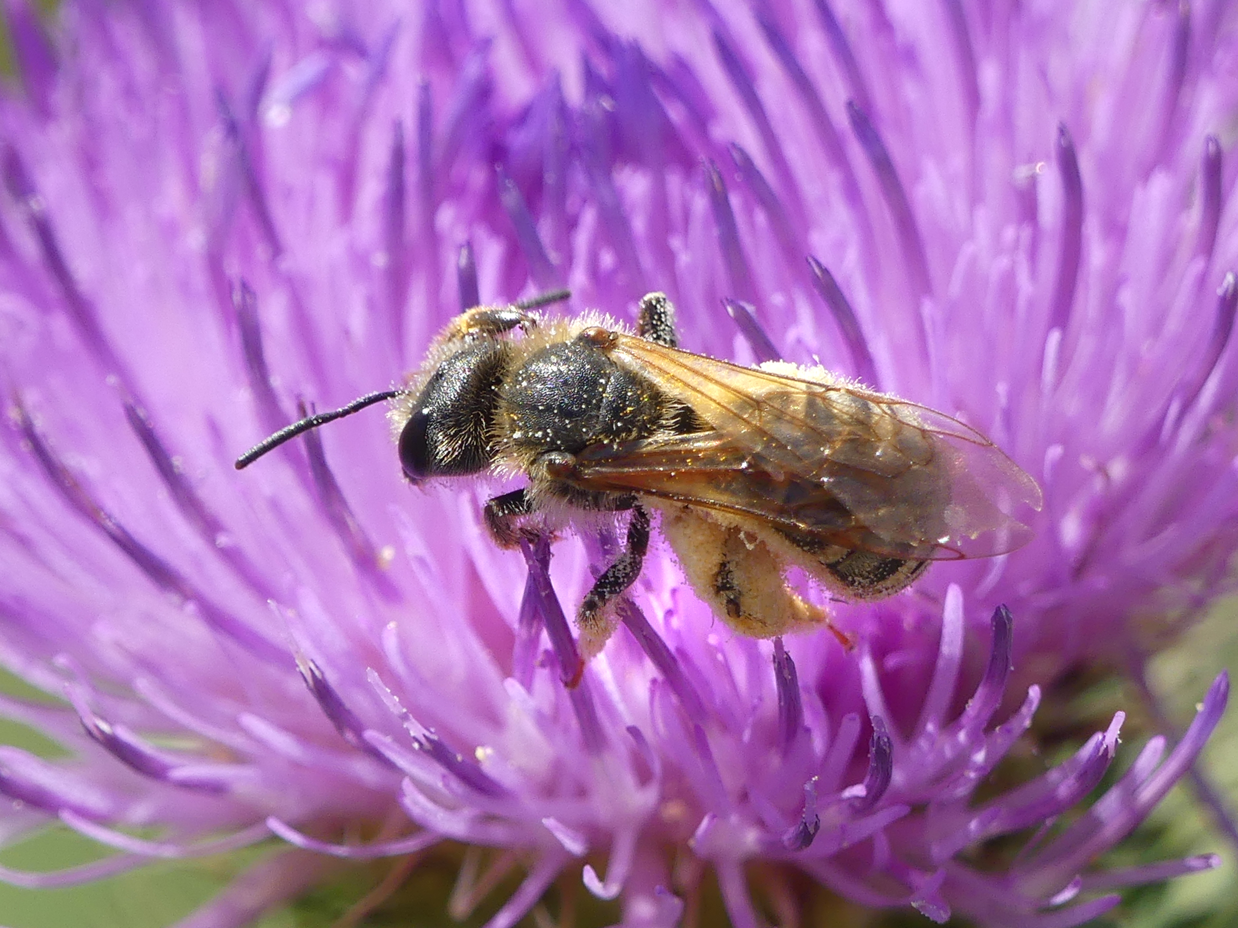 Gelbbindige Furchenbiene (Halictus scabiosae (Rossi, 1790)),Freital/Wurgwitz,Hammerteich,Wegrand auf Kratzdistel,Sep. 2019 (© Manfred Wonka)( Bild vergrößern)