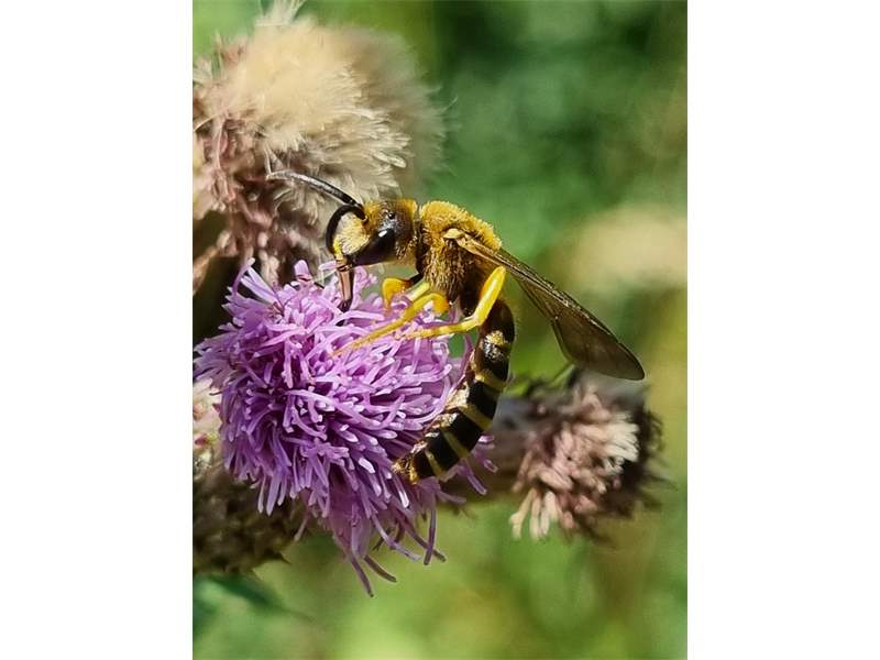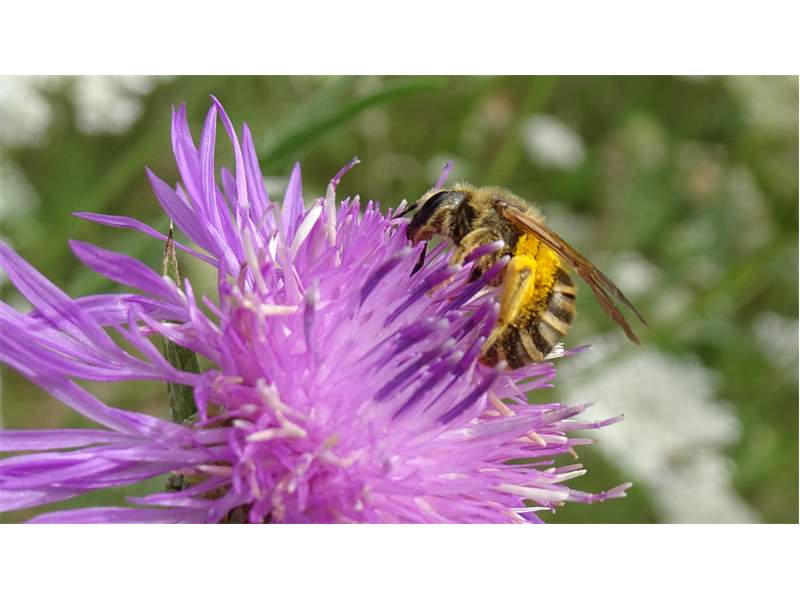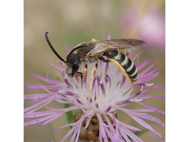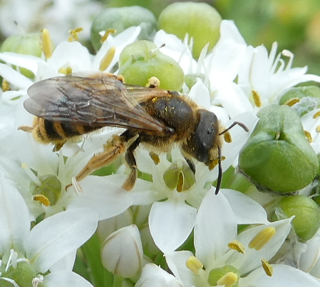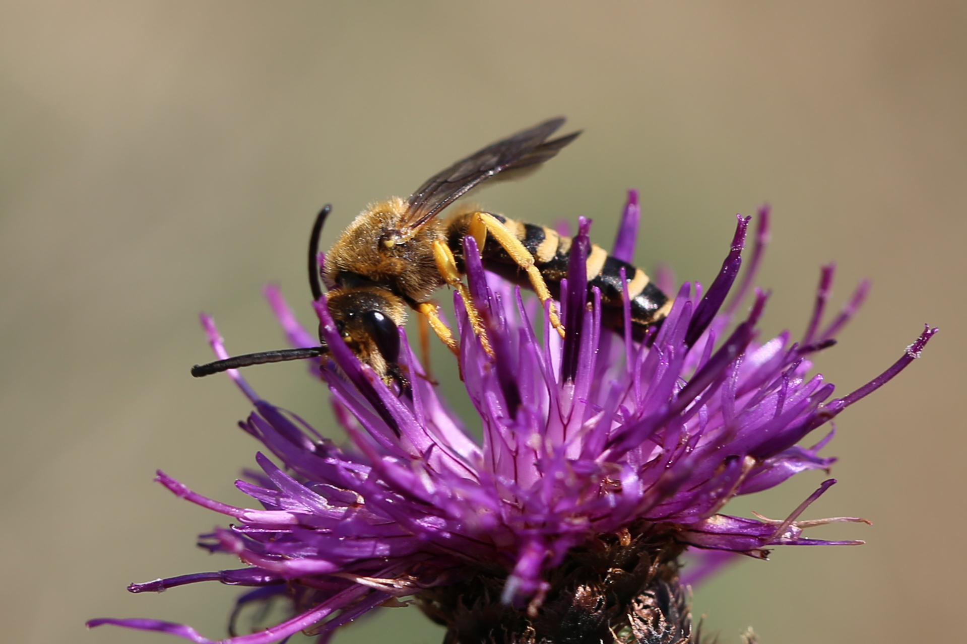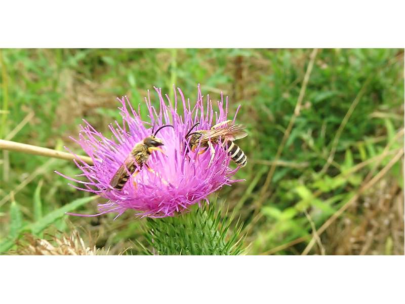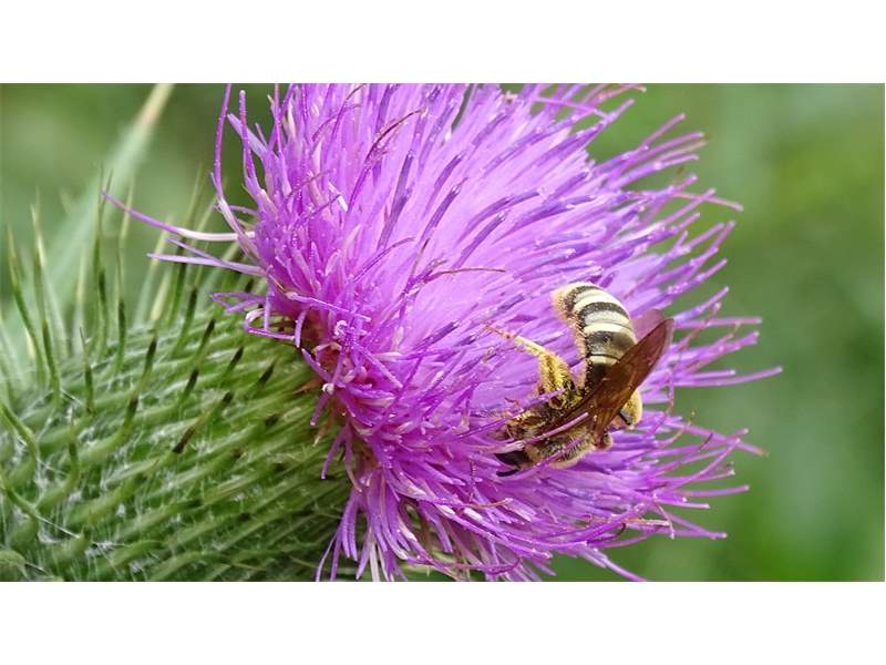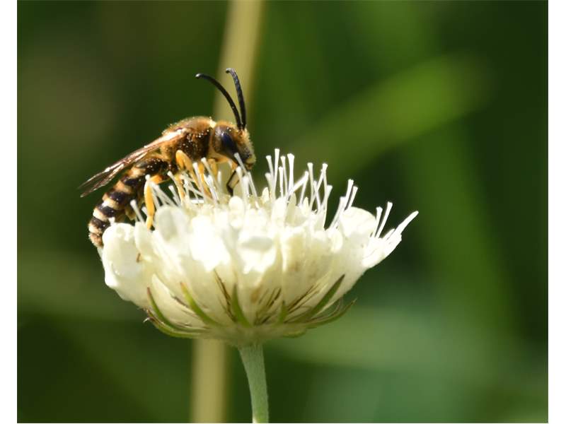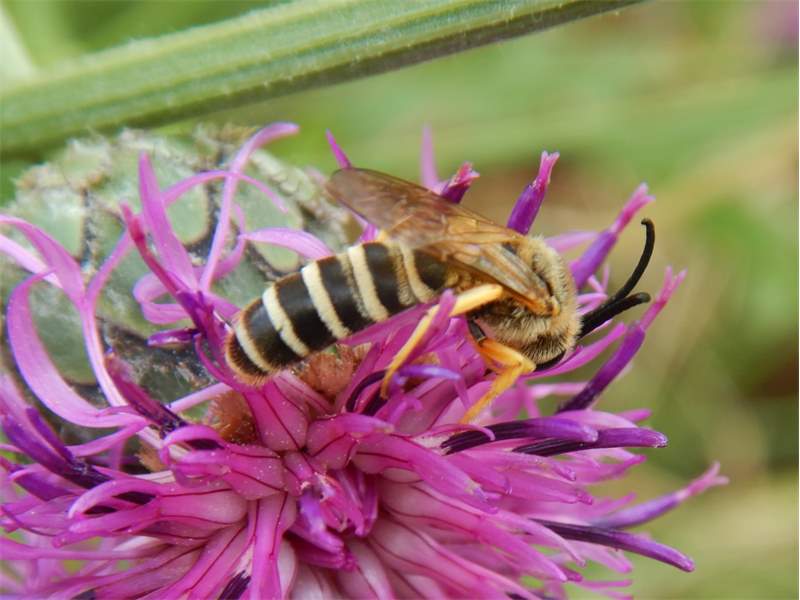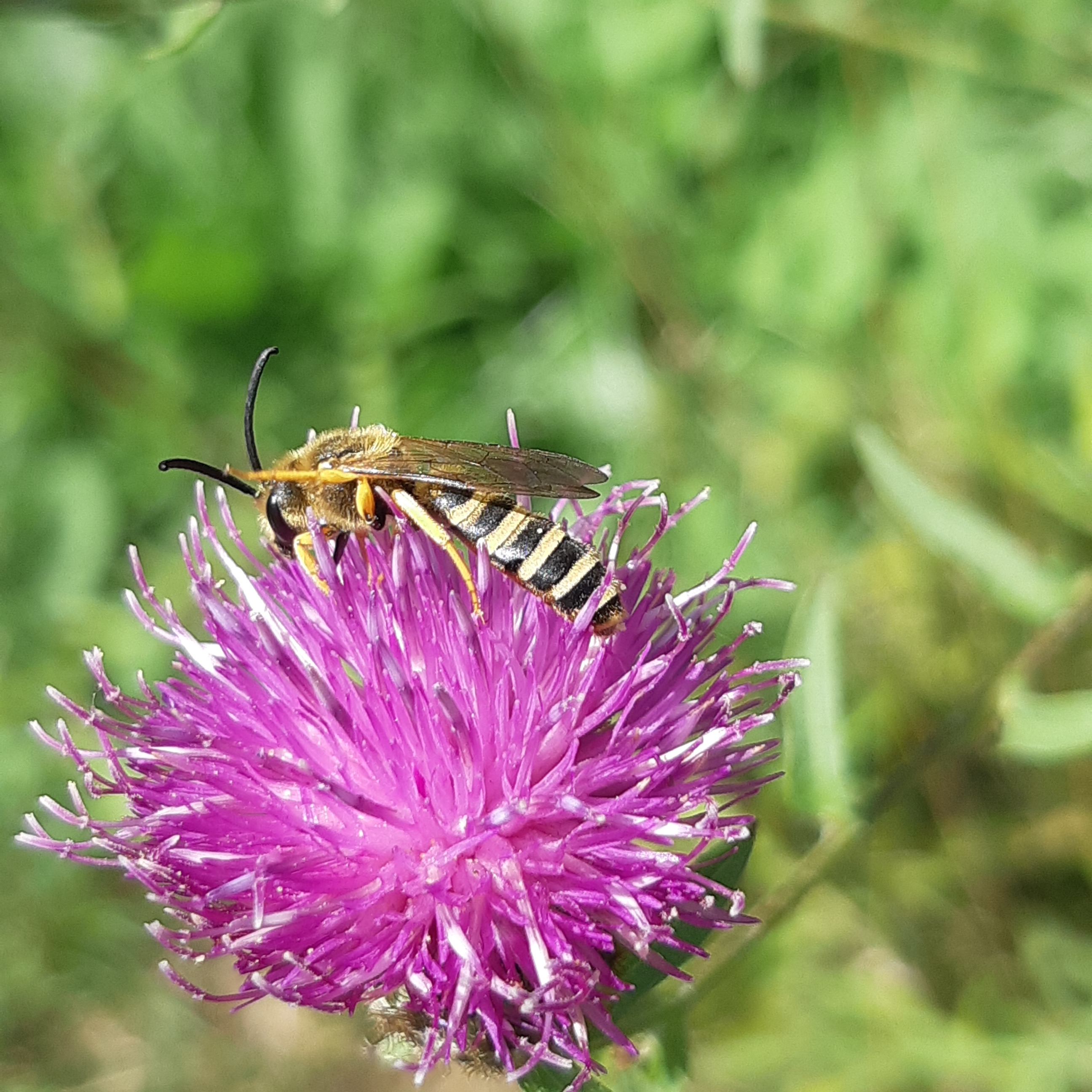 Gelbbindige Furchenbiene (Halictus scabiosae (Rossi, 1790)),Freital/Wurgwitz,Hammerteich,Wegrand auf Kratzdistel,Sep. 2019 (© Manfred Wonka)( Bild vergrößern)
