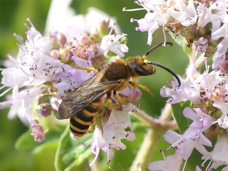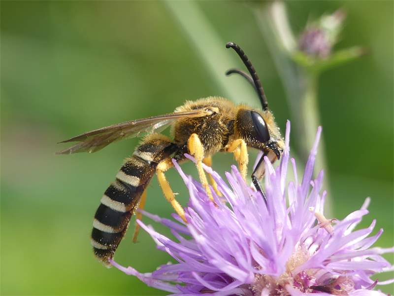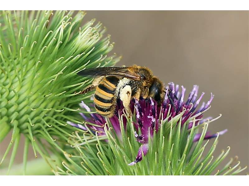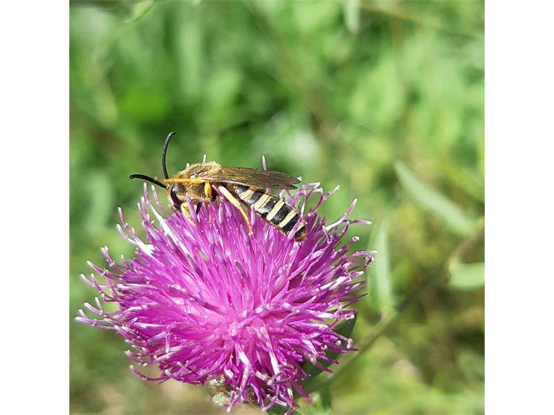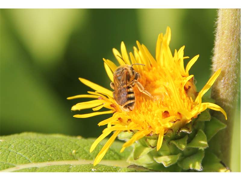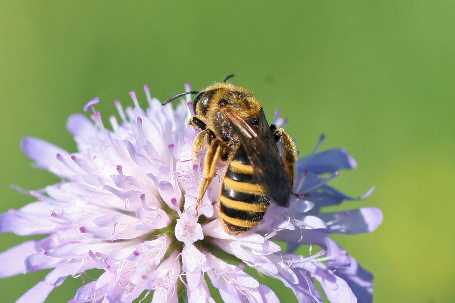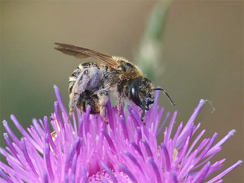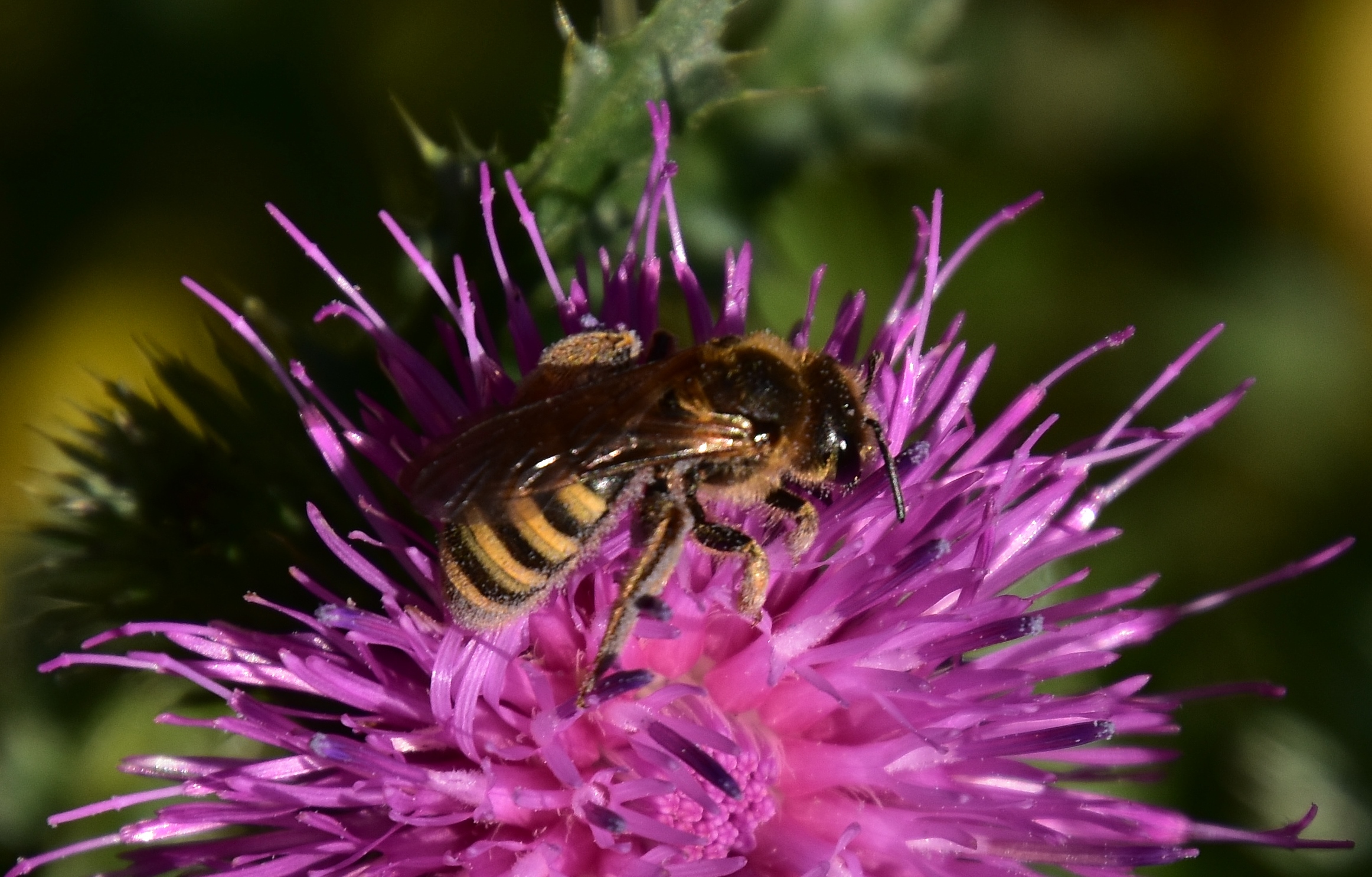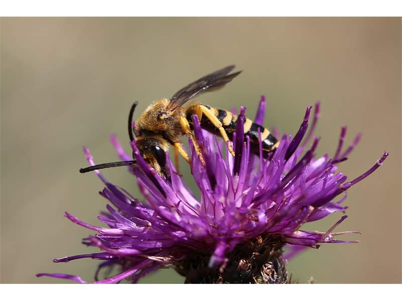Gelbbindige Furchenbiene (Halictus scabiosae (Rossi, 1790)),Freital/Wurgwitz,Hammerteich,Wegrand auf Kratzdistel,Sep. 2019 (© Manfred Wonka)( Bild vergrößern)
