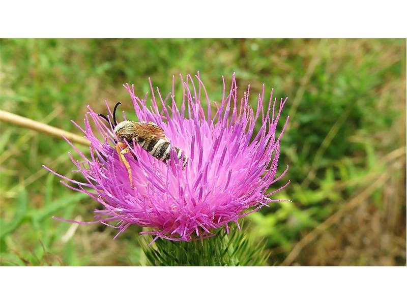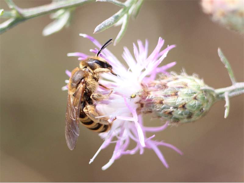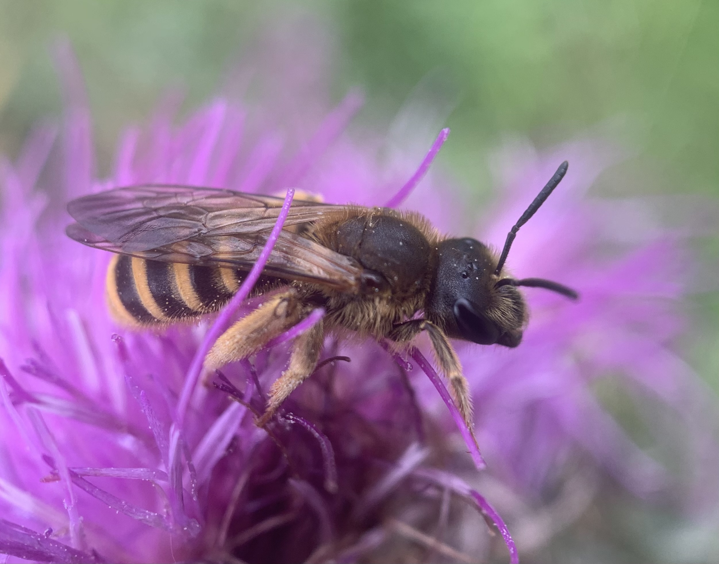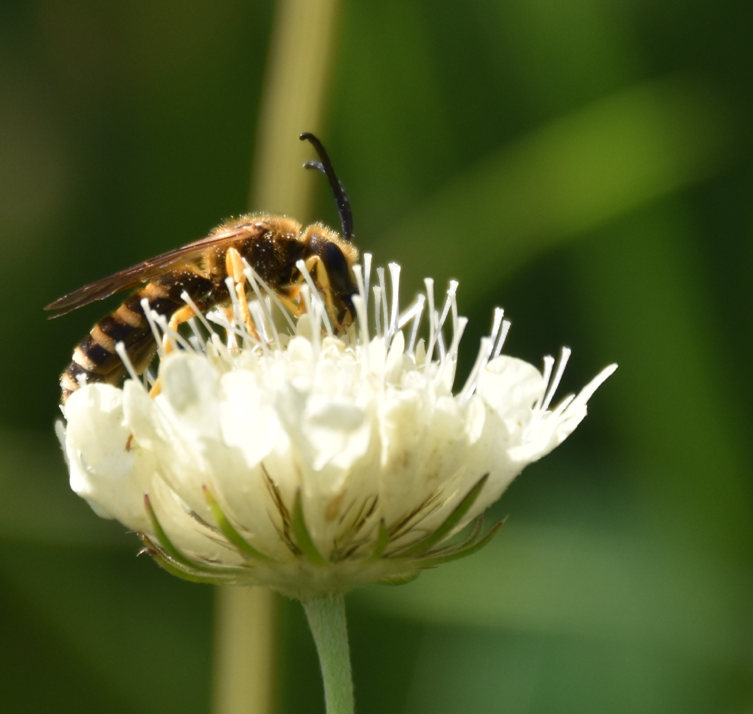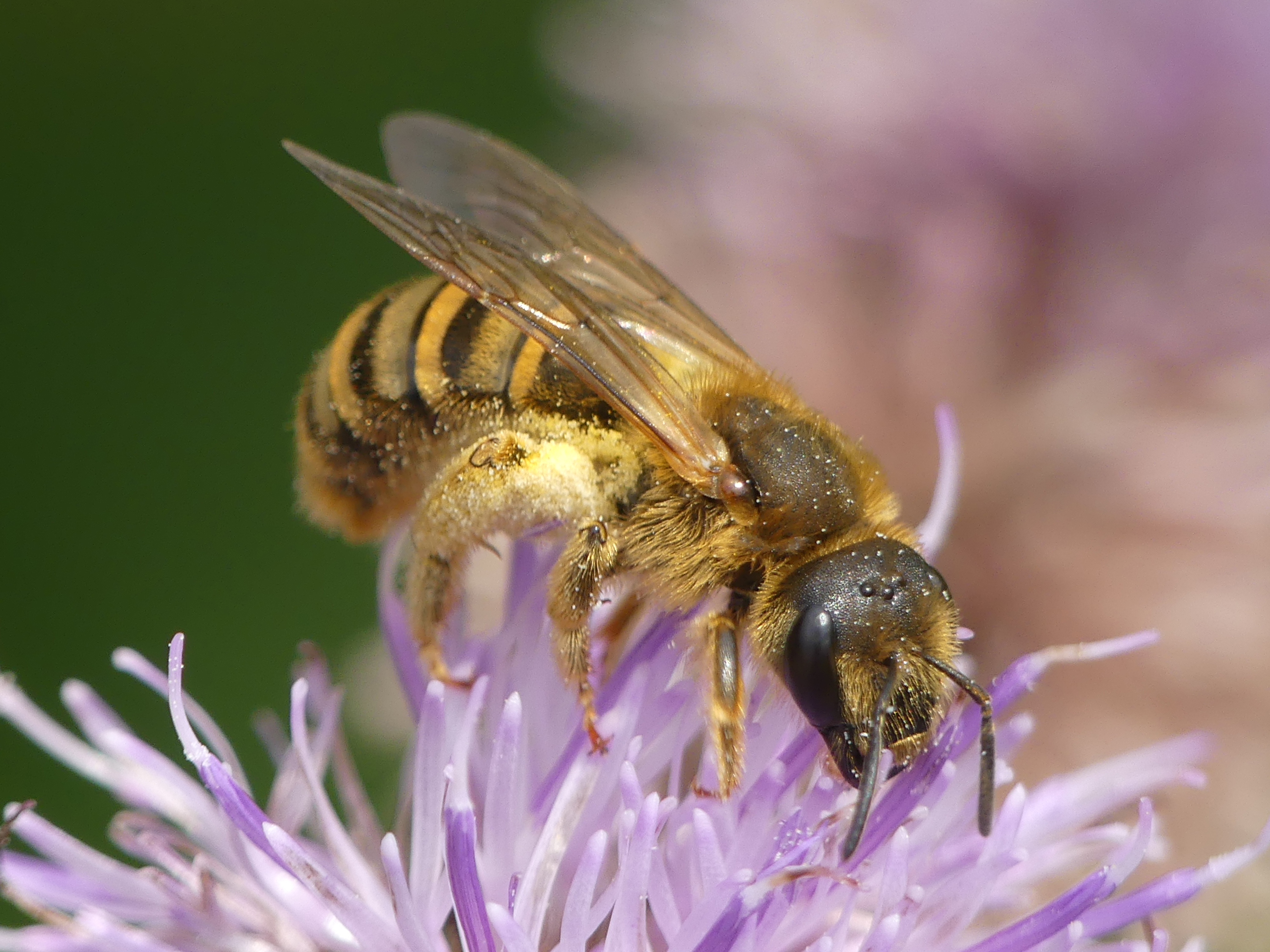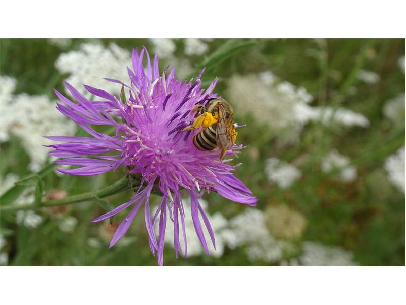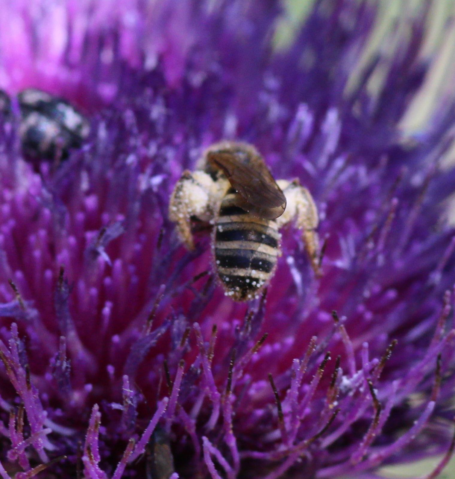 Gelbbindige Furchenbiene (Halictus scabiosae (Rossi, 1790)),Freital/Wurgwitz,Hammerteich,Wegrand auf Kratzdistel,Sep. 2019 (© Manfred Wonka)( Bild vergrößern)