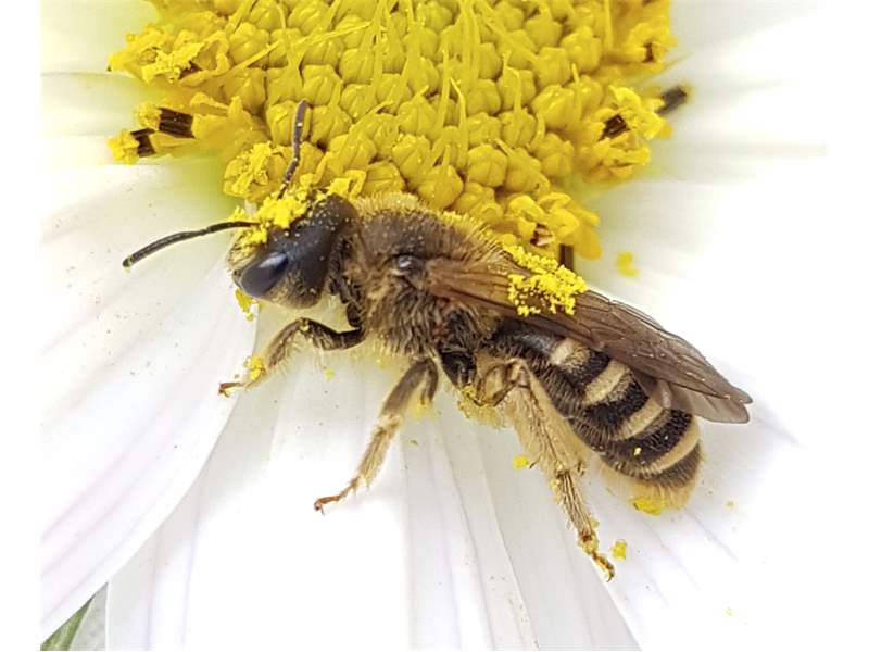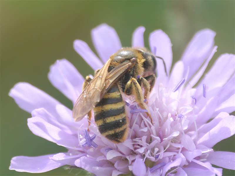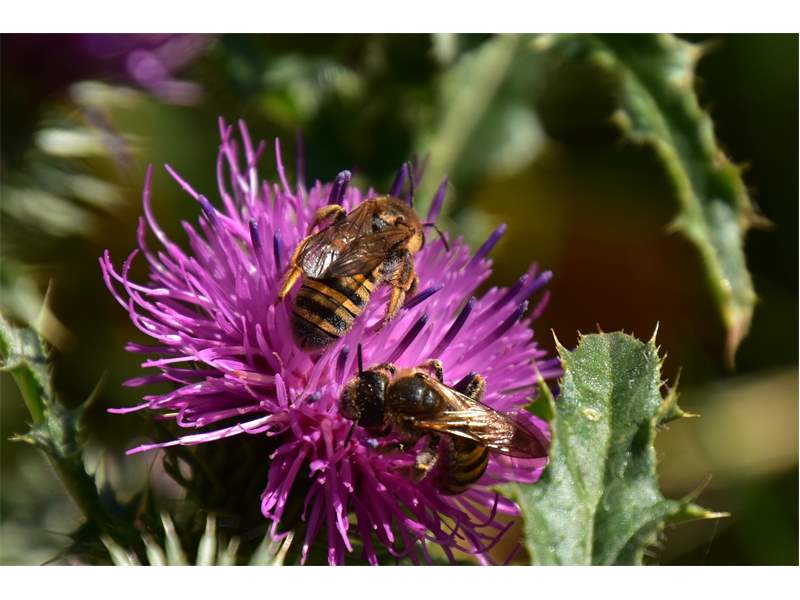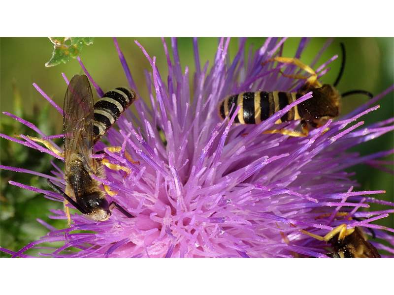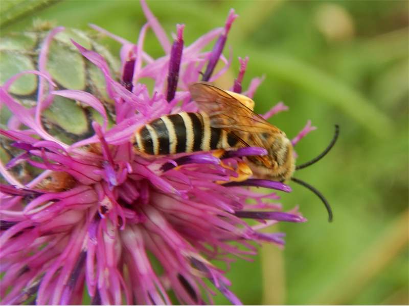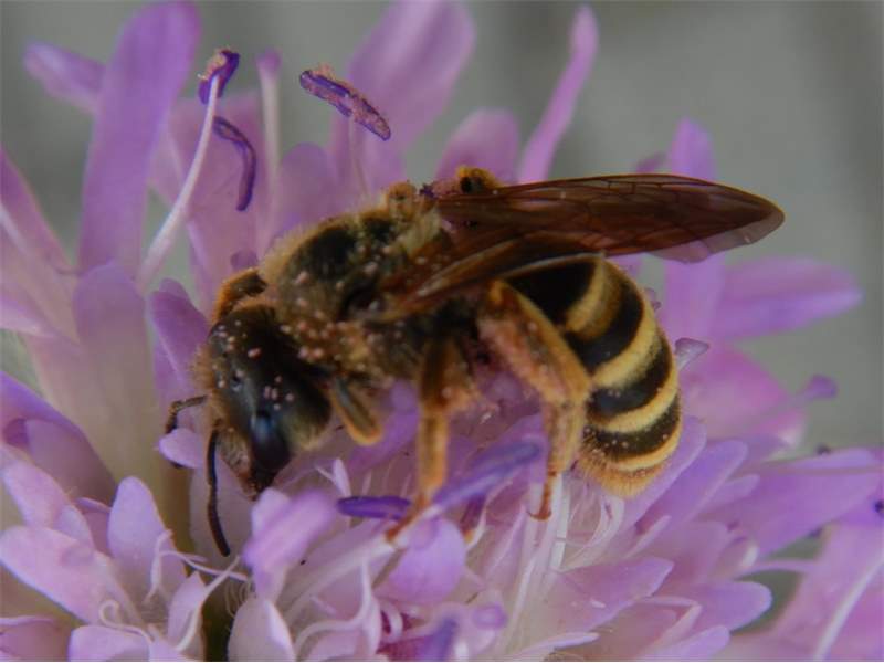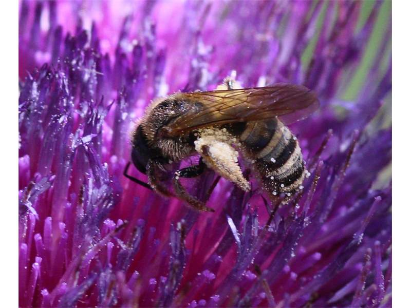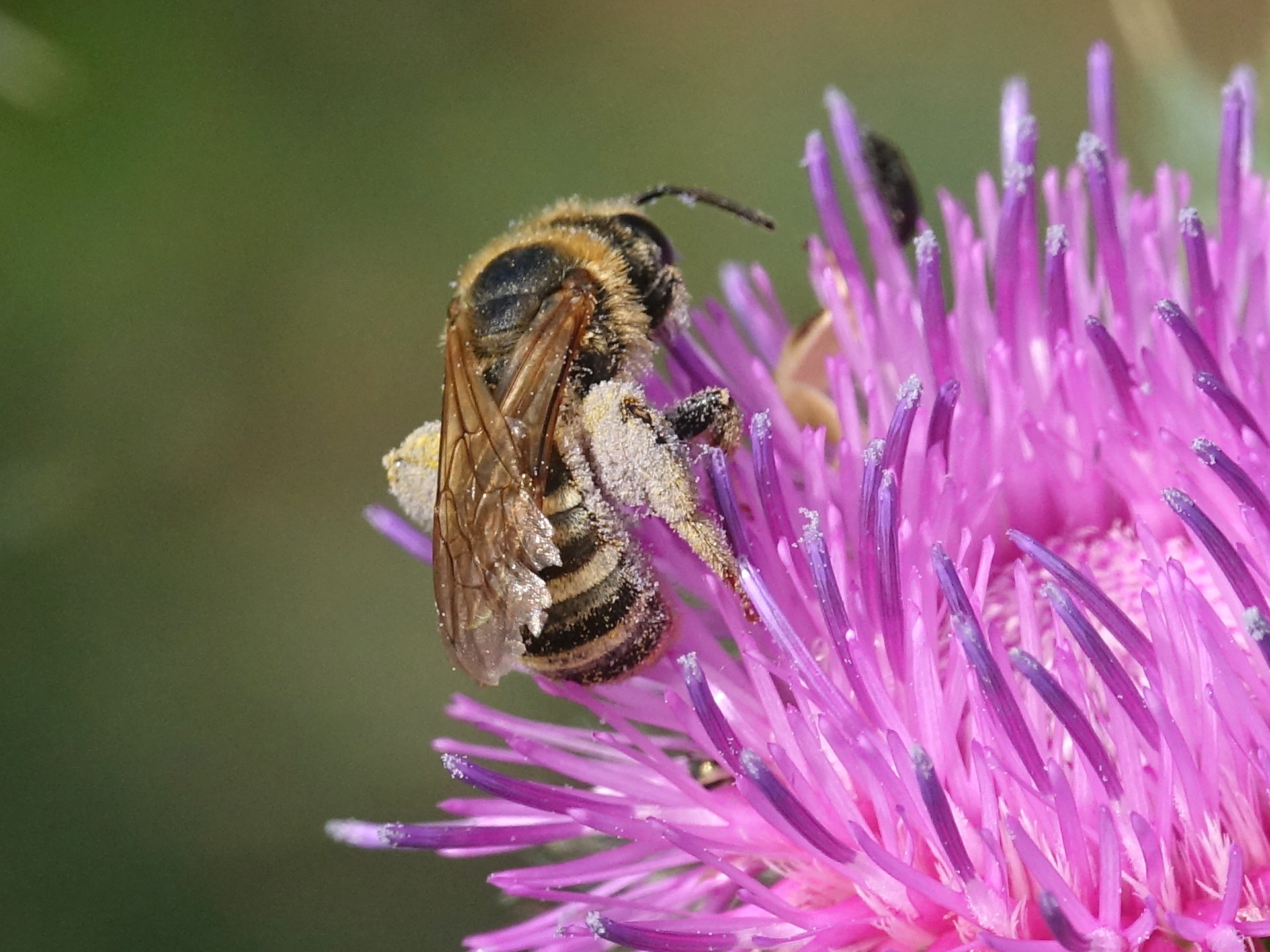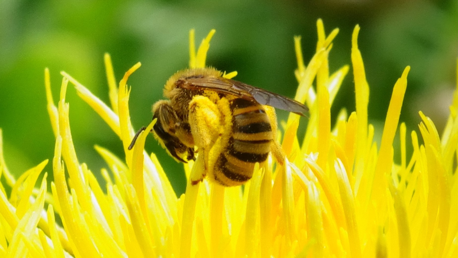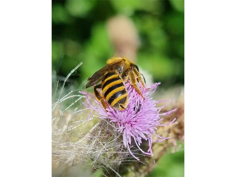Gelbbindige Furchenbiene (Halictus scabiosae (Rossi, 1790)),Freital/Wurgwitz,Hammerteich,Wegrand auf Kratzdistel,Sep. 2019 (© Manfred Wonka)( Bild vergrößern)