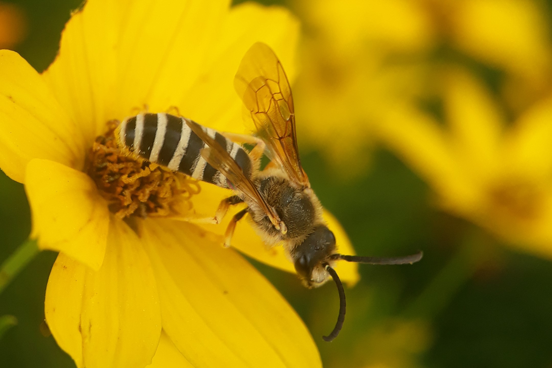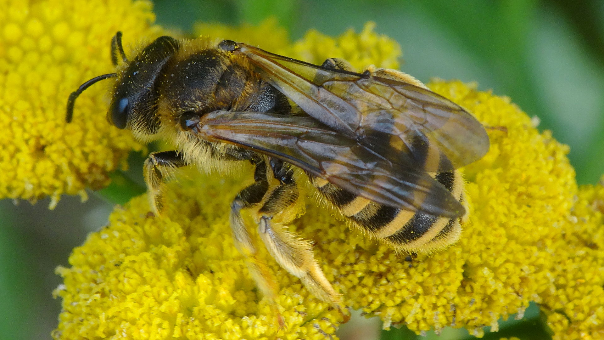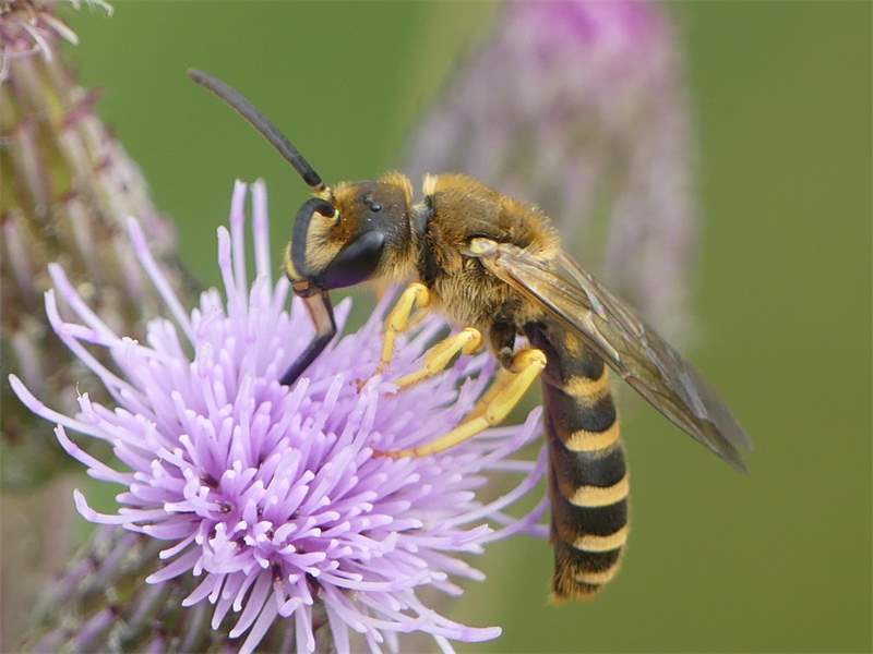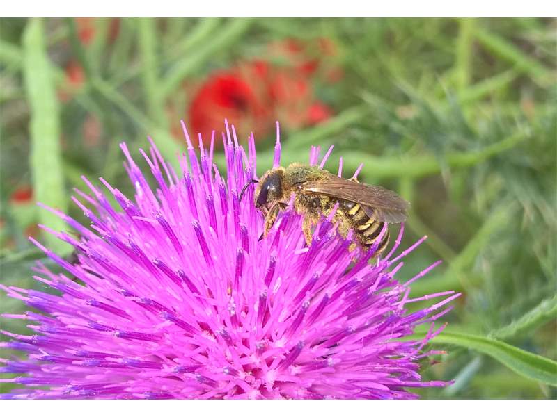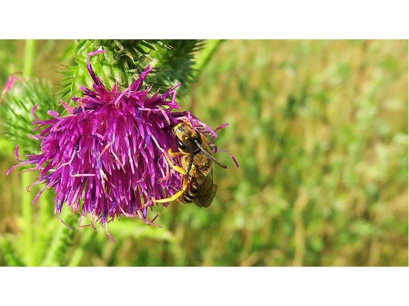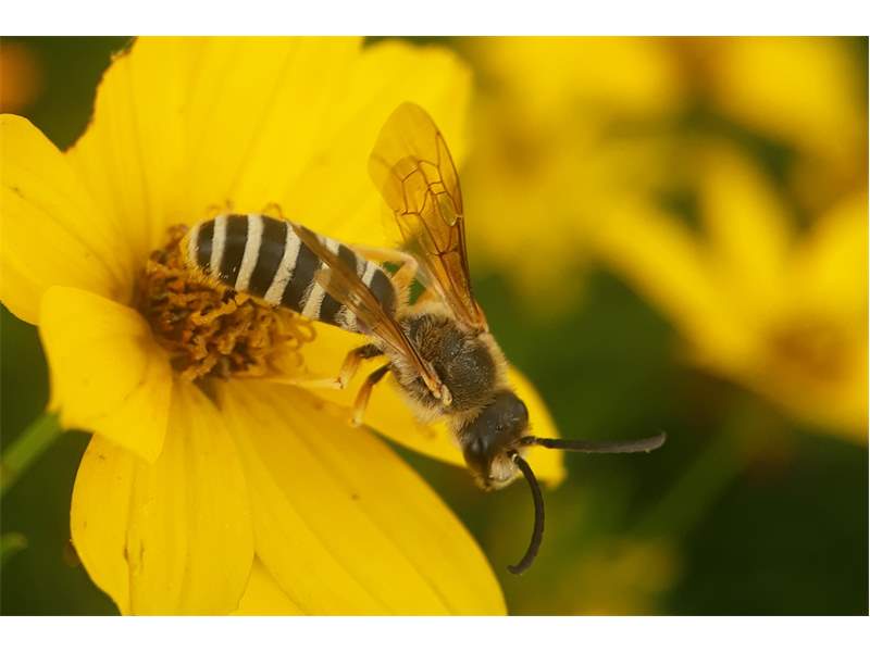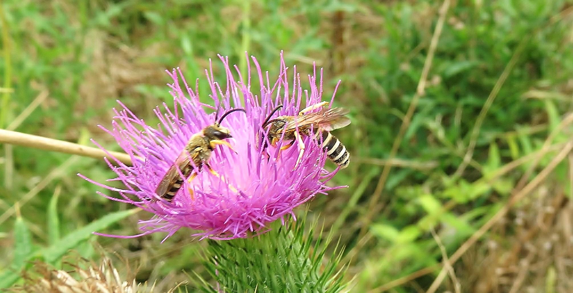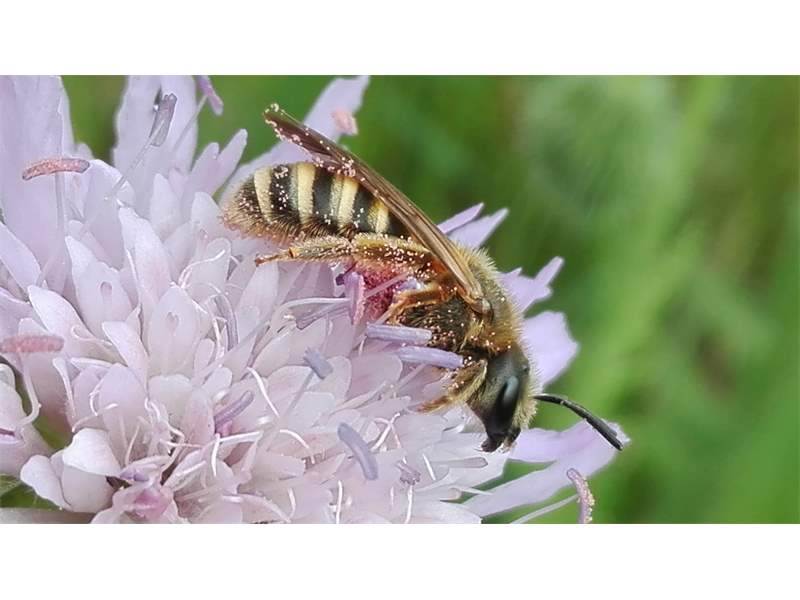 Gelbbindige Furchenbiene (Halictus scabiosae (Rossi, 1790)),Freital/Wurgwitz,Hammerteich,Wegrand auf Kratzdistel,Sep. 2019 (© Manfred Wonka)( Bild vergrößern)