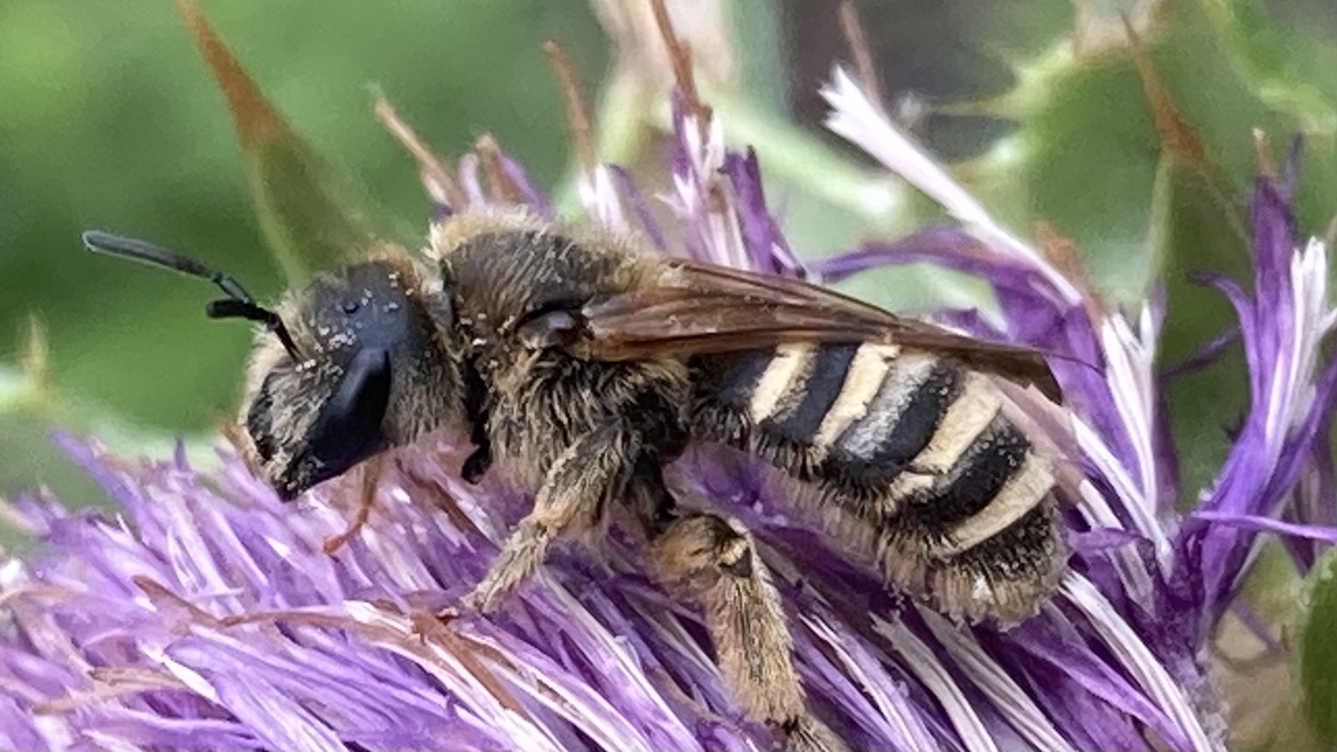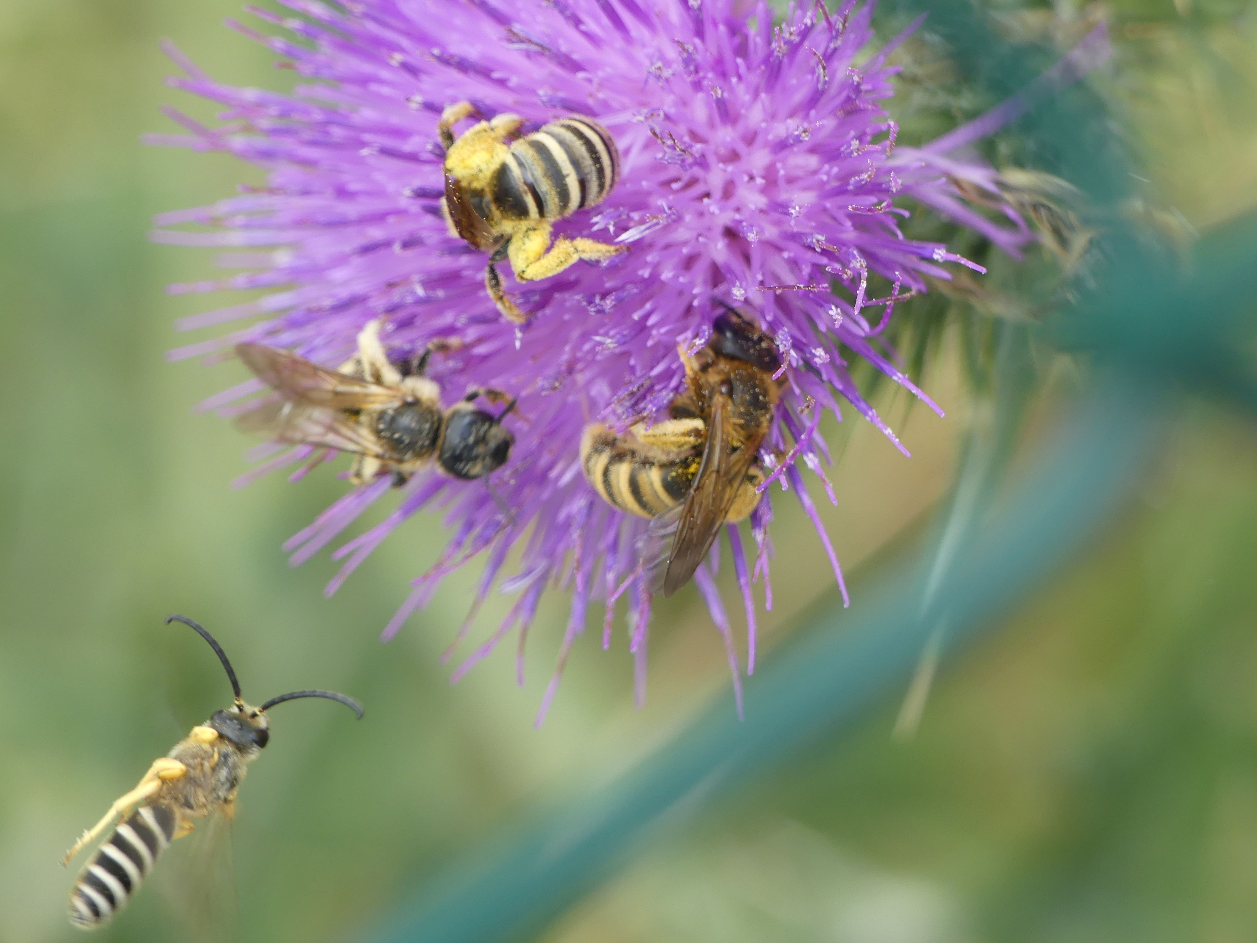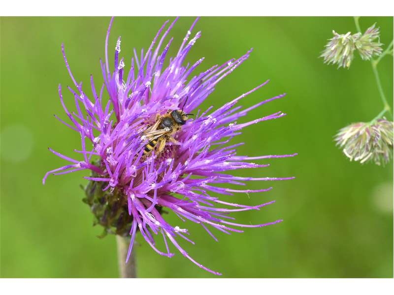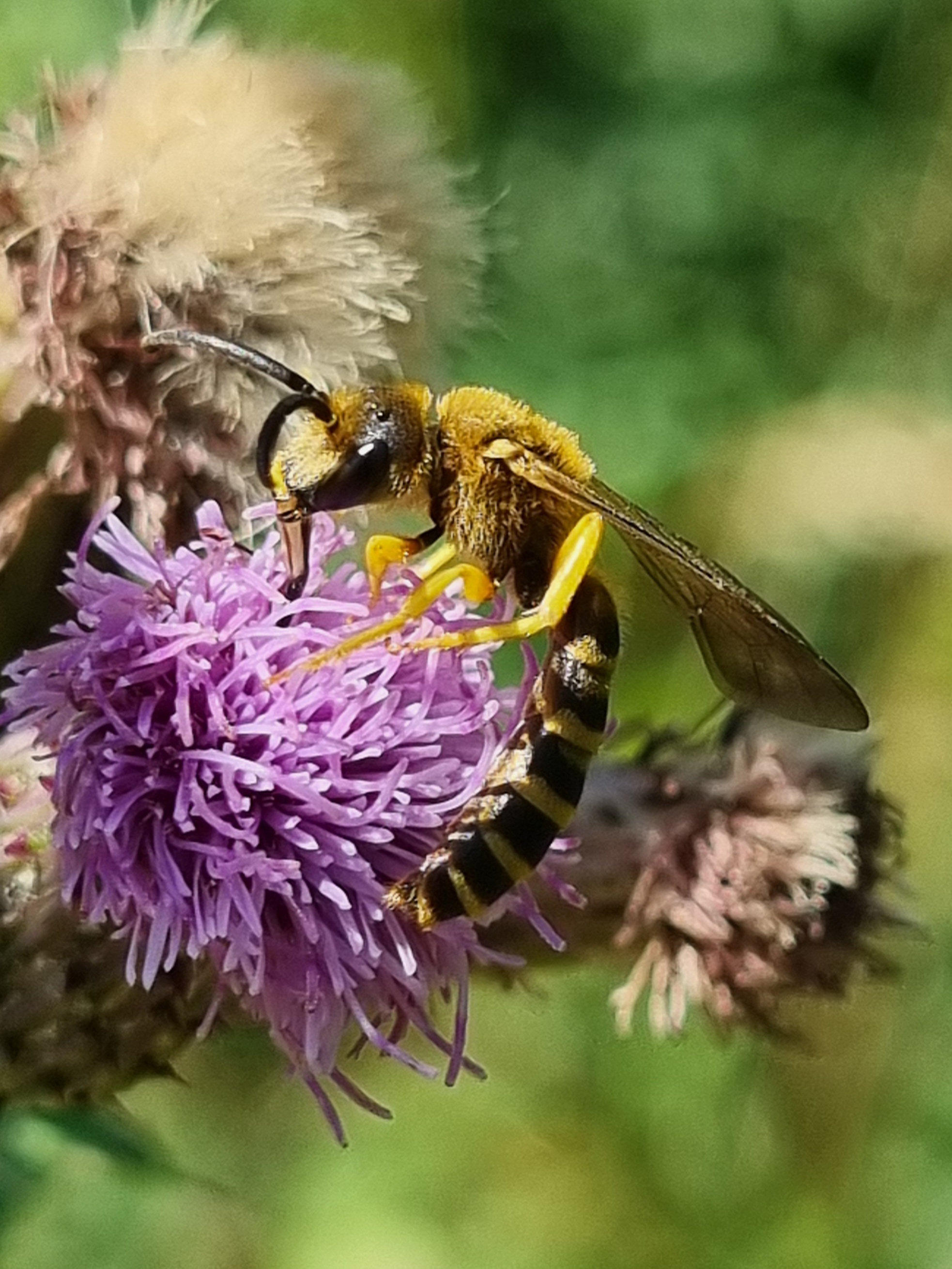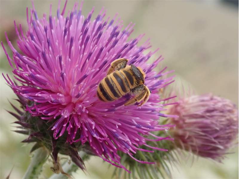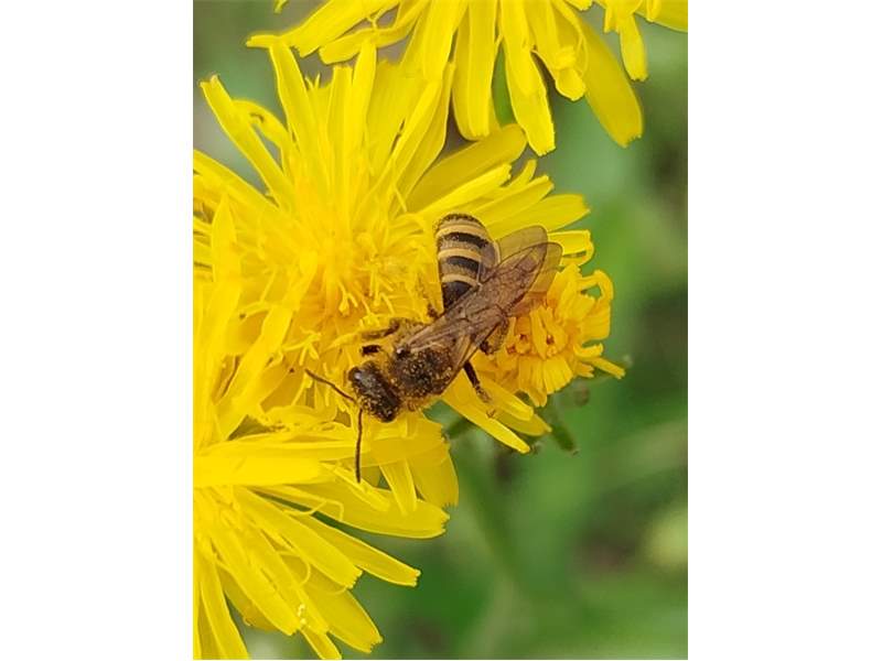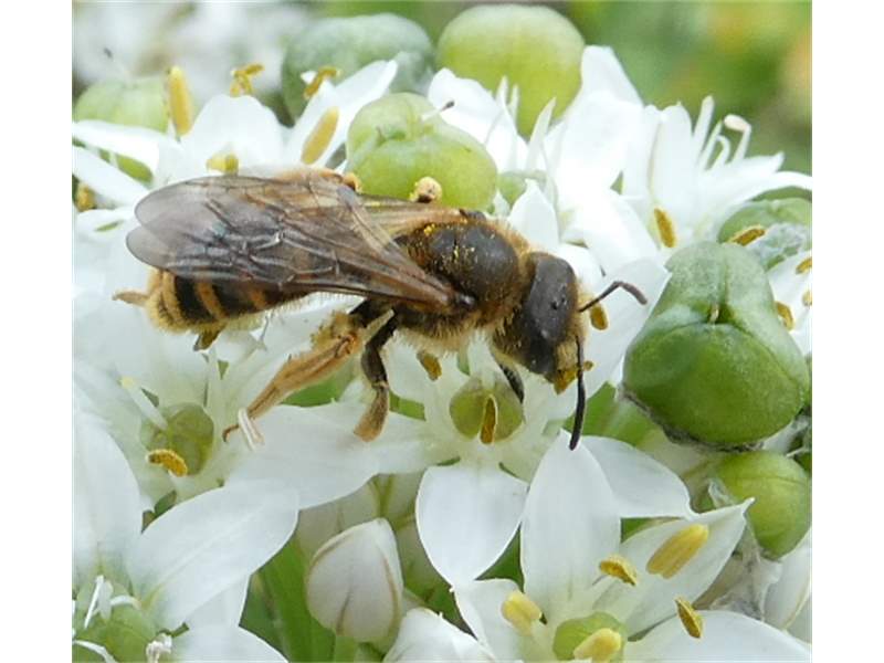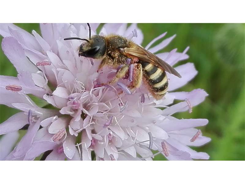 Gelbbindige Furchenbiene (Halictus scabiosae (Rossi, 1790)),Freital/Wurgwitz,Hammerteich,Wegrand auf Kratzdistel,Sep. 2019 (© Manfred Wonka)( Bild vergrößern)