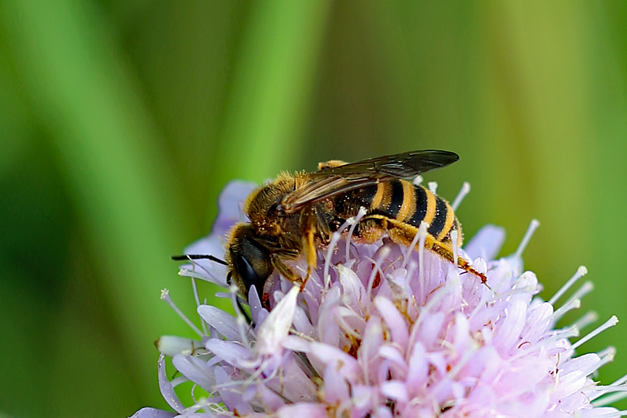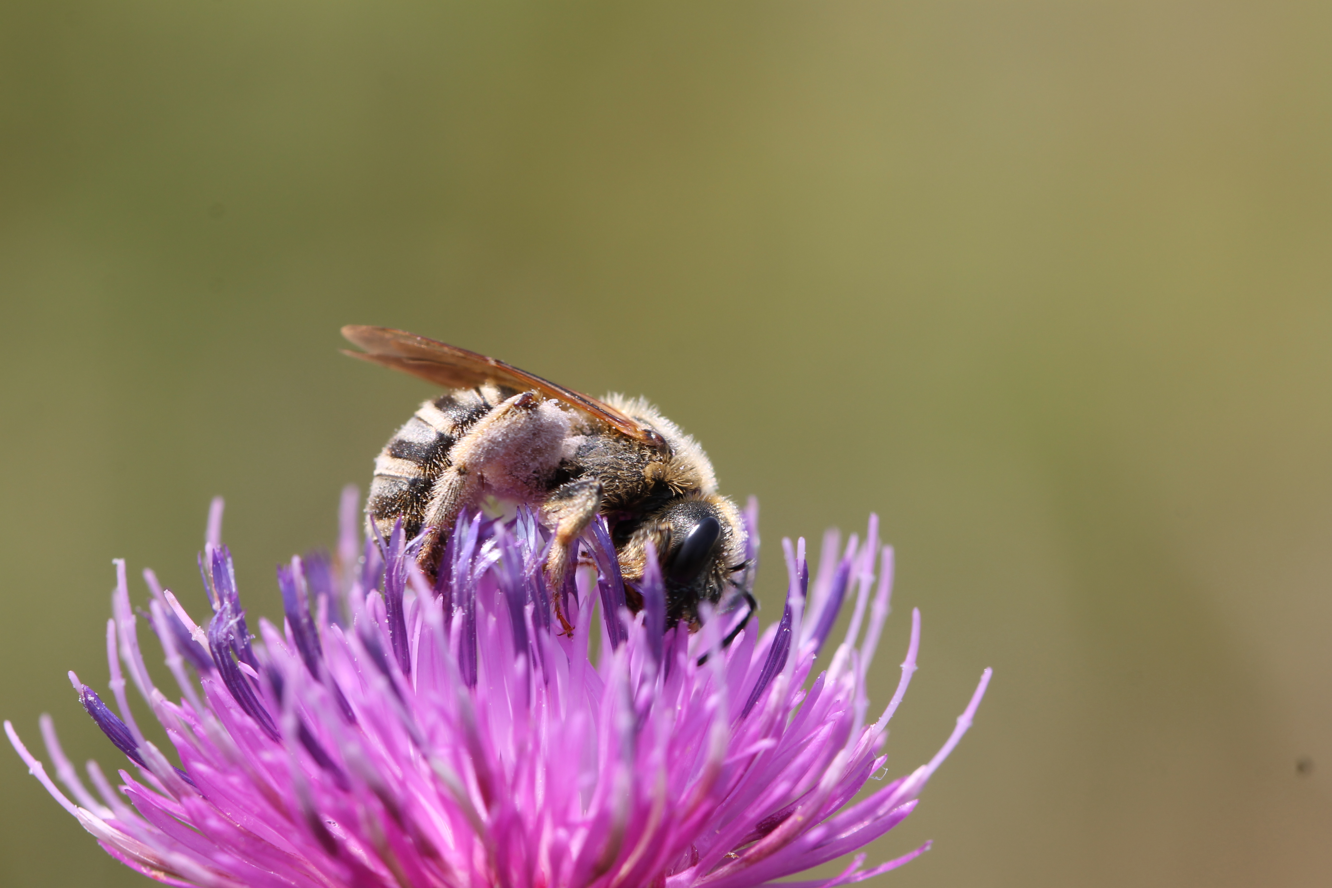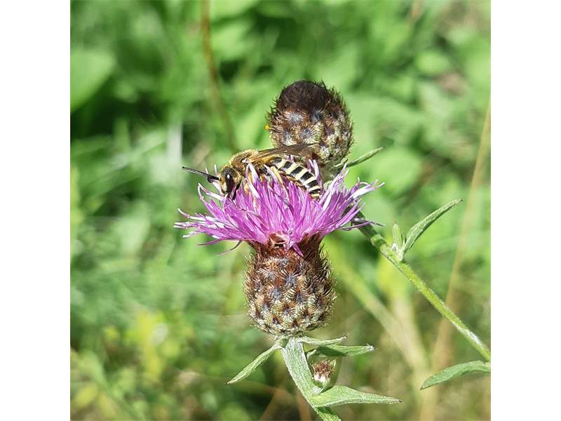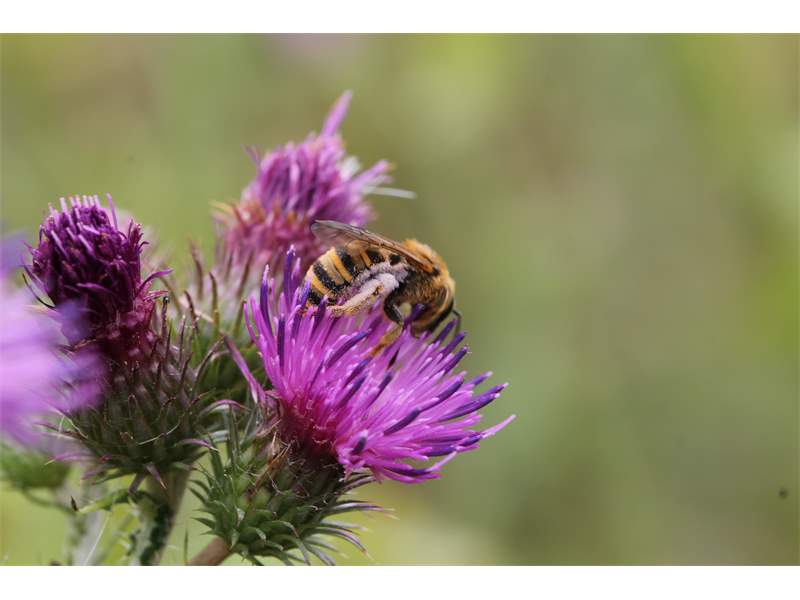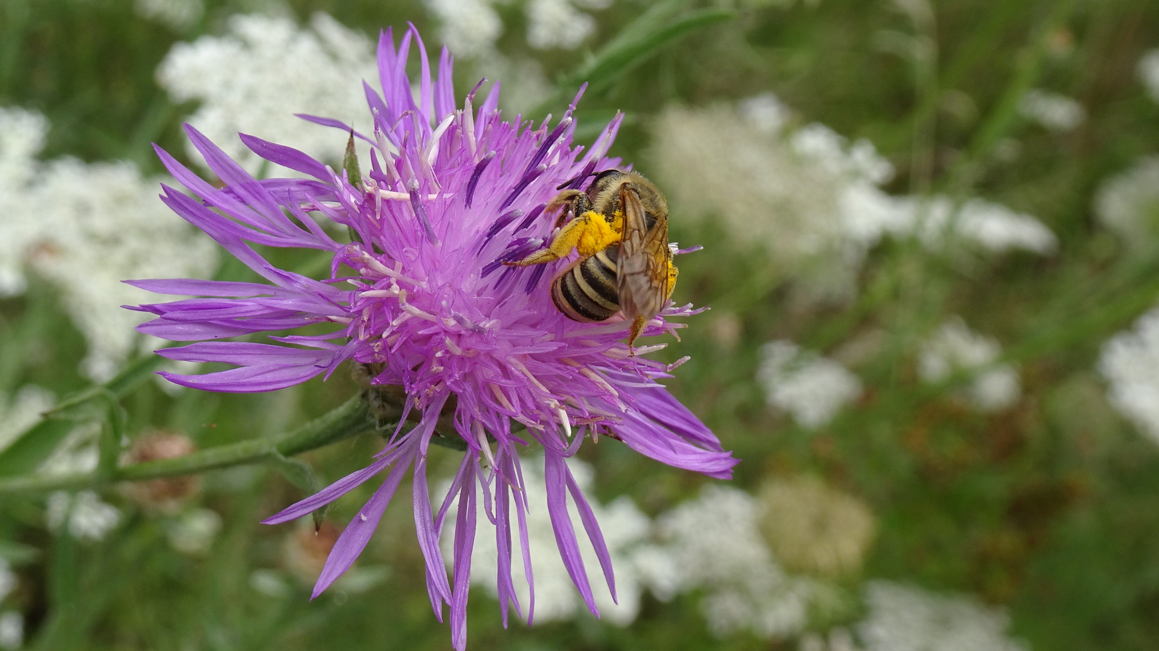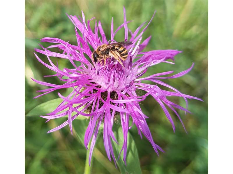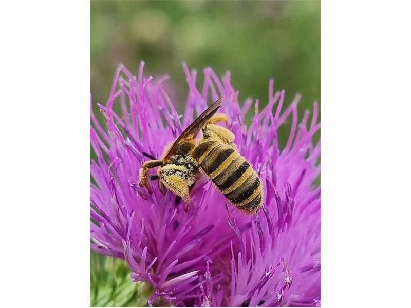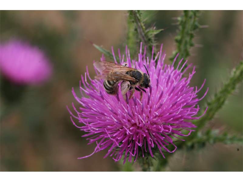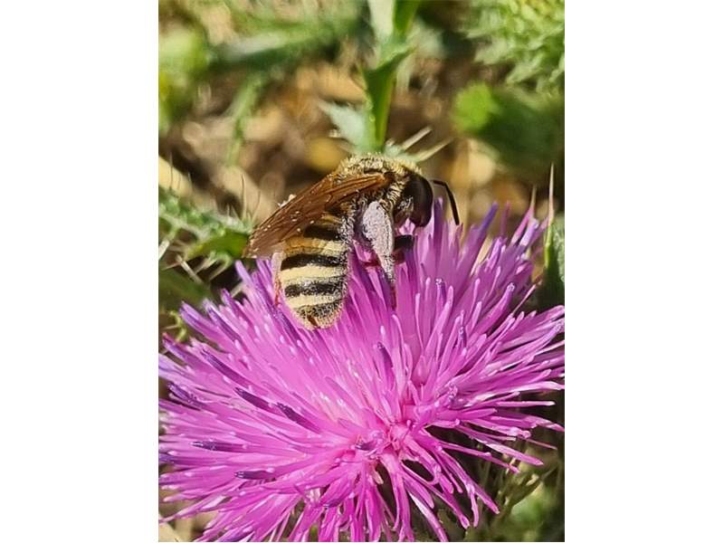 Gelbbindige Furchenbiene (Halictus scabiosae (Rossi, 1790)),Freital/Wurgwitz,Hammerteich,Wegrand auf Kratzdistel,Sep. 2019 (© Manfred Wonka)( Bild vergrößern)