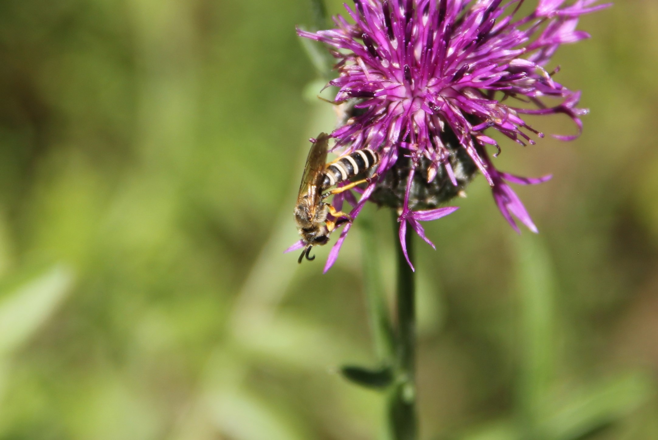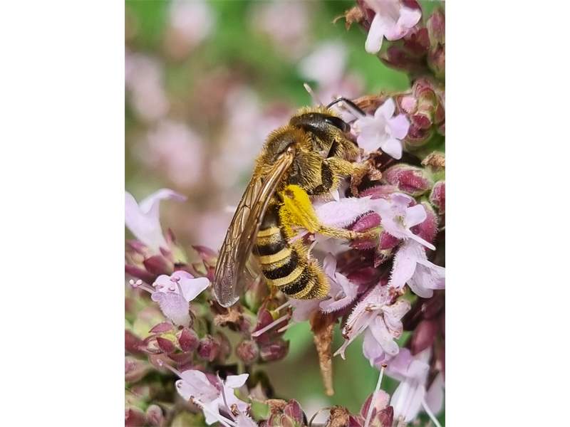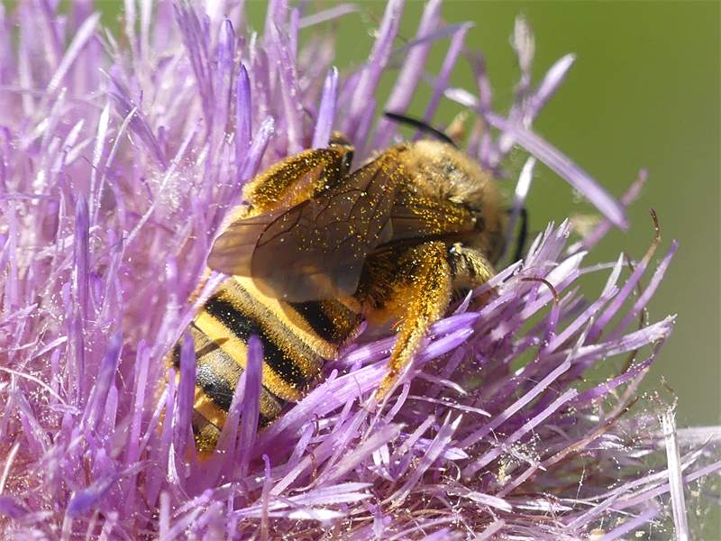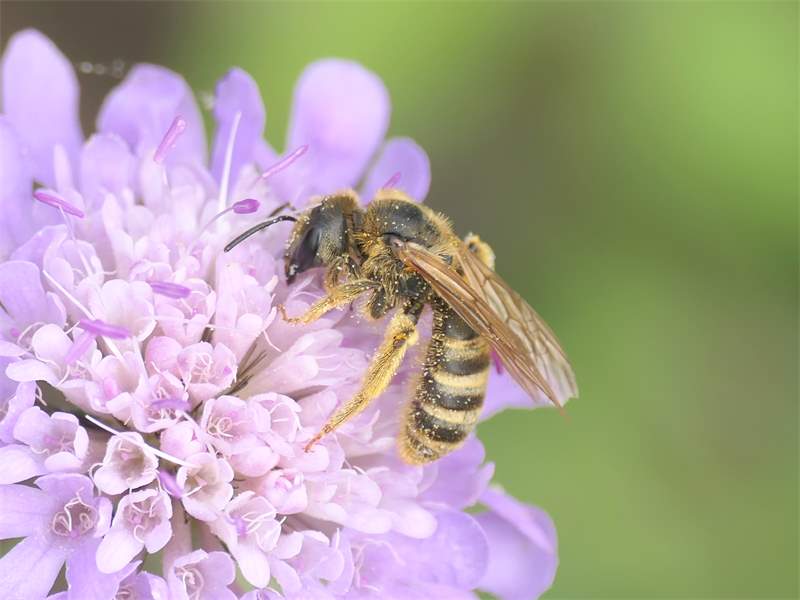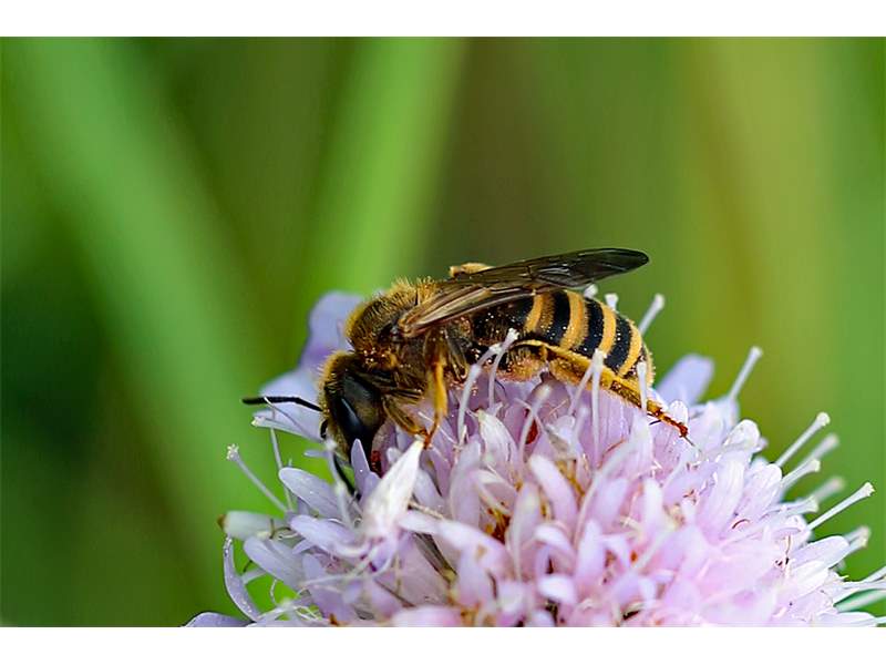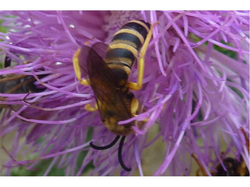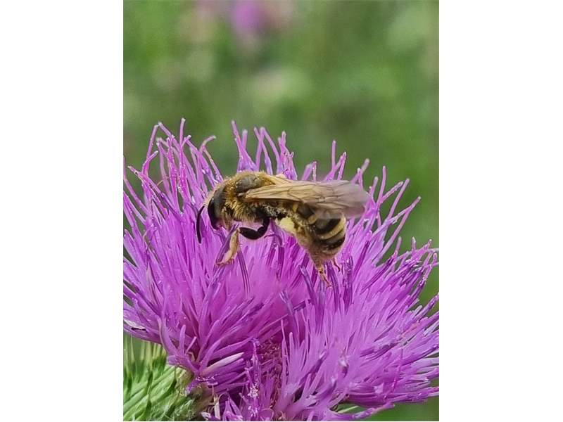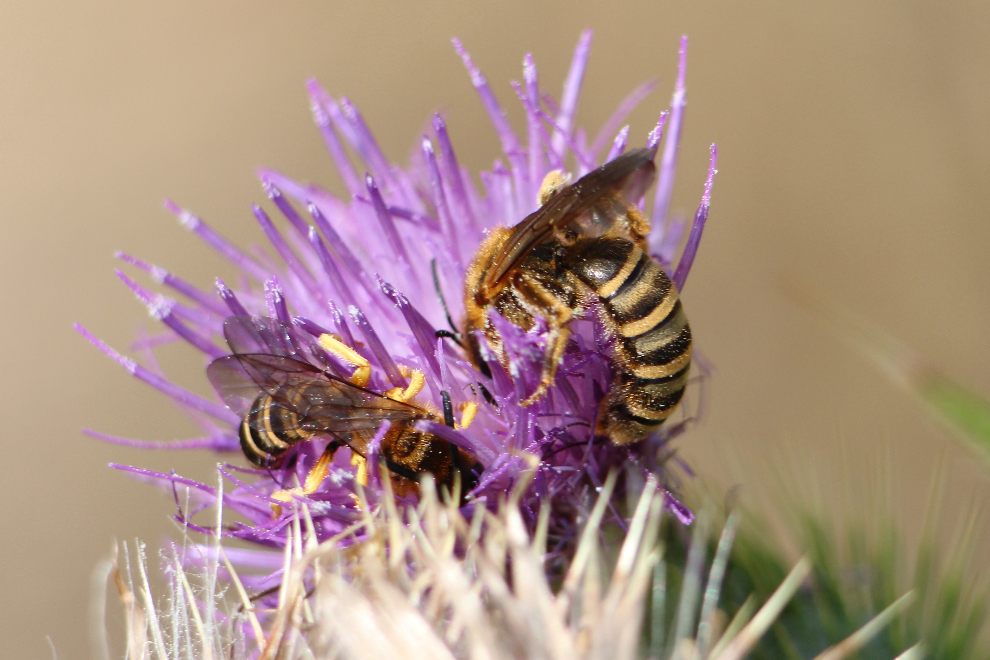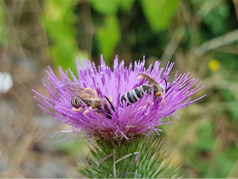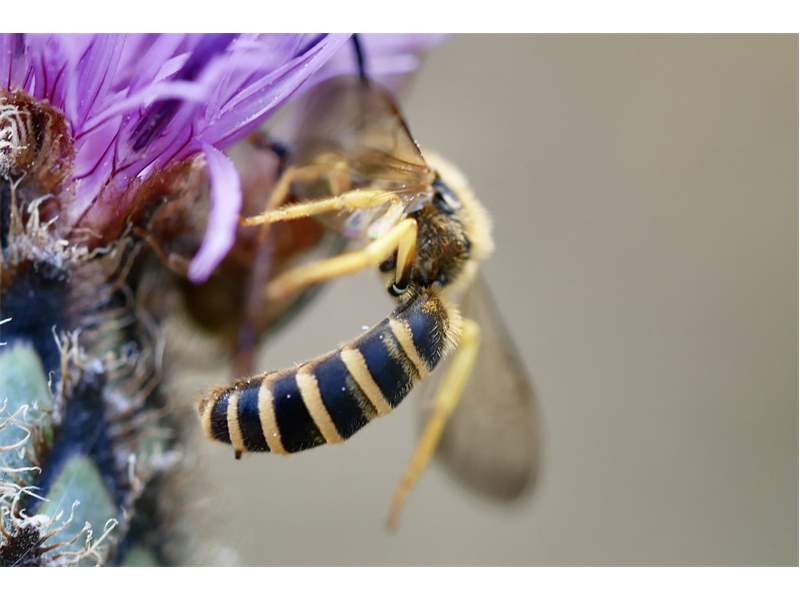 Gelbbindige Furchenbiene (Halictus scabiosae (Rossi, 1790)),Freital/Wurgwitz,Hammerteich,Wegrand auf Kratzdistel,Sep. 2019 (© Manfred Wonka)( Bild vergrößern)