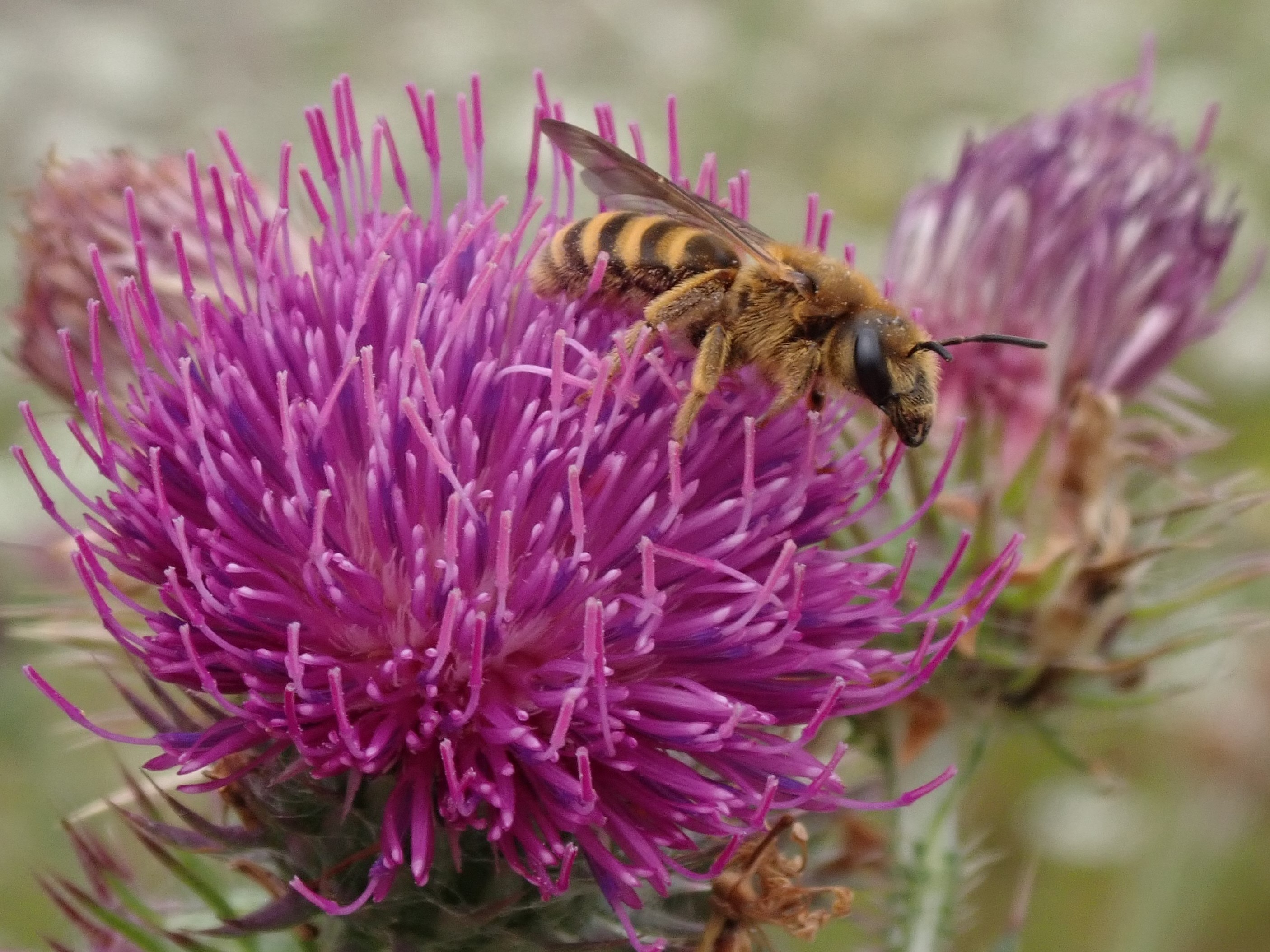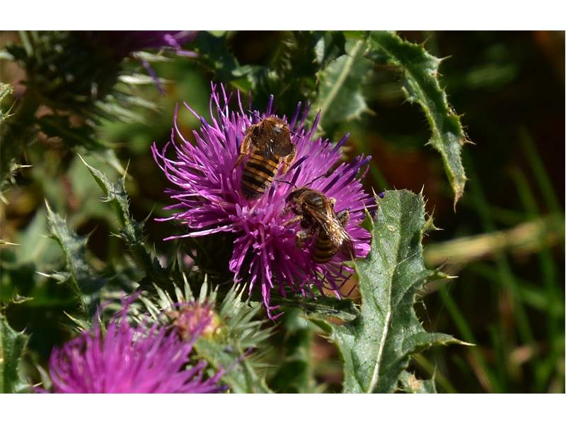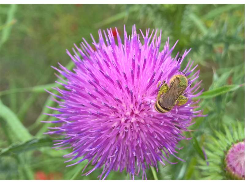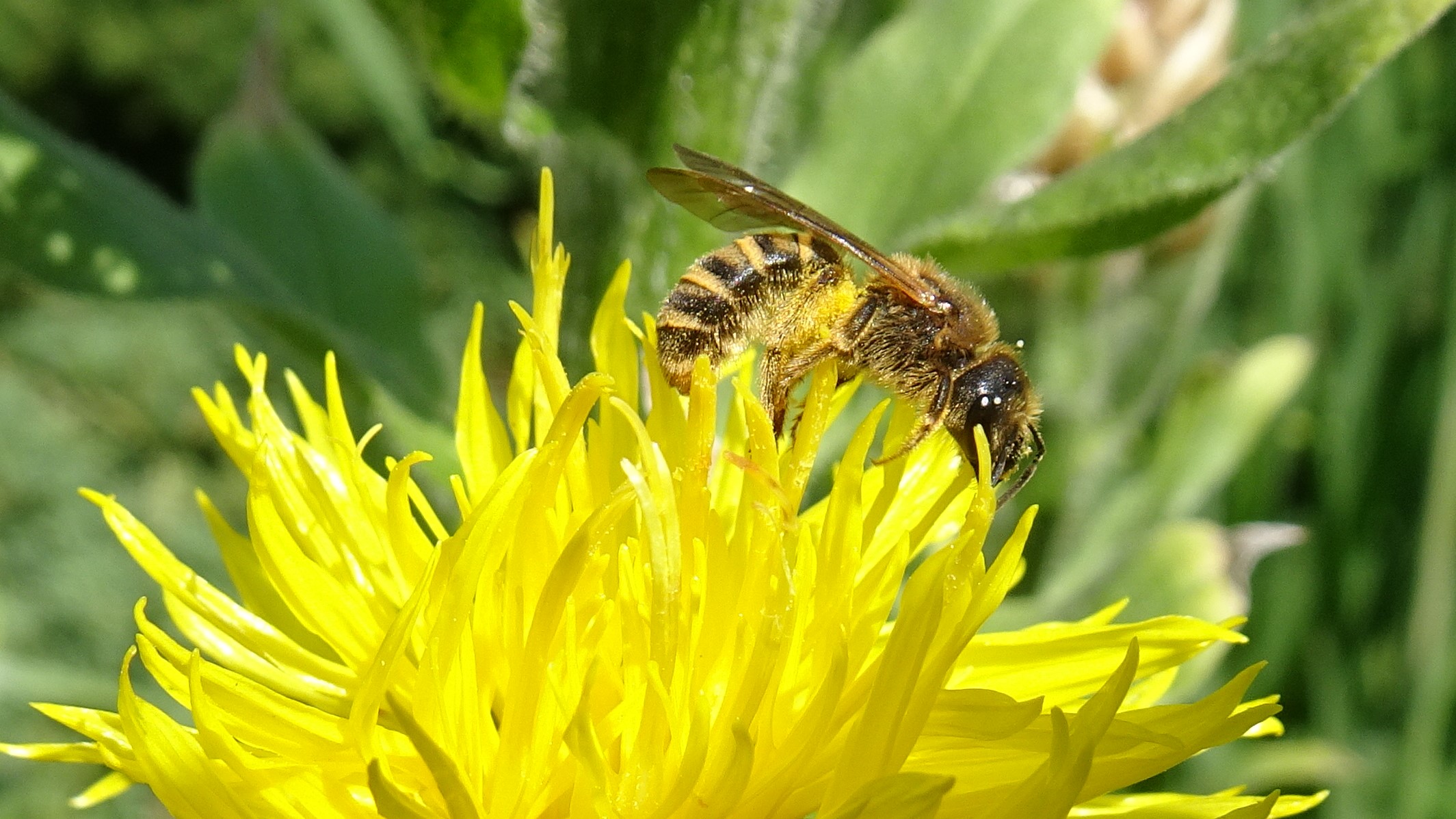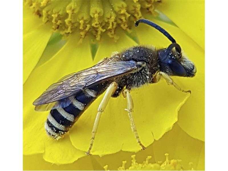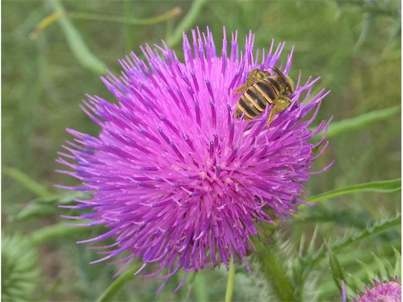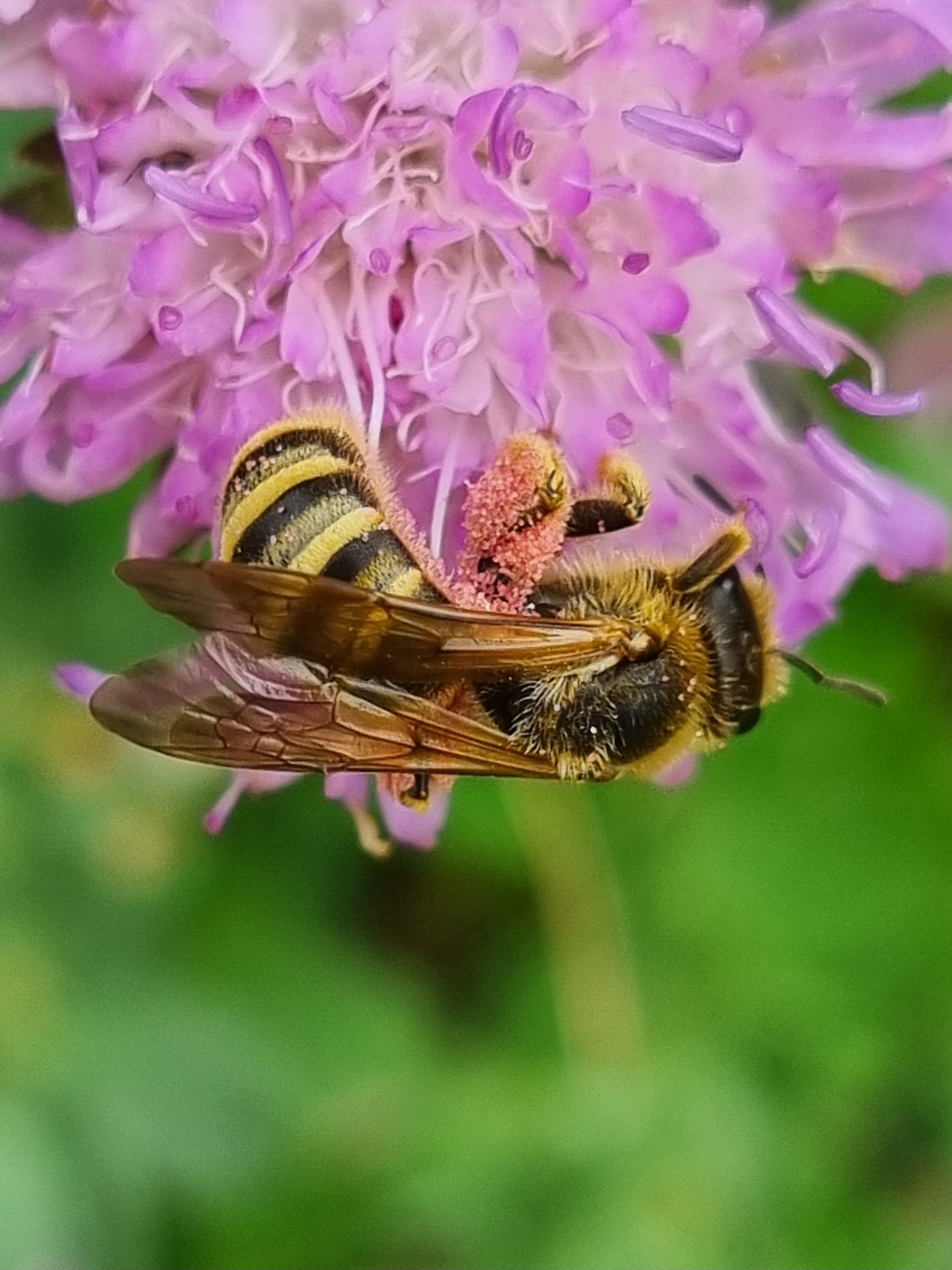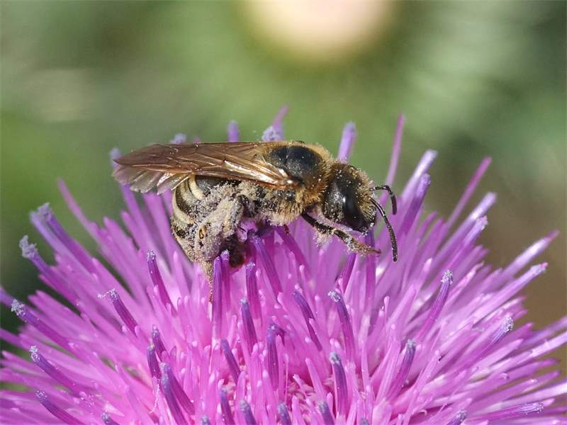 Gelbbindige Furchenbiene (Halictus scabiosae (Rossi, 1790)),Freital/Wurgwitz,Hammerteich,Wegrand auf Kratzdistel,Sep. 2019 (© Manfred Wonka)( Bild vergrößern)