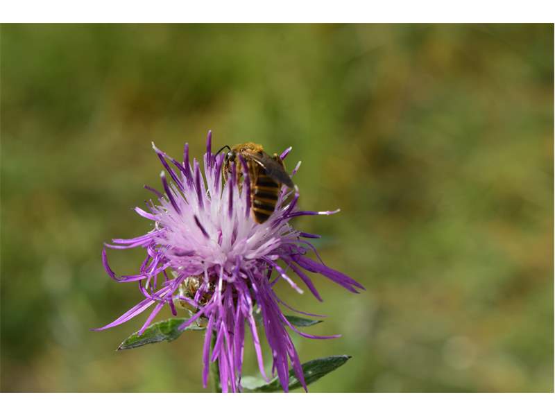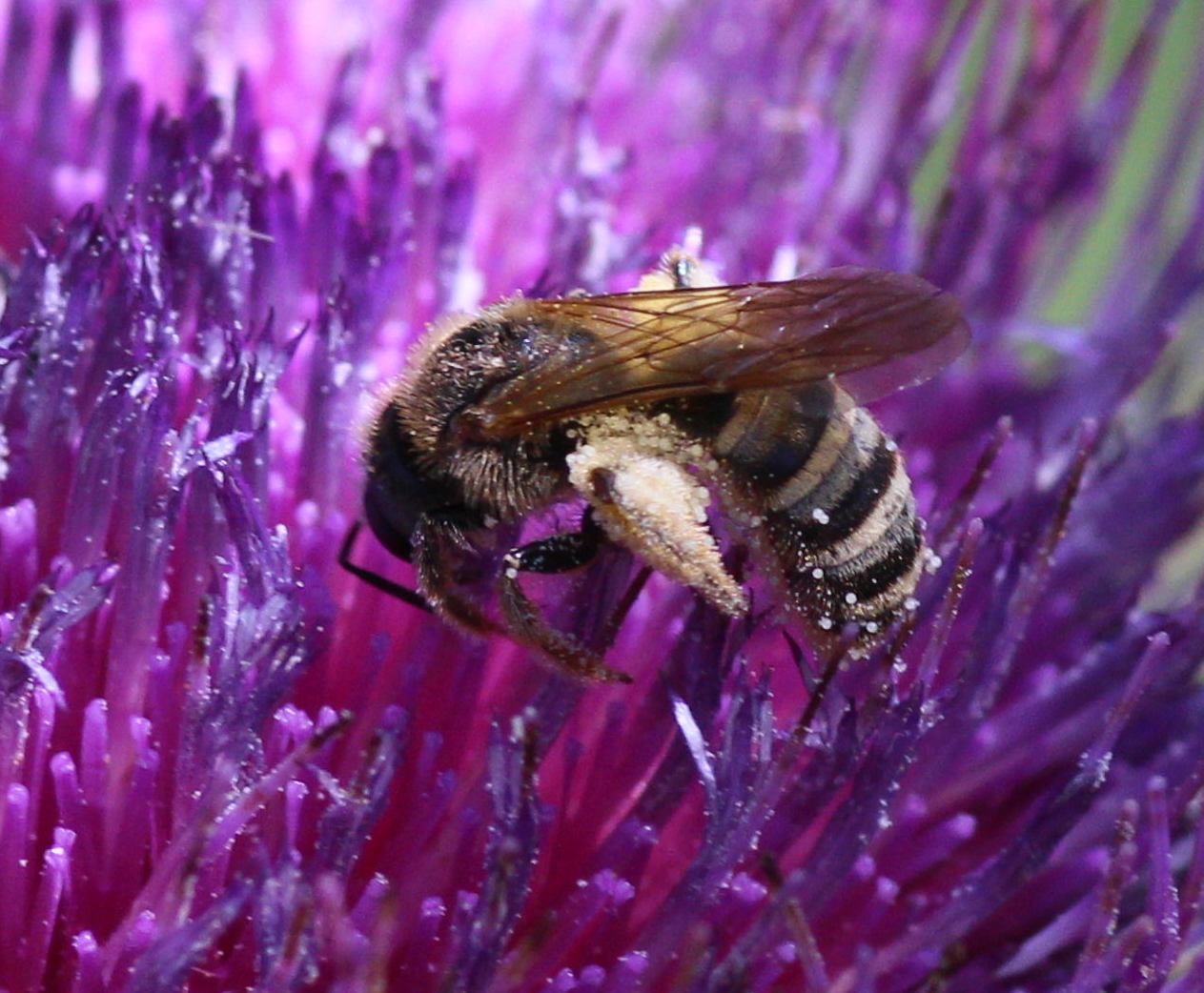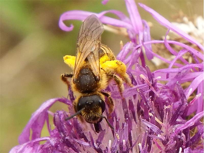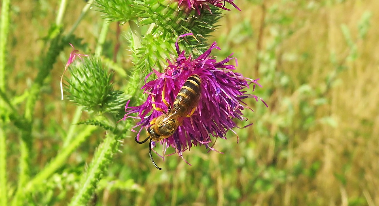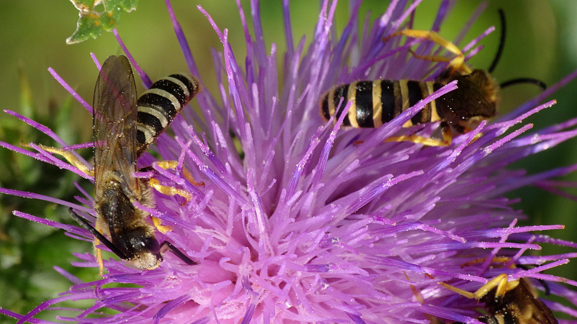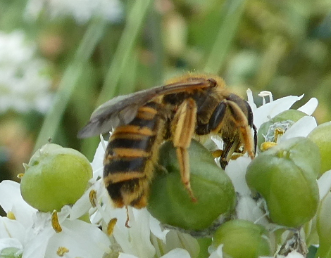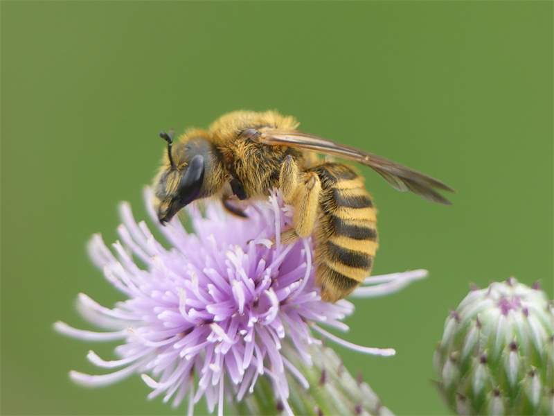 Gelbbindige Furchenbiene (Halictus scabiosae (Rossi, 1790)),Freital/Wurgwitz,Hammerteich,Wegrand auf Kratzdistel,Sep. 2019 (© Manfred Wonka)( Bild vergrößern)
