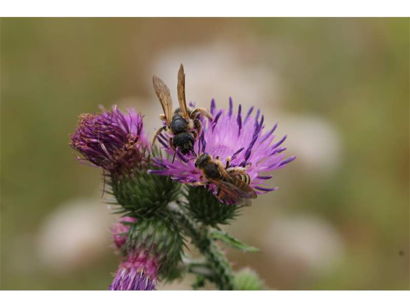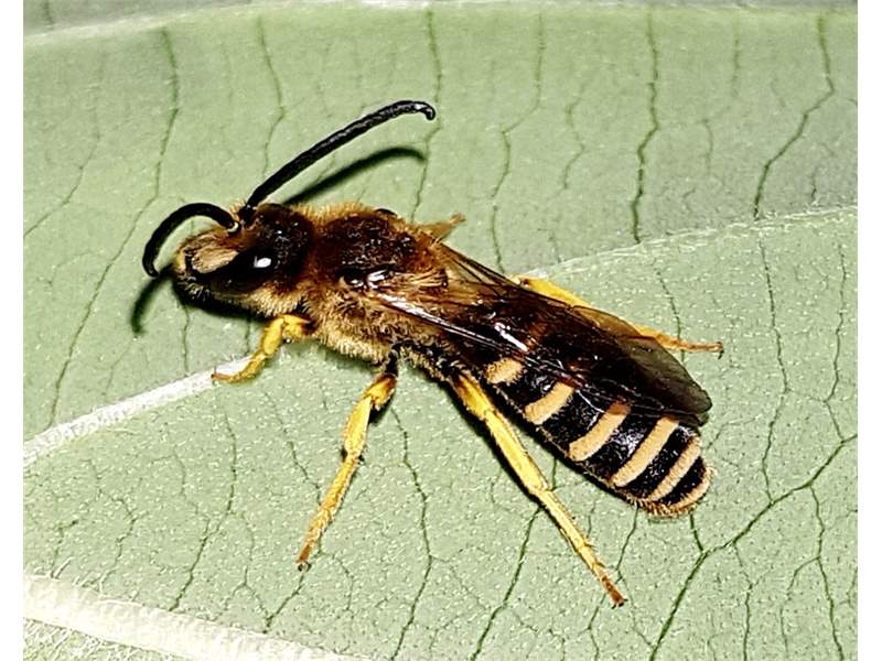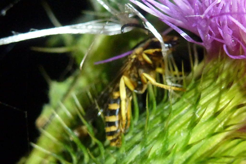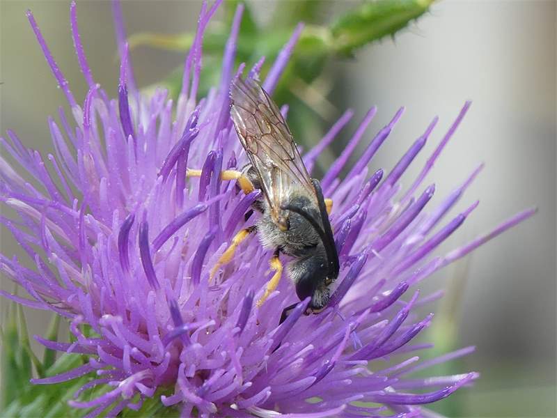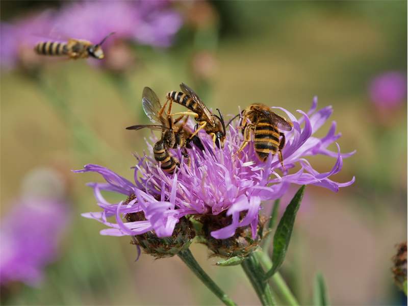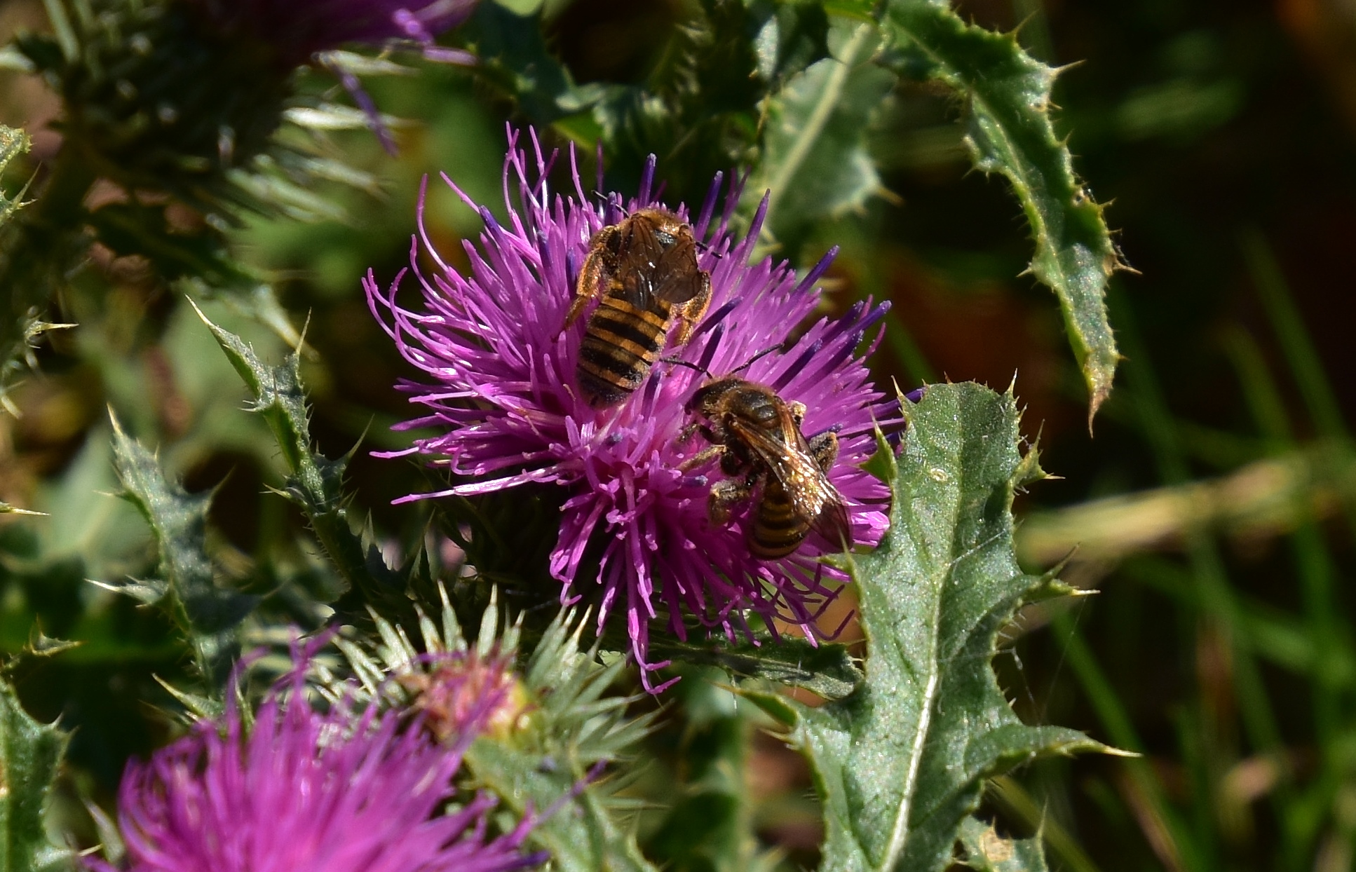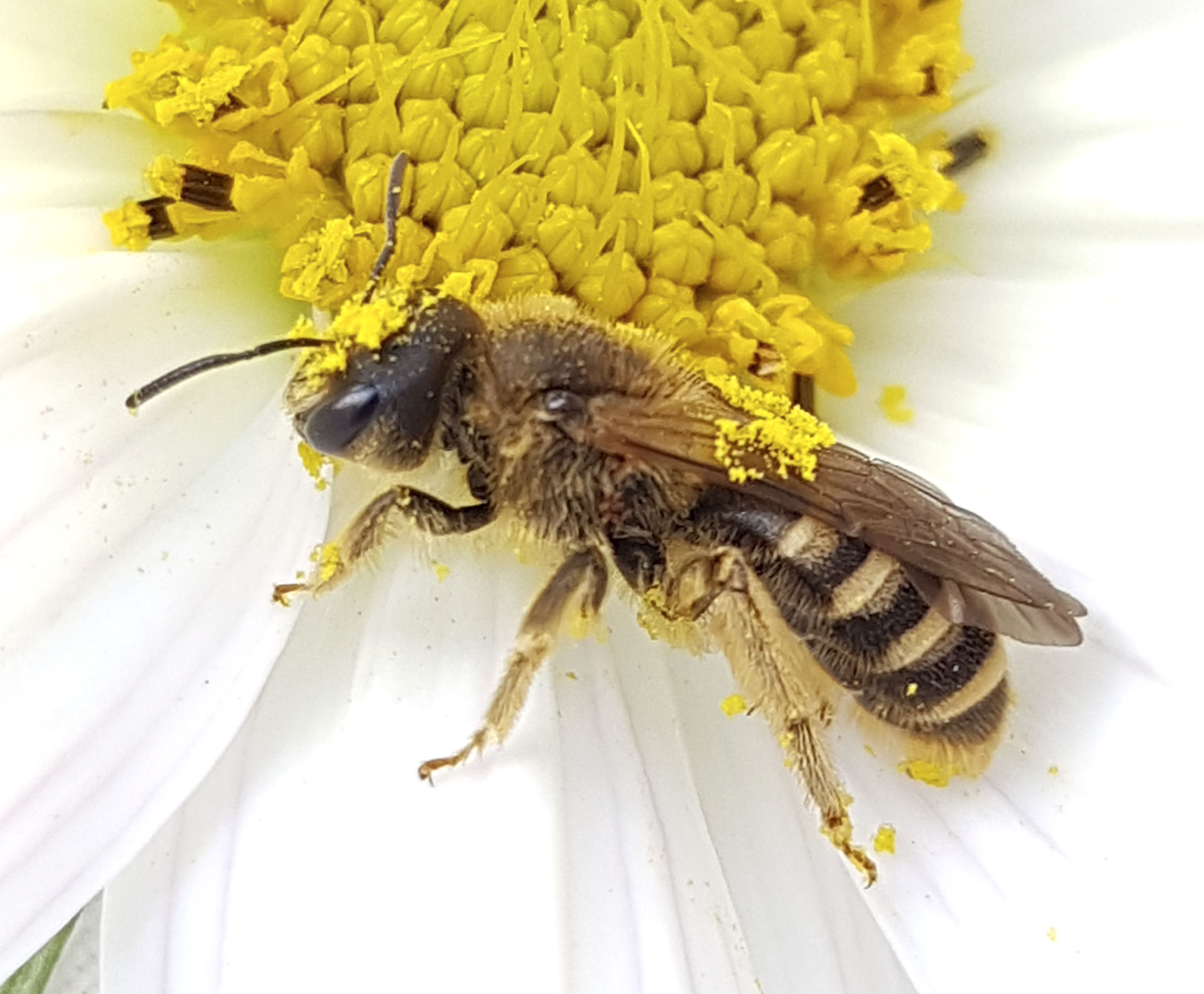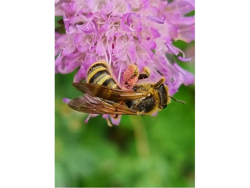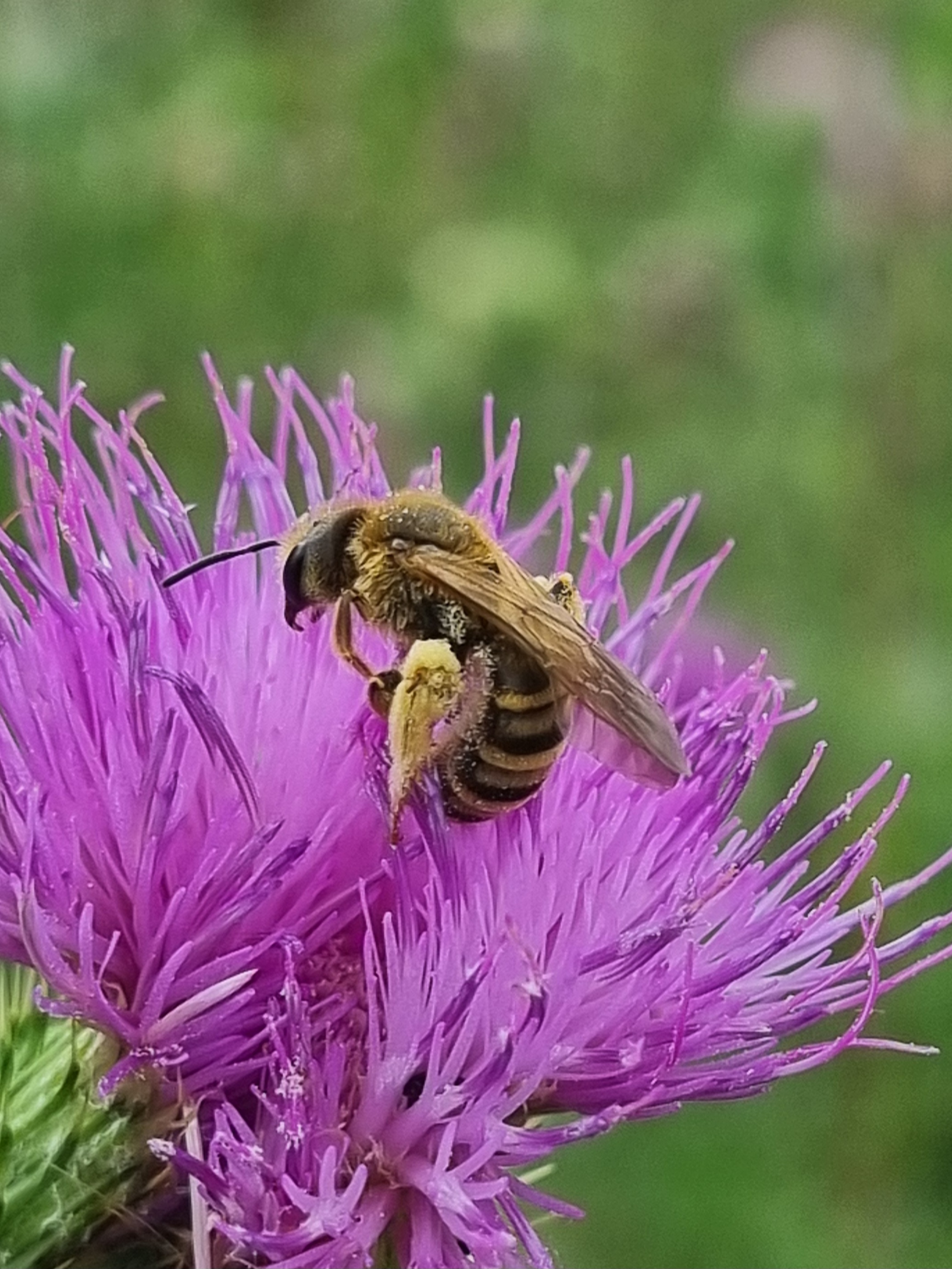 Gelbbindige Furchenbiene (Halictus scabiosae (Rossi, 1790)),Freital/Wurgwitz,Hammerteich,Wegrand auf Kratzdistel,Sep. 2019 (© Manfred Wonka)( Bild vergrößern)