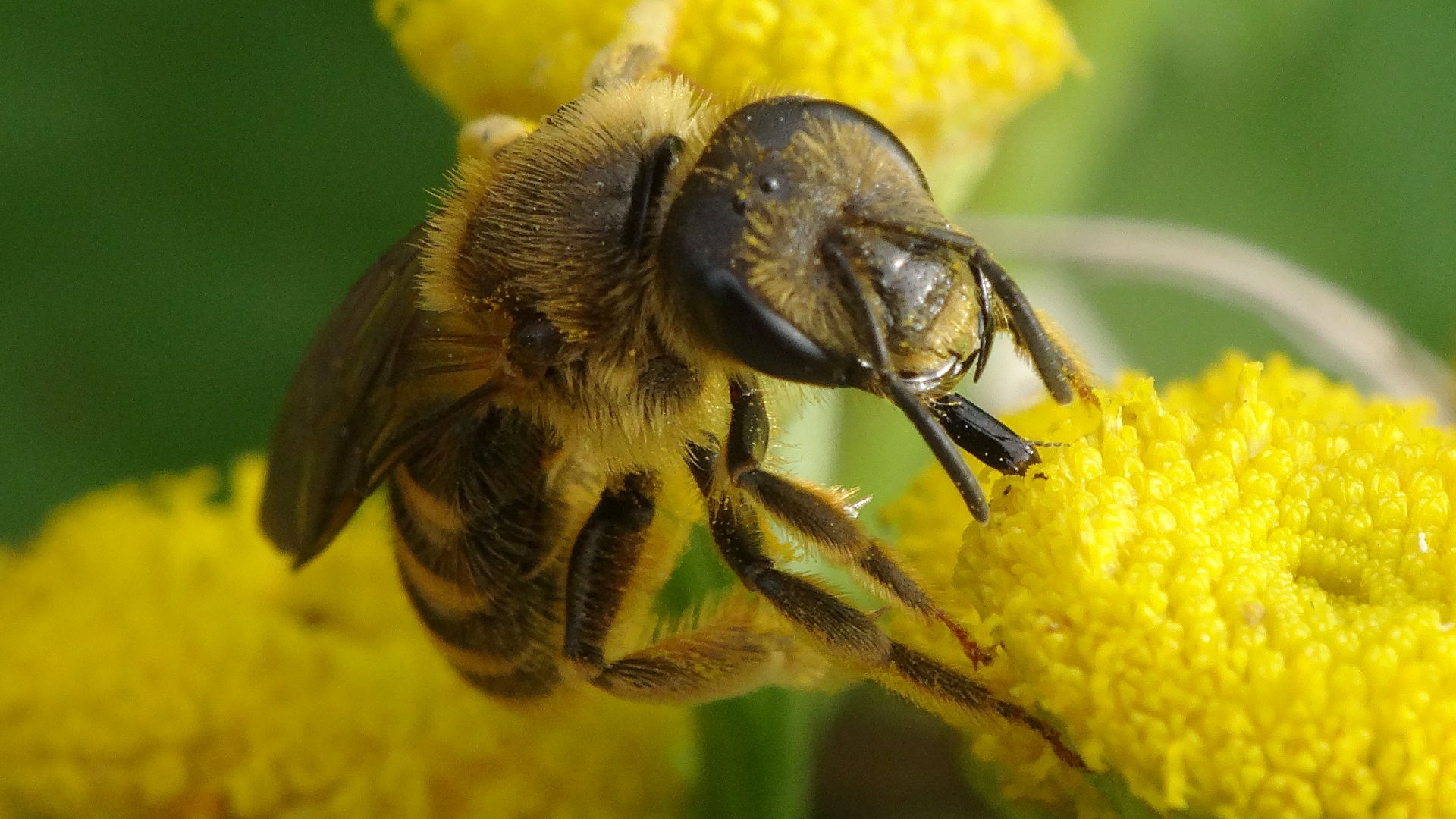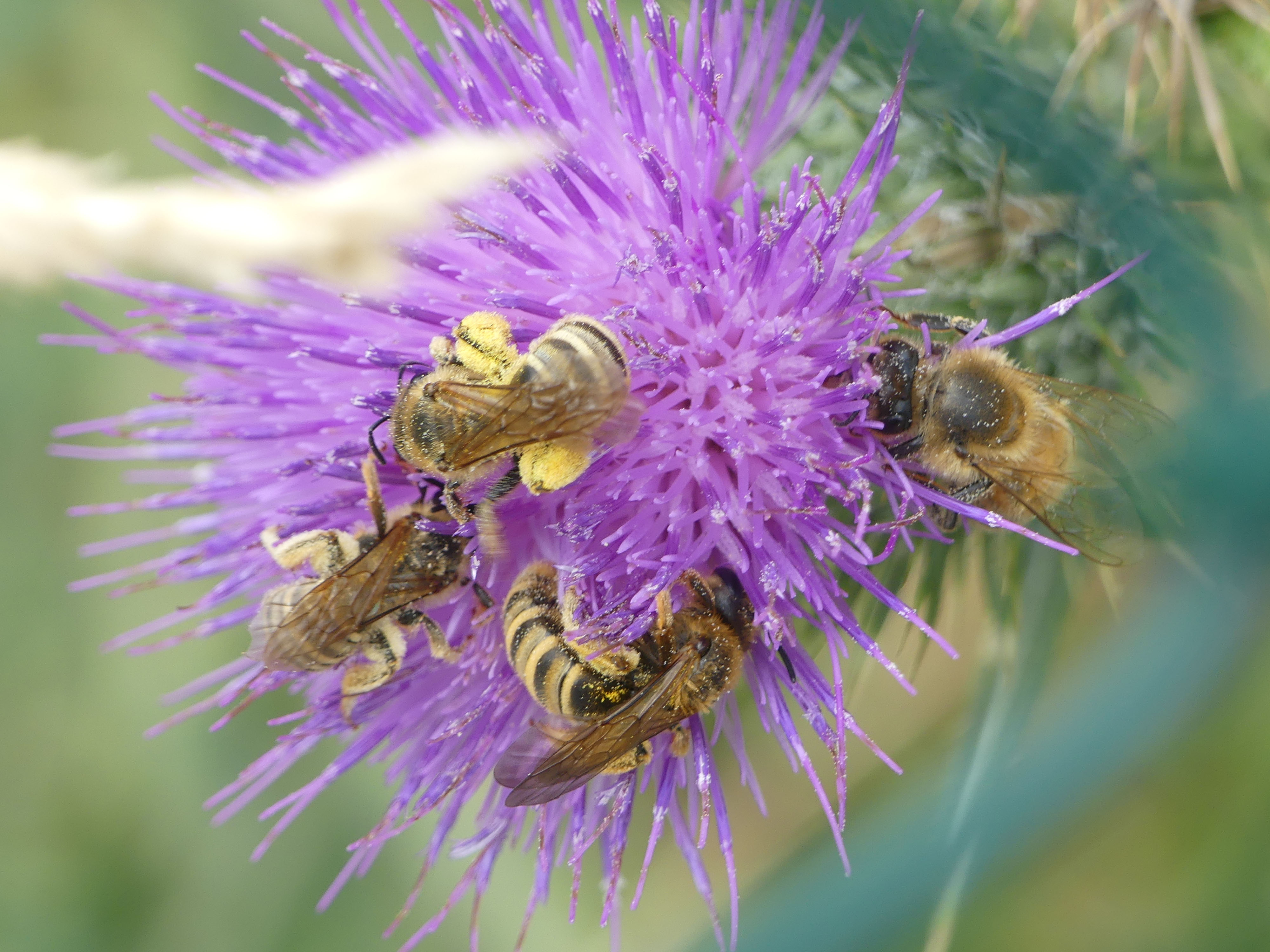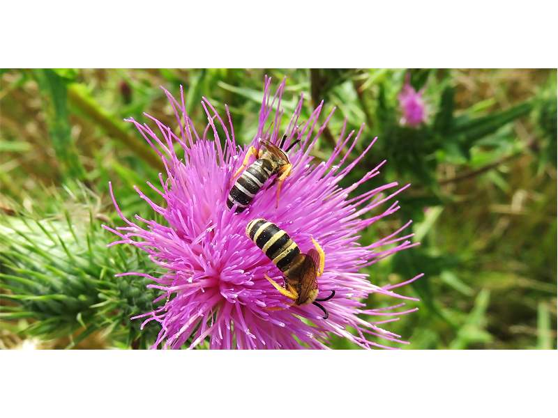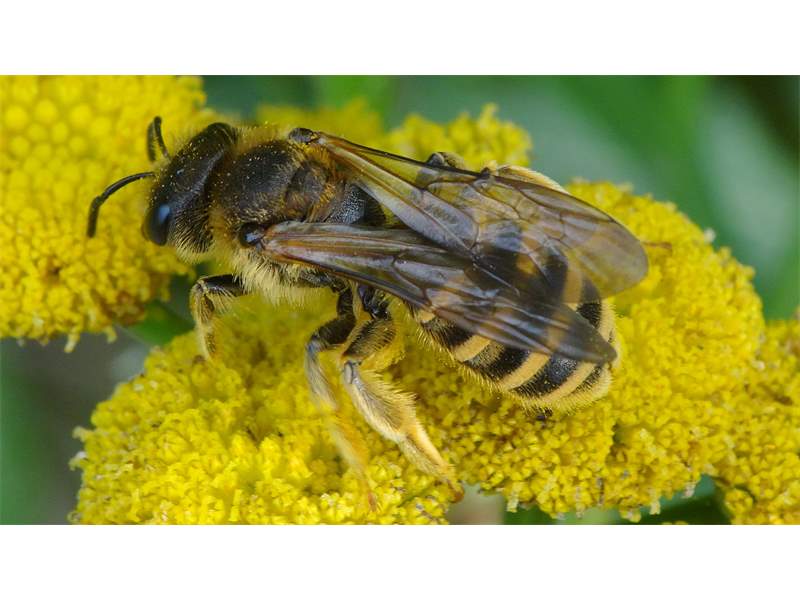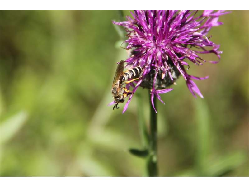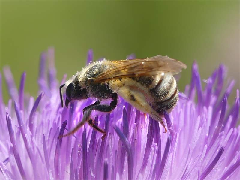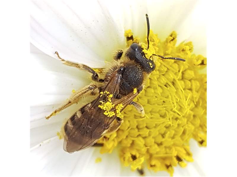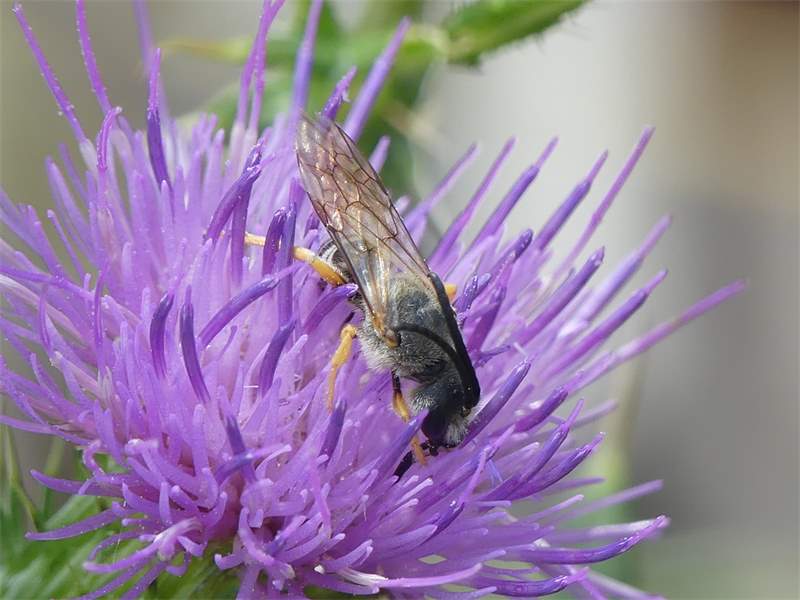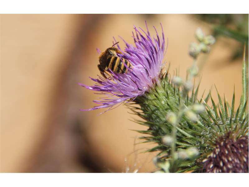 Gelbbindige Furchenbiene (Halictus scabiosae (Rossi, 1790)),Freital/Wurgwitz,Hammerteich,Wegrand auf Kratzdistel,Sep. 2019 (© Manfred Wonka)( Bild vergrößern)