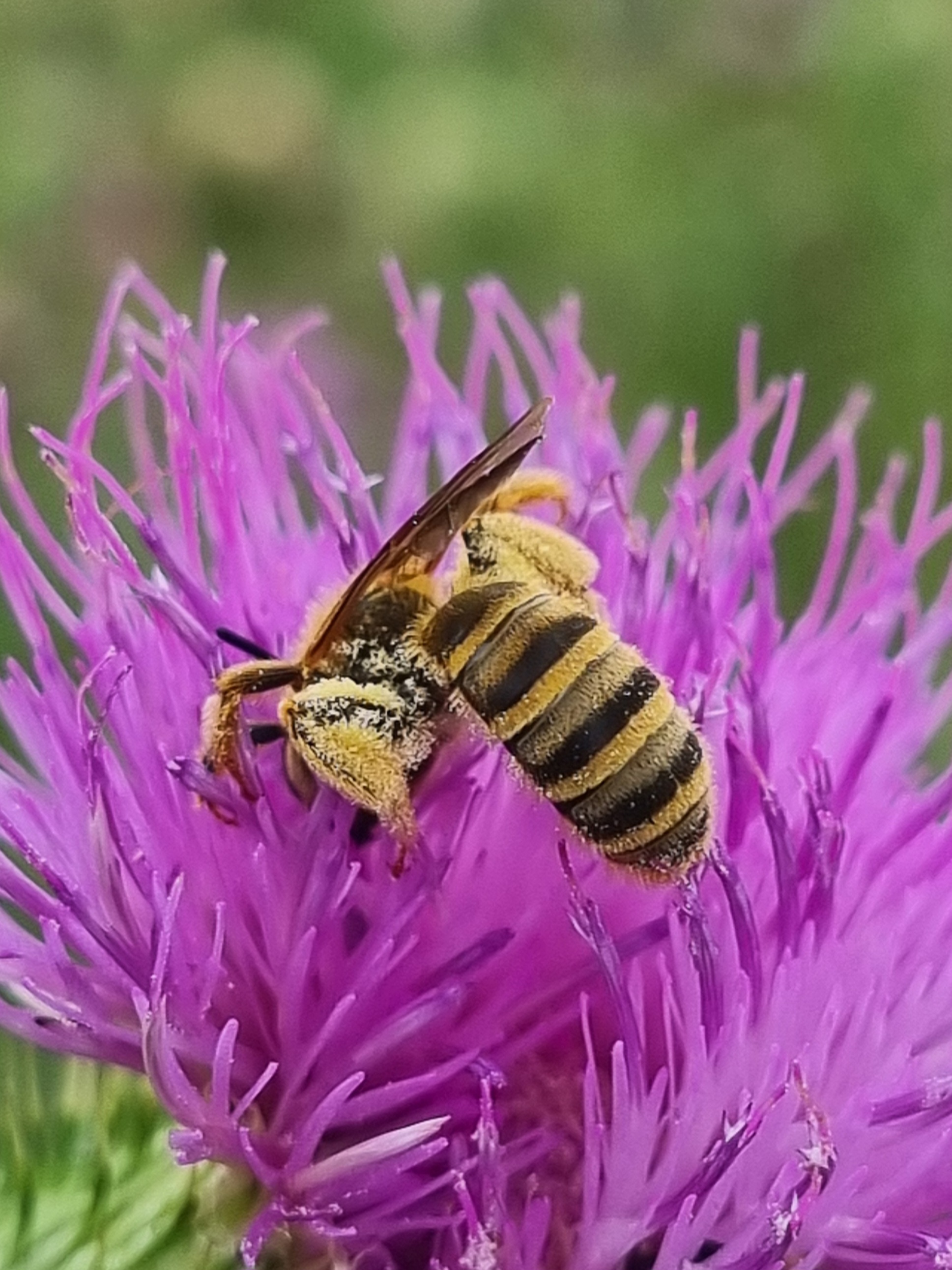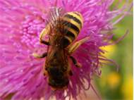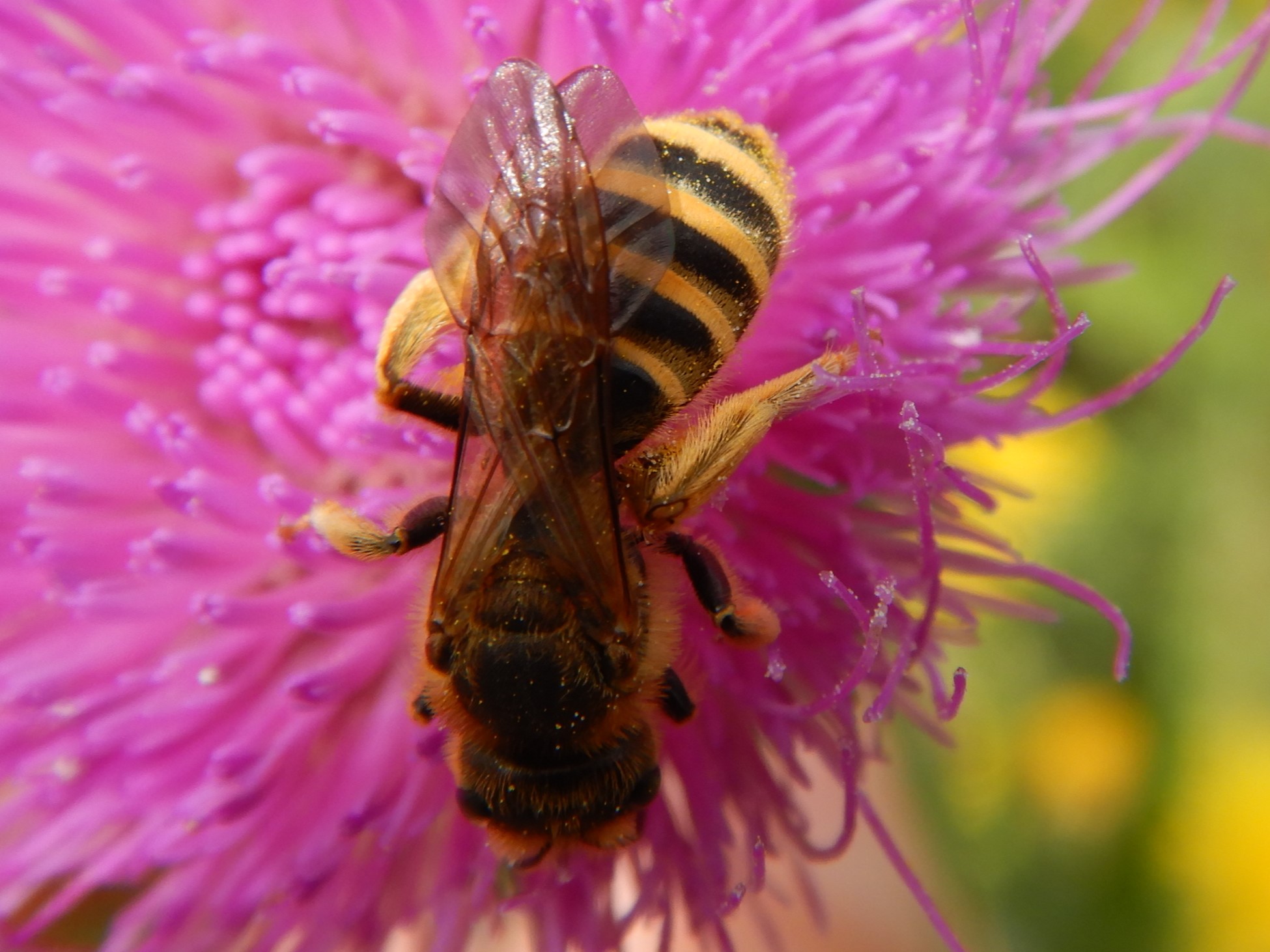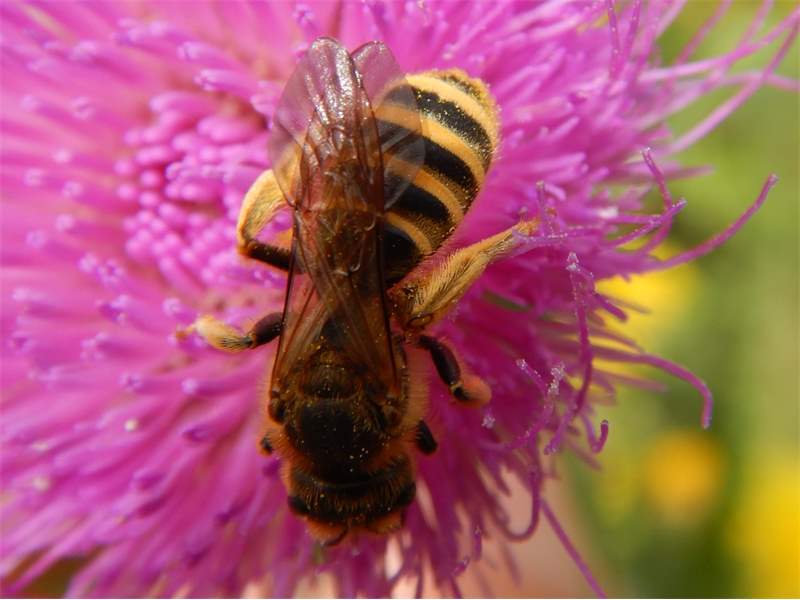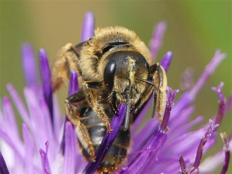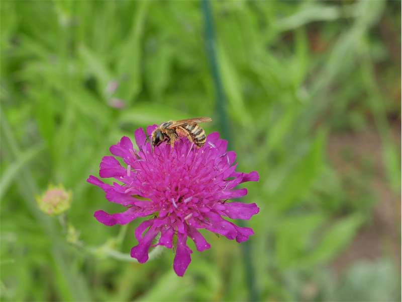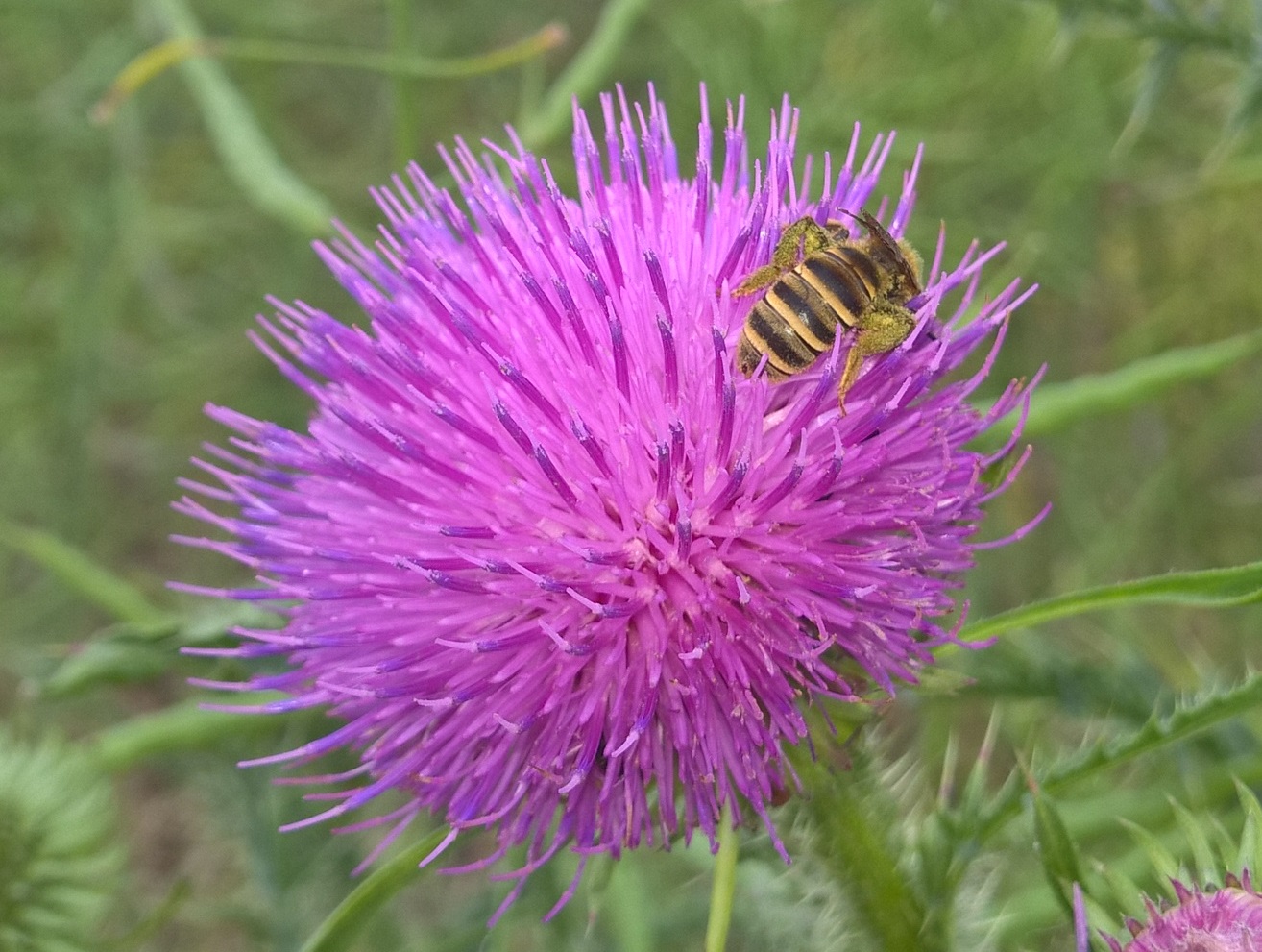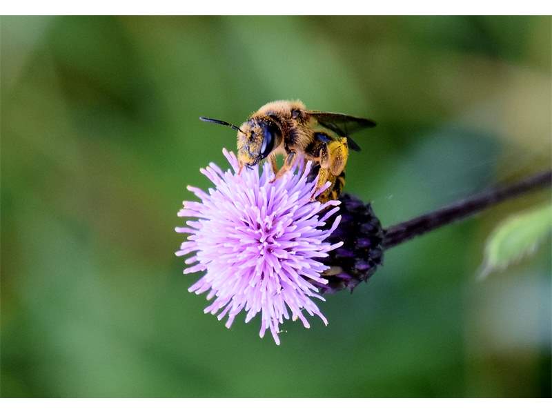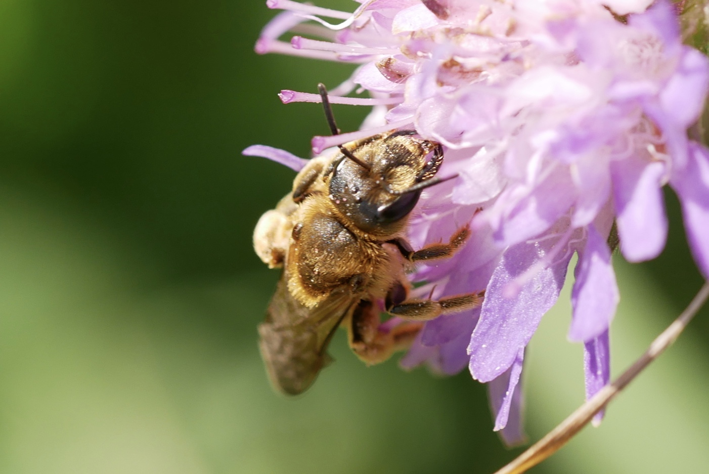 Gelbbindige Furchenbiene (Halictus scabiosae (Rossi, 1790)),Freital/Wurgwitz,Hammerteich,Wegrand auf Kratzdistel,Sep. 2019 (© Manfred Wonka)( Bild vergrößern)