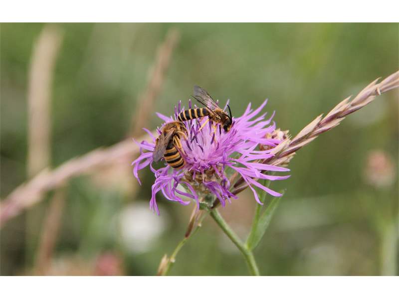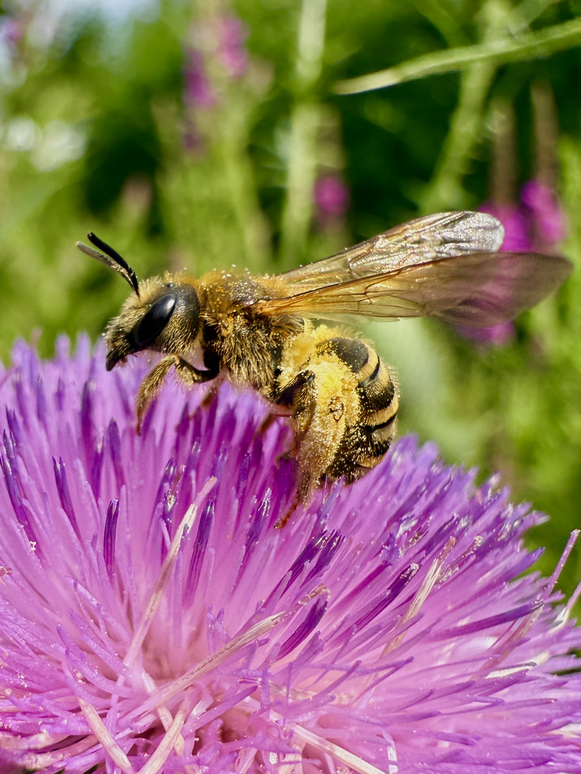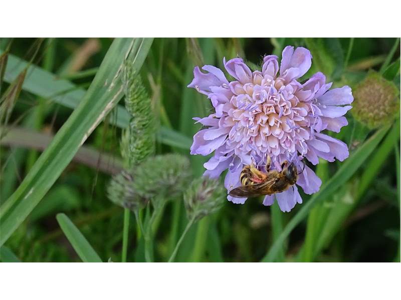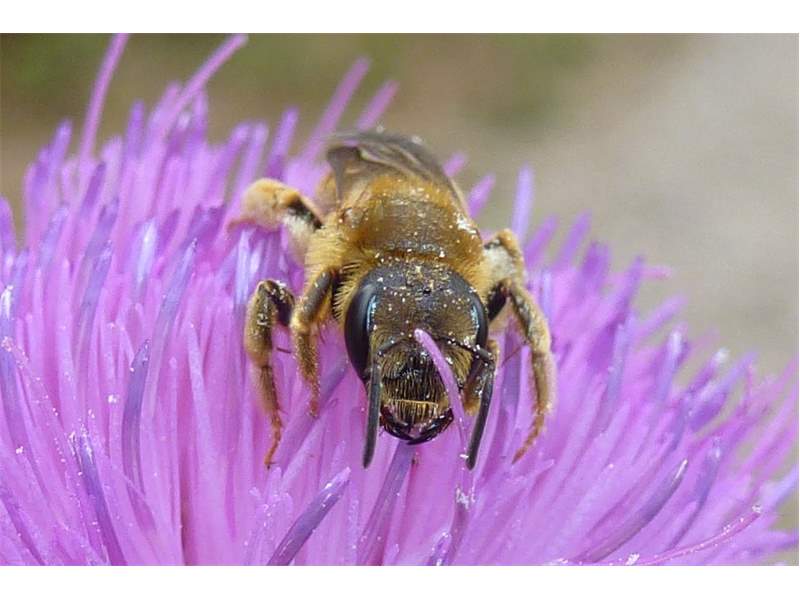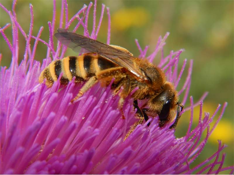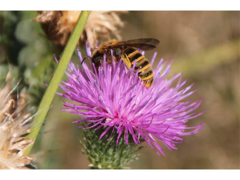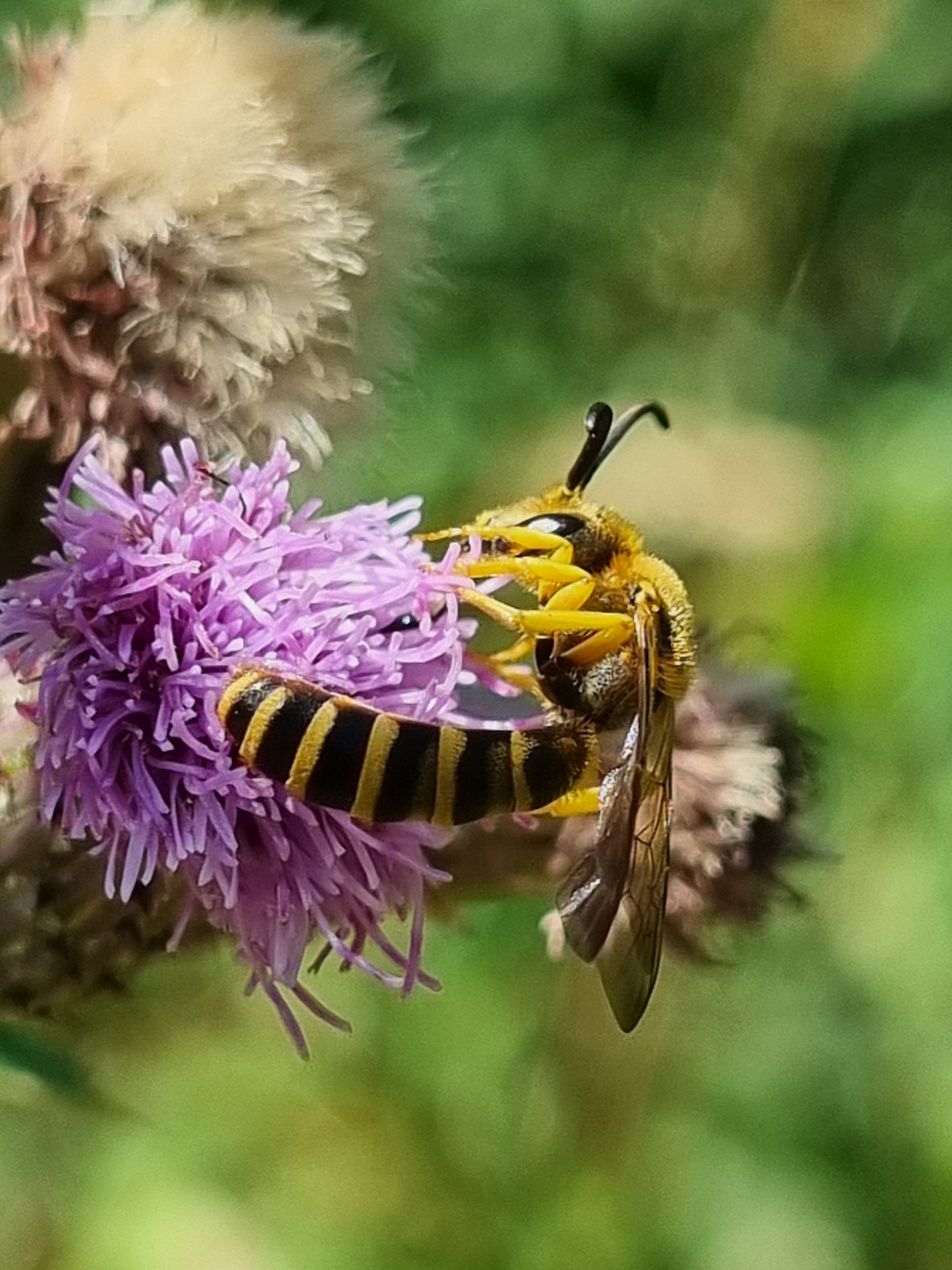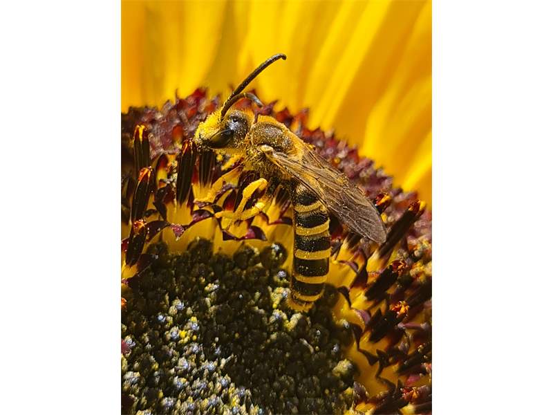 Gelbbindige Furchenbiene (Halictus scabiosae (Rossi, 1790)),Freital/Wurgwitz,Hammerteich,Wegrand auf Kratzdistel,Sep. 2019 (© Manfred Wonka)( Bild vergrößern)