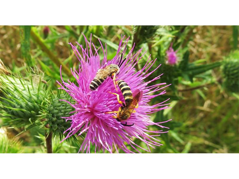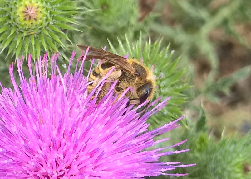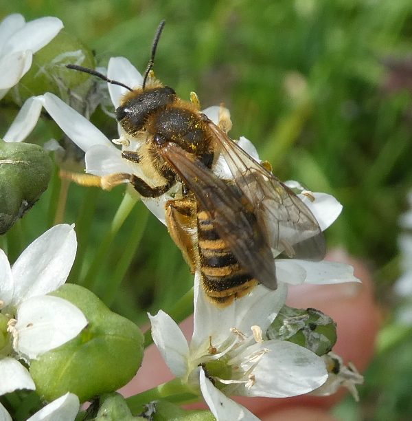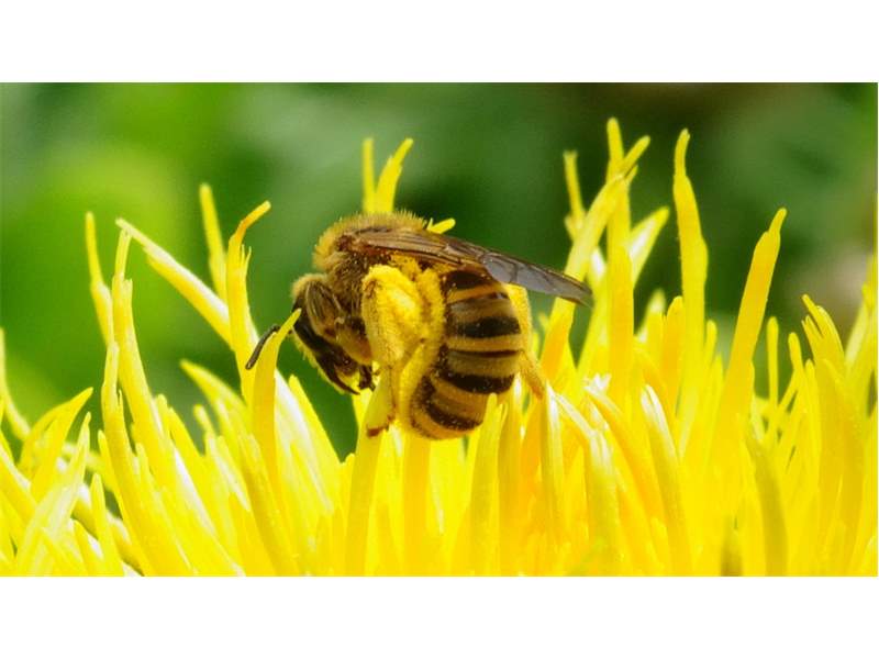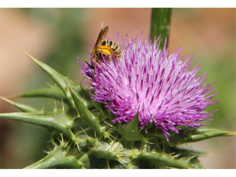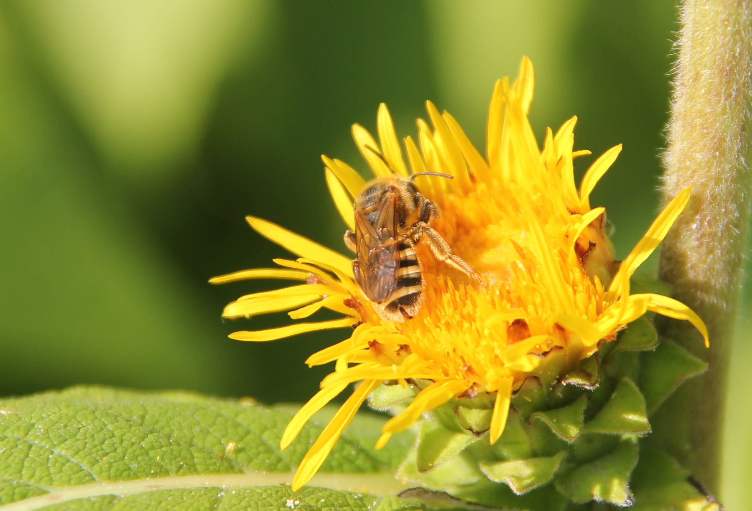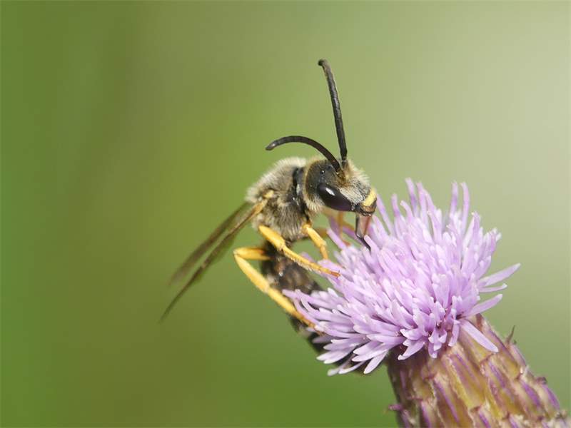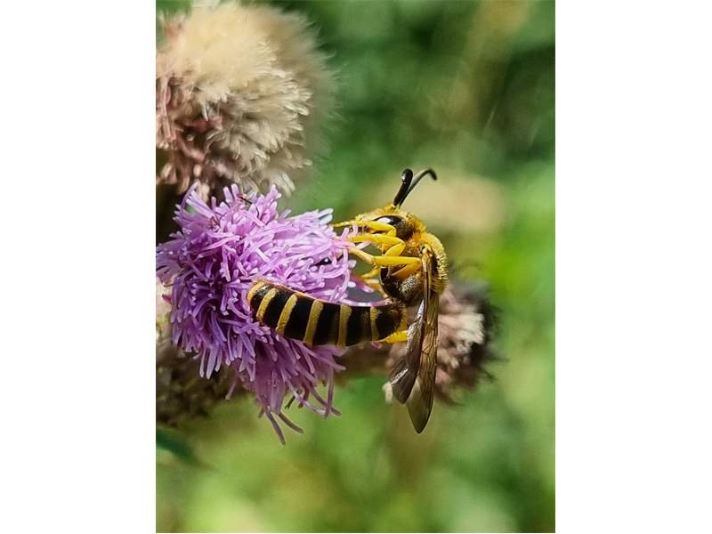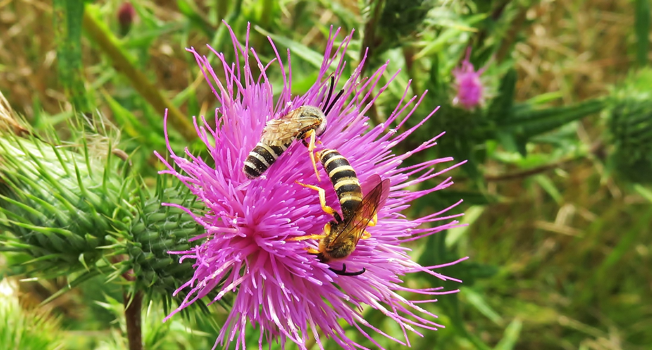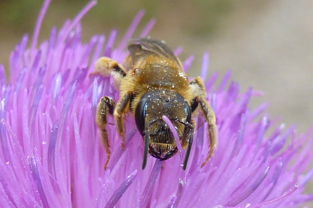 Gelbbindige Furchenbiene (Halictus scabiosae (Rossi, 1790)),Freital/Wurgwitz,Hammerteich,Wegrand auf Kratzdistel,Sep. 2019 (© Manfred Wonka)( Bild vergrößern)