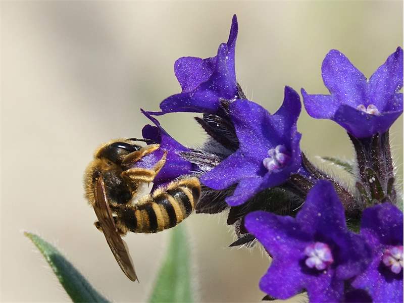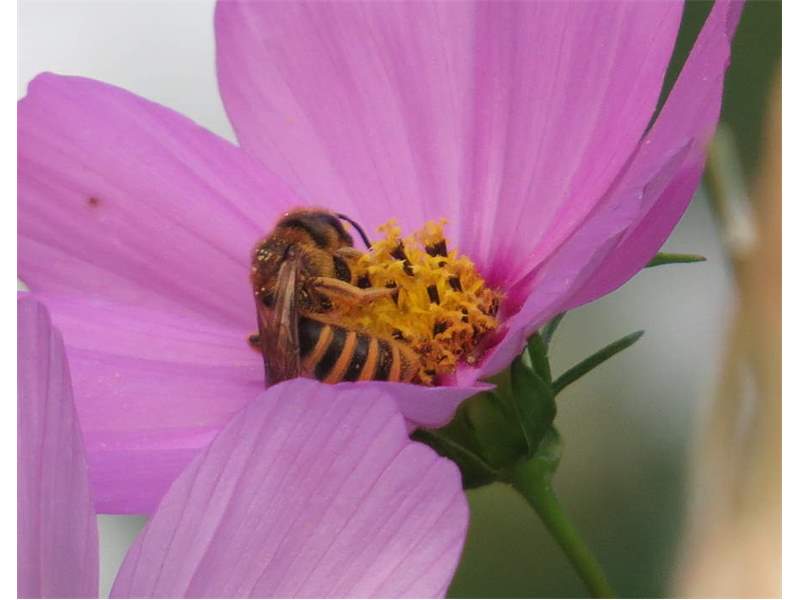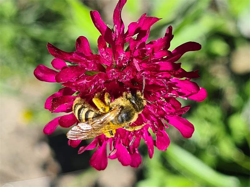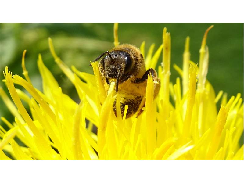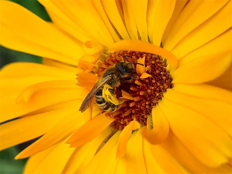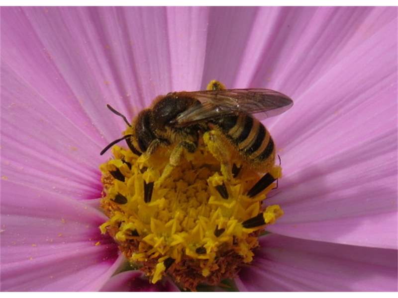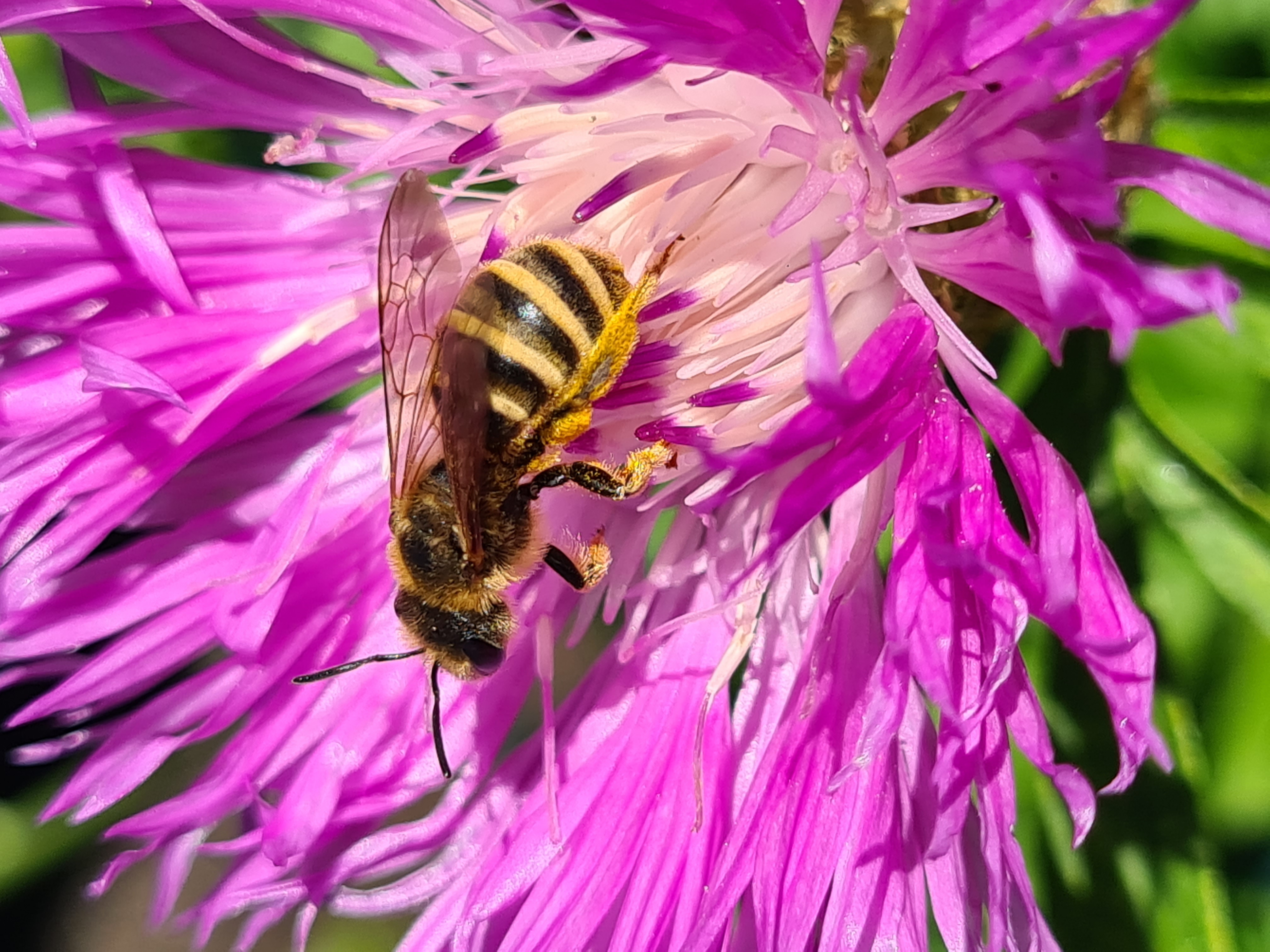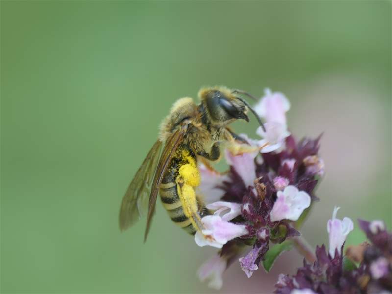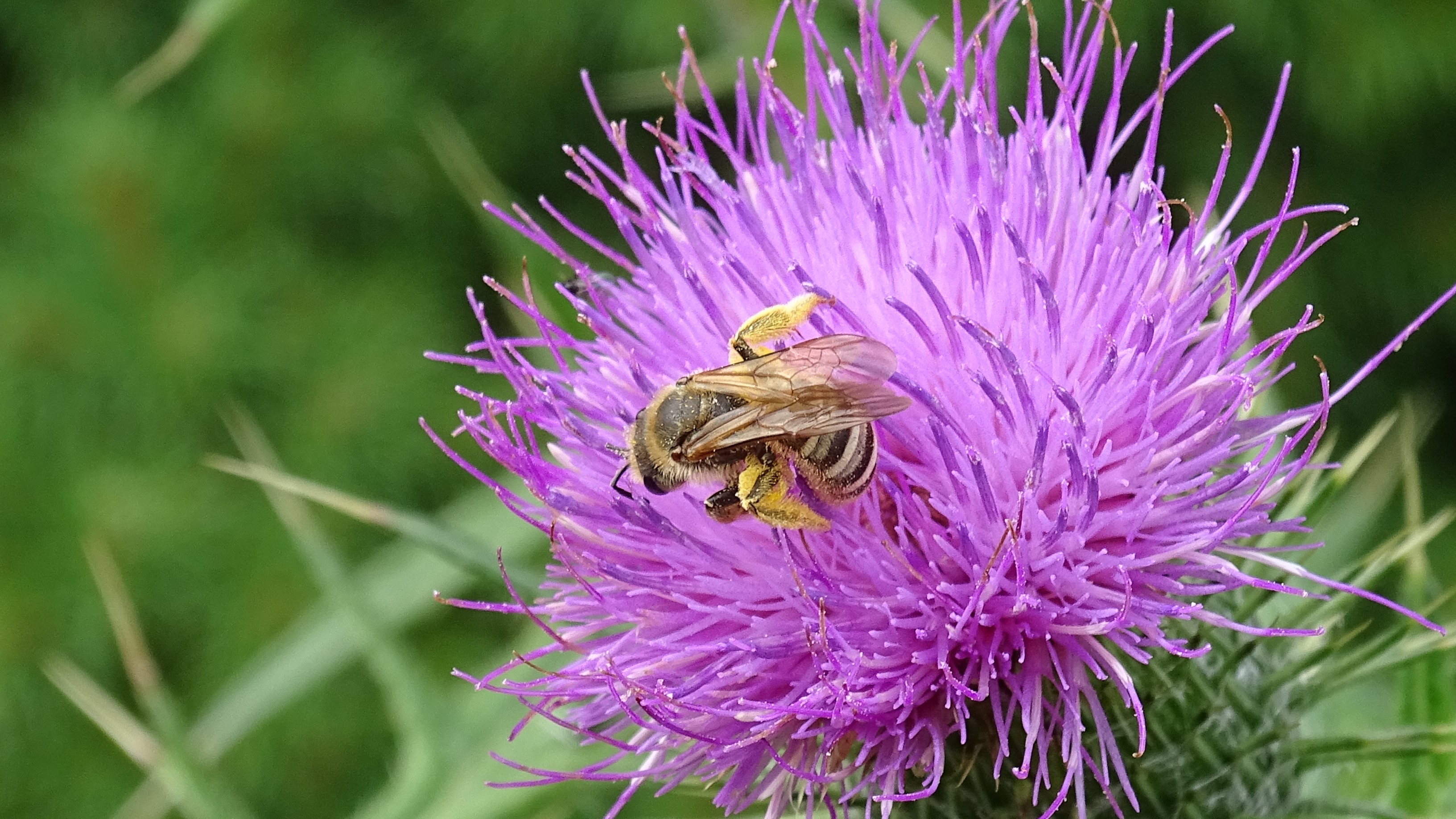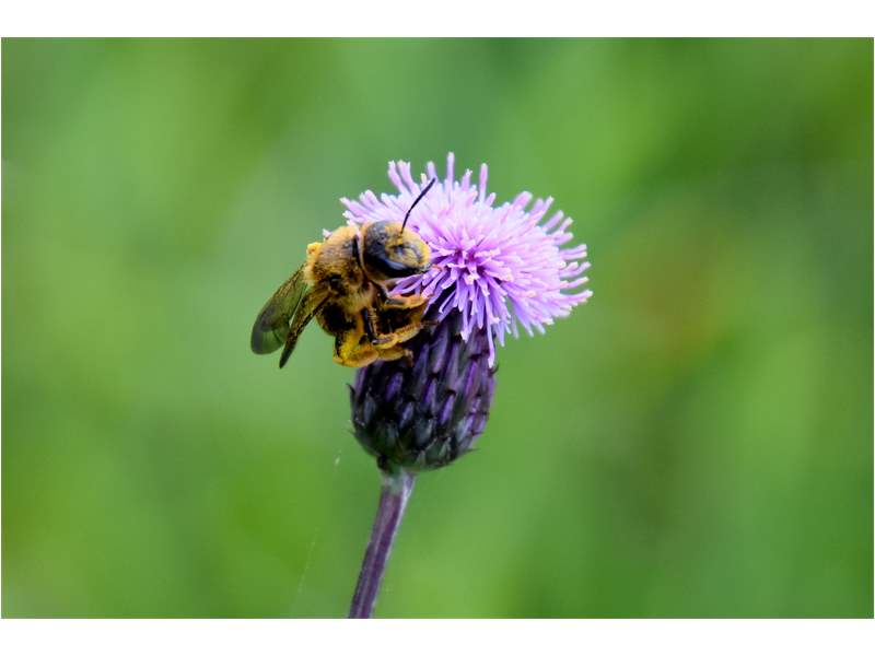 Gelbbindige Furchenbiene (Halictus scabiosae (Rossi, 1790)),Freital/Wurgwitz,Hammerteich,Wegrand auf Kratzdistel,Sep. 2019 (© Manfred Wonka)( Bild vergrößern)