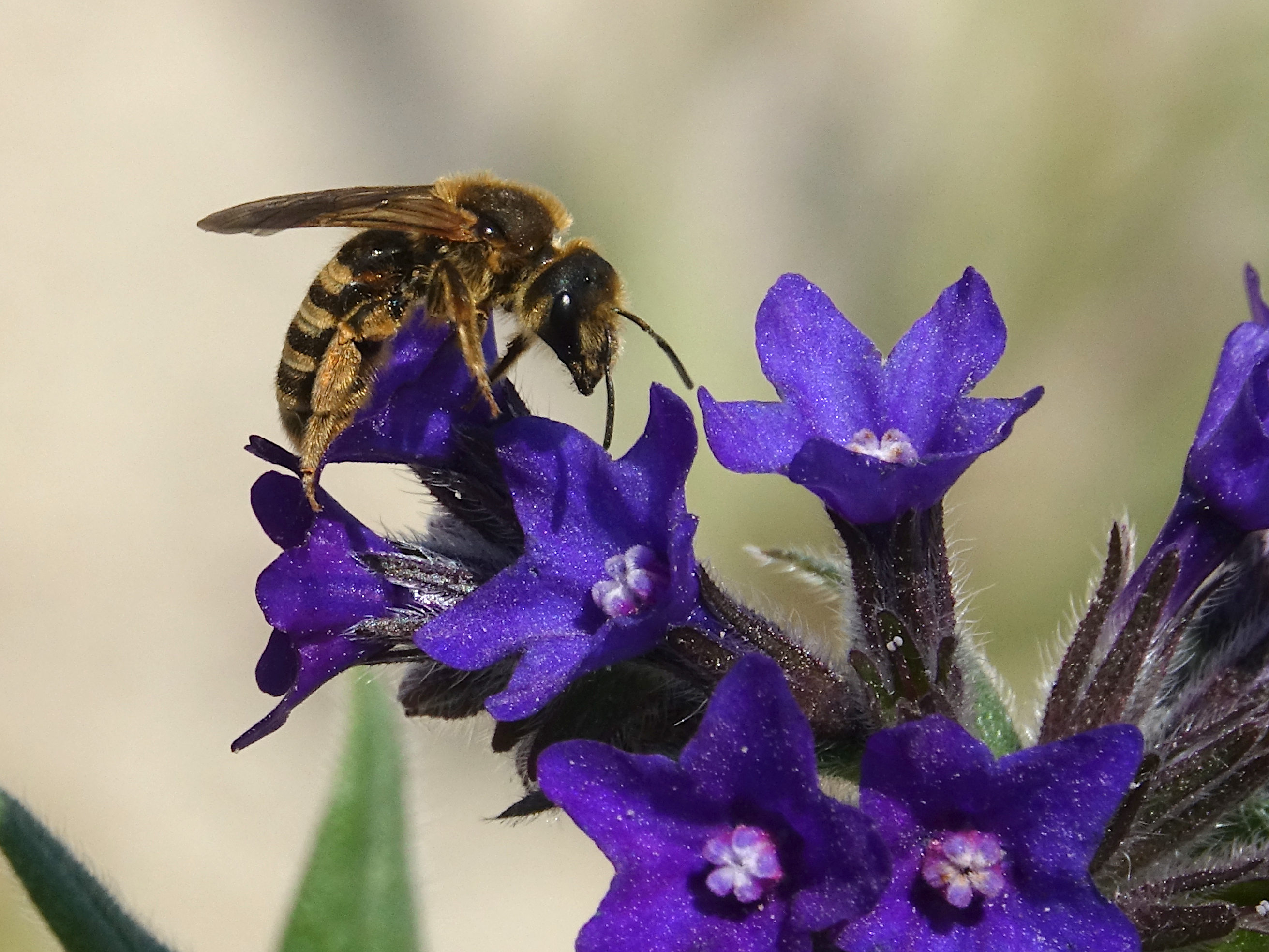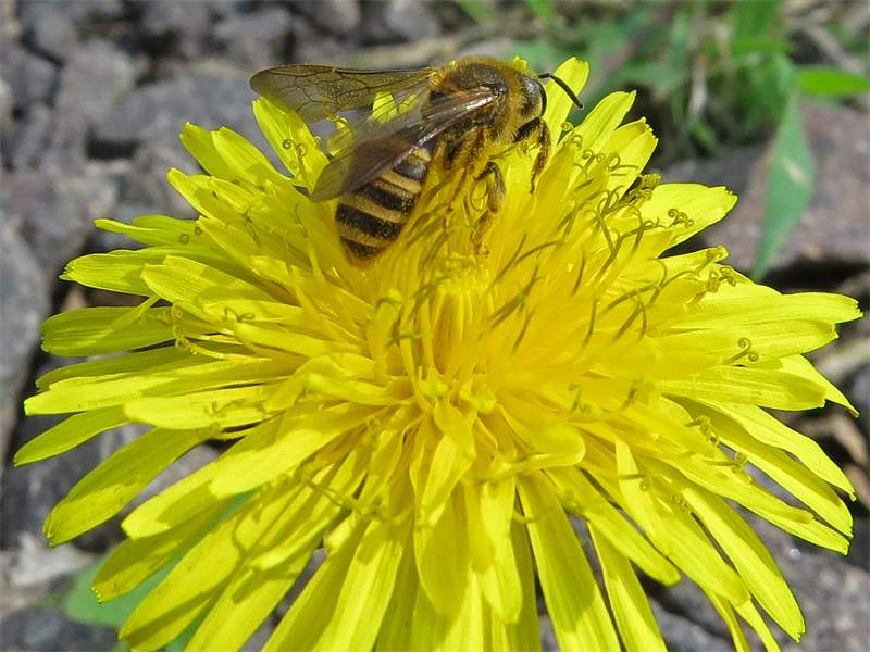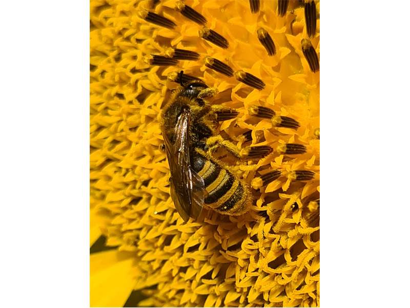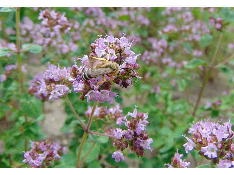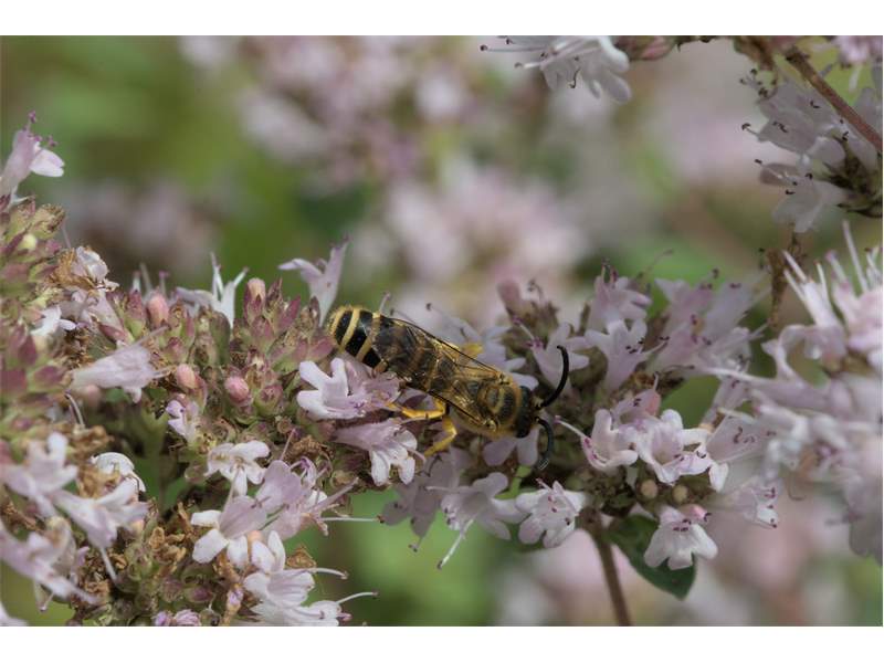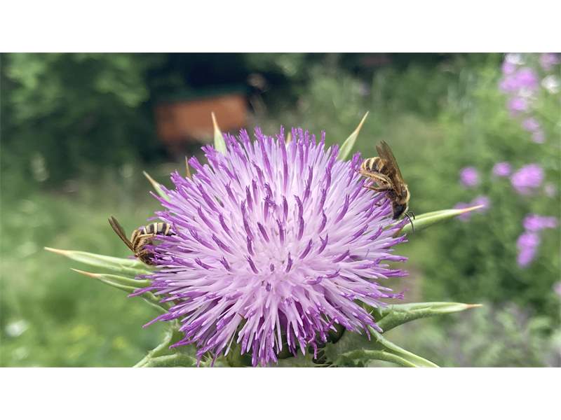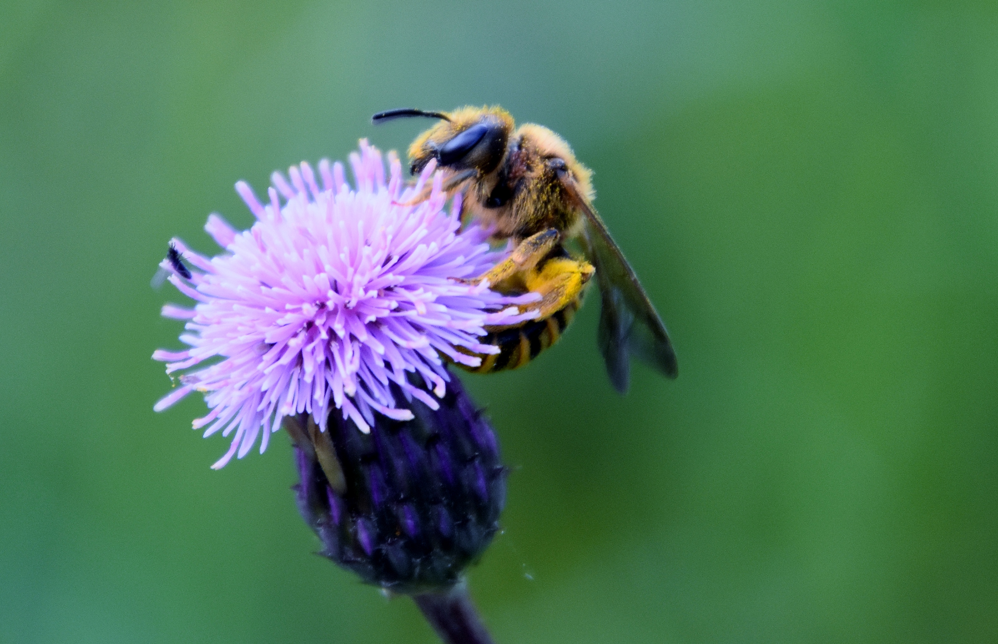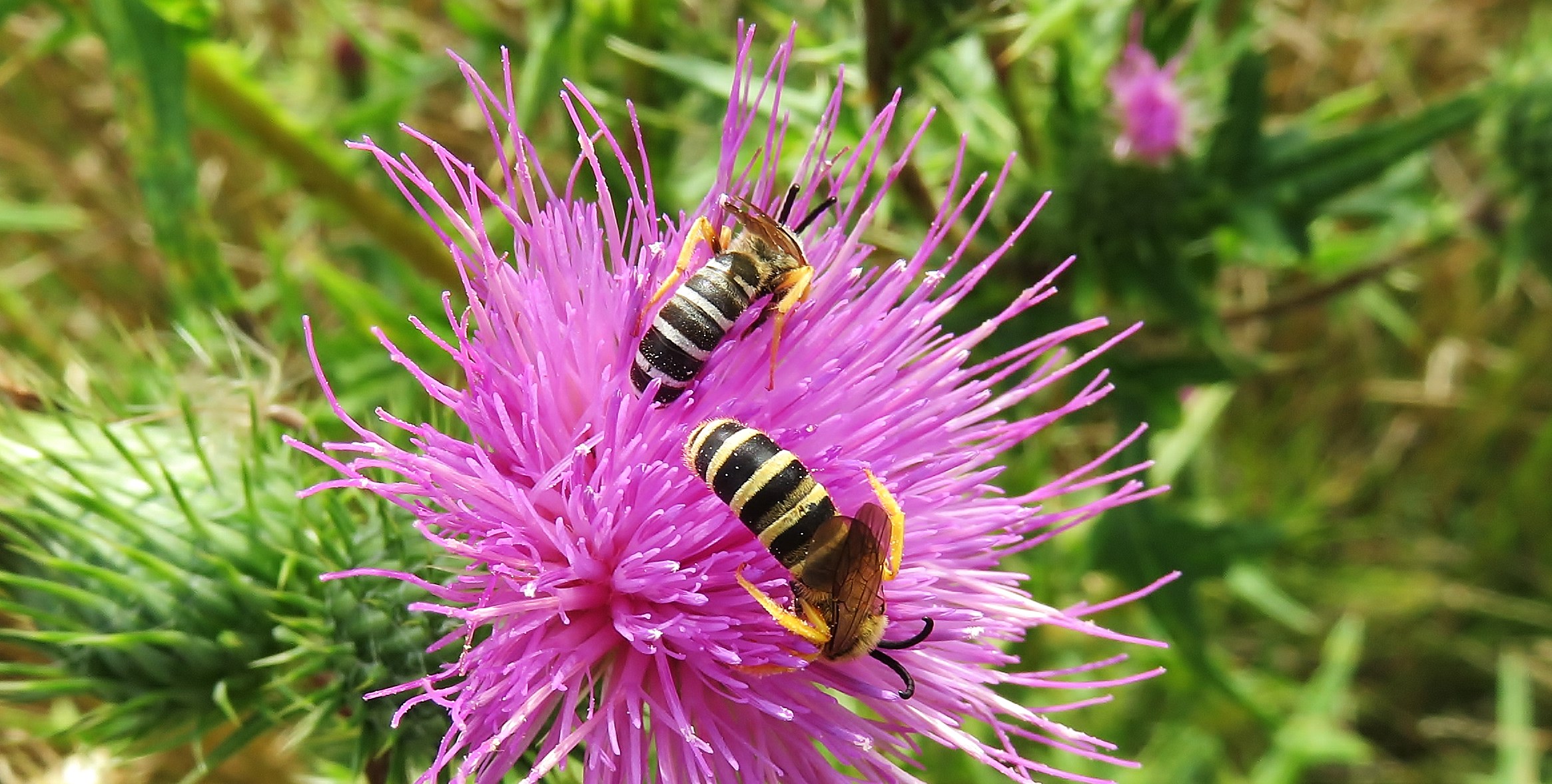 Gelbbindige Furchenbiene (Halictus scabiosae (Rossi, 1790)),Freital/Wurgwitz,Hammerteich,Wegrand auf Kratzdistel,Sep. 2019 (© Manfred Wonka)( Bild vergrößern)