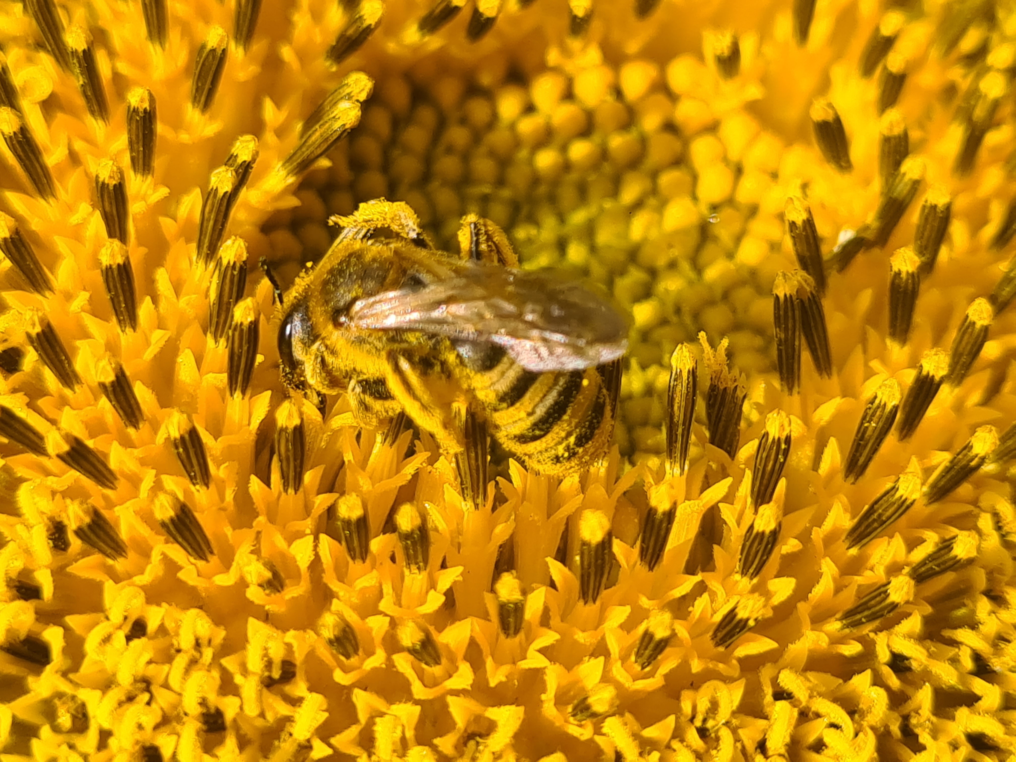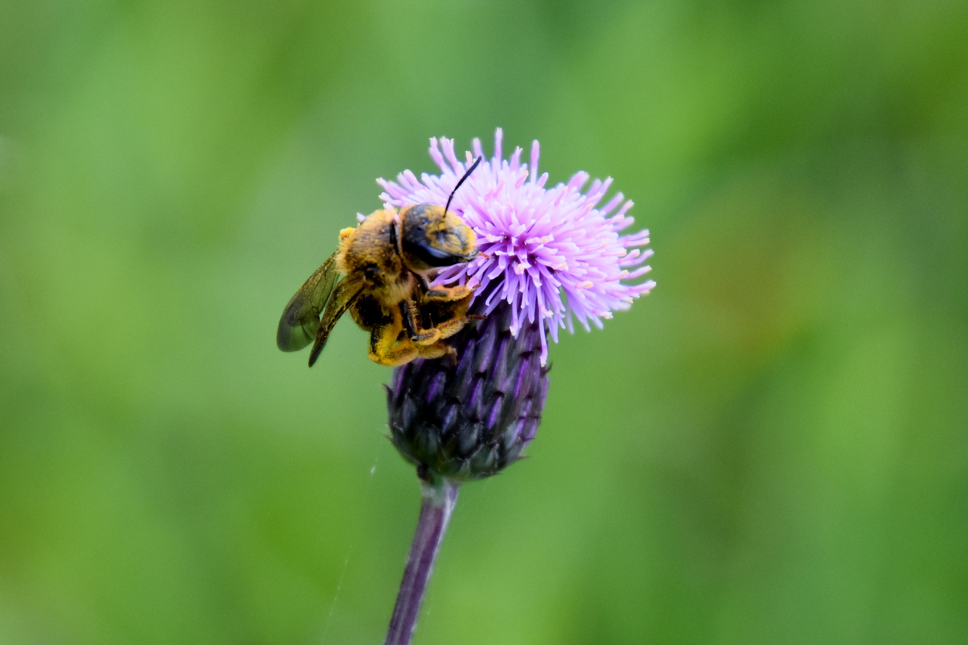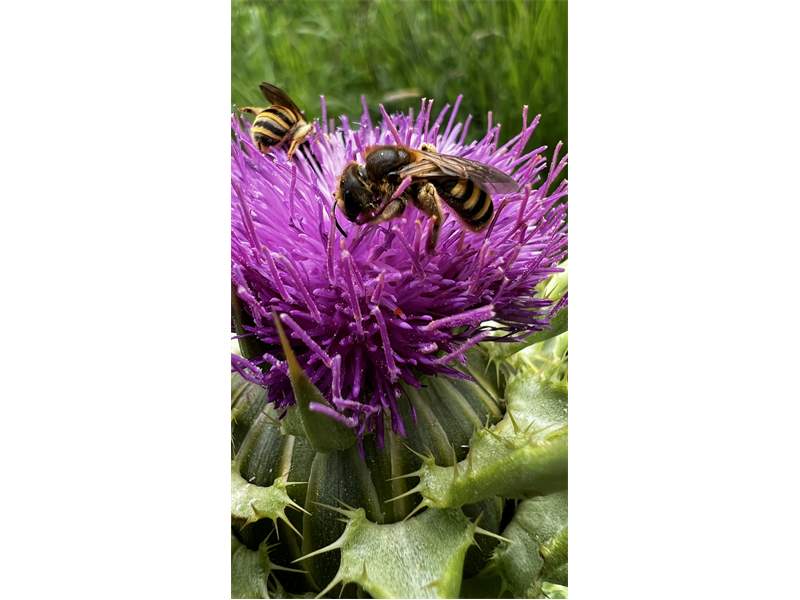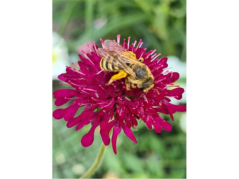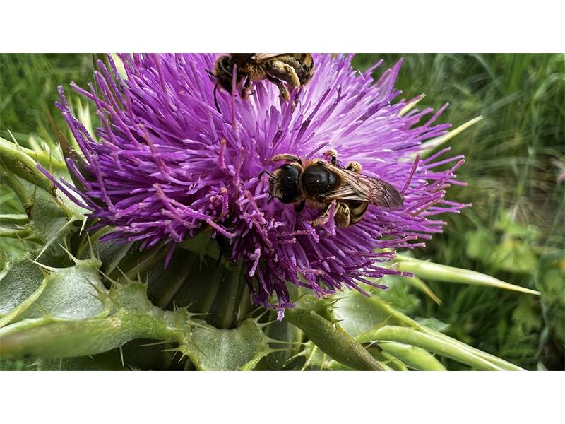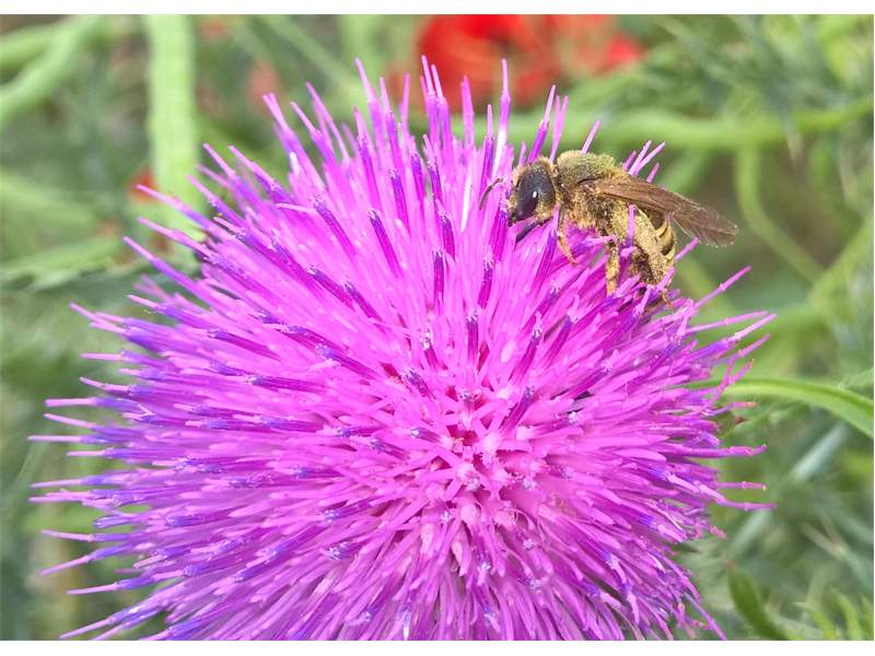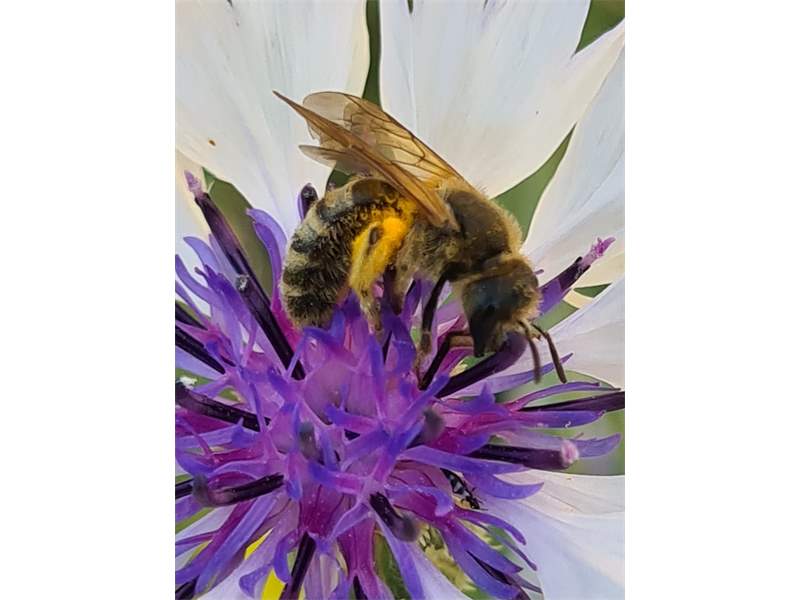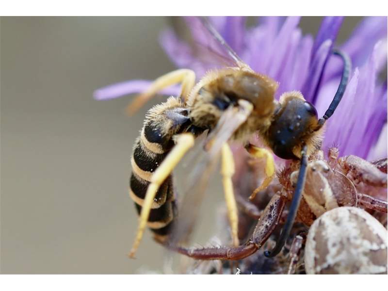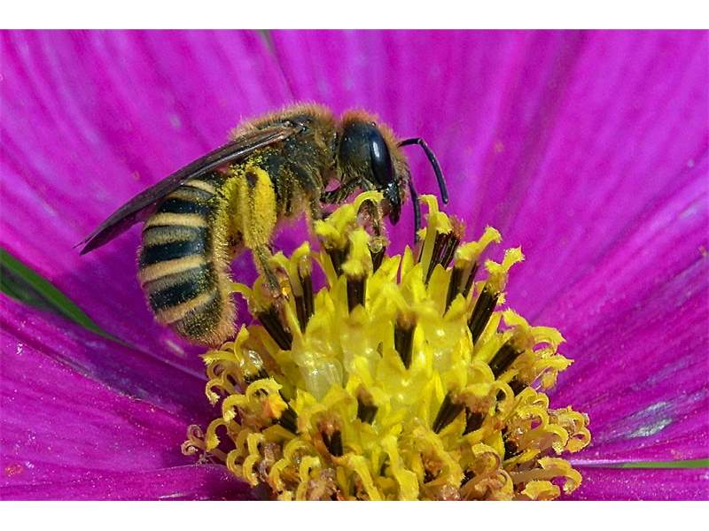 Gelbbindige Furchenbiene (Halictus scabiosae (Rossi, 1790)),Freital/Wurgwitz,Hammerteich,Wegrand auf Kratzdistel,Sep. 2019 (© Manfred Wonka)( Bild vergrößern)
